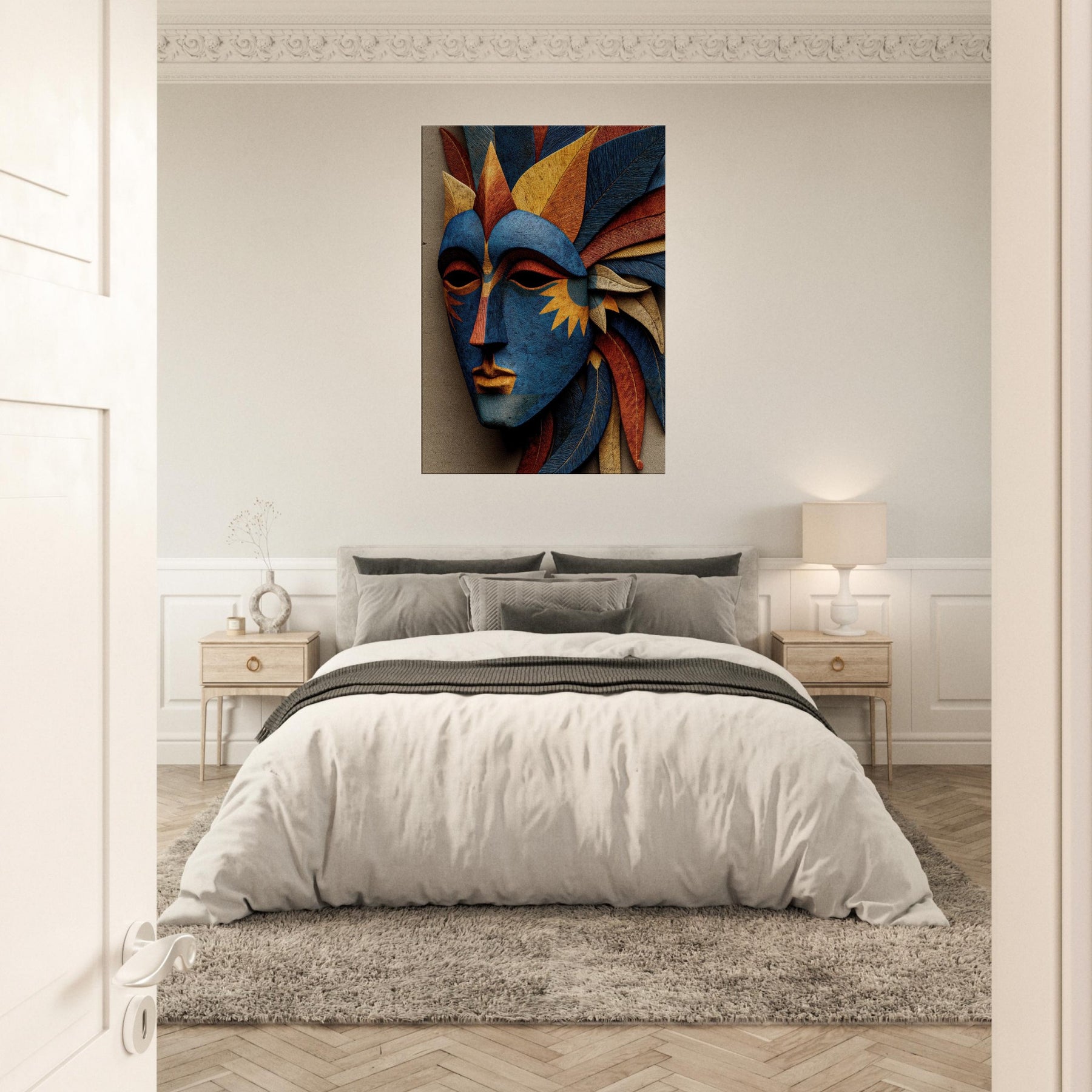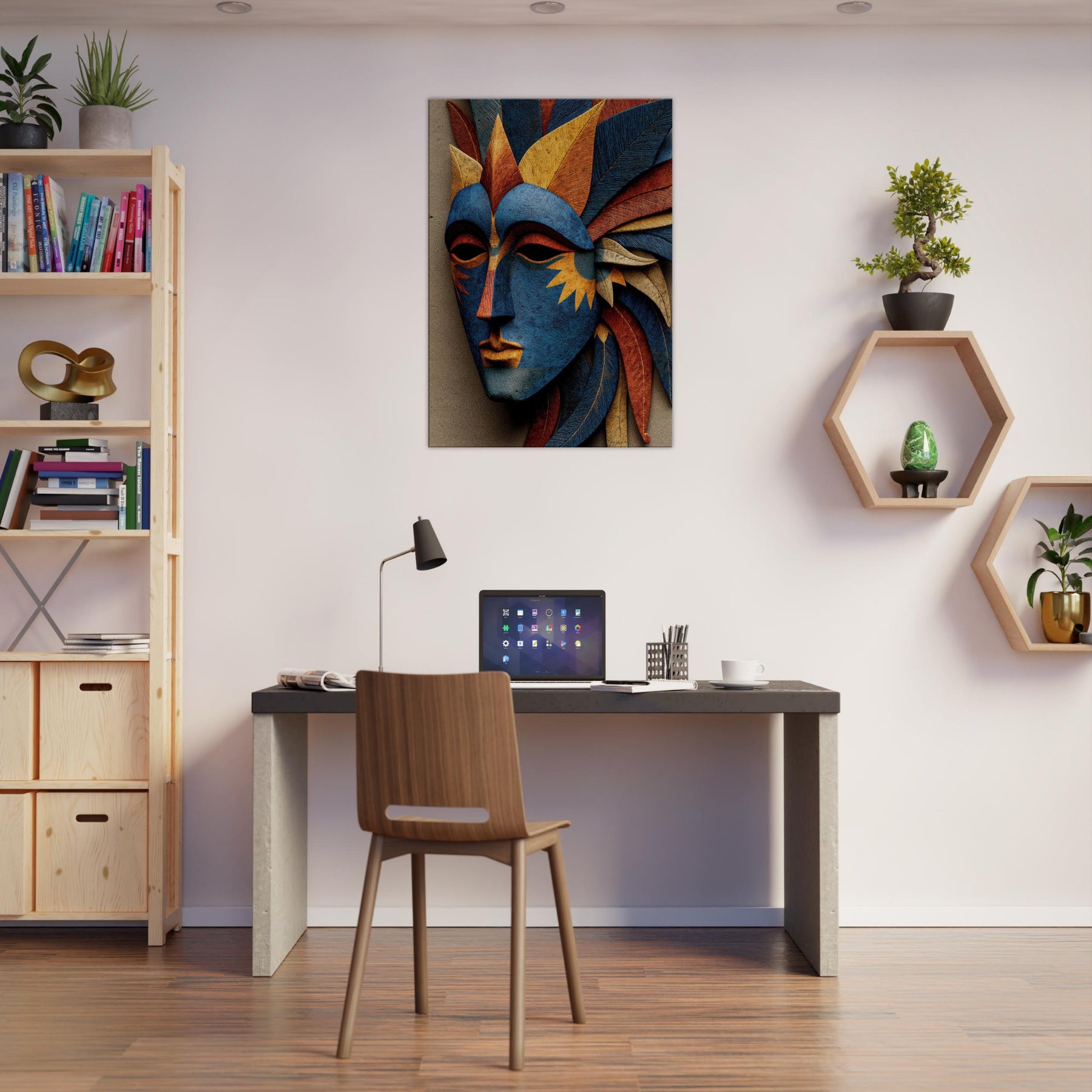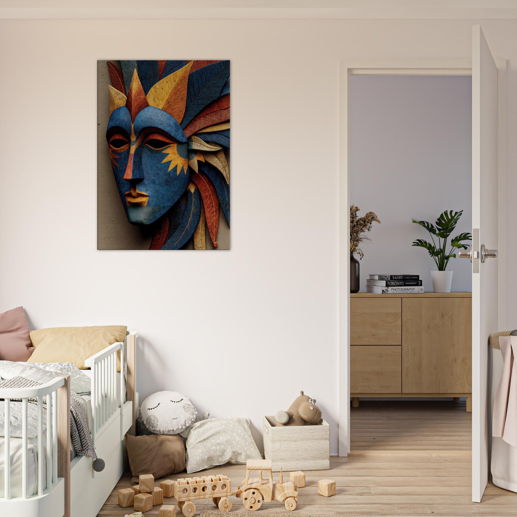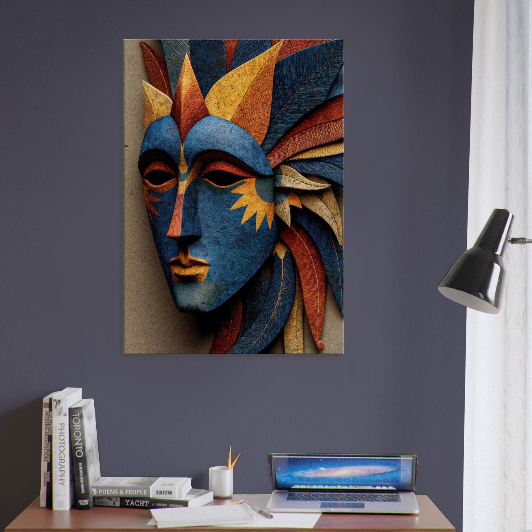 Step close to this Venetian Mask and you step into a memory theater where color breathes. A blue face framed by sunlit gold and warm orange carries a quiet, mask wearing mood that shifts with the light. The layered textures feel like carved wood and weathered plaster, inviting contemplation and touch. Perfect for a living room or hallway, it becomes a focal point that whispers drama, mystery, and grace, elevating neutrals with a radiant, refined energy.