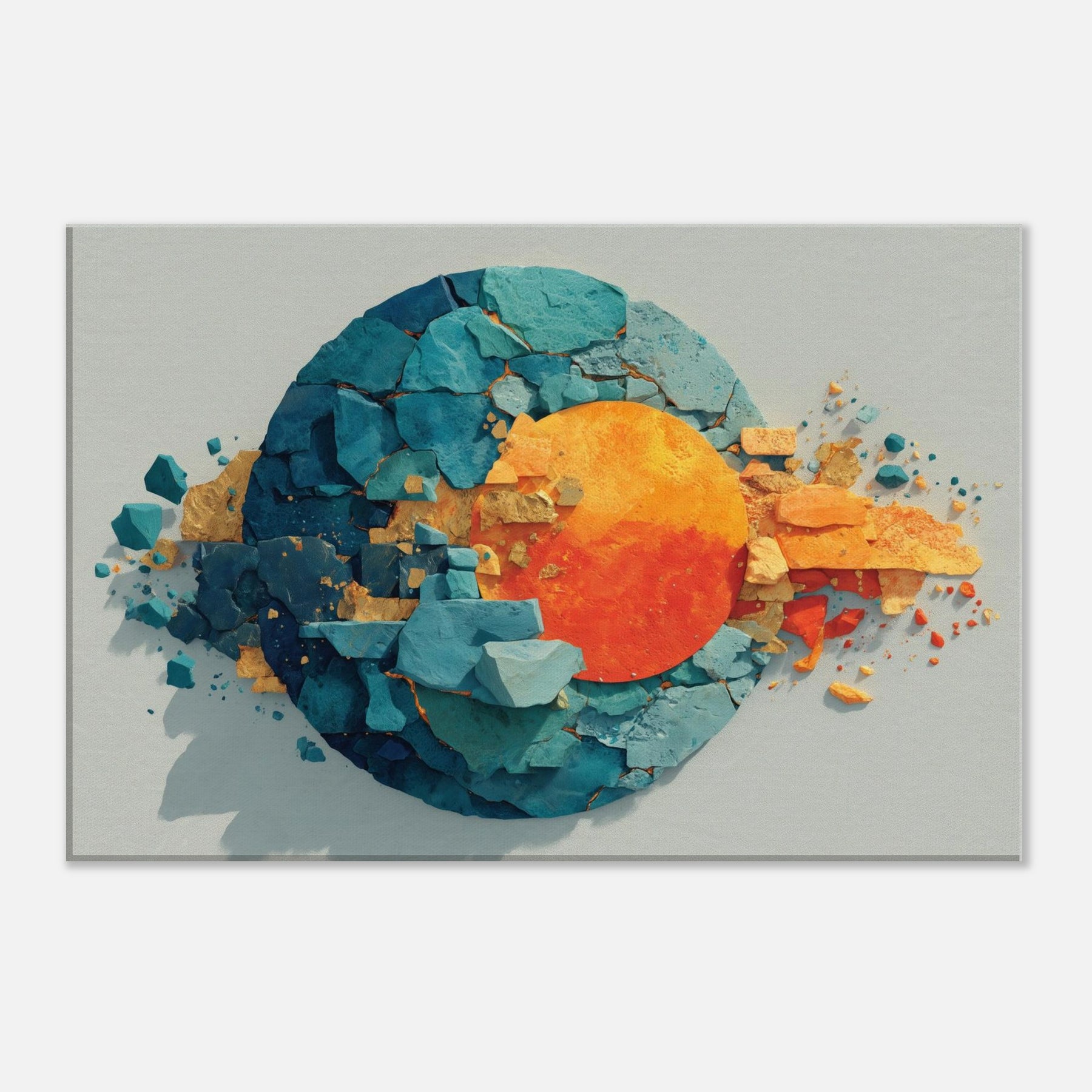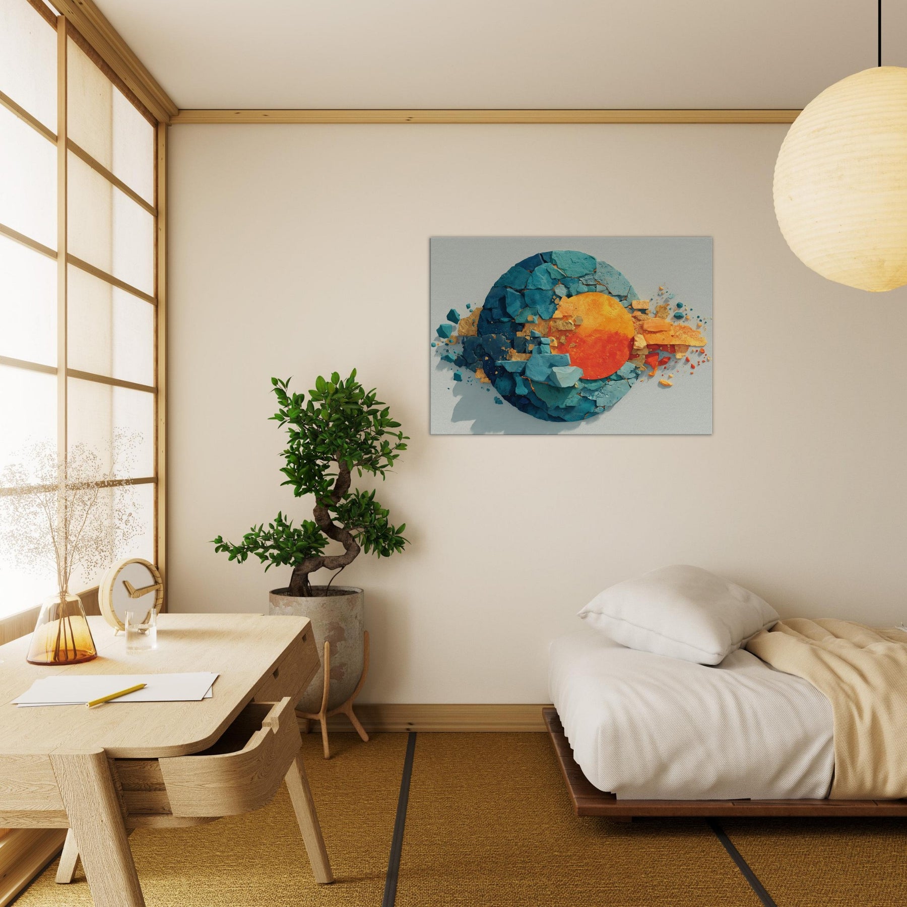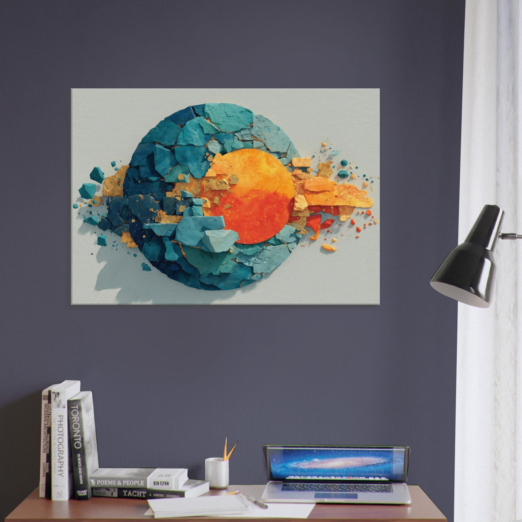 Let the Moon rise within your space as an architect of atmosphere. This abstract composition folds the hush of night into a luminous circle, surrounded by shattered shards of color that pulse with quiet energy. You’ll feel cool blue whispers and a warm solar heart bouncing across the walls, transforming a living room or bedroom into a sanctuary of contemplation. The piece invites slow, breathing moments, turning ordinary evenings into rituals of pause and wonder.
