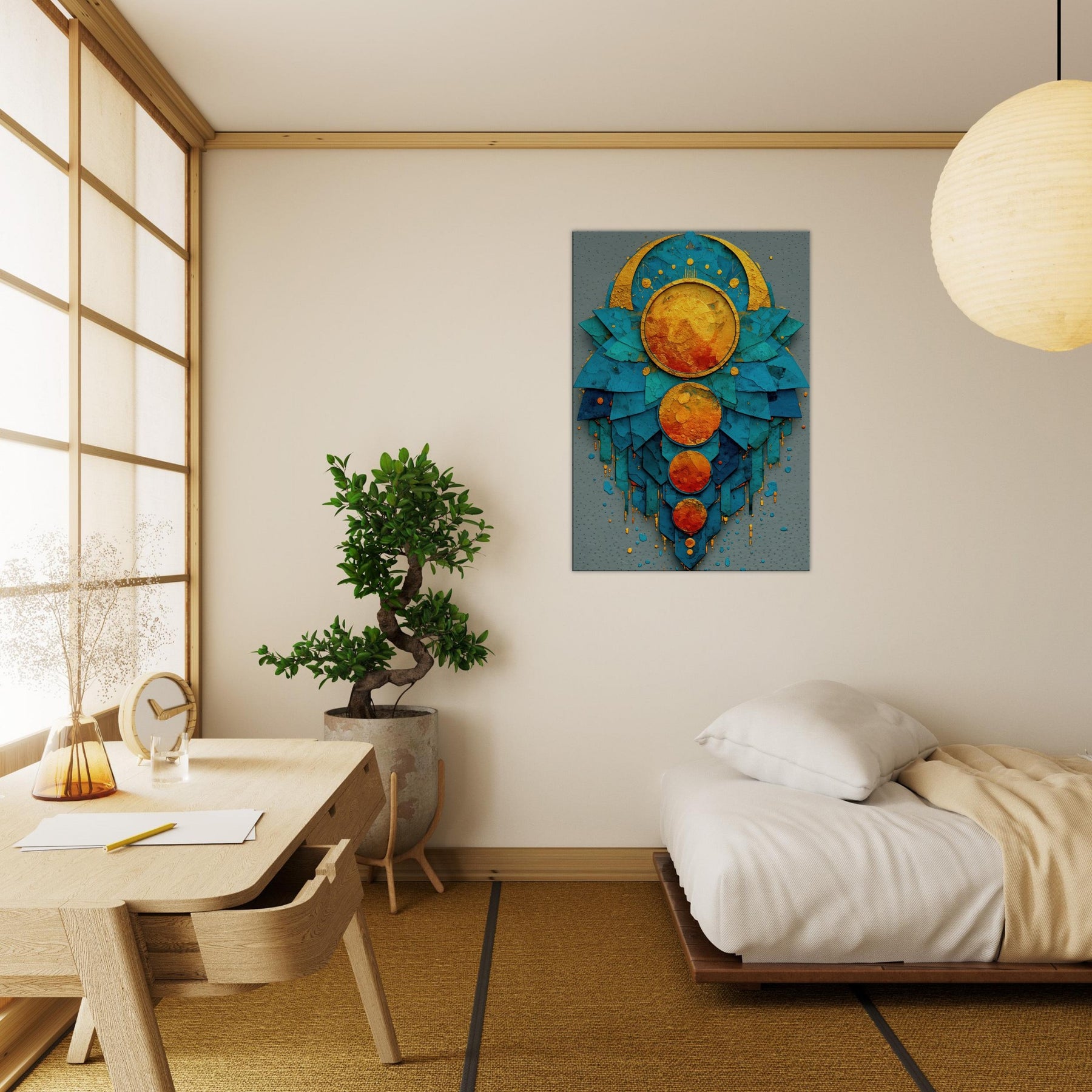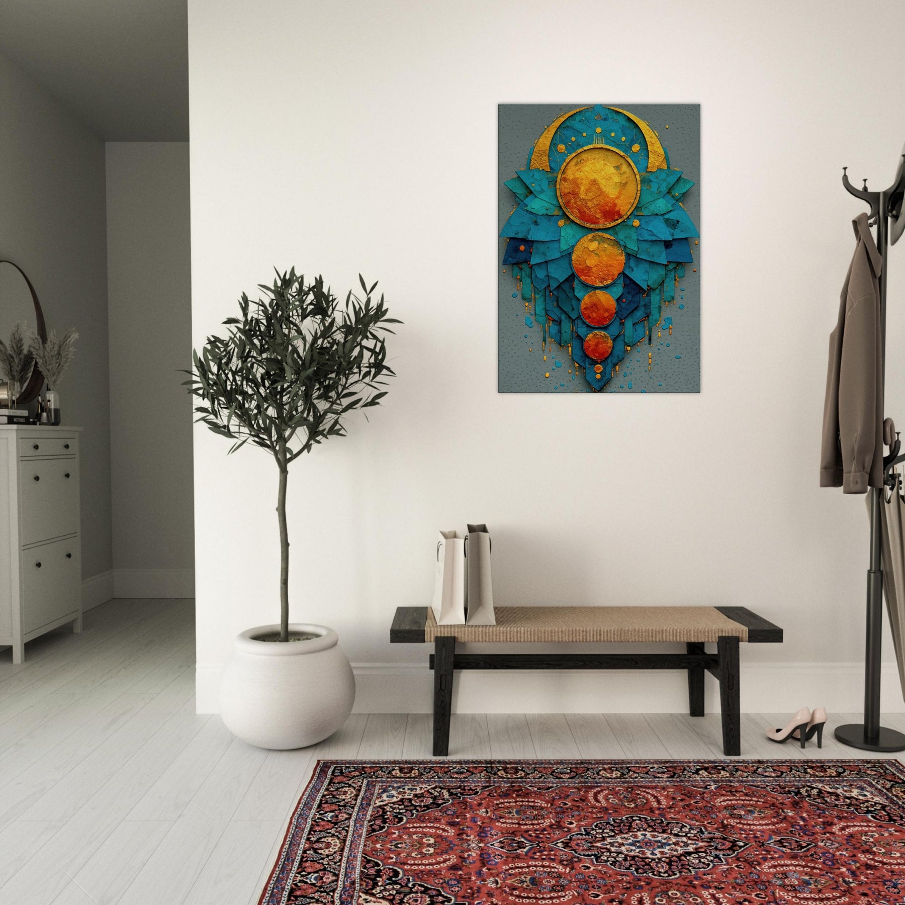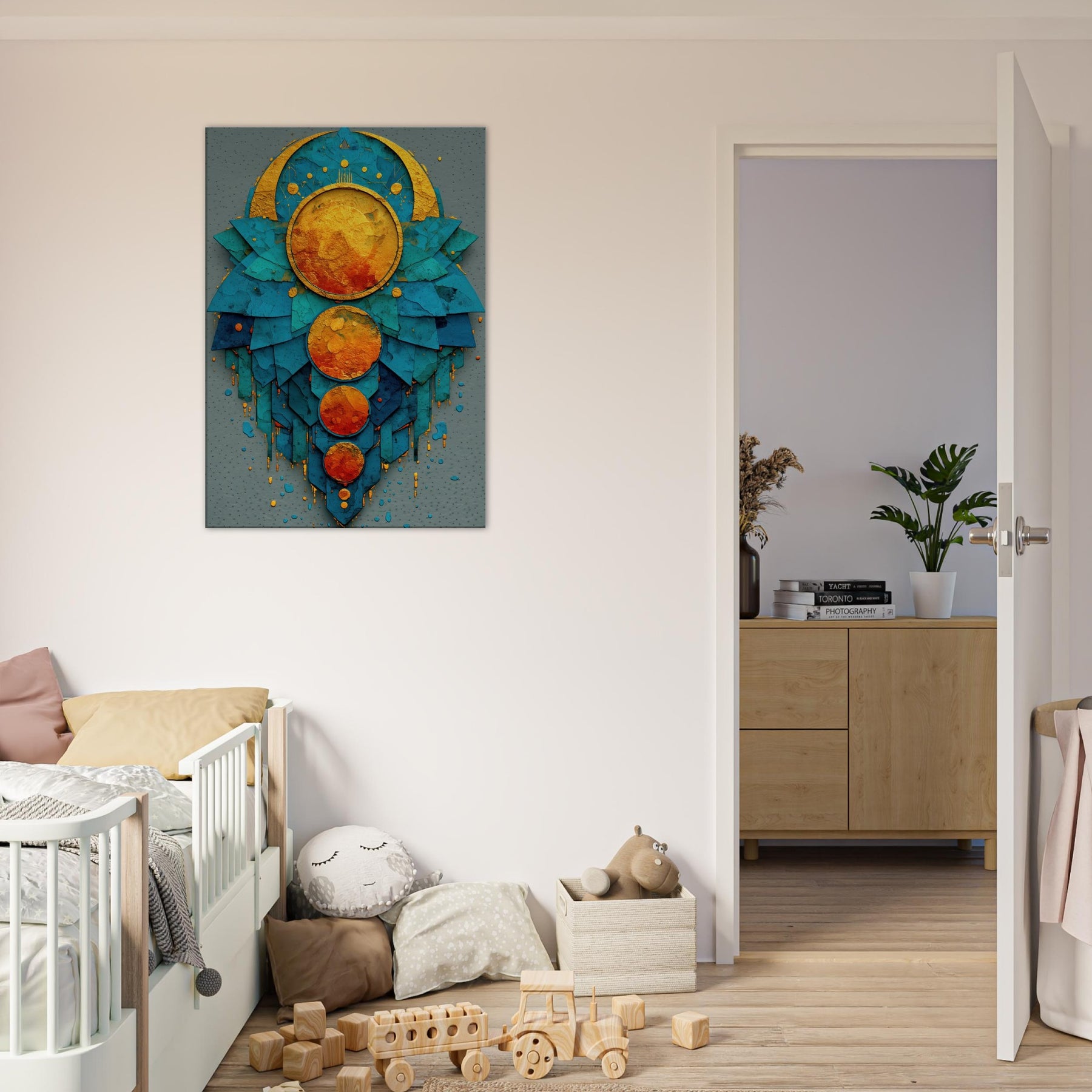 Moon Phases unfolds as a luminous orchestration of color and form, inviting quiet wonder into the room. This piece melds warm amber orbs with cool turquoise planes, crafting a tactile dialogue between celestial cycles and earthly textures. The atmosphere shifts with your light, from a soft dawn to a twilight shimmer, turning a wall into a contemplative sanctuary. Ideal for a living space where conversation lingers and breaths slow, it wraps the space in a mystical glow while honoring the rhythm of Moon Phases.