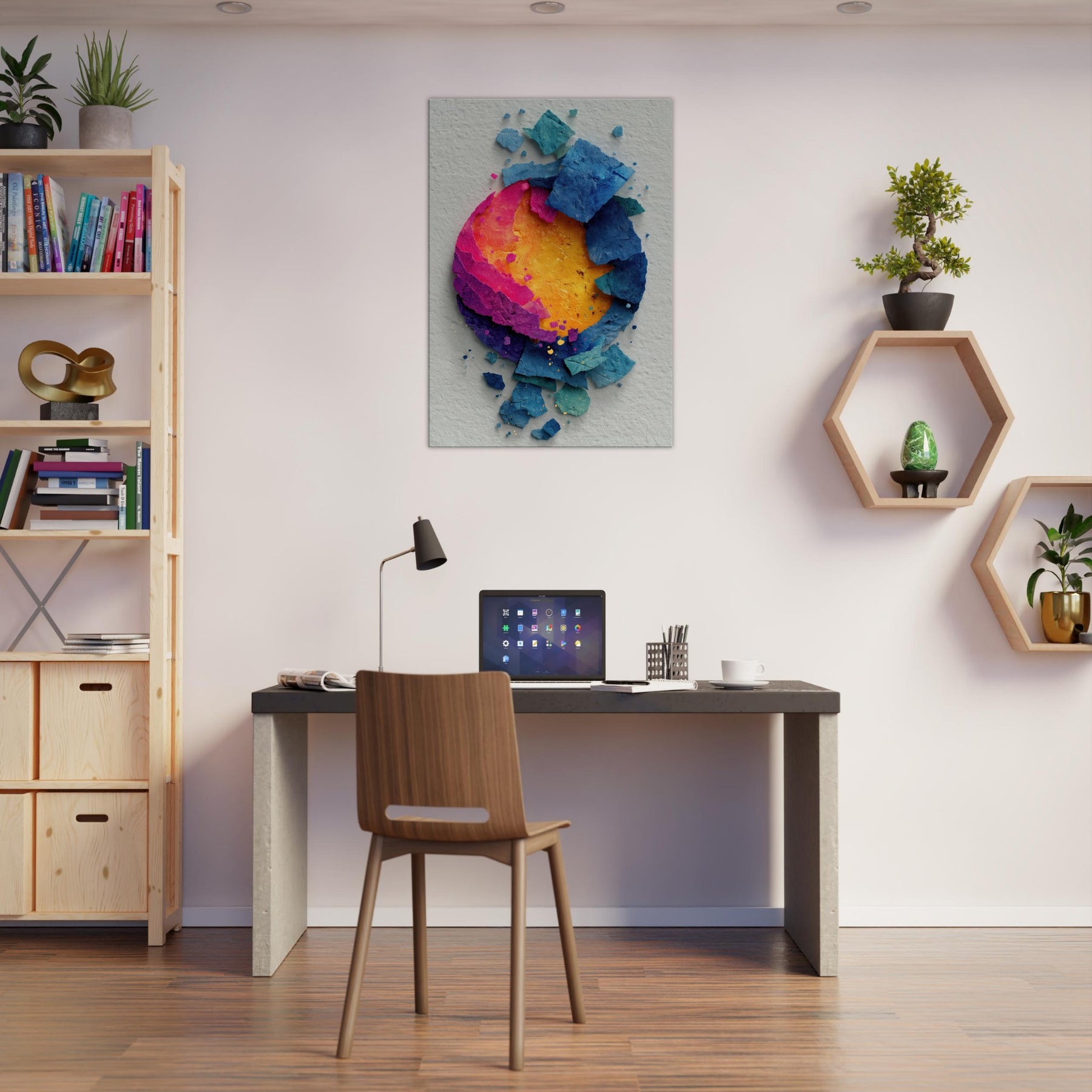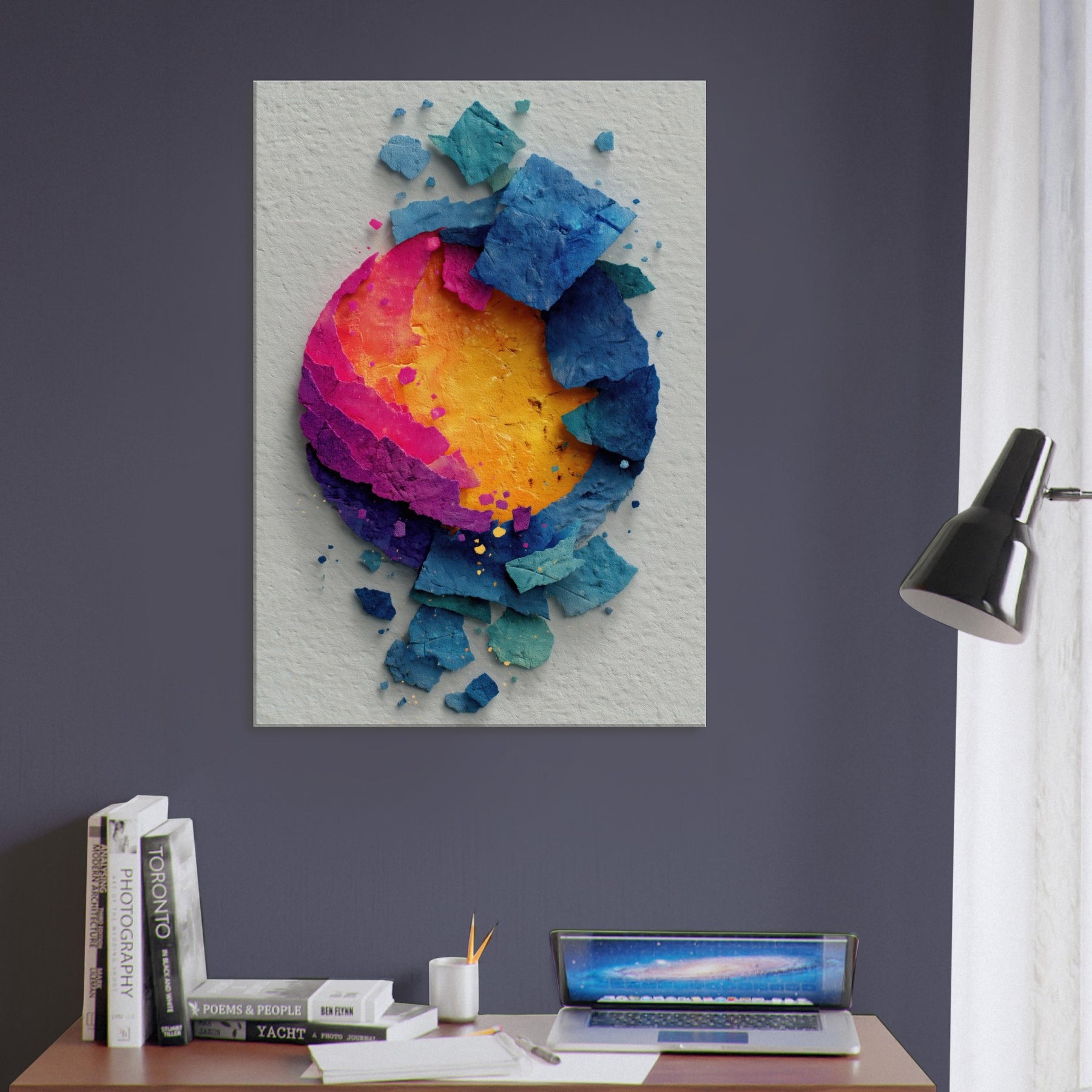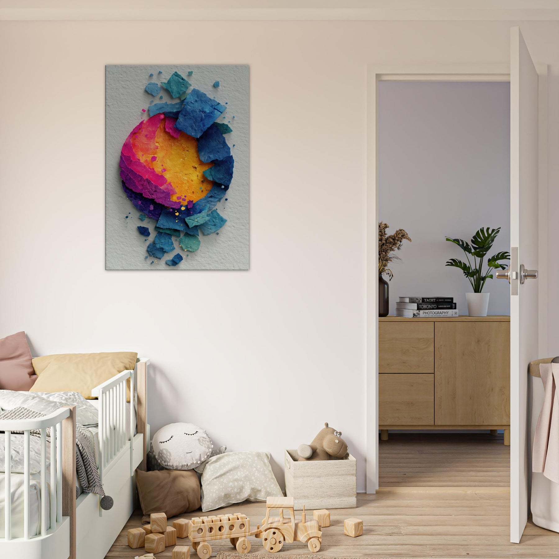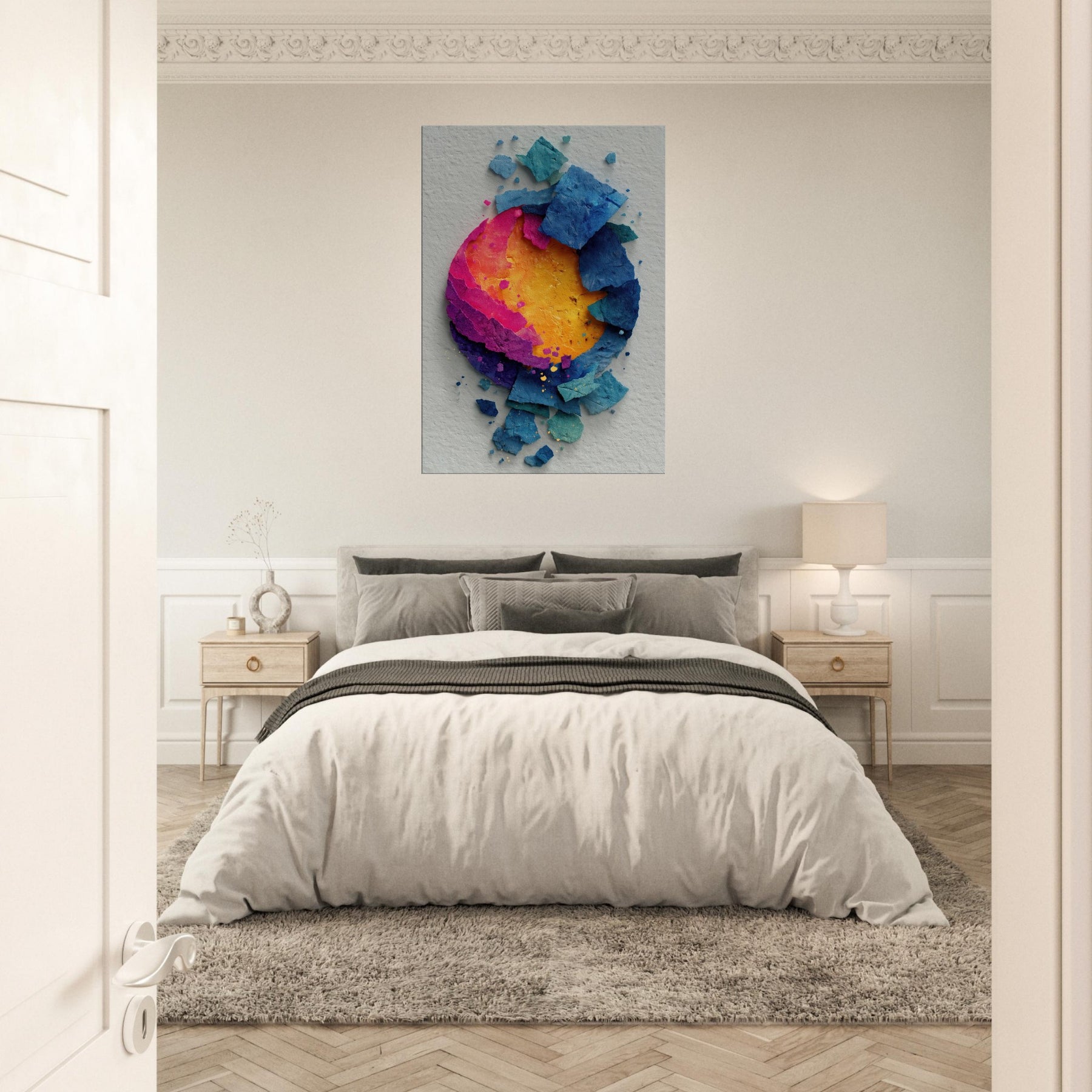 Mystical Moon unfolds in radiant shards, inviting a soft agitation of color into your living space. This abstract study breathes with a moonlit glow, where citrus, magenta, and azure bleed into orbit, as if night itself breaks into revelation. Hang it where light can kiss the textured edges, and feel a quiet hush settle over the room. A wearable atmosphere for modern interiors, it turns walls into a whispered lullaby of color, mood, and wonder.