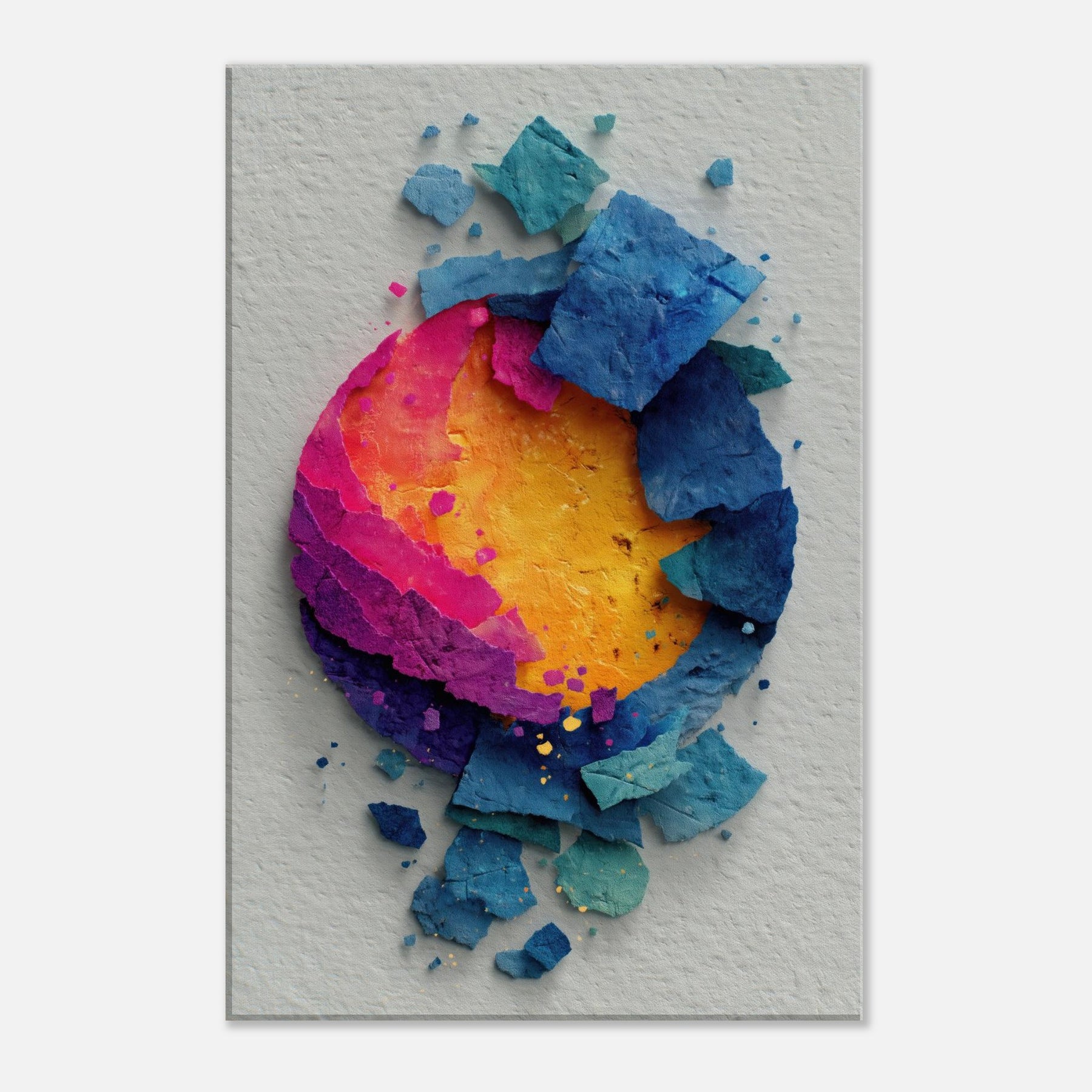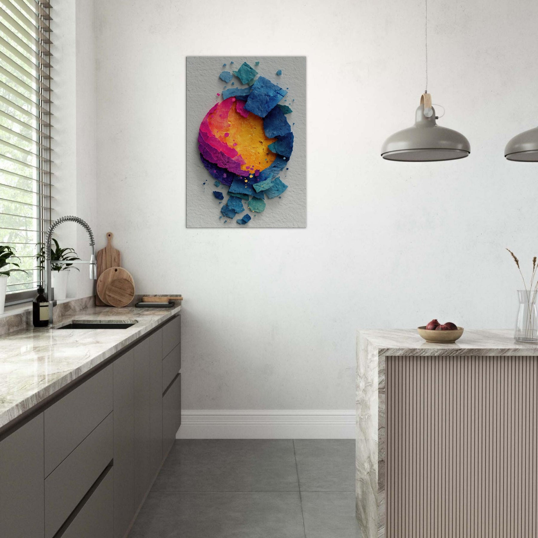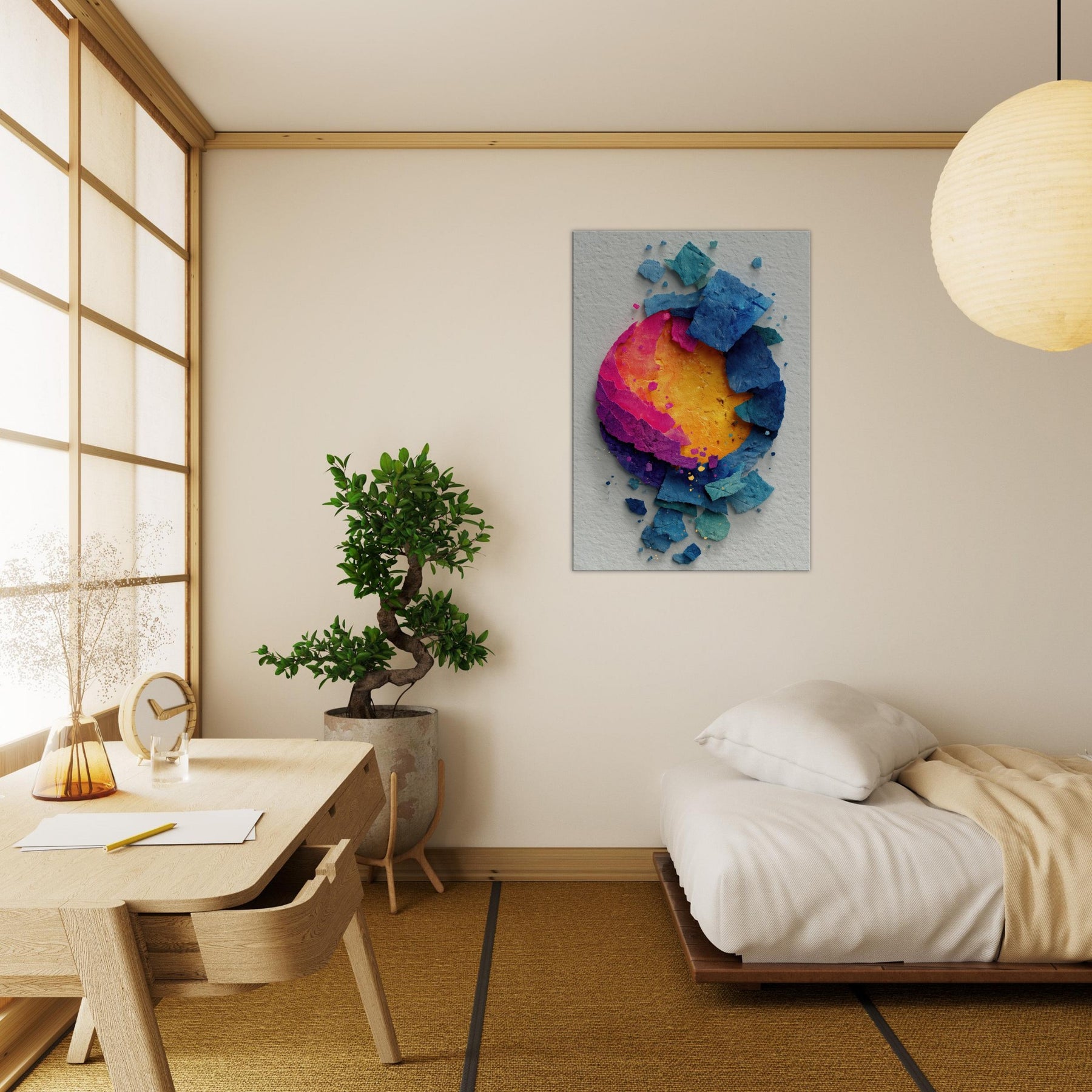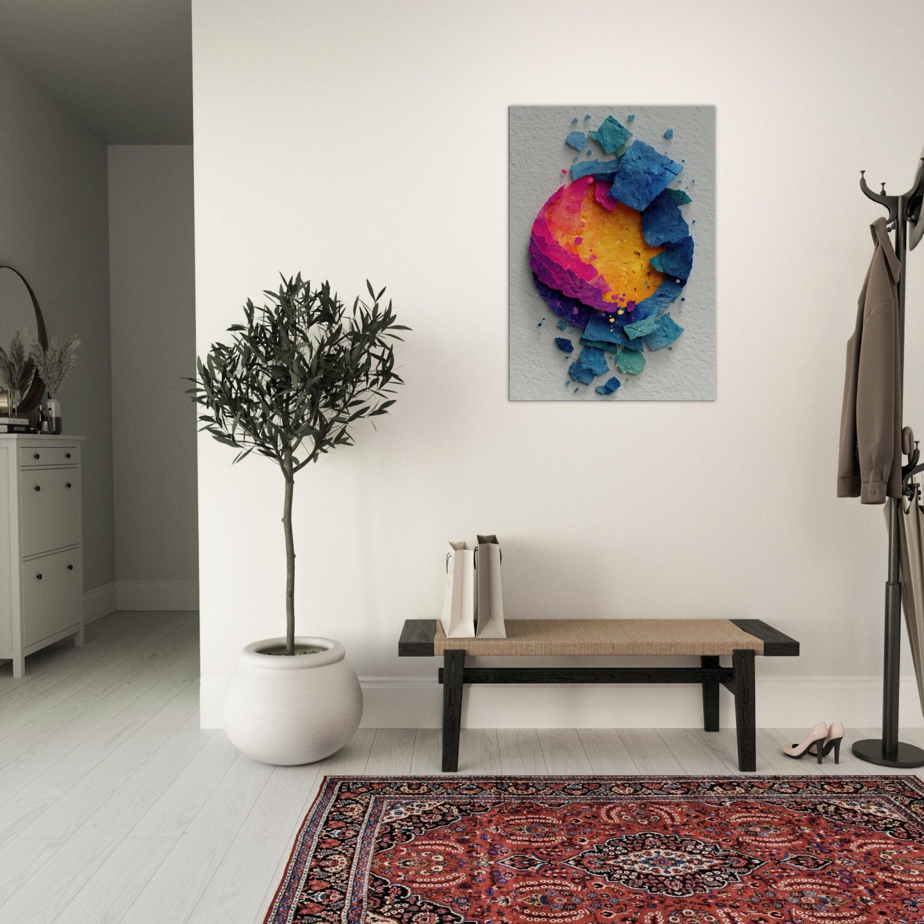 Mystical Moon unfolds in radiant shards, inviting a soft agitation of color into your living space. This abstract study breathes with a moonlit glow, where citrus, magenta, and azure bleed into orbit, as if night itself breaks into revelation. Hang it where light can kiss the textured edges, and feel a quiet hush settle over the room. A wearable atmosphere for modern interiors, it turns walls into a whispered lullaby of color, mood, and wonder.