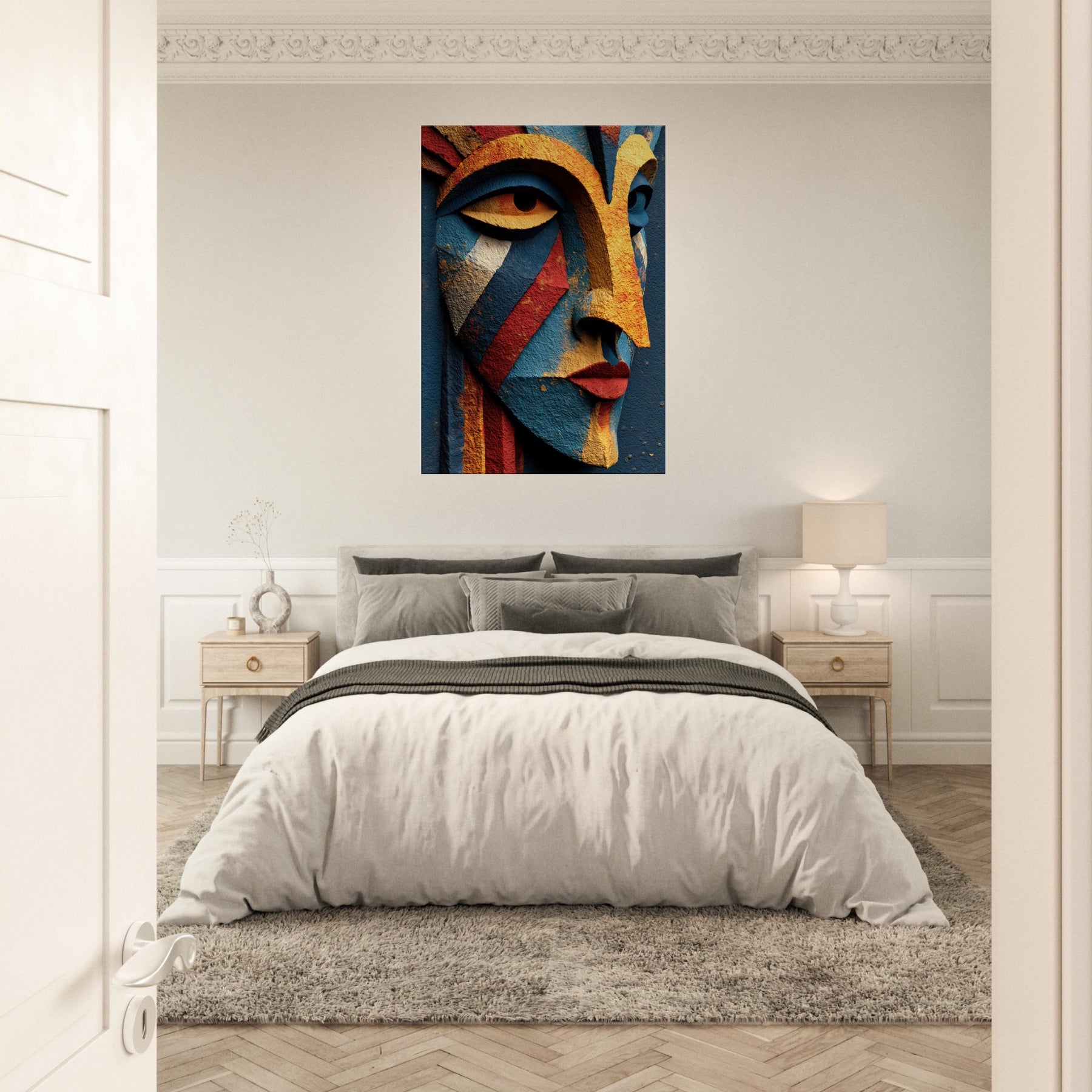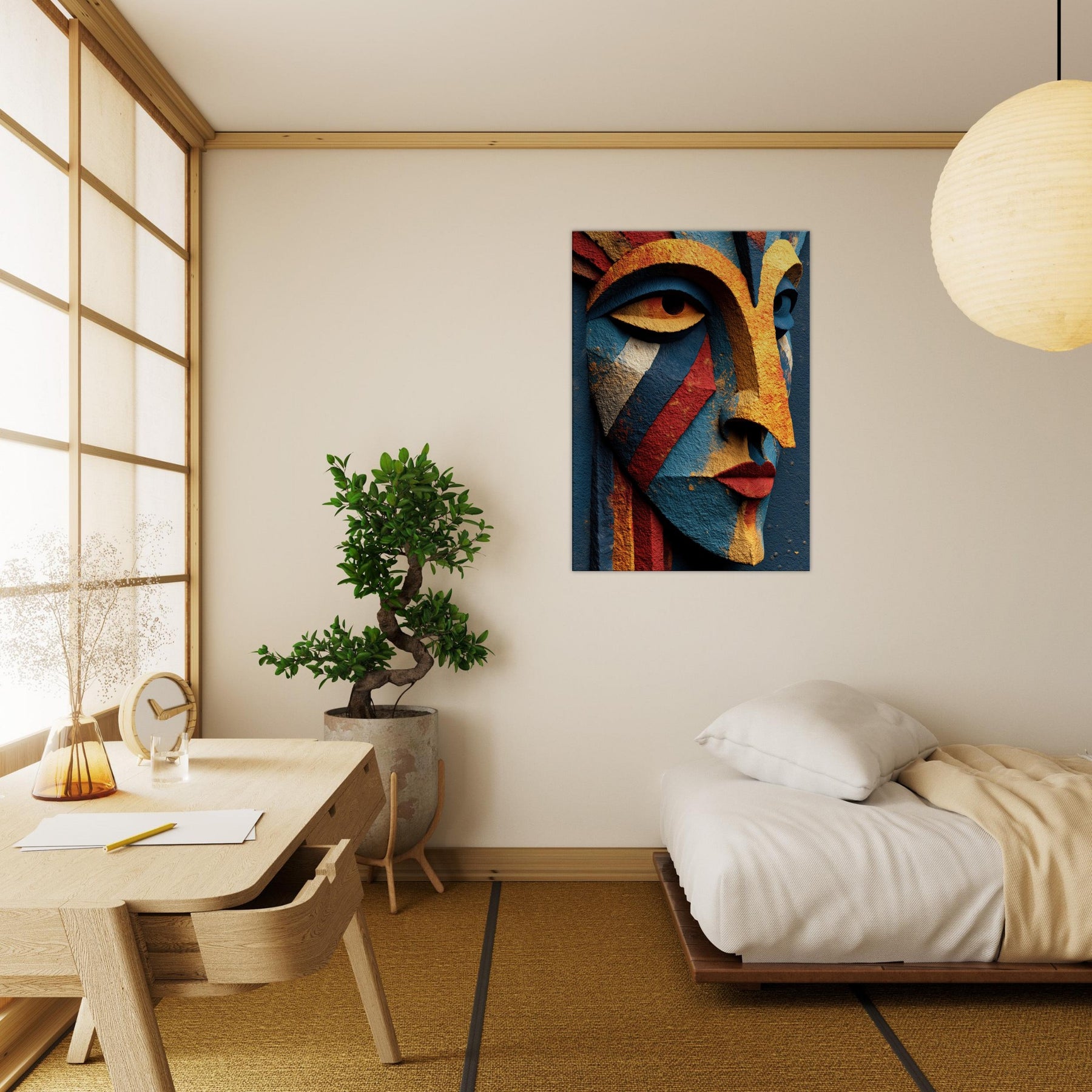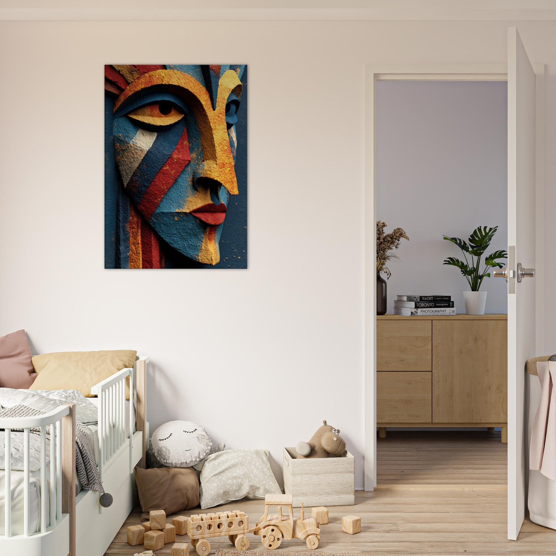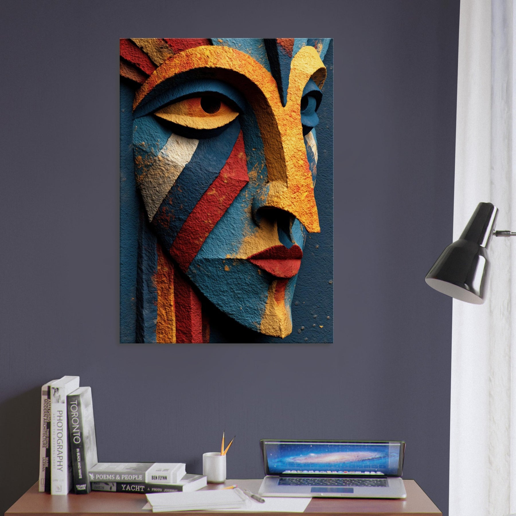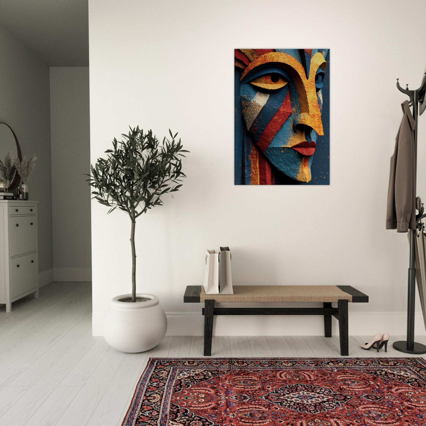 Tribal Mask invites the room to breathe in a symphony of color and contour. This abstract composition, anchored by the primary subject of a Tribal Mask, folds bold blues, sunlit yellows, and crimson accents into a tactile surface that seems to pulse with memory and rhythm. The layered facets catch light at different angles, creating a living sculpture that shifts with mood from intimate evenings to bright afternoon gatherings. Hang it where conversation lingers, and watch the space feel more deliberate, immersive, and alive.