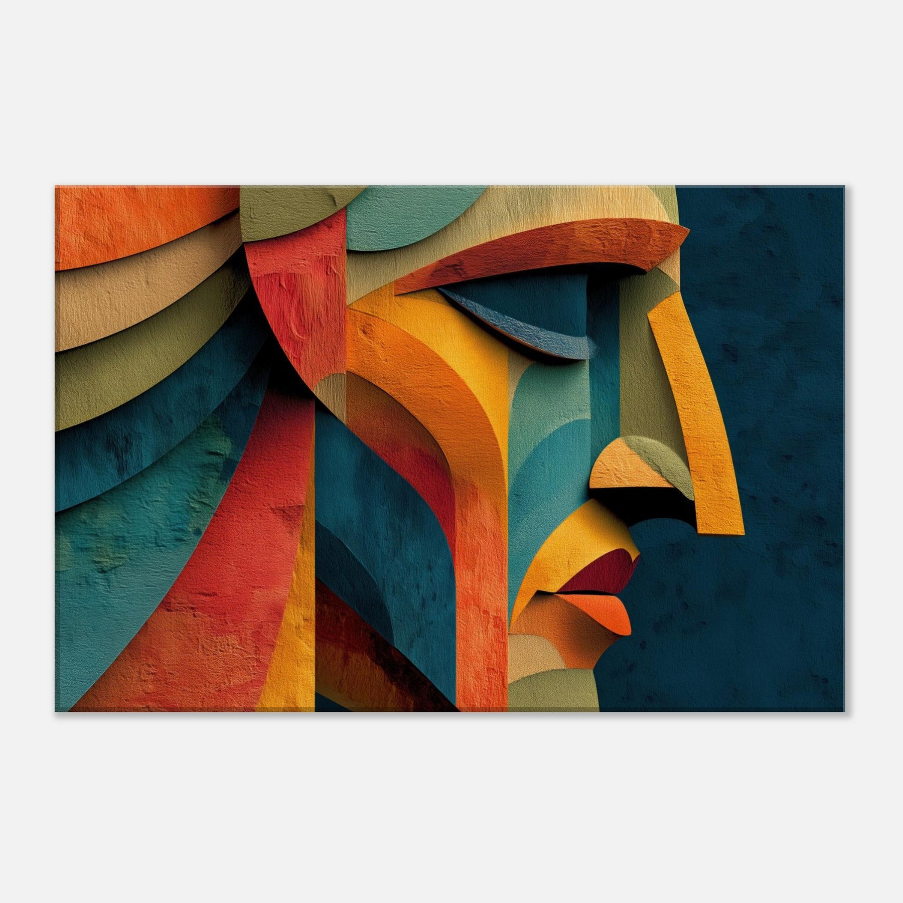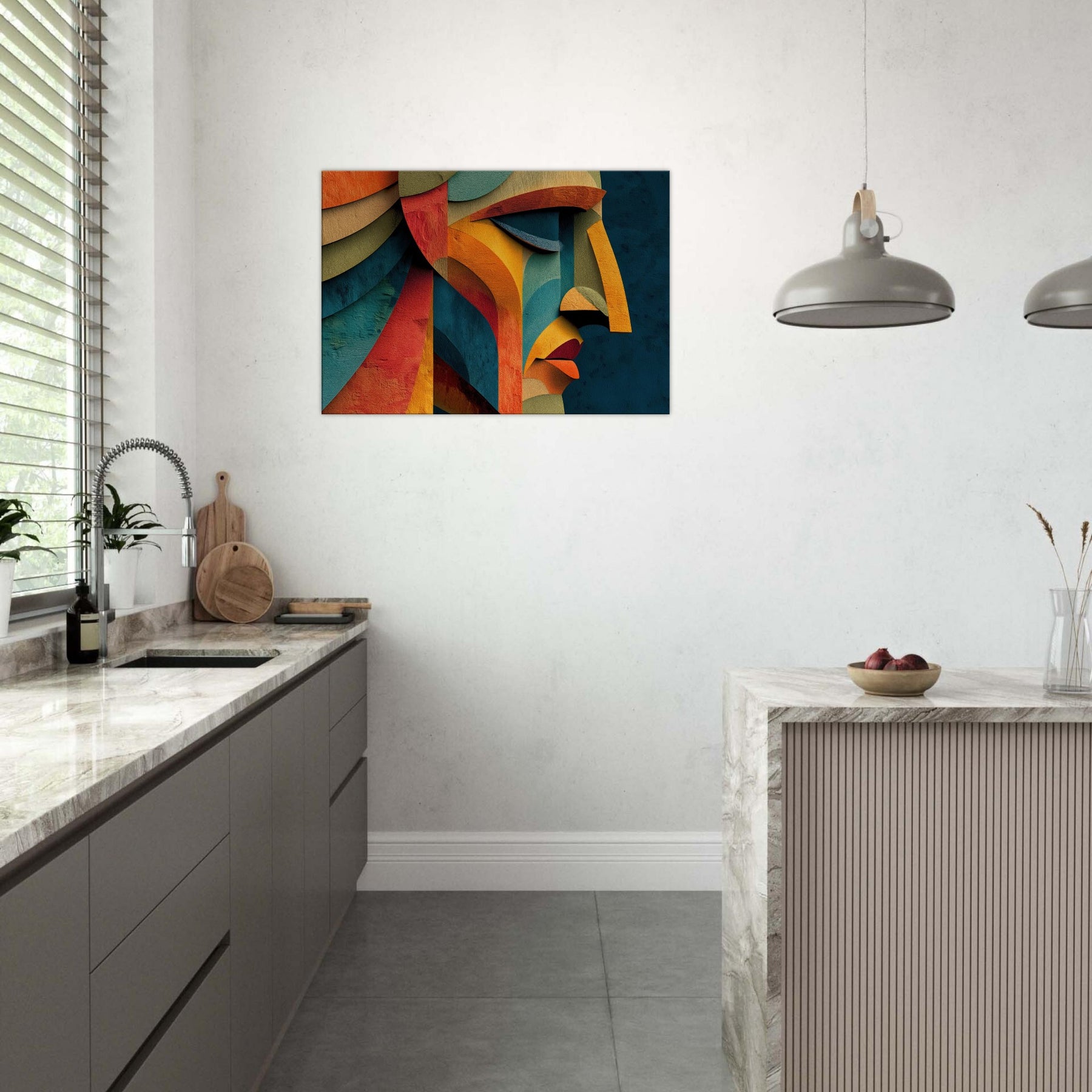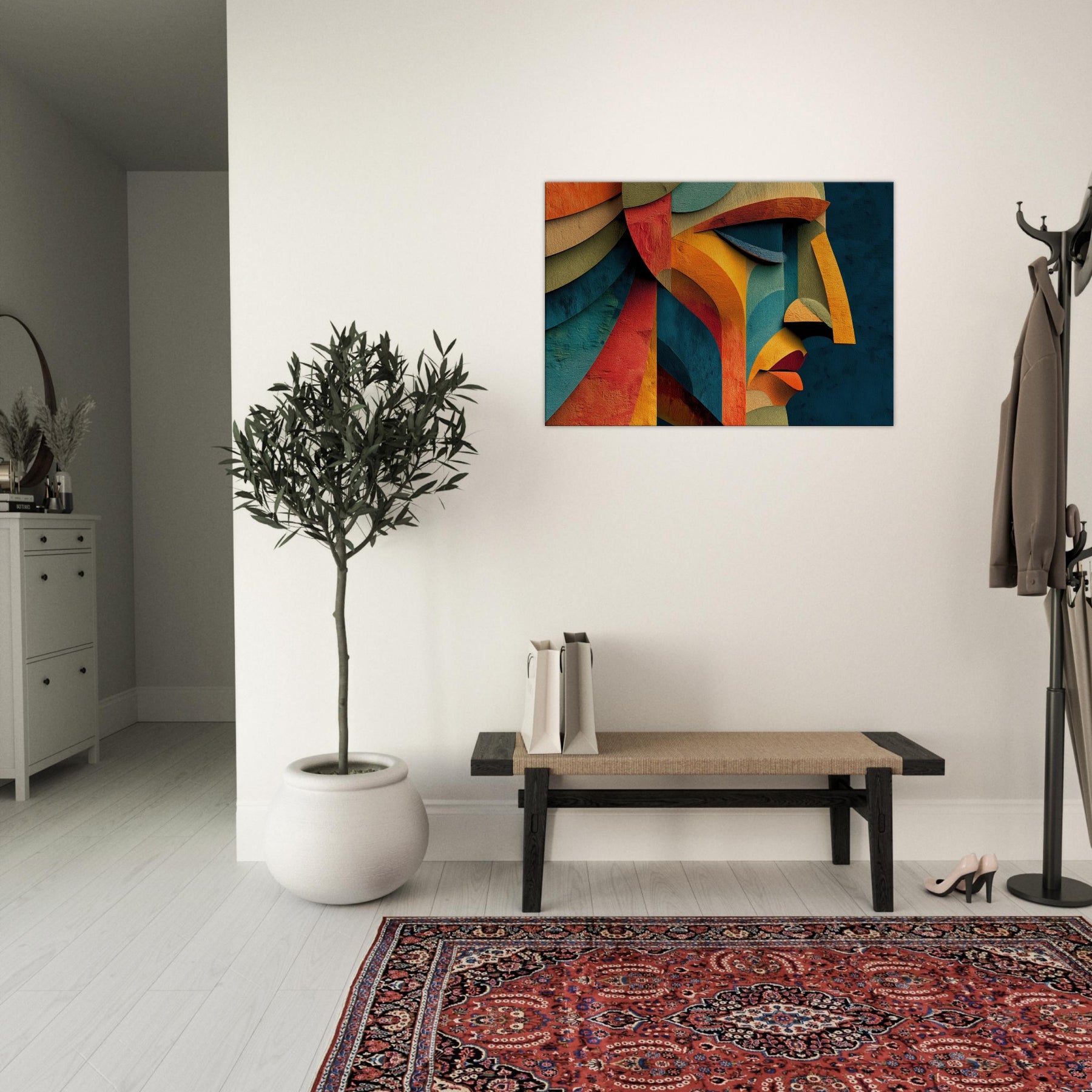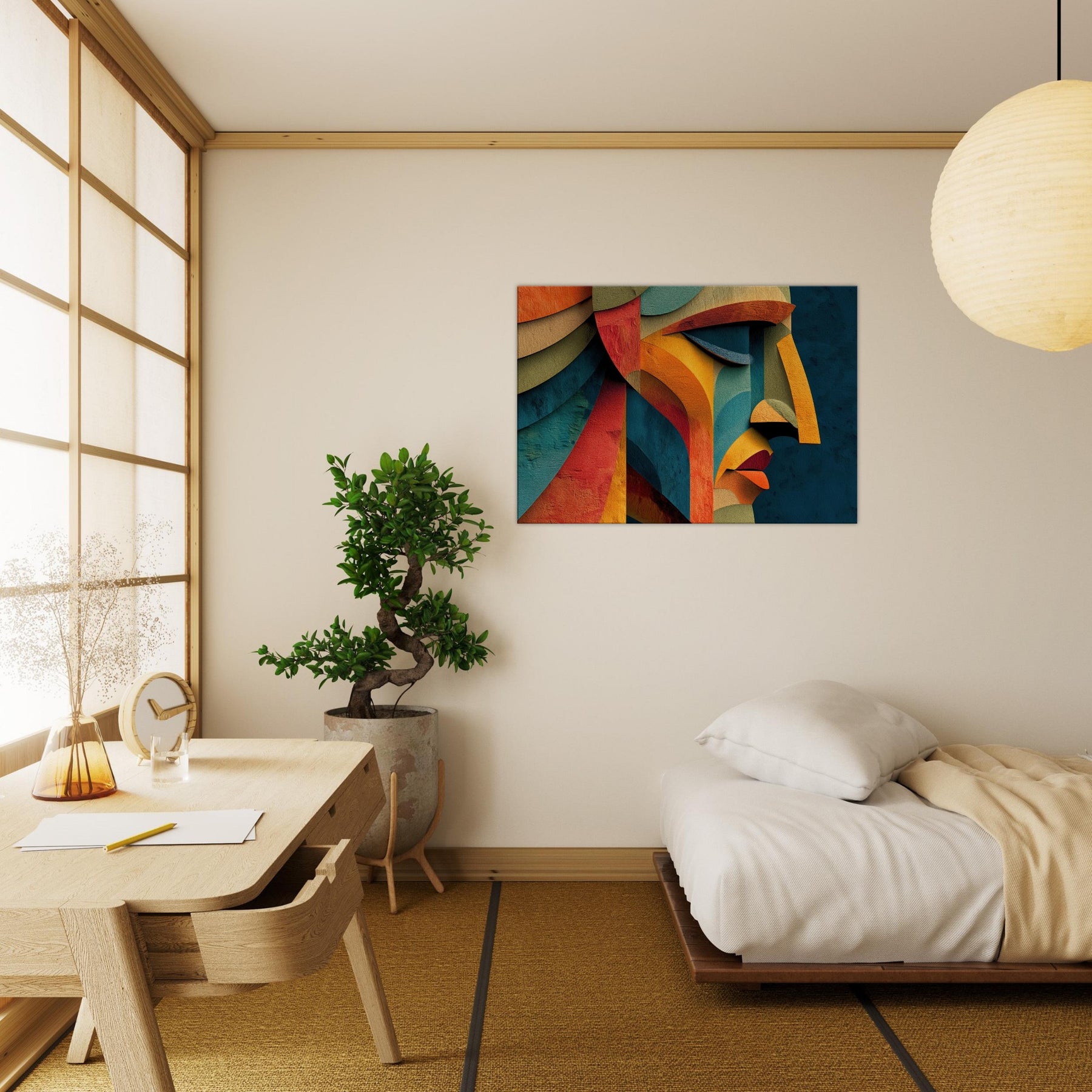 Whispers of form converge in this abstract composition, where a solitary Mask (Neutral Theater) Silhouette moves between shadow and light. The layered arcs and warm cool palette invite a slow gaze, as if a stage curtain drifts open in a quiet, floating room. This piece makes a living space feel cinematic balanced, mysterious, and alive with color memory. Hang it above a sofa or entryway to cast calm, sculptural shadows; it sharpens conversation and becomes a soft, poetic focal point in any modern interior.