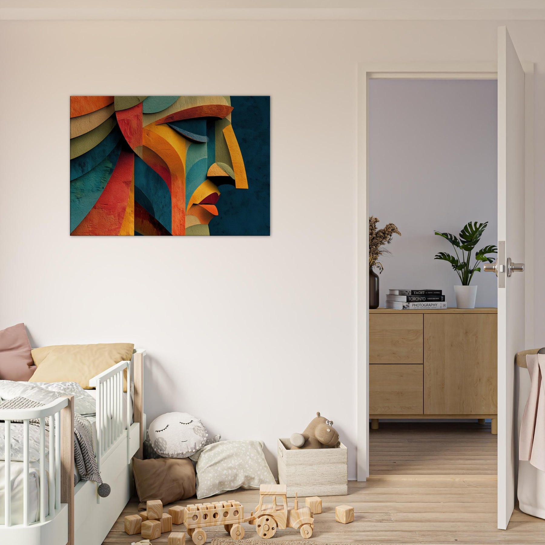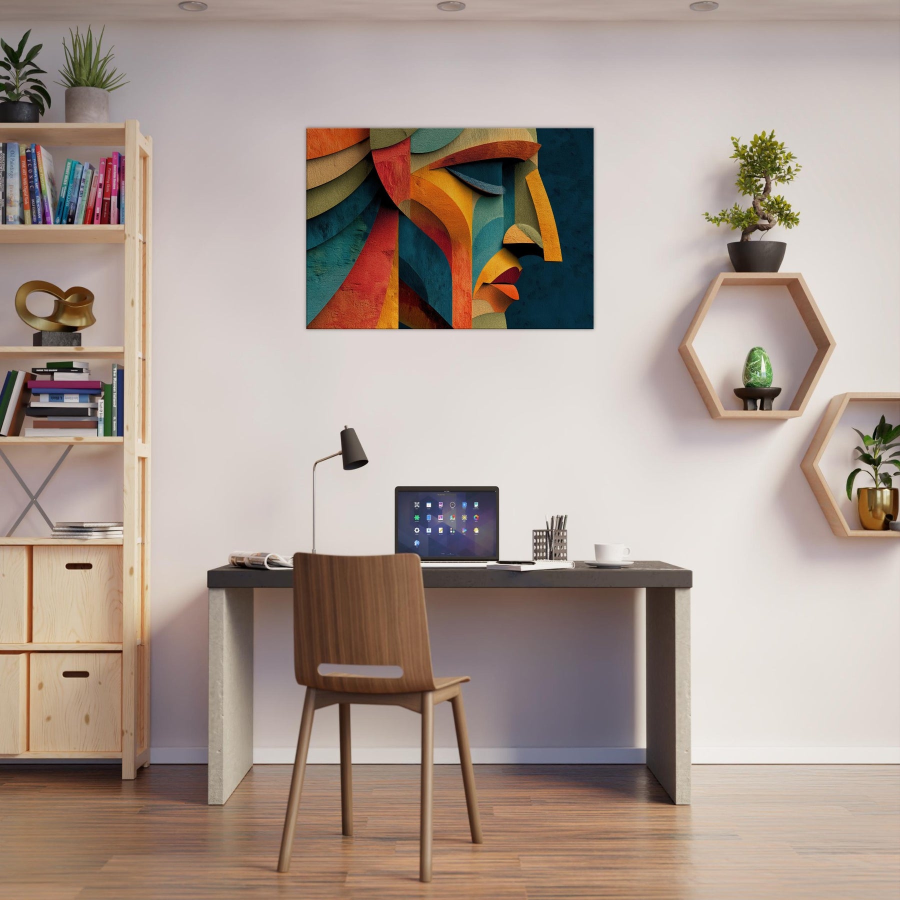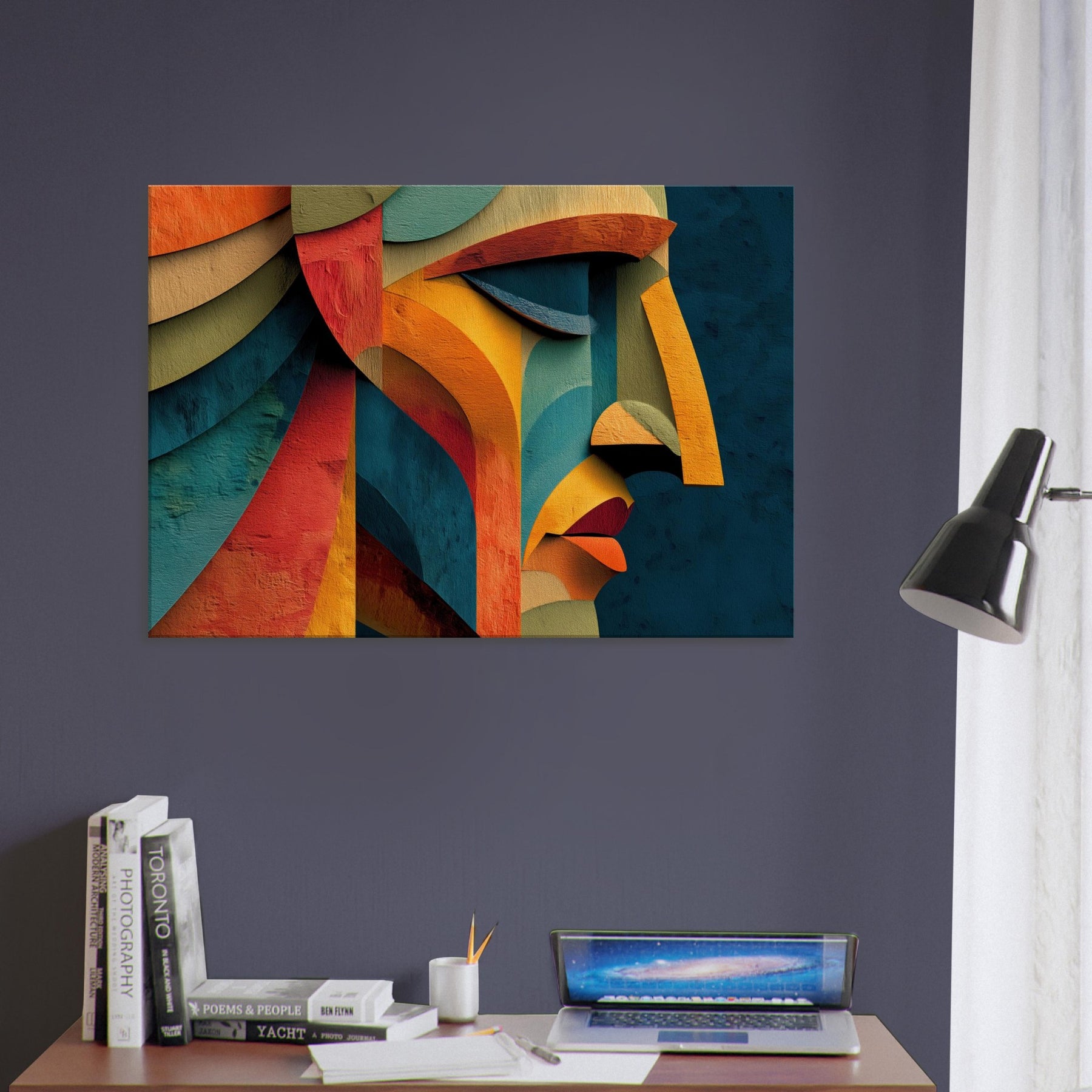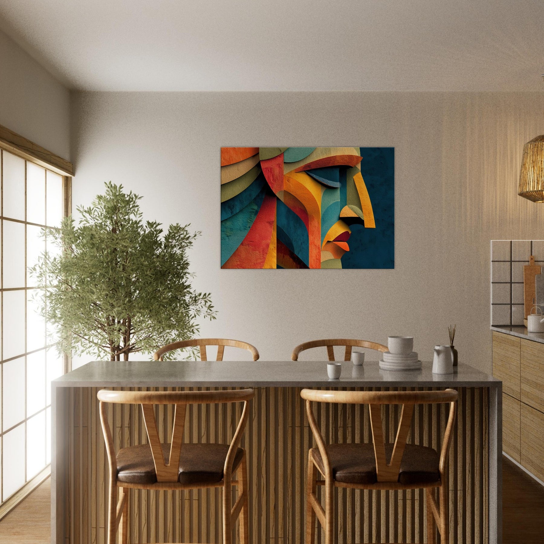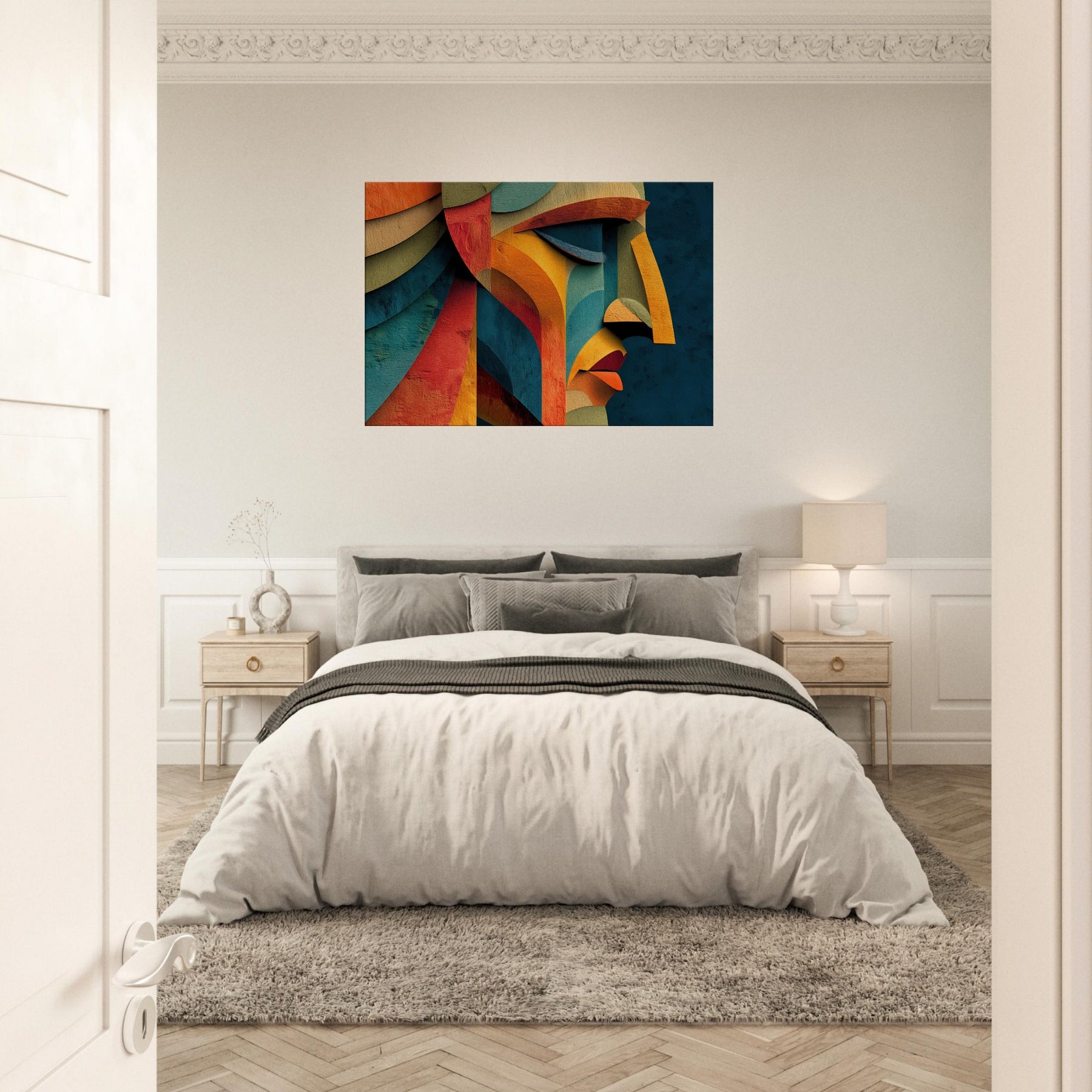 Whispers of form converge in this abstract composition, where a solitary Mask (Neutral Theater) Silhouette moves between shadow and light. The layered arcs and warm cool palette invite a slow gaze, as if a stage curtain drifts open in a quiet, floating room. This piece makes a living space feel cinematic balanced, mysterious, and alive with color memory. Hang it above a sofa or entryway to cast calm, sculptural shadows; it sharpens conversation and becomes a soft, poetic focal point in any modern interior.