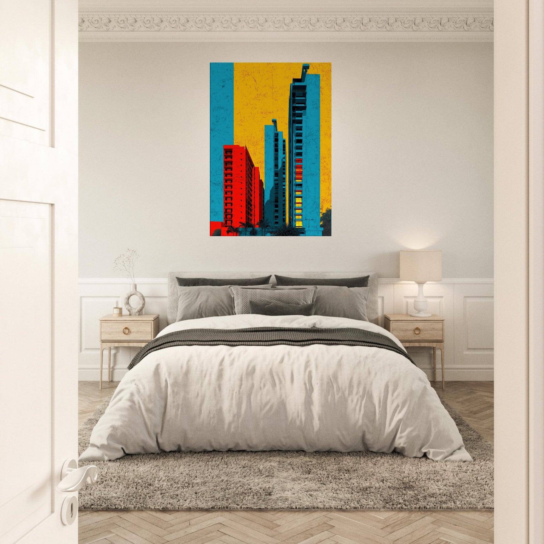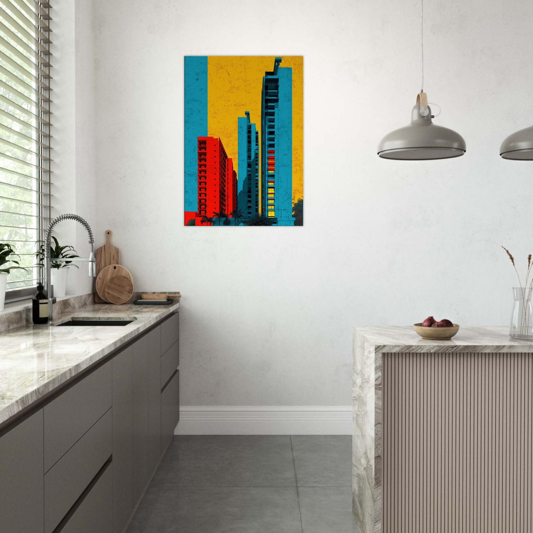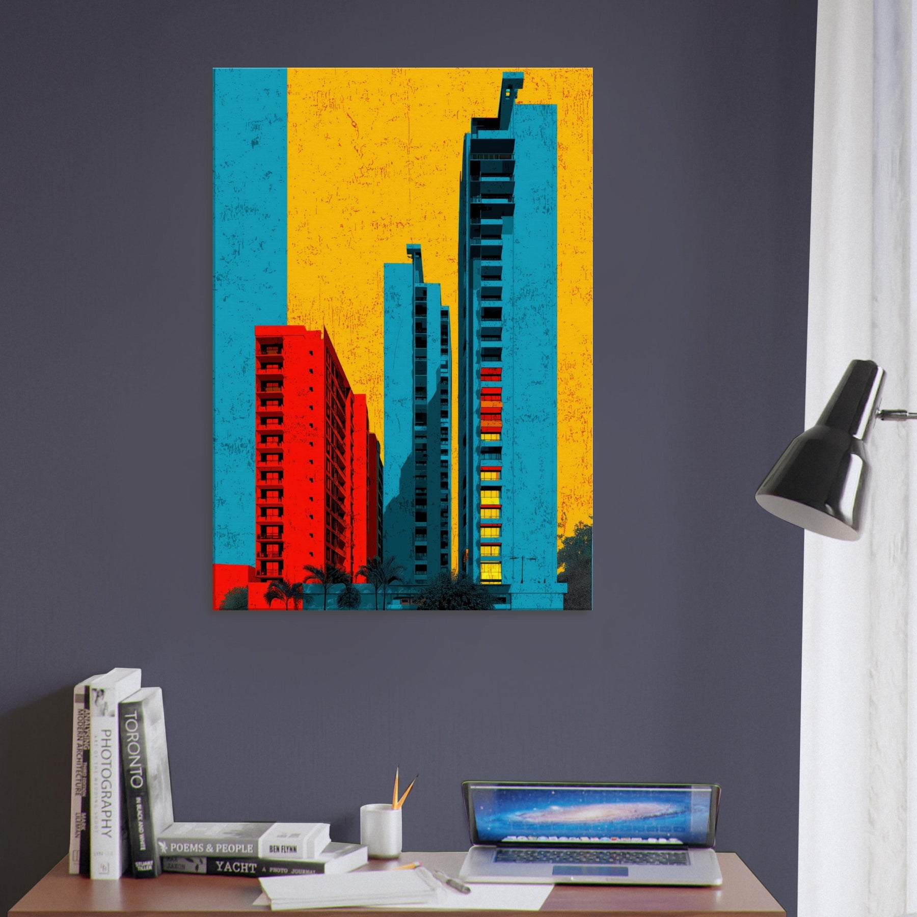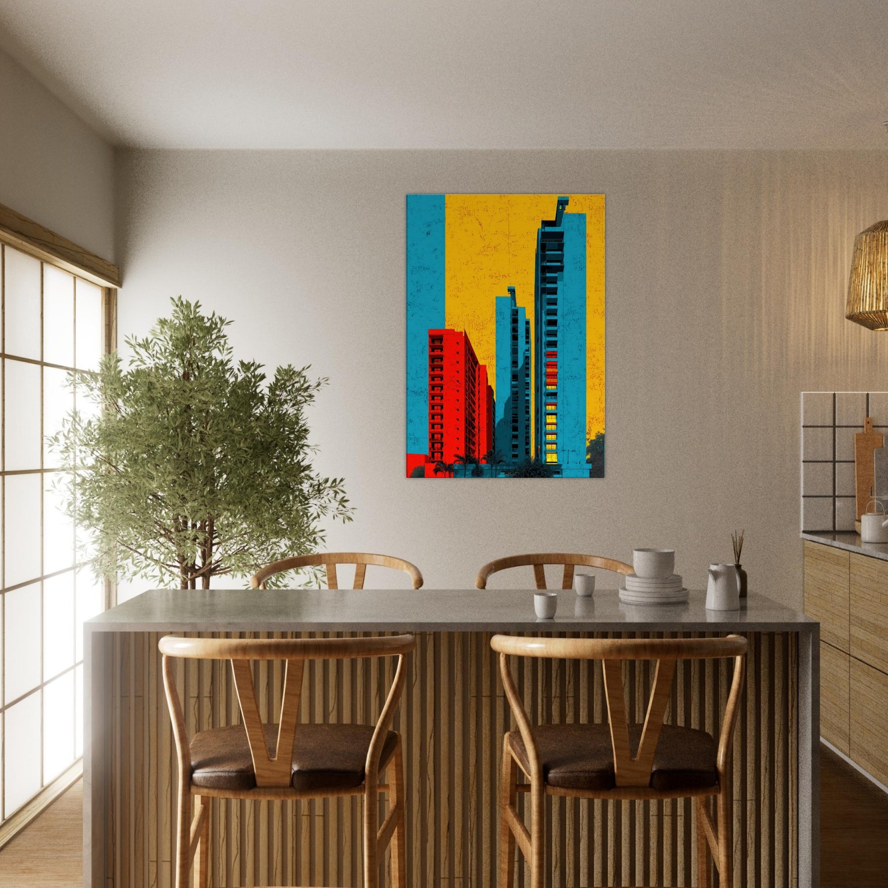Immerse your space in a sun soaked Miami reverie, where towers rise like bold color blocks and the street life hums beneath an electric horizon. This abstract cityscape sways with coral reds, electric blues, and warm yellows, inviting you to breathe in the heat of late afternoons and the shimmer of neon nights. The piece lends rhythm to living rooms and studios alike, turning plain walls into a cinematic doorway to warmth, movement, and urban dreamscapes.