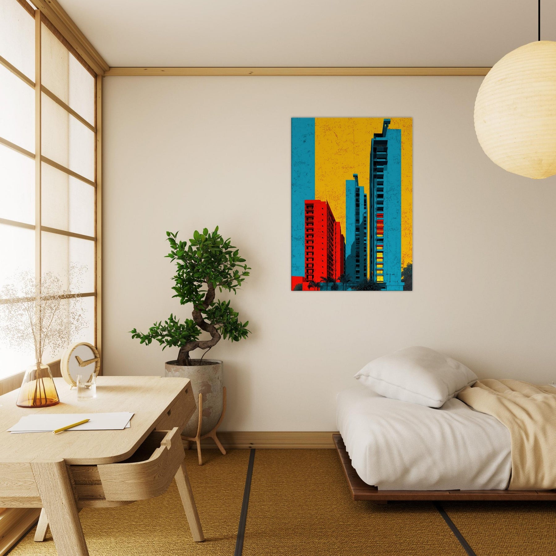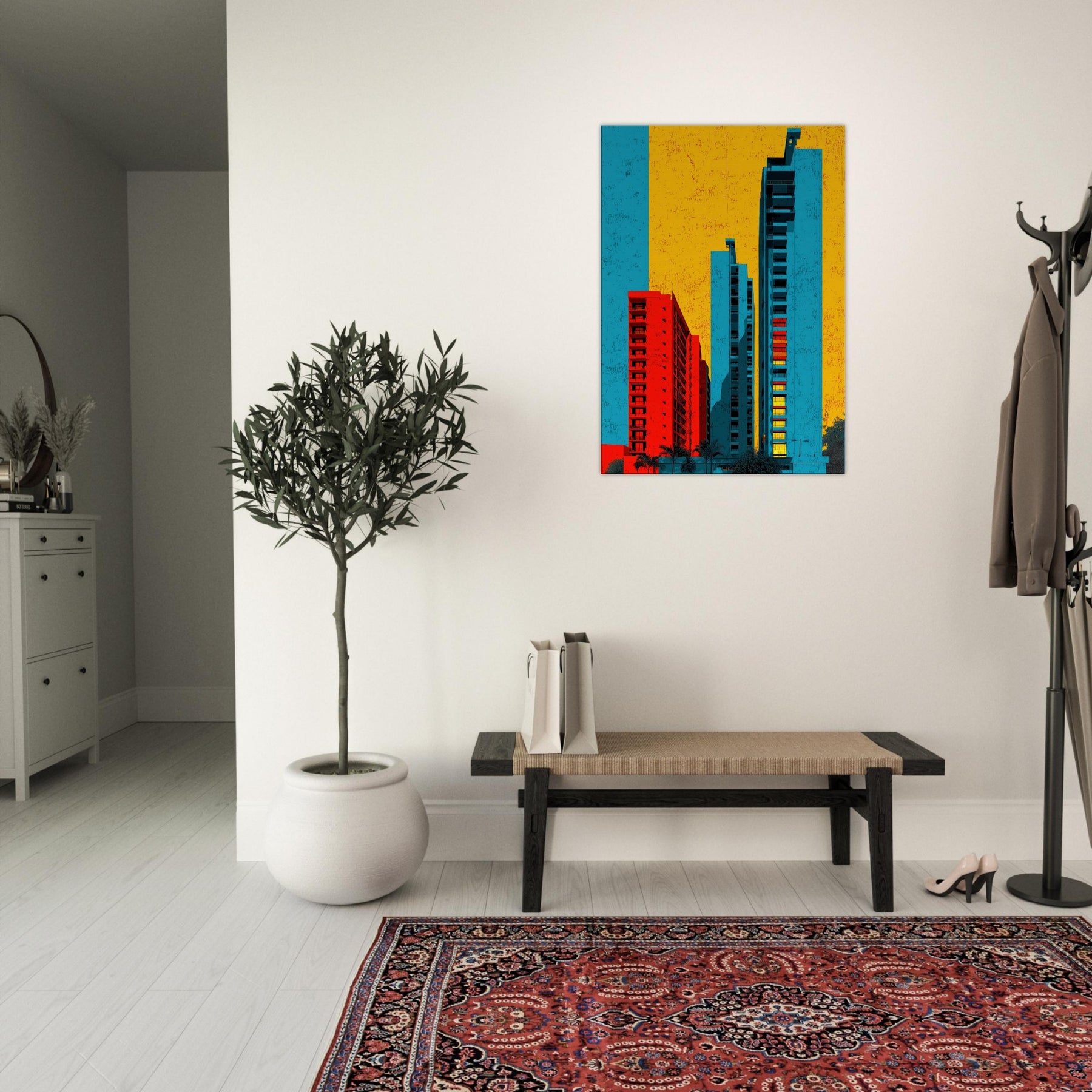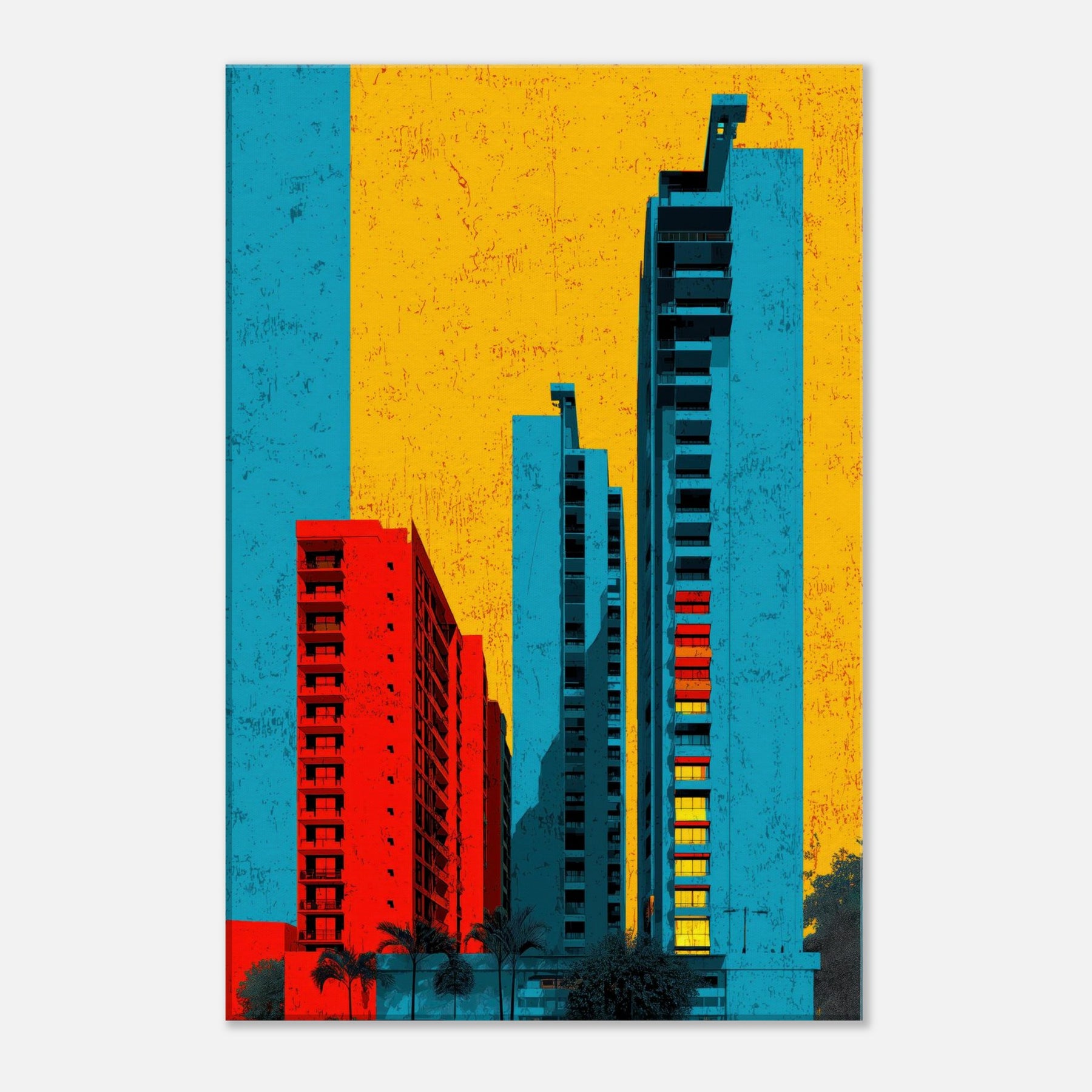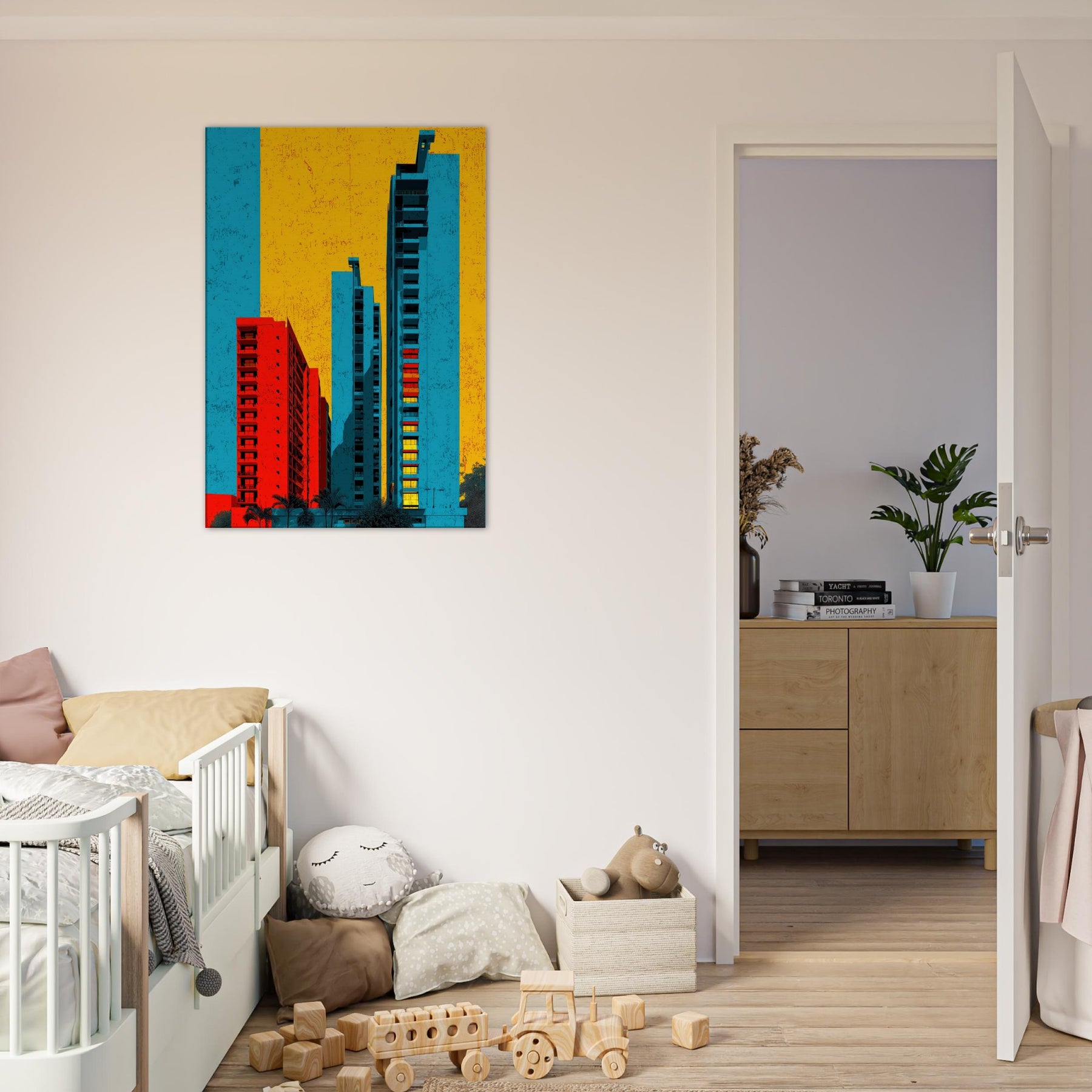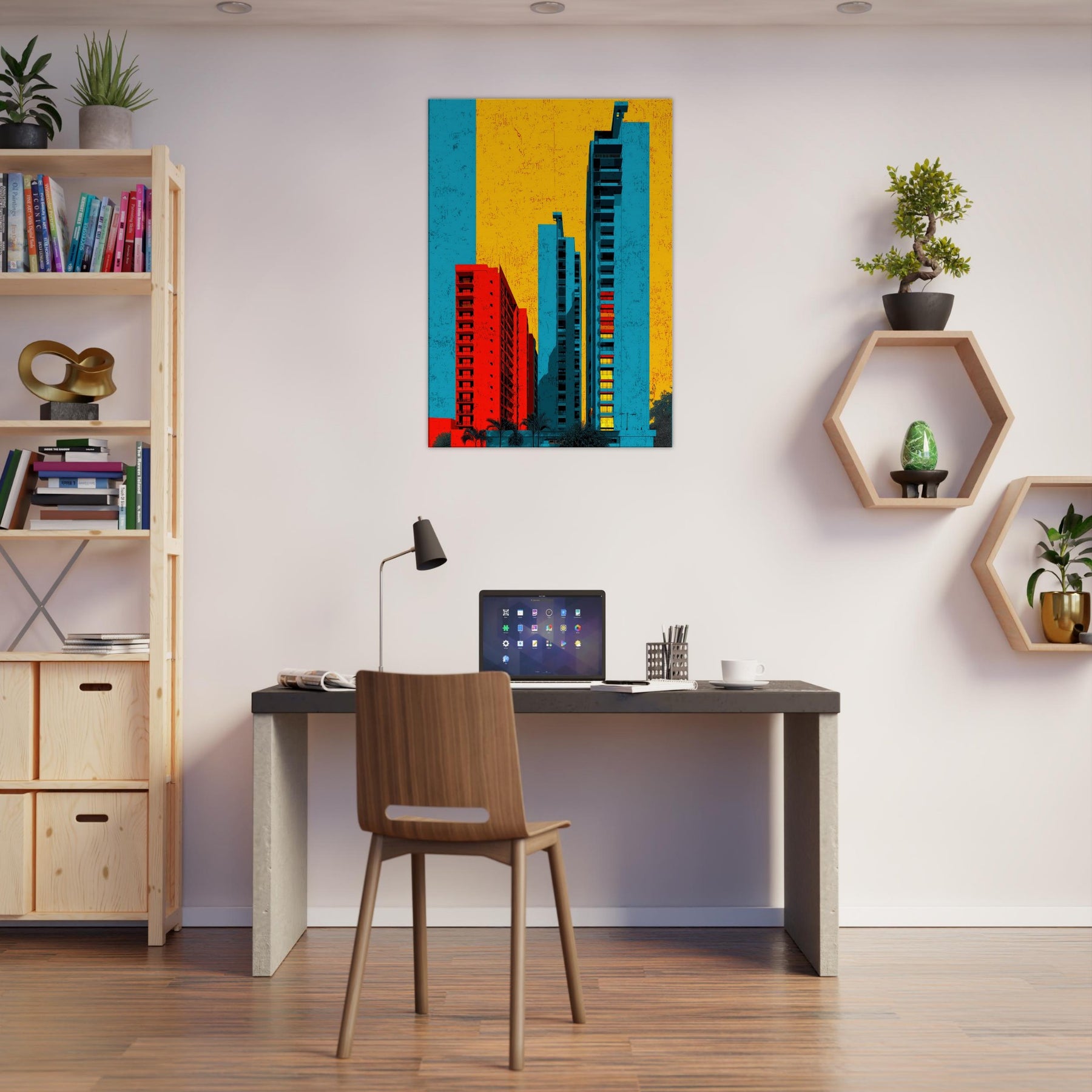 Immerse your space in a sun soaked Miami reverie, where towers rise like bold color blocks and the street life hums beneath an electric horizon. This abstract cityscape sways with coral reds, electric blues, and warm yellows, inviting you to breathe in the heat of late afternoons and the shimmer of neon nights. The piece lends rhythm to living rooms and studios alike, turning plain walls into a cinematic doorway to warmth, movement, and urban dreamscapes.