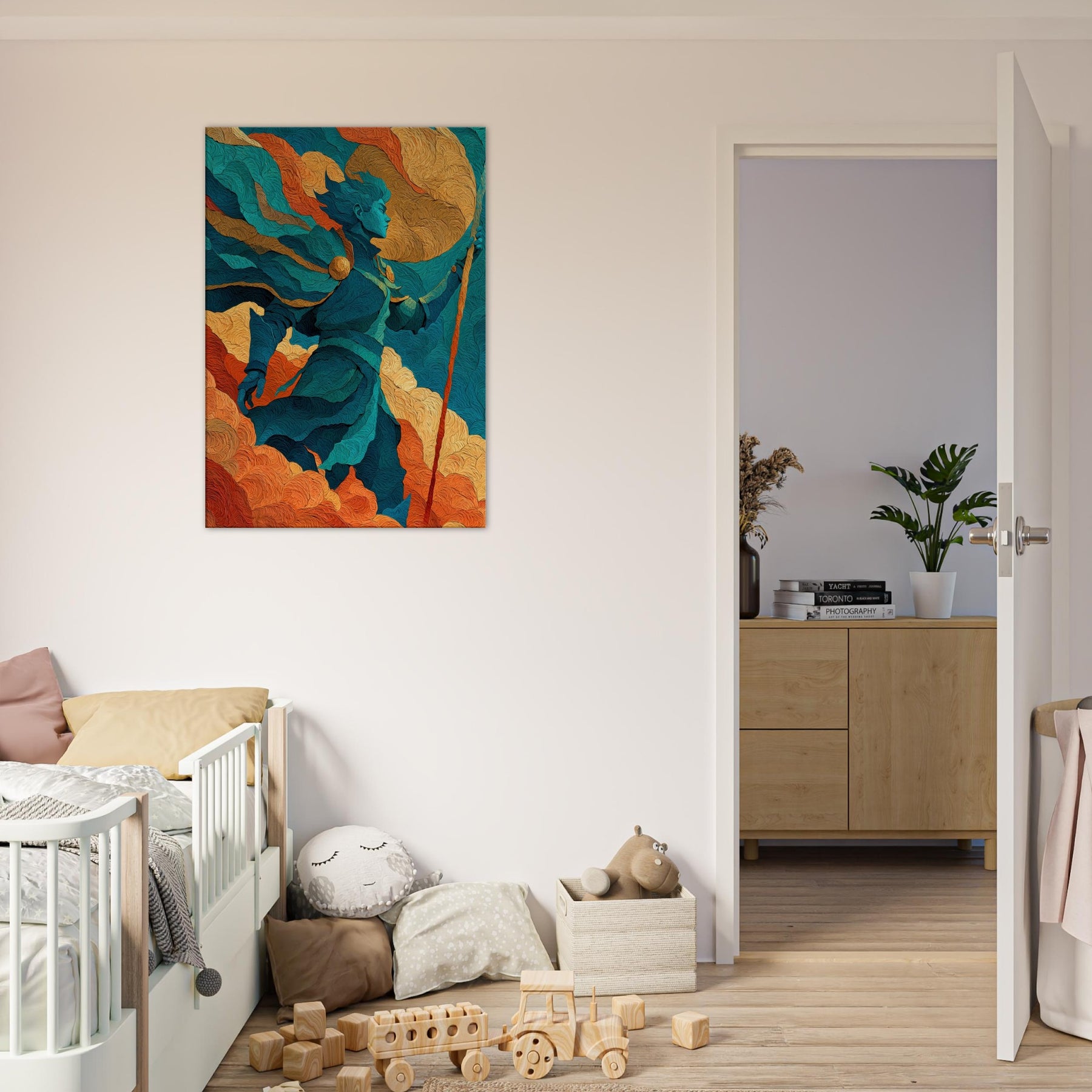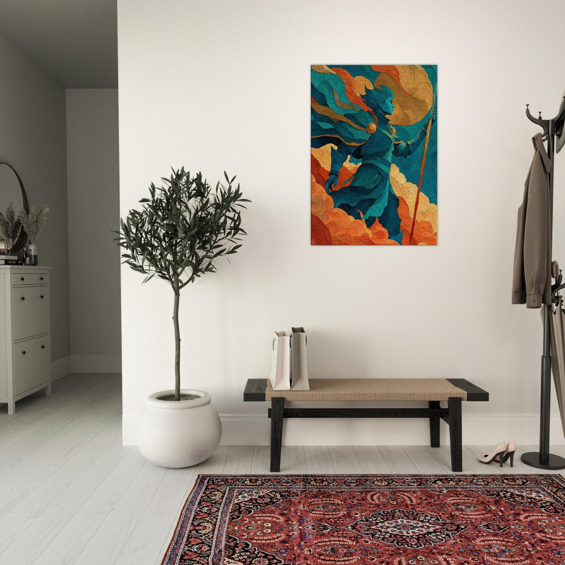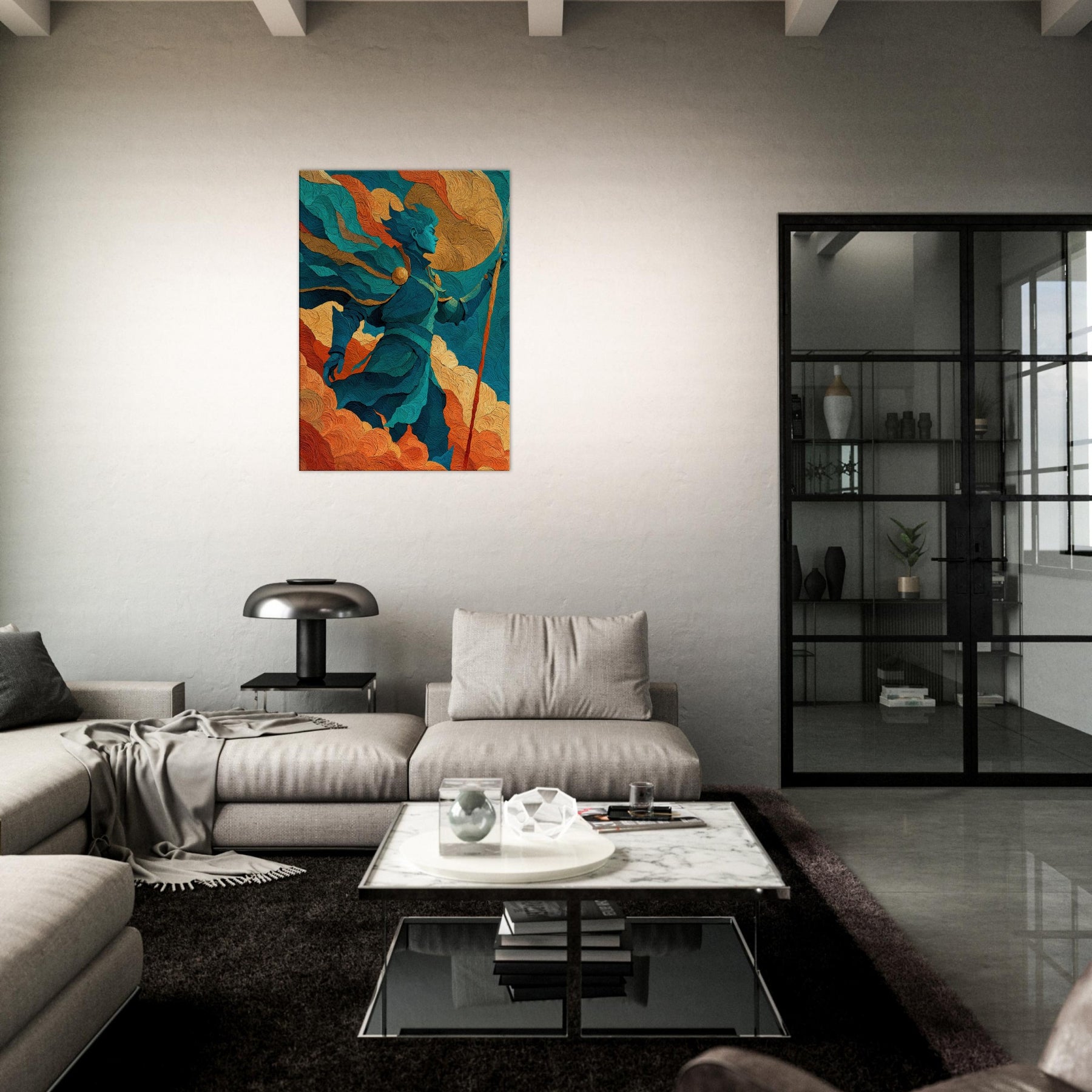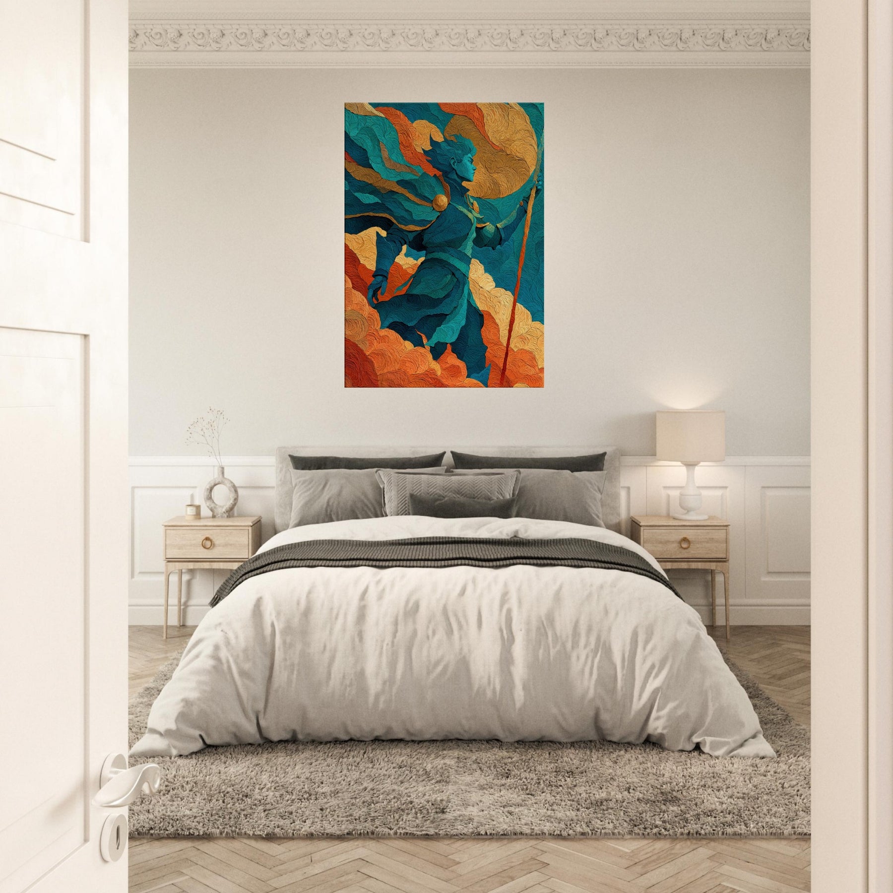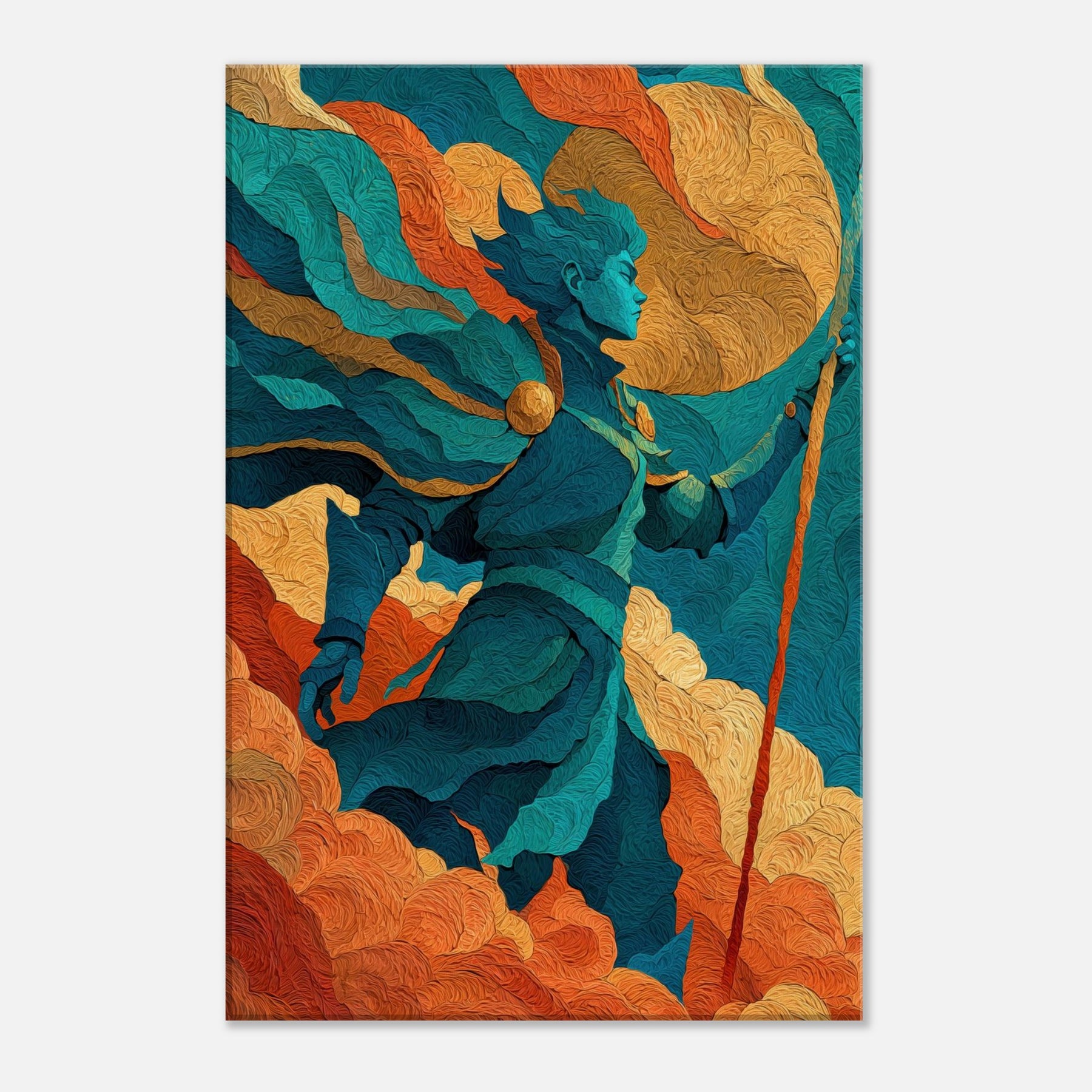 Immerse your space in a mythic breeze with this vivid portrayal of Wukong, the Monkey King Wielding His Golden Staff Above the Clouds. The abstract swirls of teal, orange, and cobalt create a kinetic hush, a living tapestry where courage, mystery, and dawn light converge. This piece elevates a room with cinematic energy, inviting contemplation and bold color shifts while remaining harmonious with modern decor. A centerpiece that sparks conversation and inspires daily wonder.