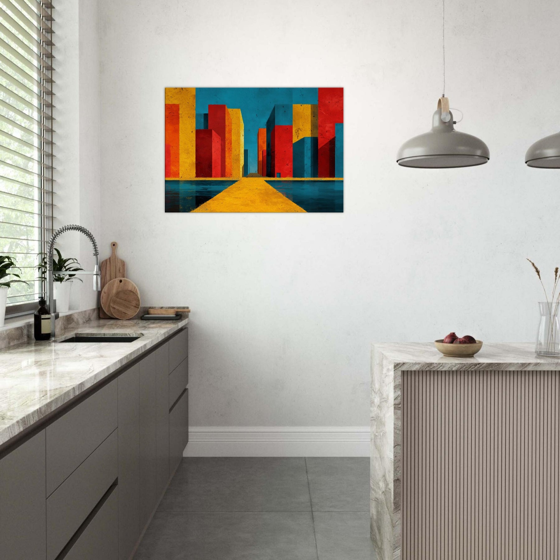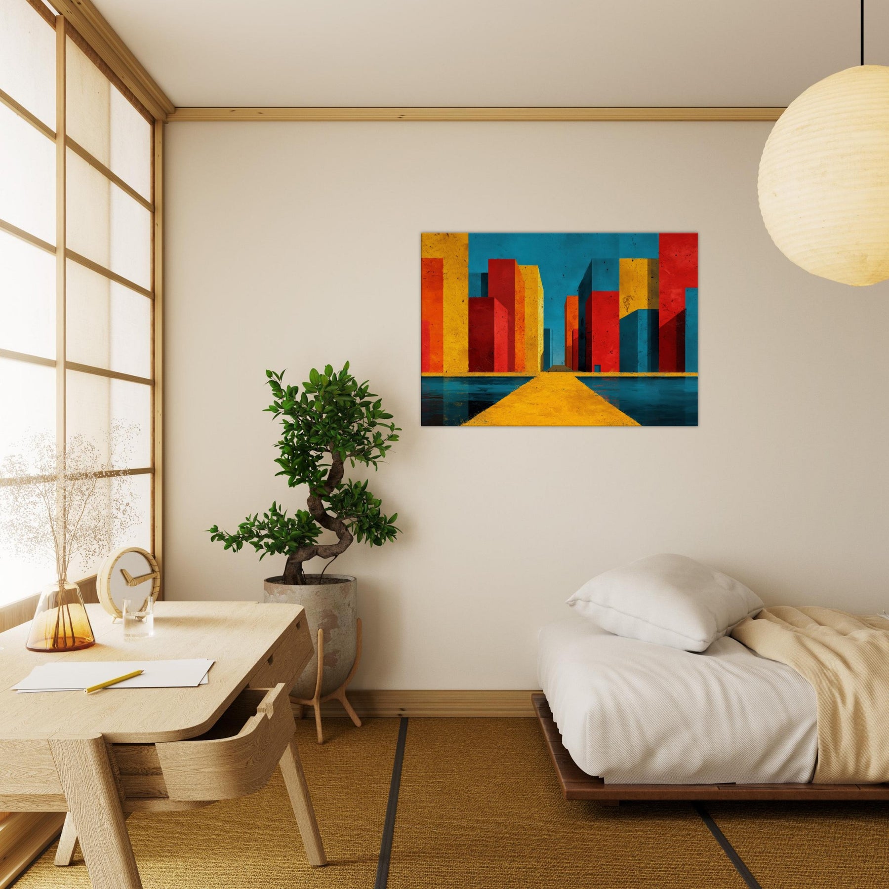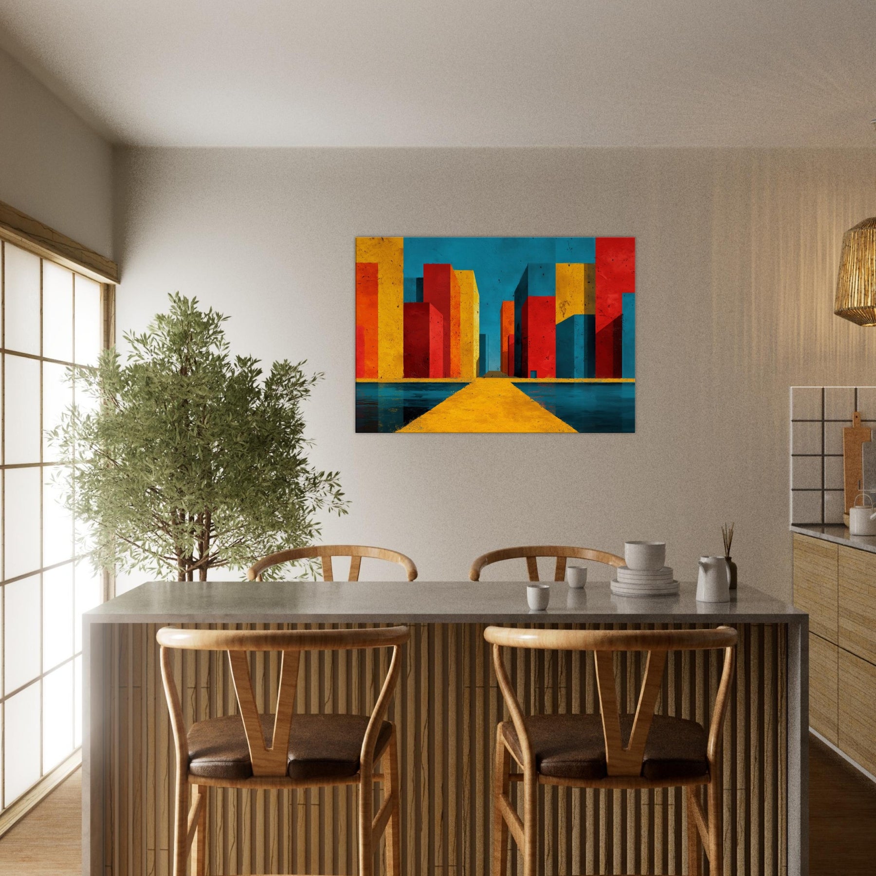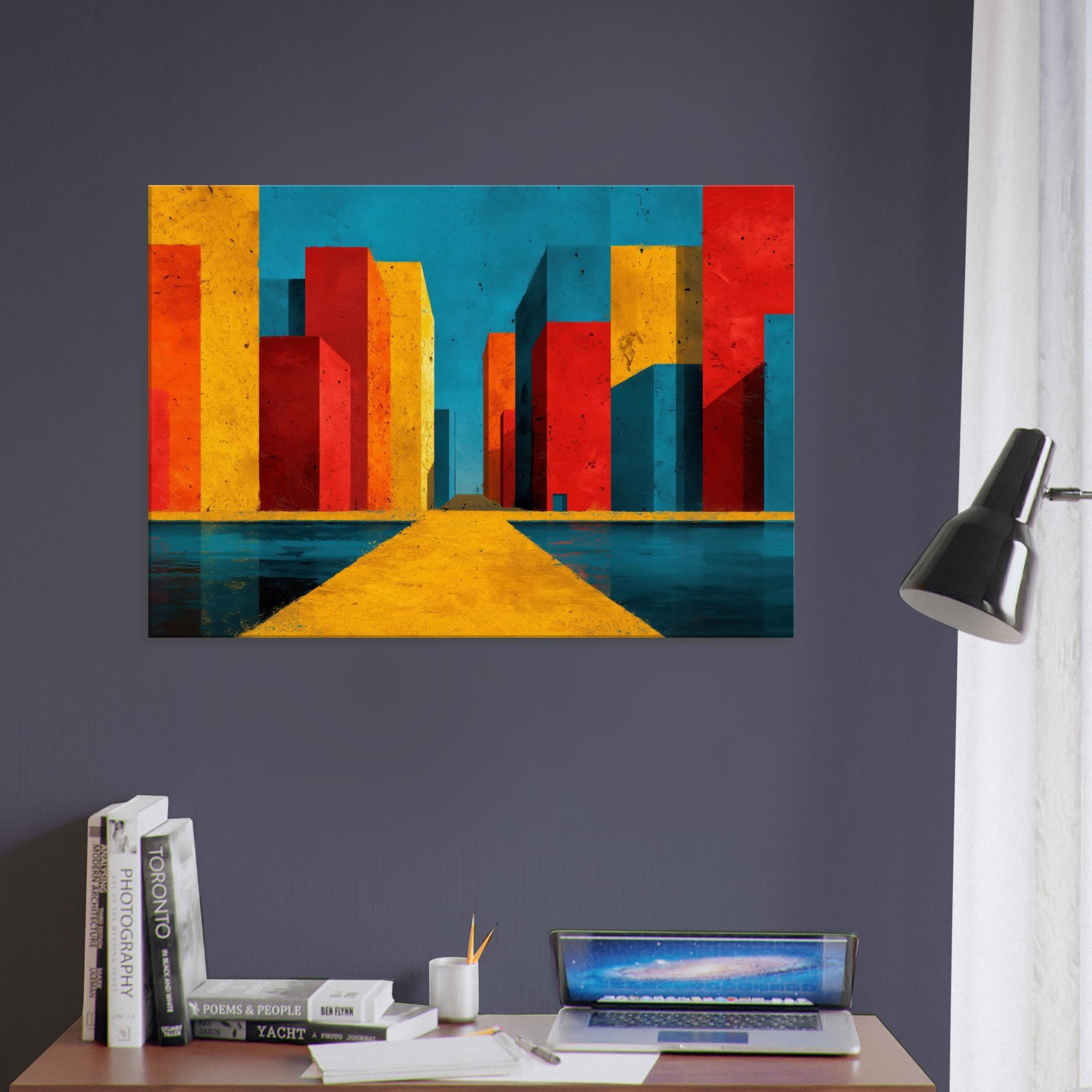Montreal unfolds as a tidal city of color and possibility, rendered in bold blocks that glow with memory and motion. This piece invites the eye to wander a luminous avenue where sunrise yellows meet cobalt shadows, and the hum of river and rooftop stairwells becomes a tactile sensation on your wall. In a living room or study, it hums with urban energy yet remains intimate, offering a calm focal point that nourishes conversation and sparks imagination.