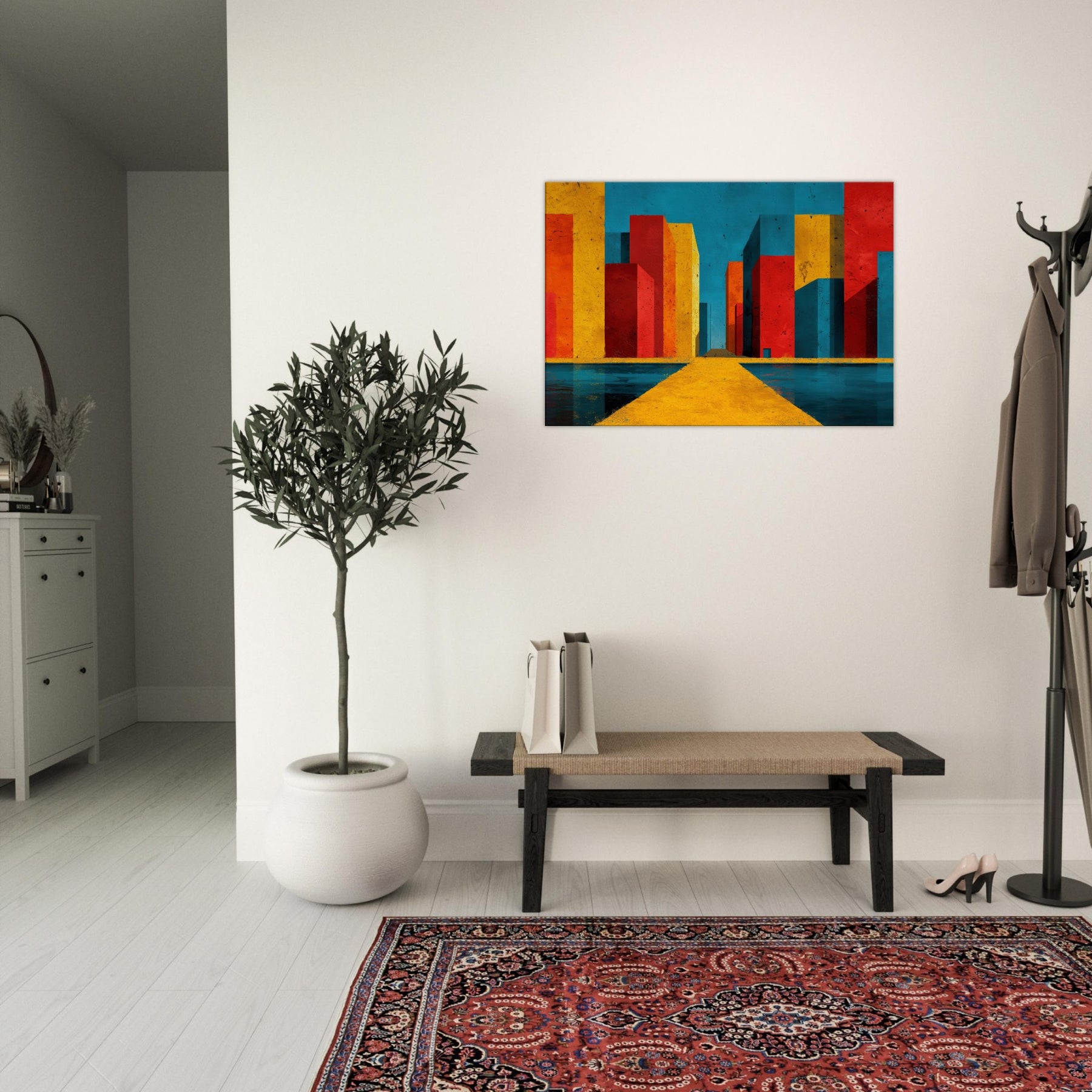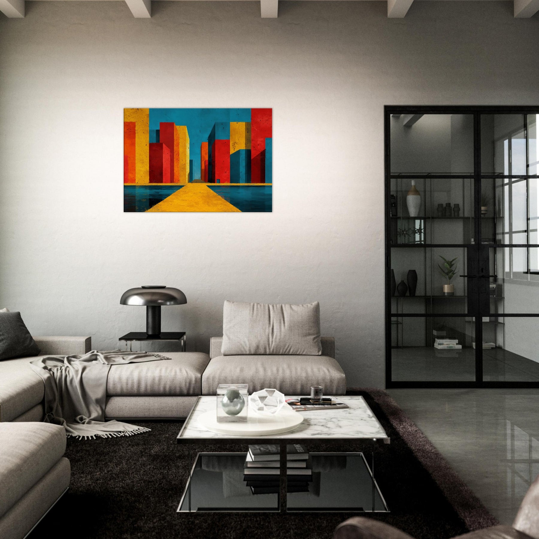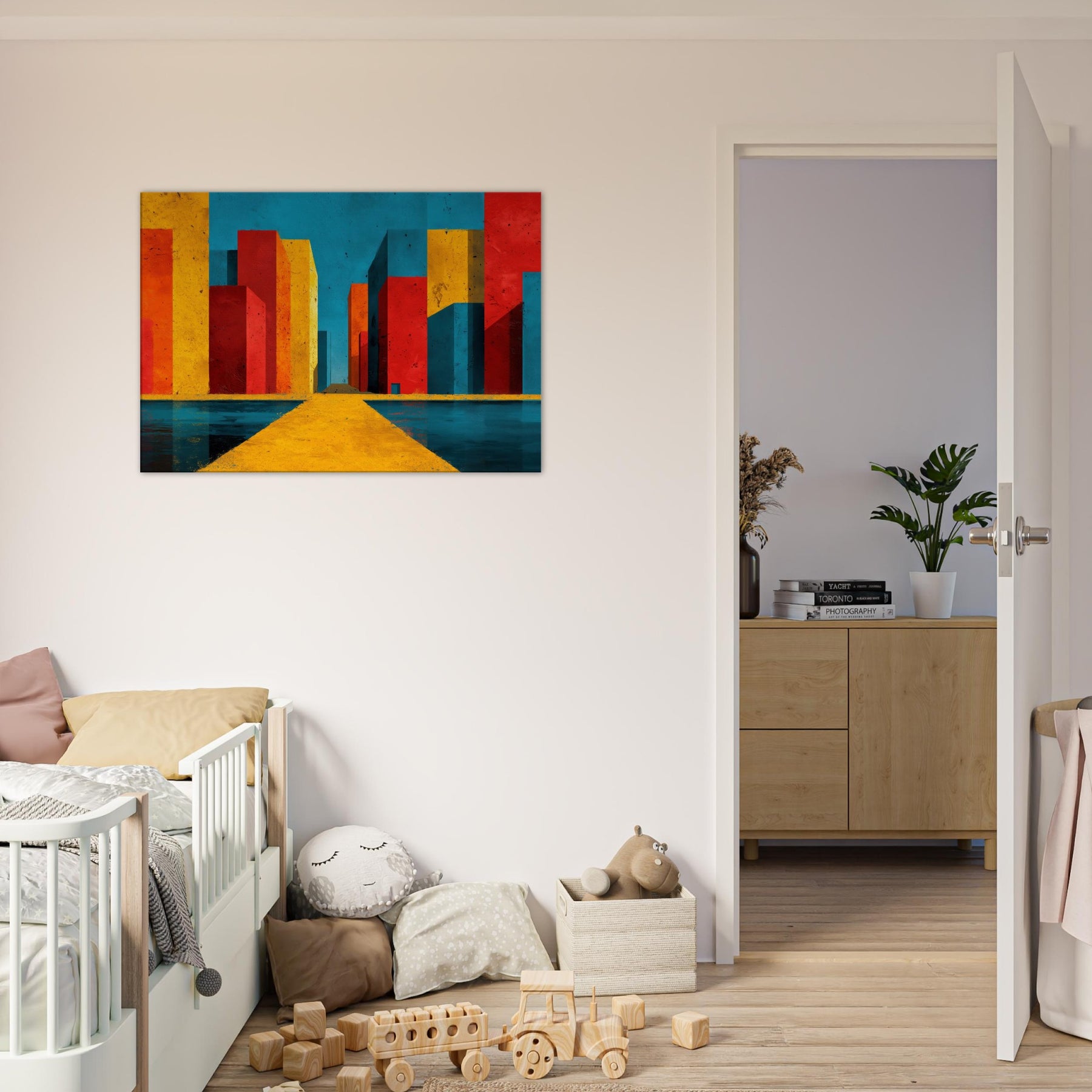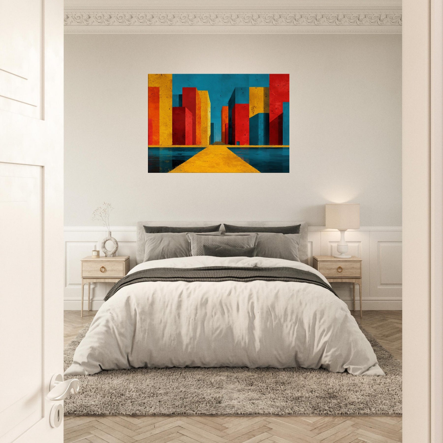 Montreal unfolds as a tidal city of color and possibility, rendered in bold blocks that glow with memory and motion. This piece invites the eye to wander a luminous avenue where sunrise yellows meet cobalt shadows, and the hum of river and rooftop stairwells becomes a tactile sensation on your wall. In a living room or study, it hums with urban energy yet remains intimate, offering a calm focal point that nourishes conversation and sparks imagination.