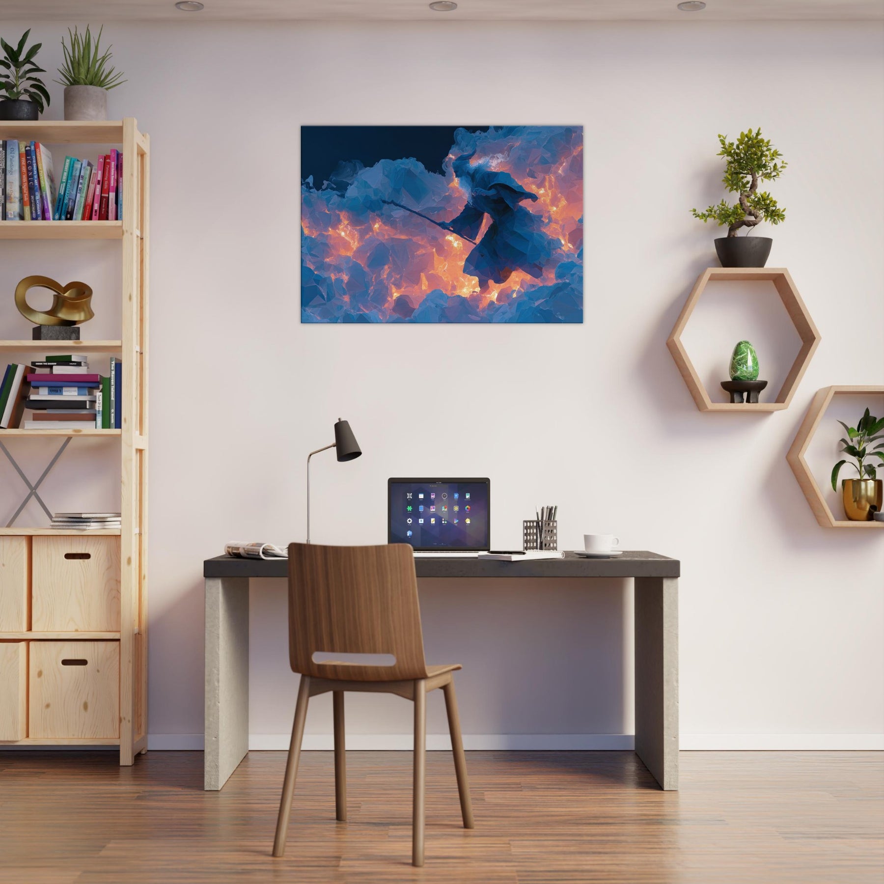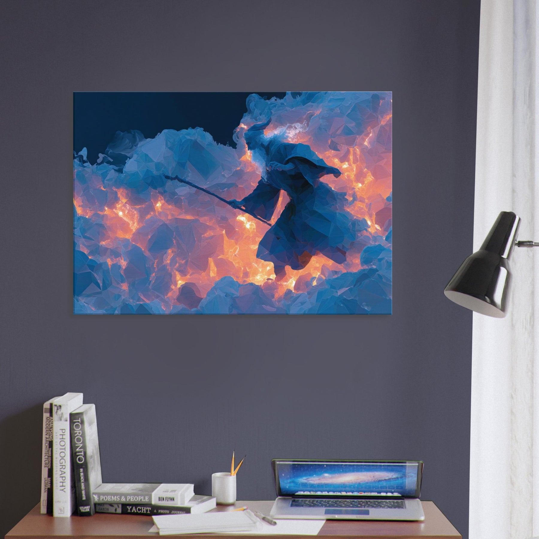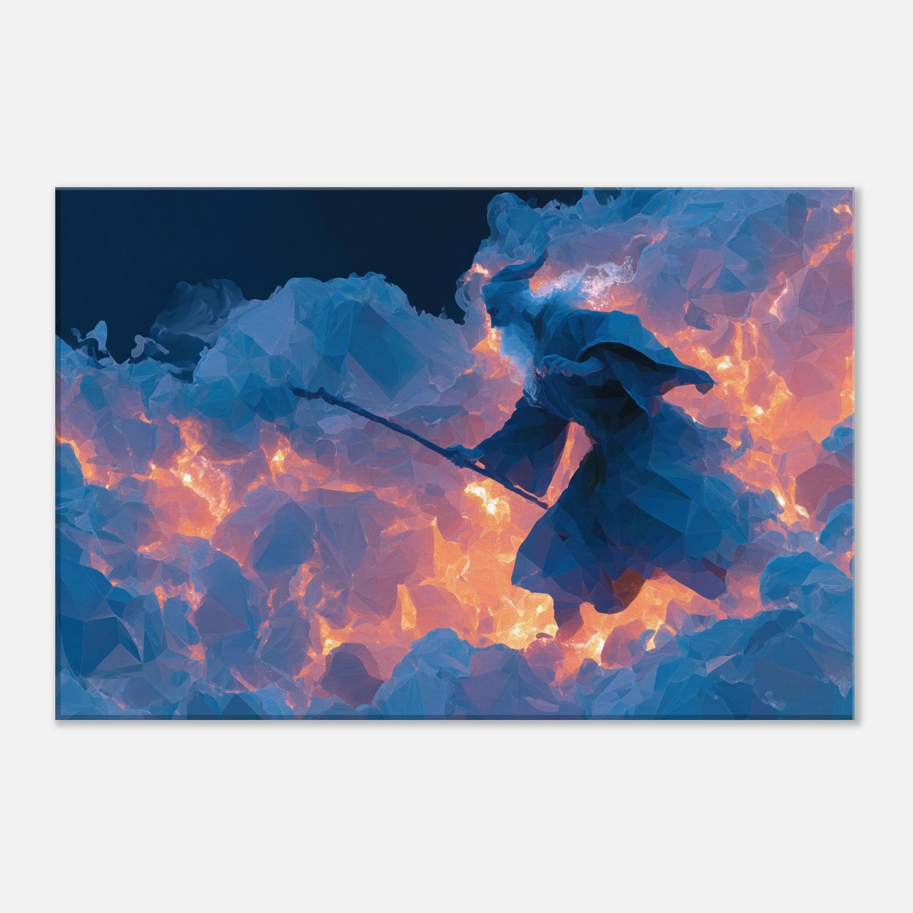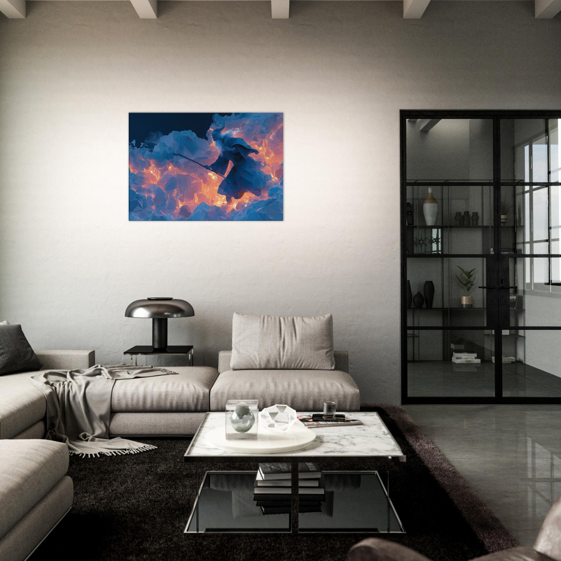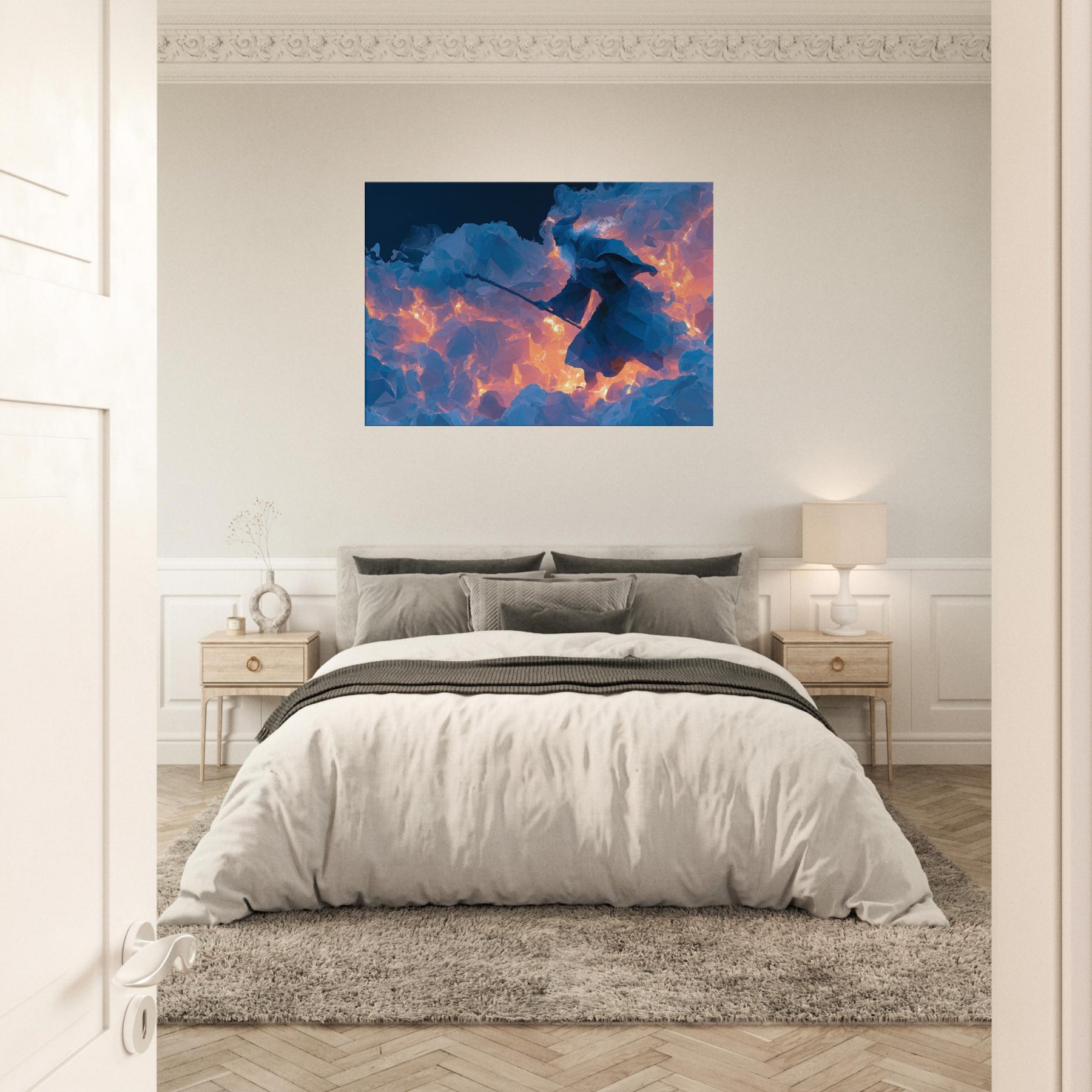 Step into a tranquil blaze of color where a Mysterious Wizard Casting Spells glides between blue frost and ember gold. This abstract meditation on form and light awakens ancient magic in the heart of your room. The piece breathes warmth into cool corners, turning dusk into invitation and conversation into quiet awe. Let the spellbinding movement drift across your wall, guiding the eye with luminous swirls and soft edges that feel both mythical and intimate.