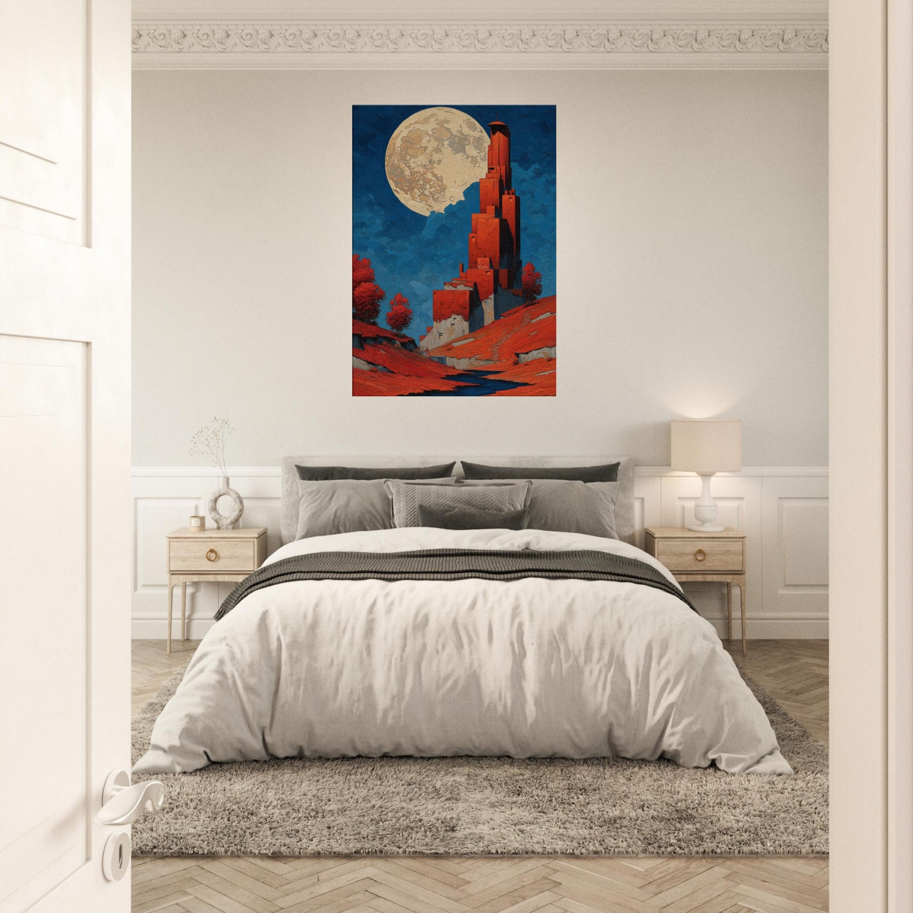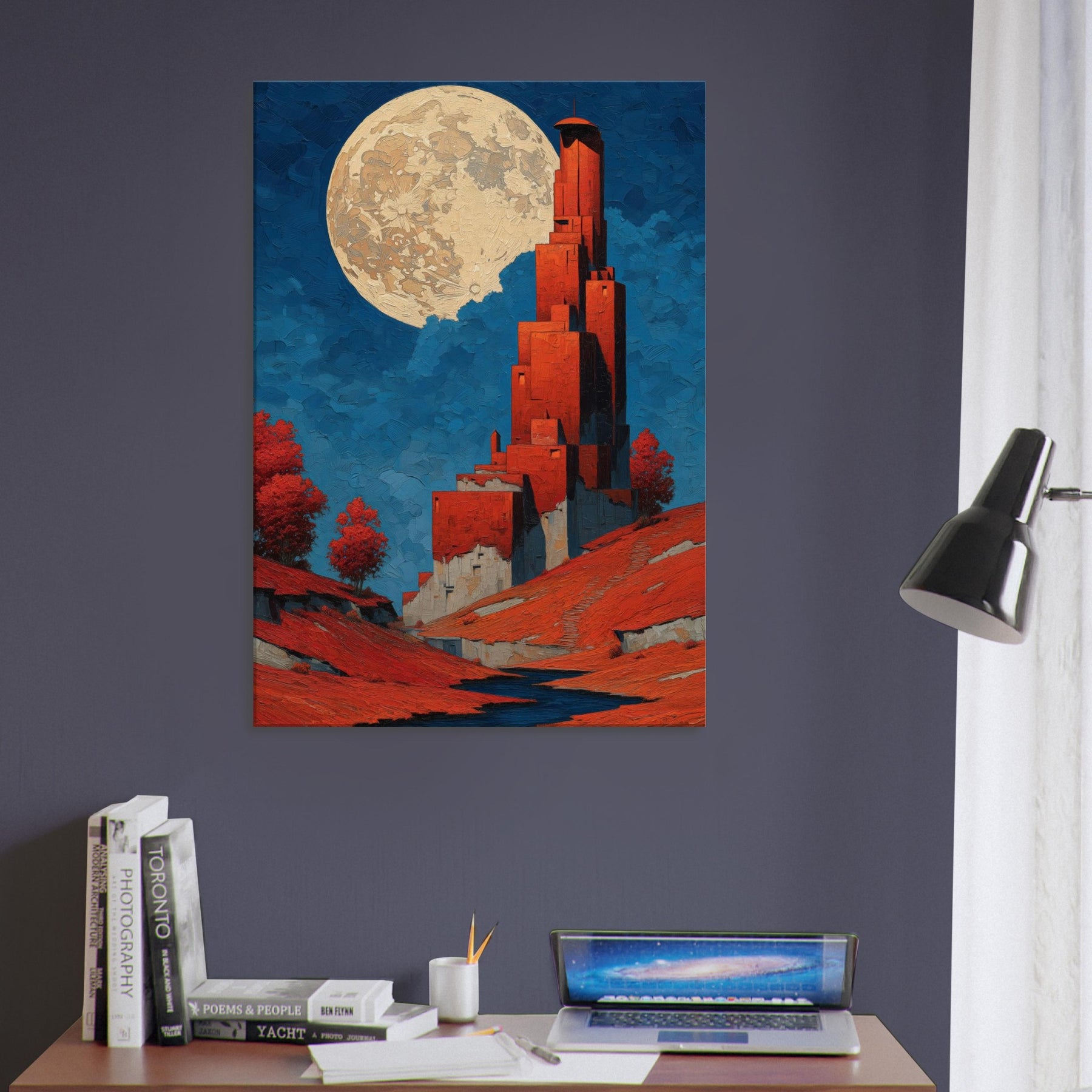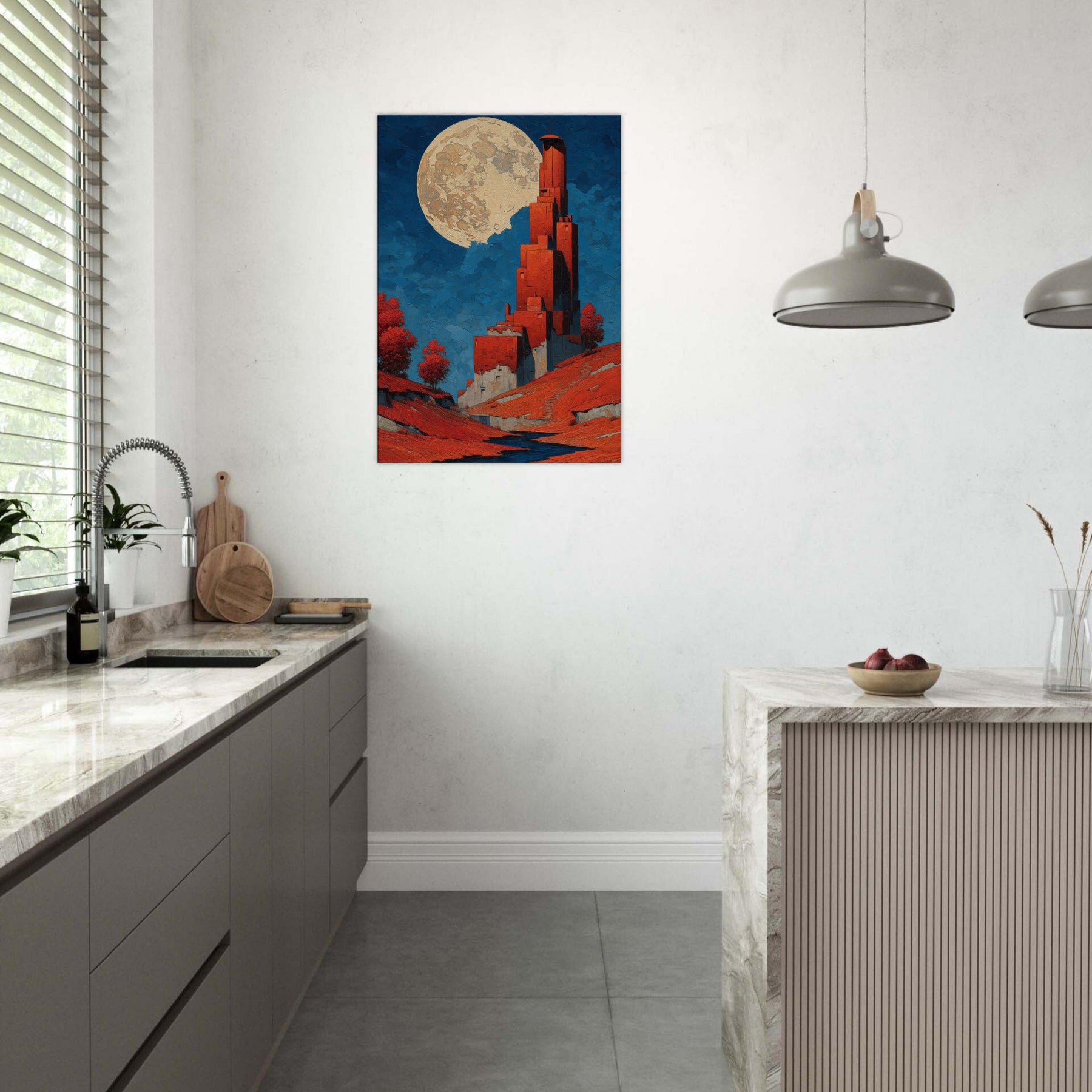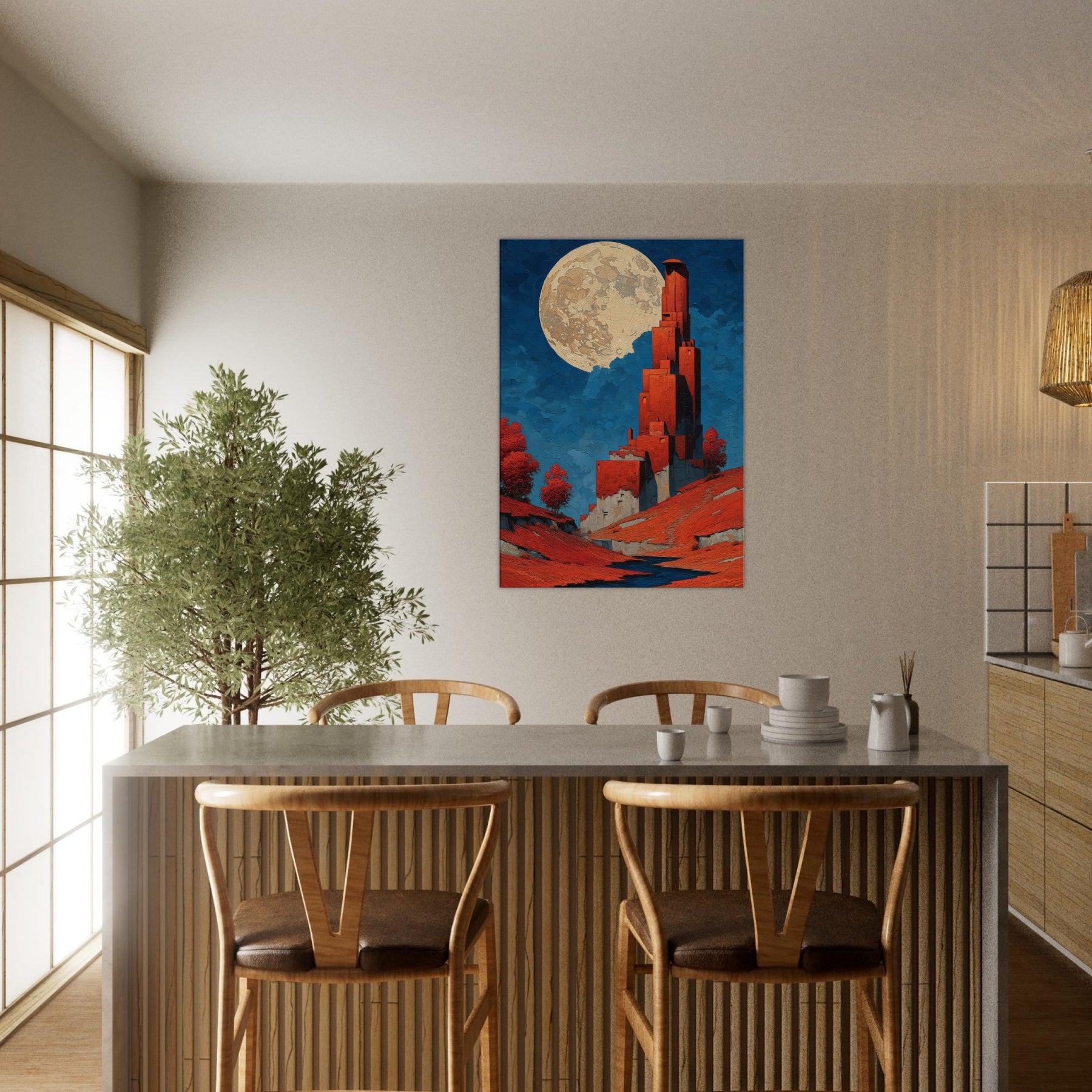 Let Floating City rise in your space as a dream made tangible. This abstract vision casts a luminous moon over a crystalline fortress of red towers, tracing a path of imagination across a quiet, reverent room. The texture and color pulse with energy and serenity, inviting slow reflection or lively conversation. Hang it above a sofa or desk to cultivate a sense of scale, wonder, and escape where myth and memory mingle with light to transform everyday walls into a portal.