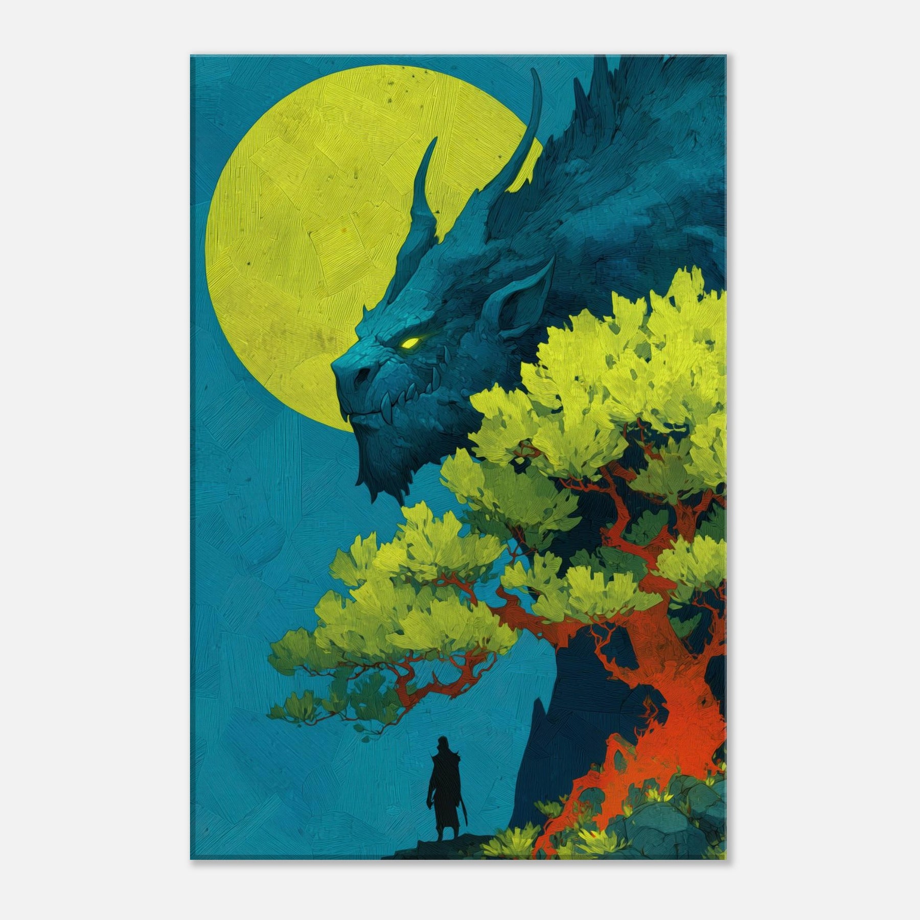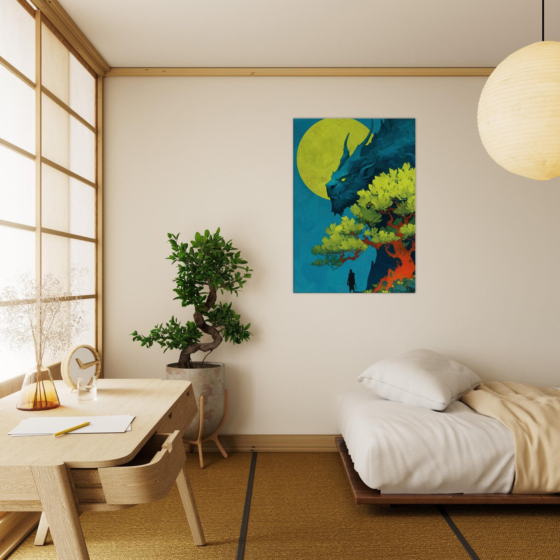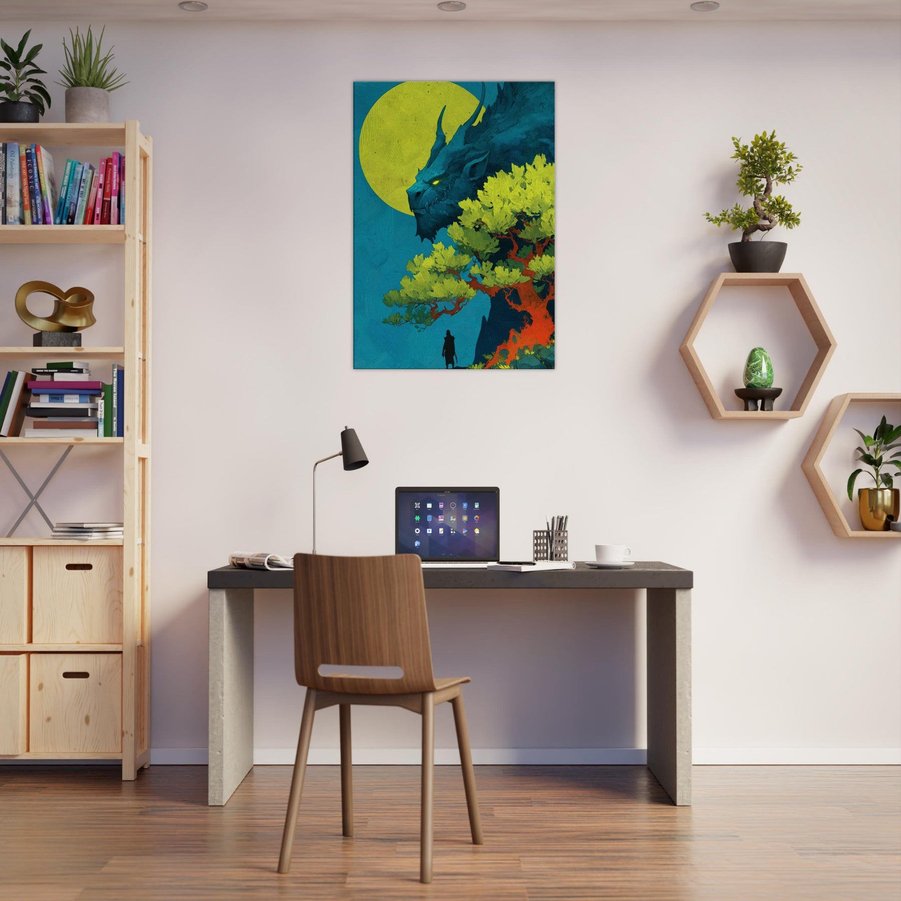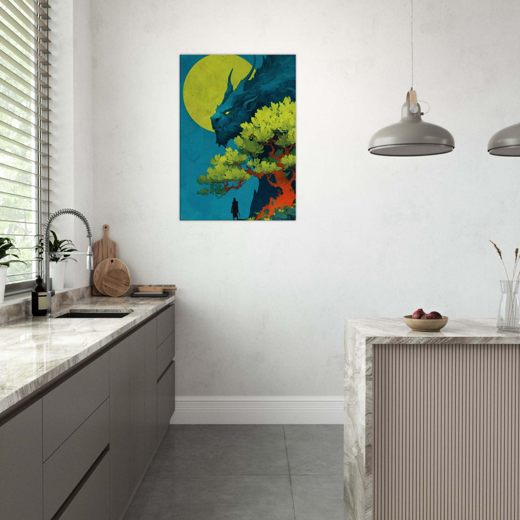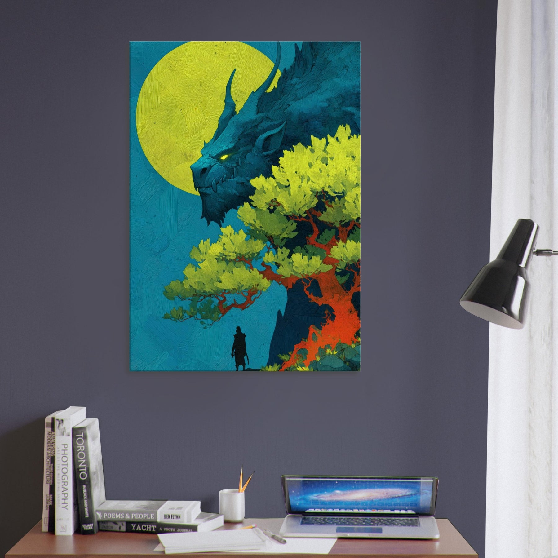 Step into a dream where an ancient dragon curls above a moonlit grove, and a lone wanderer gaze upward from shadowed pines. The Enchanted Forest unfurls in luminous greens and electric blues, rendered in fluid, sculptural strokes that shimmer with mystery. This abstract composition balances bold color with hum of myth, inviting quiet evenings and sunlit corners alike. Hang it in a living room or study to invite wonder, conversation, and a sense of otherworldly calm that makes walls breathe and the imagination step forward.