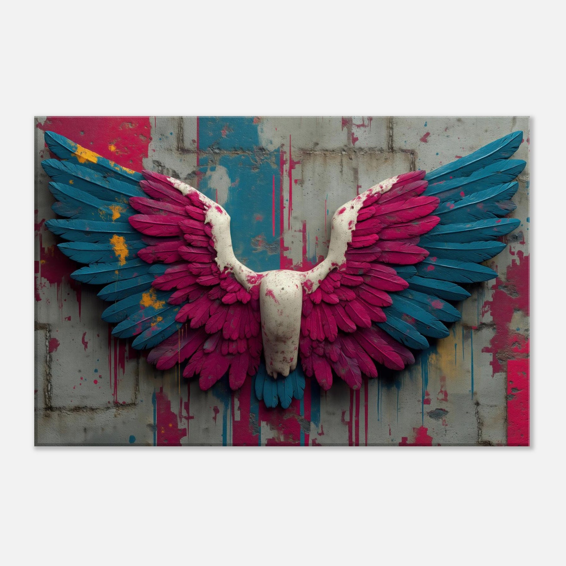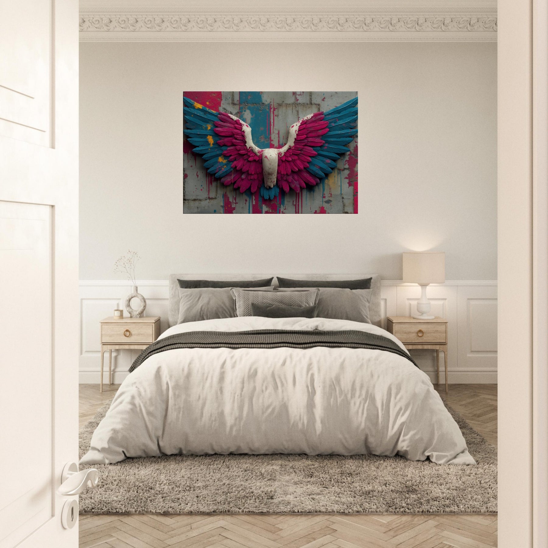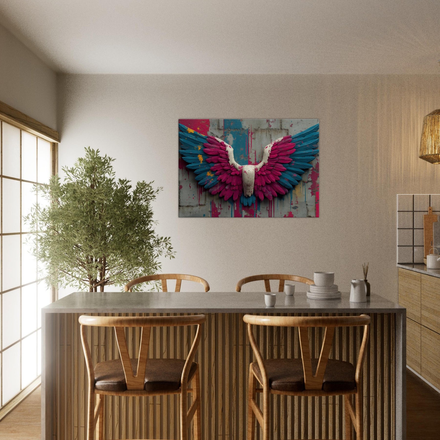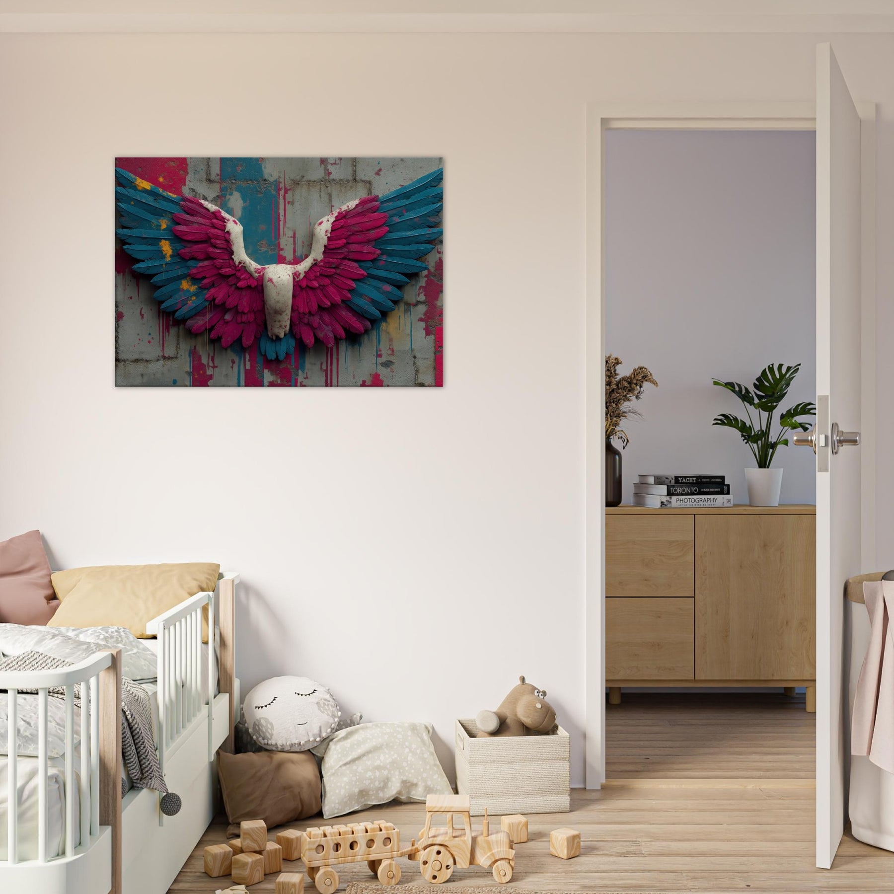 An abstract whisper of wonder, this wall sculpture reimagines the Cherub (Wings Only) in bold color and texture. Two expansive wings unfurl across a concrete gray backdrop, painted in magenta and cobalt with splashes of yellow and pink that feel like a heartbeat of discovery. The piece breathes mystery into a living space, catching light and shadow to create a subtle glow in the evening. It invites quiet reflection, a moment of ascent, and turns any room into a sanctuary of imagination.