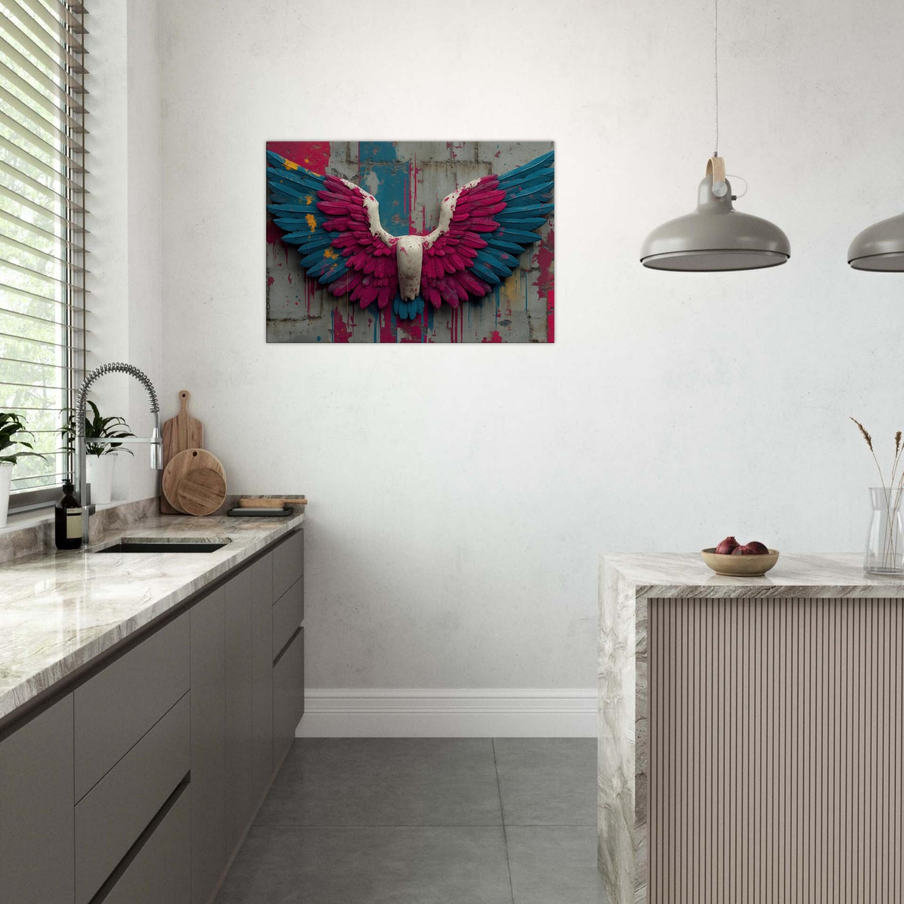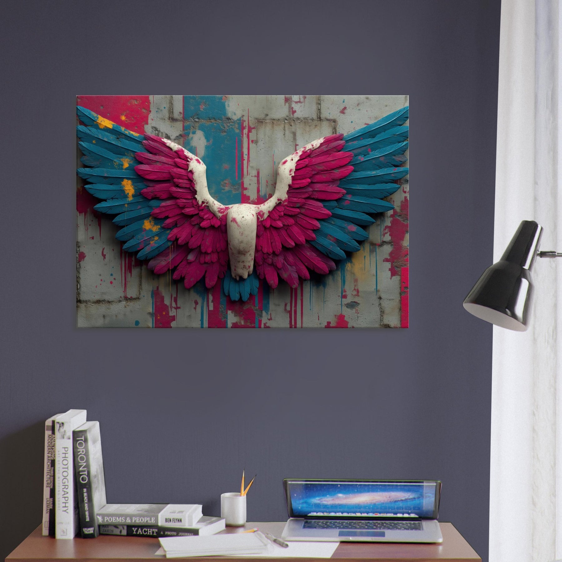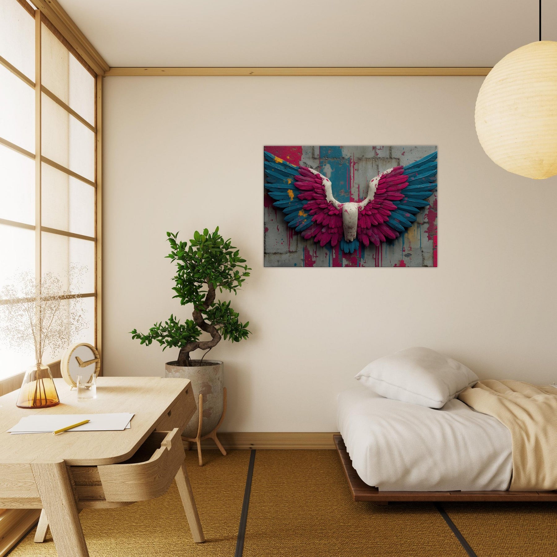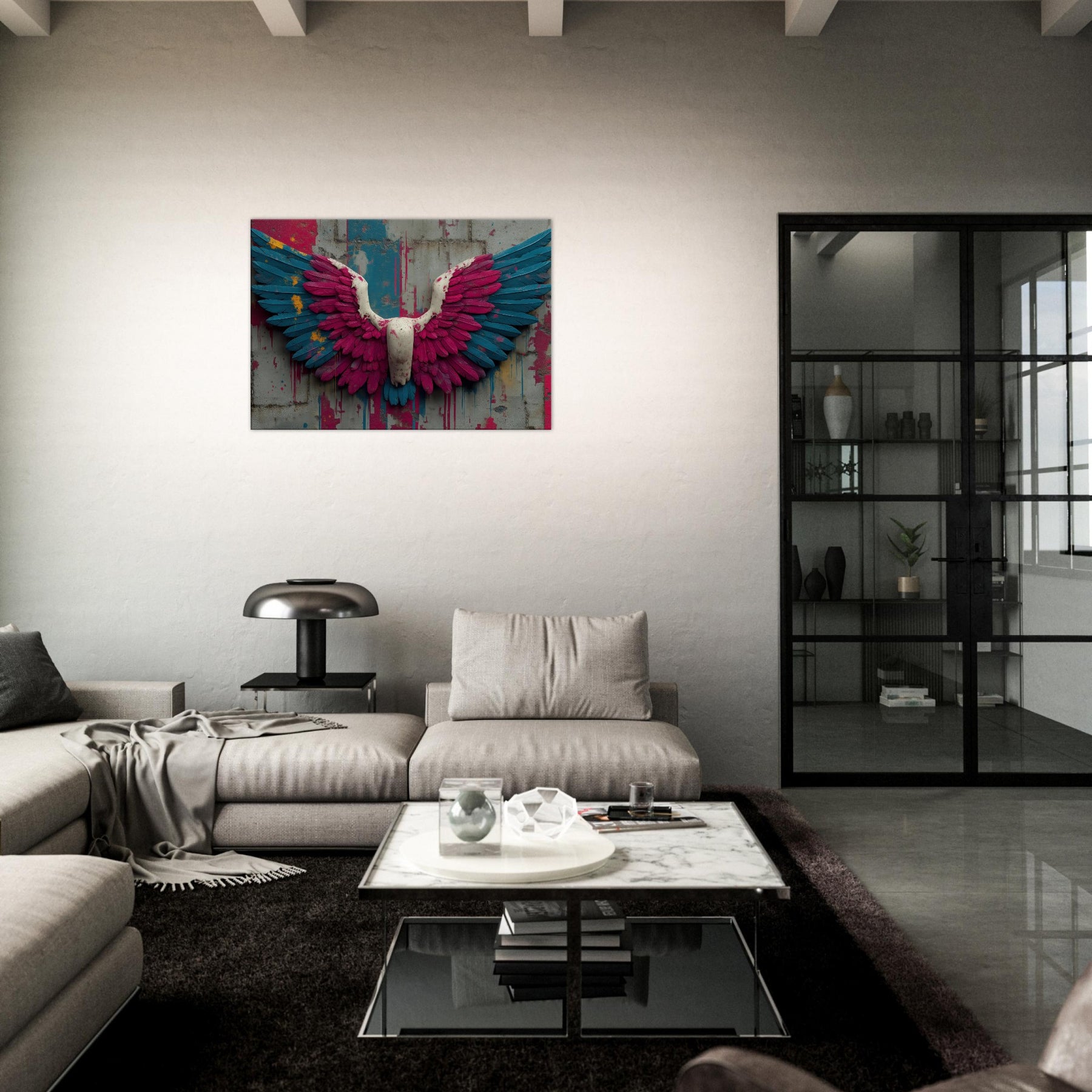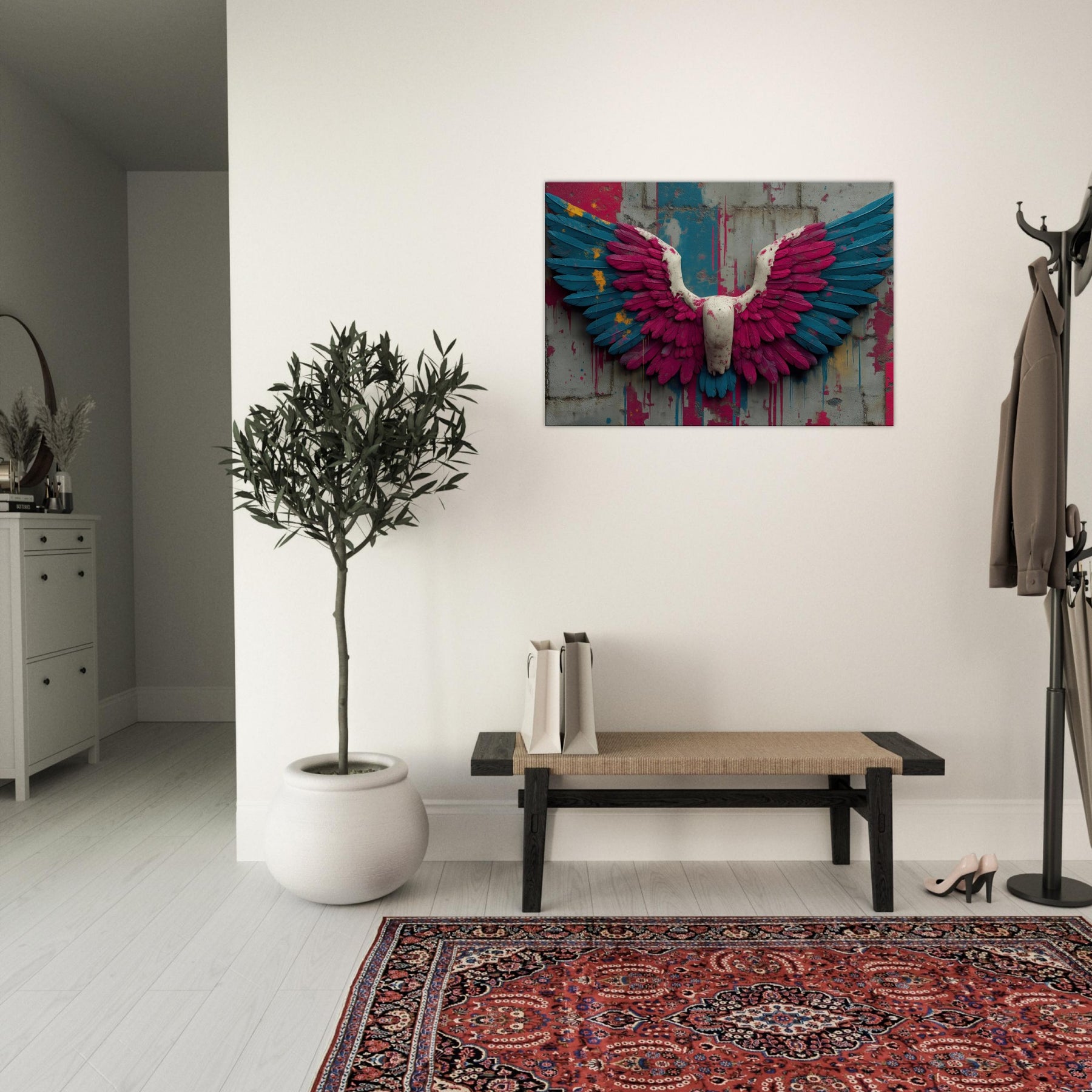 An abstract whisper of wonder, this wall sculpture reimagines the Cherub (Wings Only) in bold color and texture. Two expansive wings unfurl across a concrete gray backdrop, painted in magenta and cobalt with splashes of yellow and pink that feel like a heartbeat of discovery. The piece breathes mystery into a living space, catching light and shadow to create a subtle glow in the evening. It invites quiet reflection, a moment of ascent, and turns any room into a sanctuary of imagination.