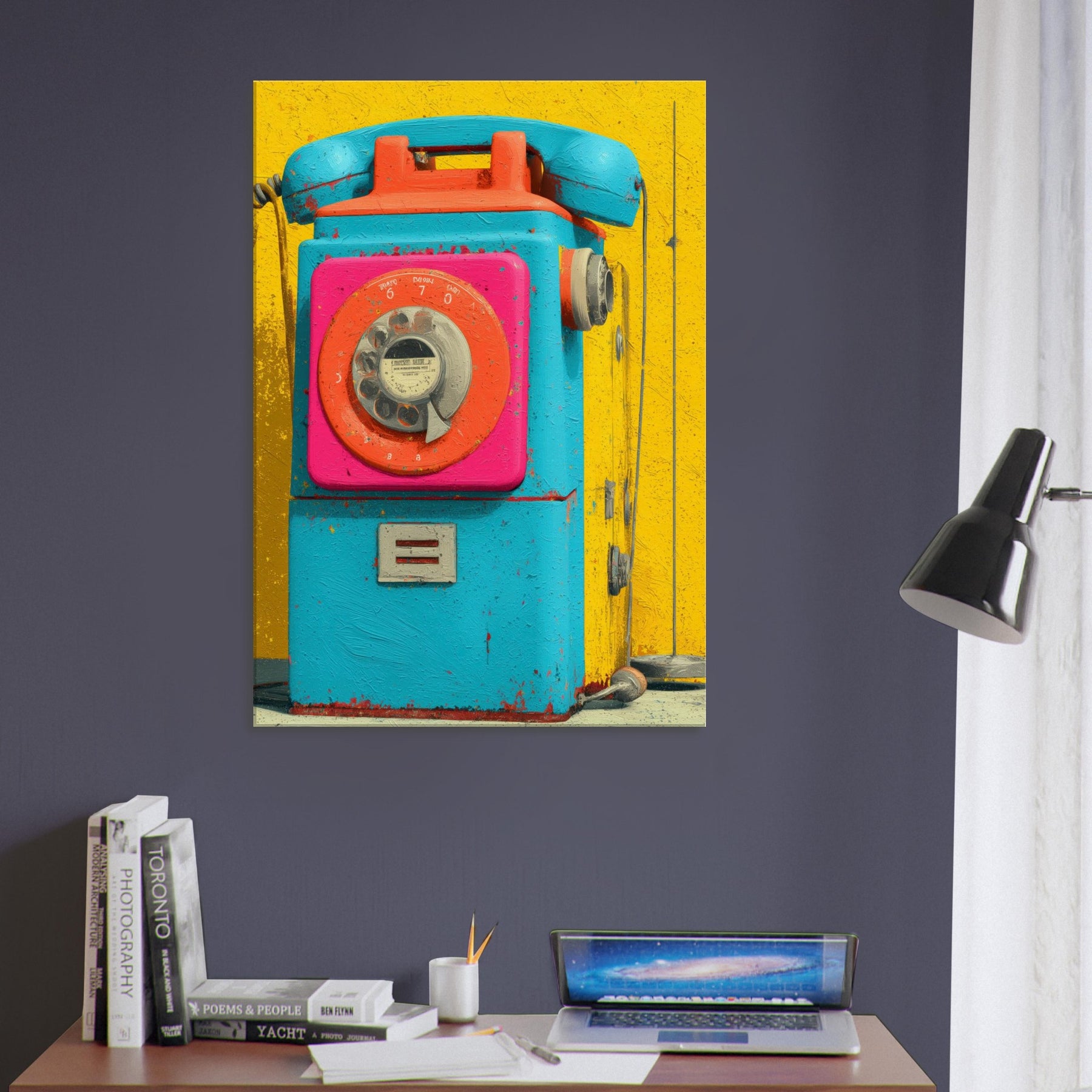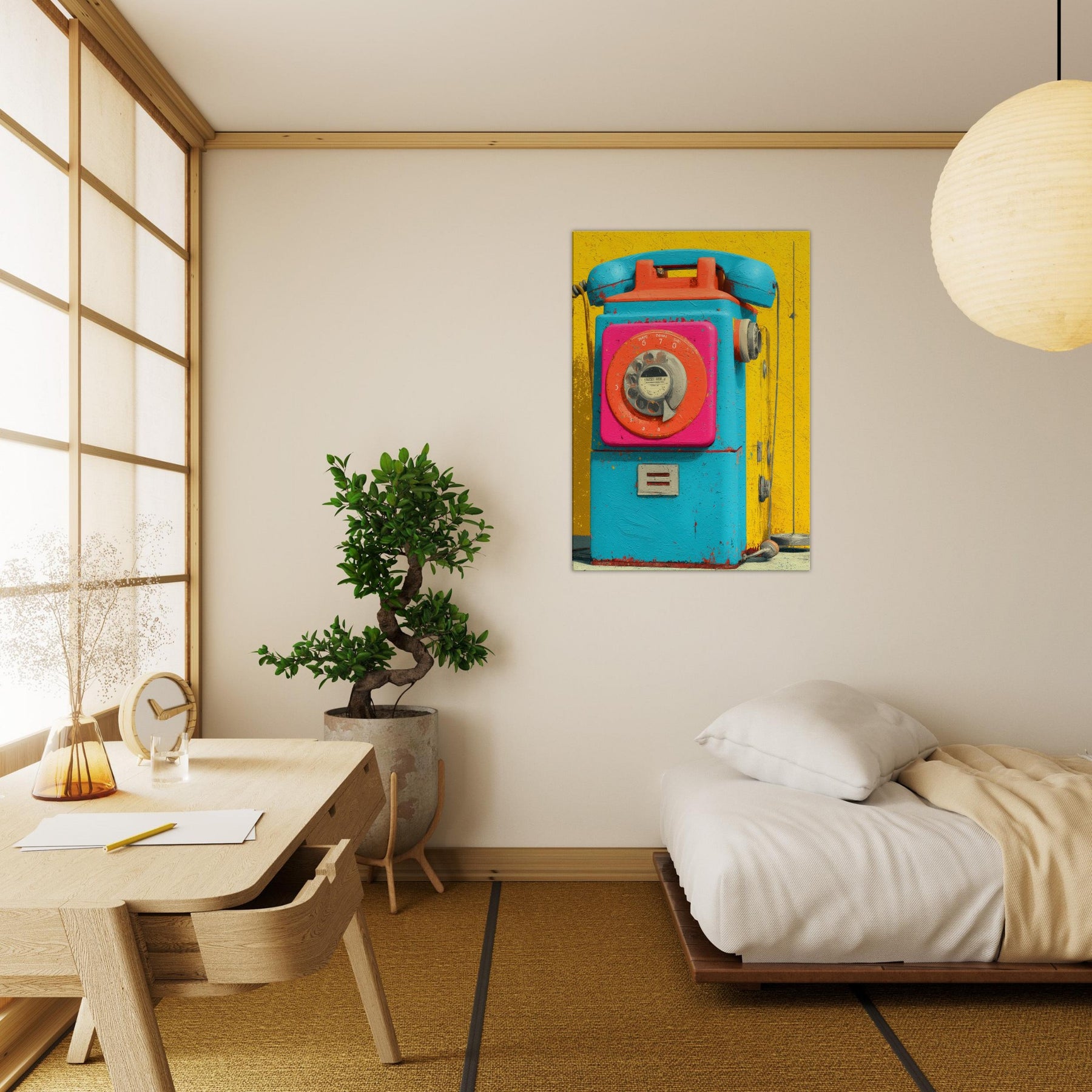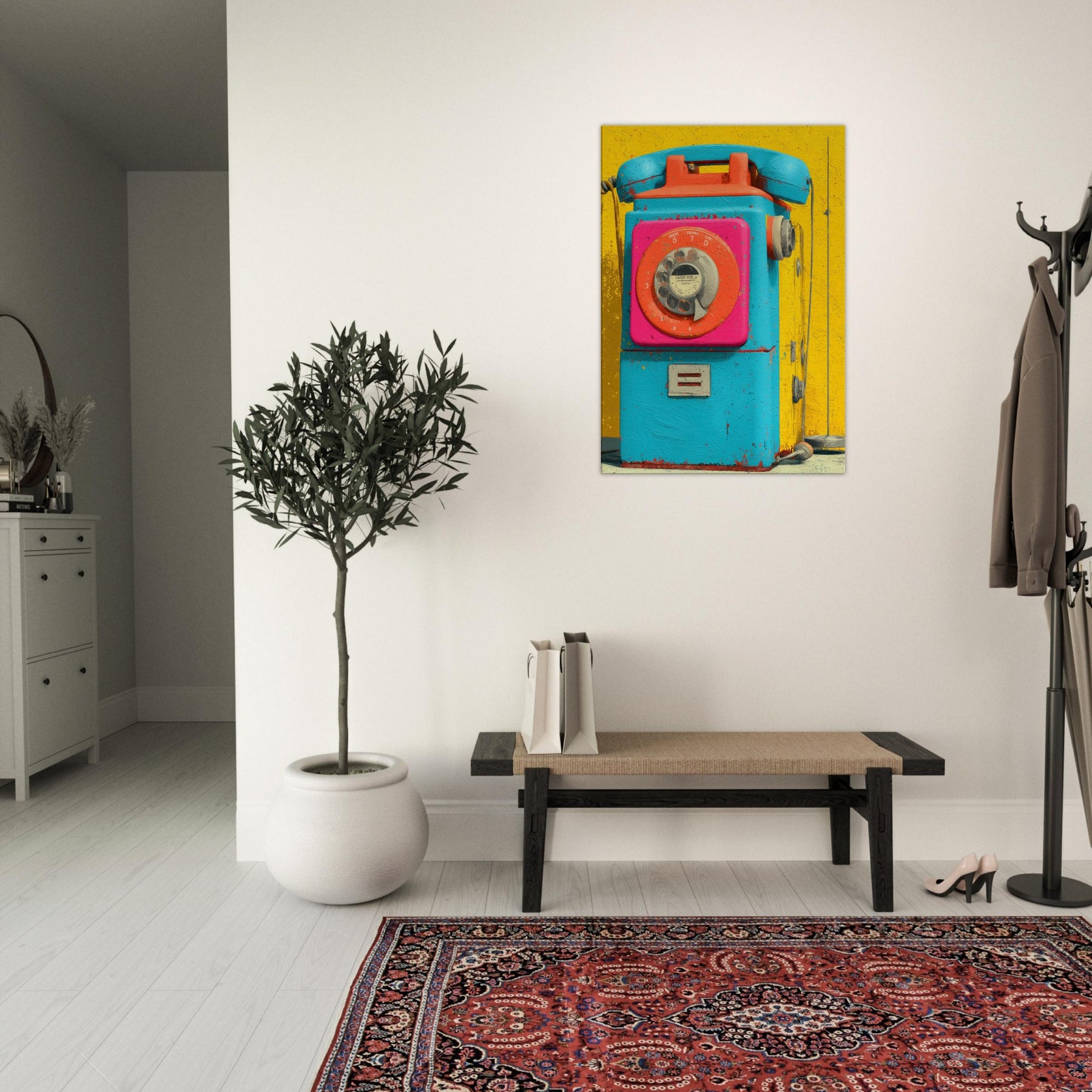Like a friendly beacon from a bygone era, this composition centers a Retro Telephone in ribbons of turquoise, coral, and punchy pink. The piece hums with nostalgia and modern warmth, inviting conversation with space and self. In a living room or study, it becomes a bright focal point vivid, tactile, melodic. The abstracted forms blur lines between object and color, turning memory into a living sensation you can feel, see, and live with every quiet moment.