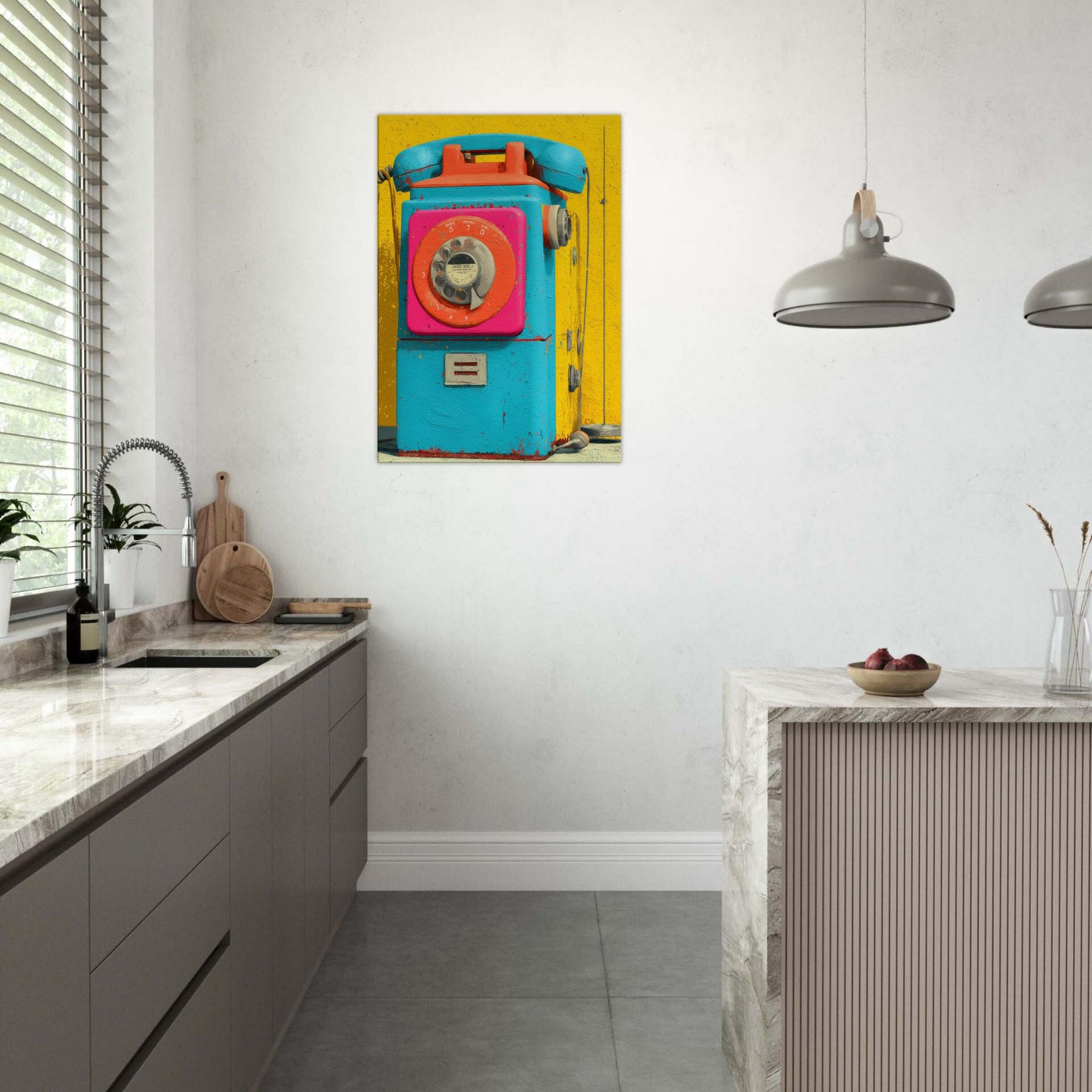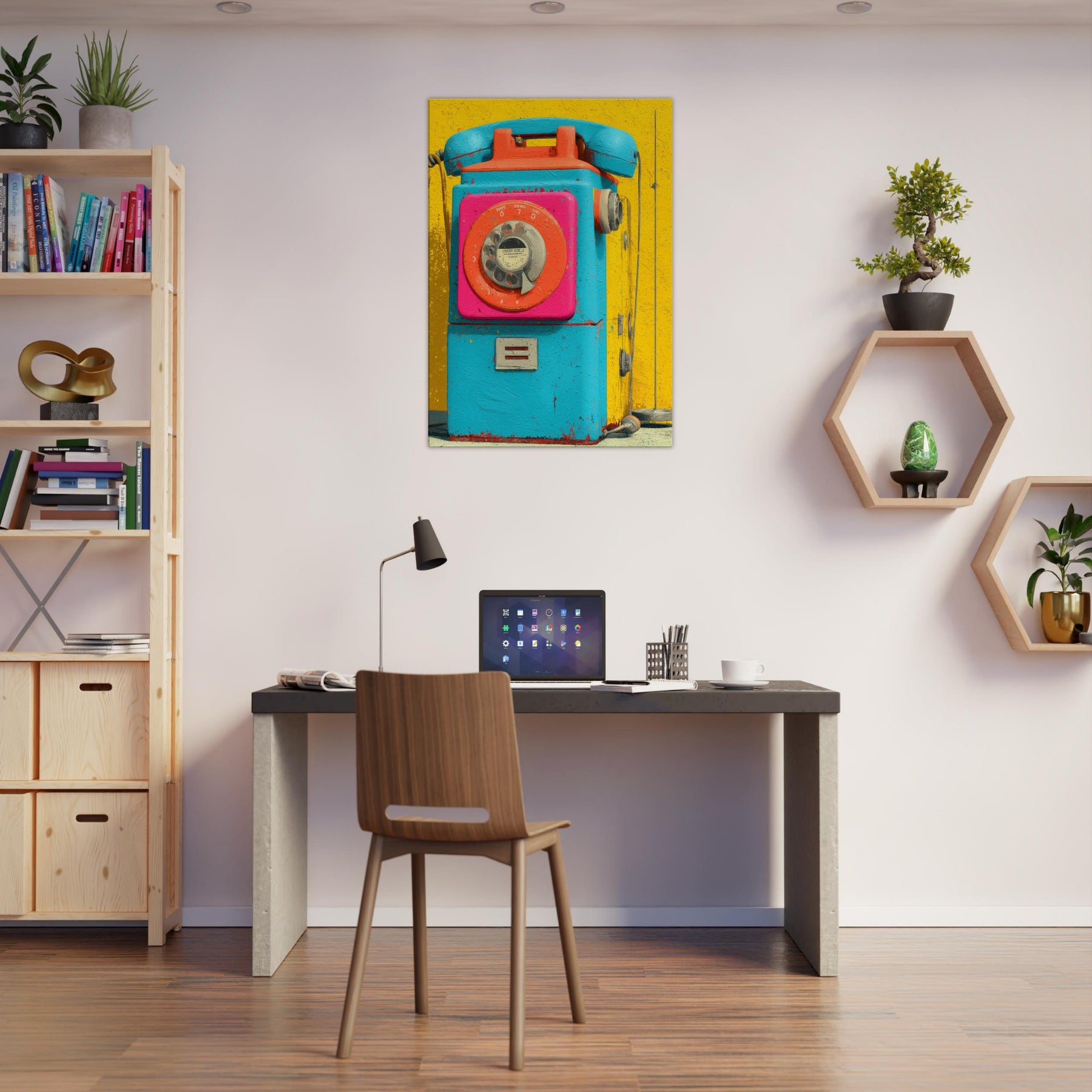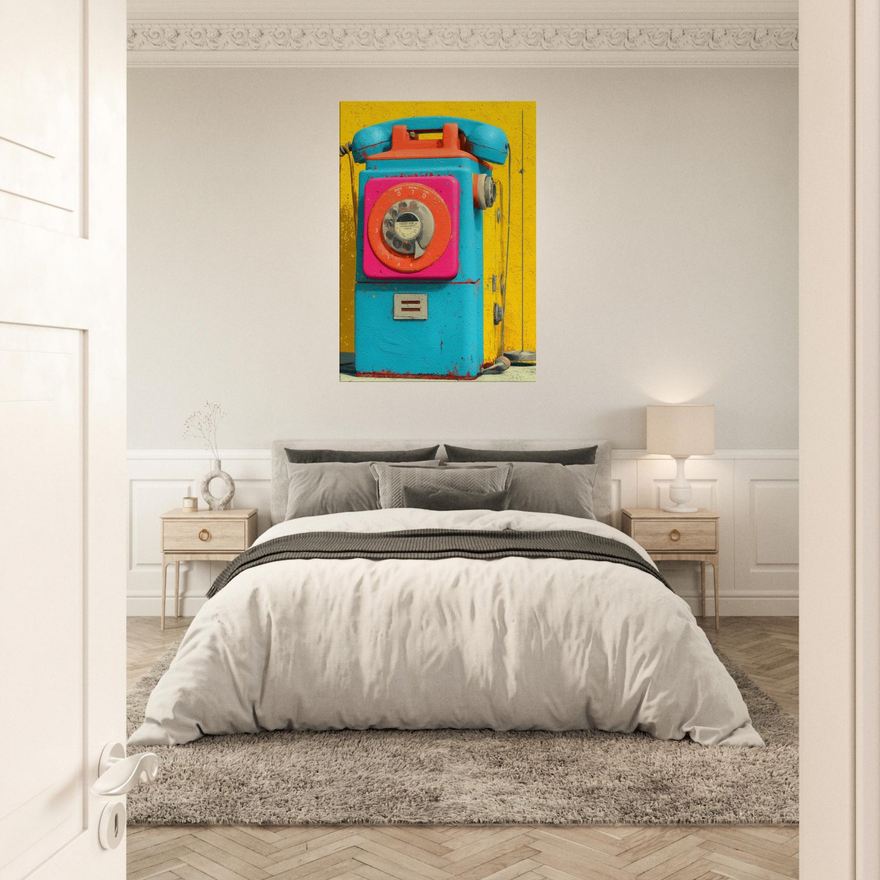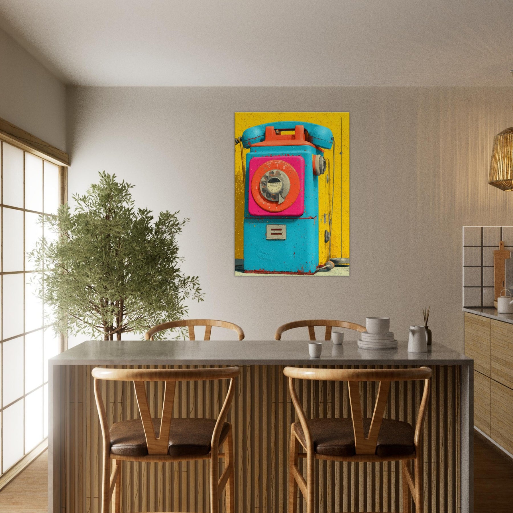 Like a friendly beacon from a bygone era, this composition centers a Retro Telephone in ribbons of turquoise, coral, and punchy pink. The piece hums with nostalgia and modern warmth, inviting conversation with space and self. In a living room or study, it becomes a bright focal point vivid, tactile, melodic. The abstracted forms blur lines between object and color, turning memory into a living sensation you can feel, see, and live with every quiet moment.