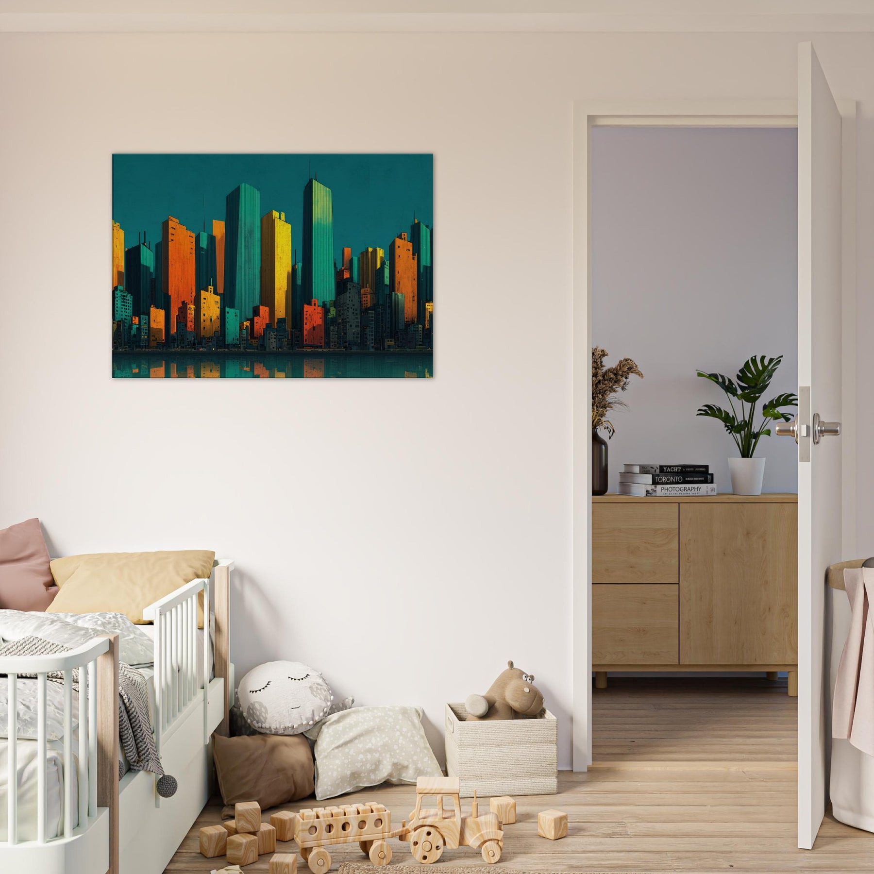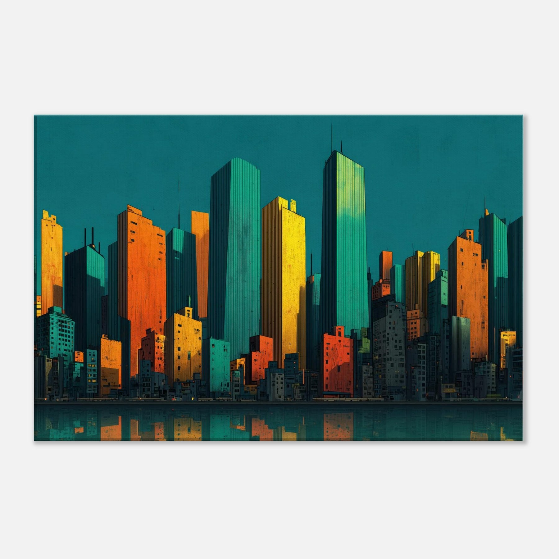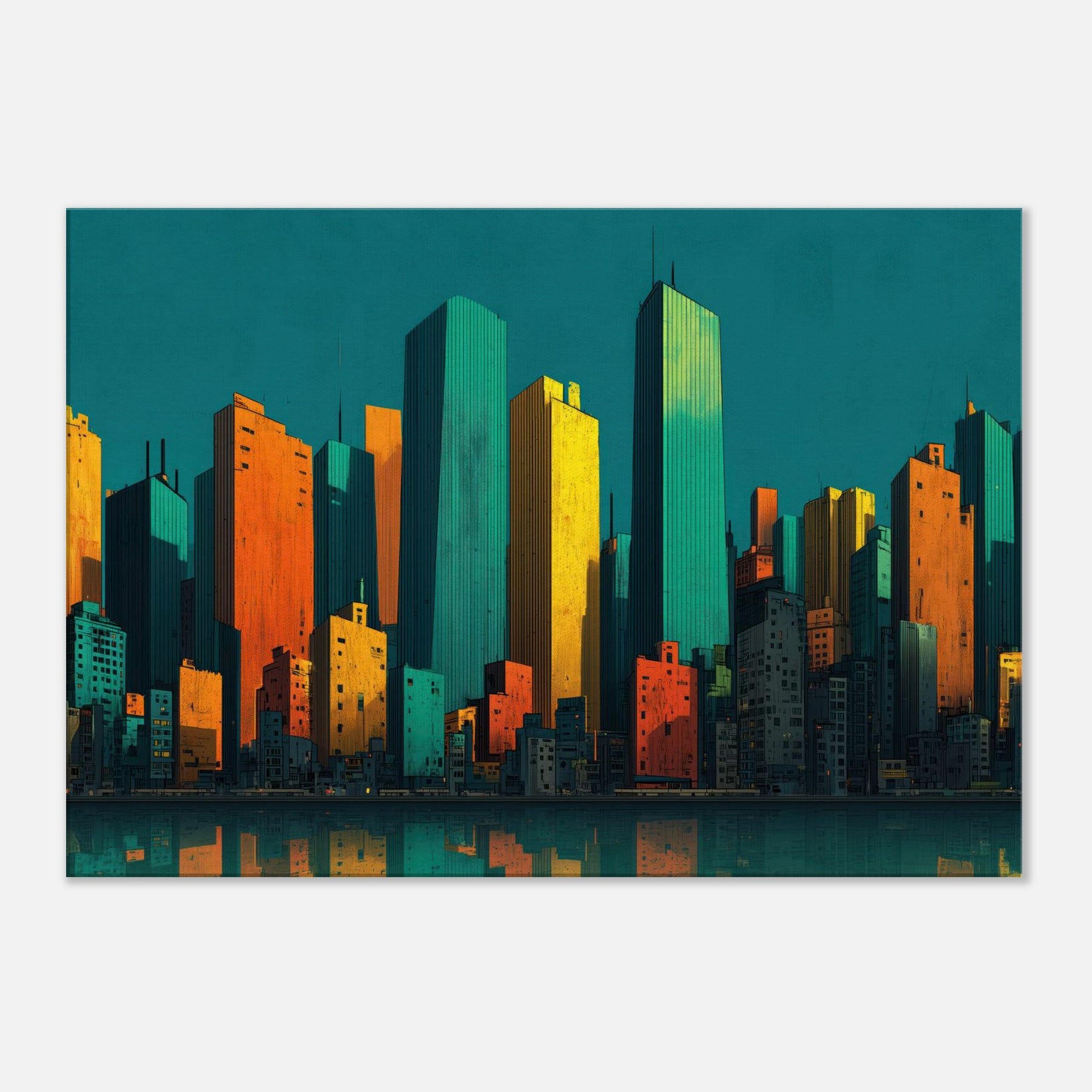 Seoul unfolds in luminous bands of color, where towers rise like prisms and the night breathes with an electric hum. This abstract cityscape captures the pulse of a metropolis at dusk: teal rivers of sky, molten orange sunlit glass, and shadows that whisper of hidden courtyards. The piece invites contemplation, turning a wall into a vista that swells with energy yet remains soothing. Hang it in a living room or hallway to spark conversation and illuminate everyday moments with urban poetry.