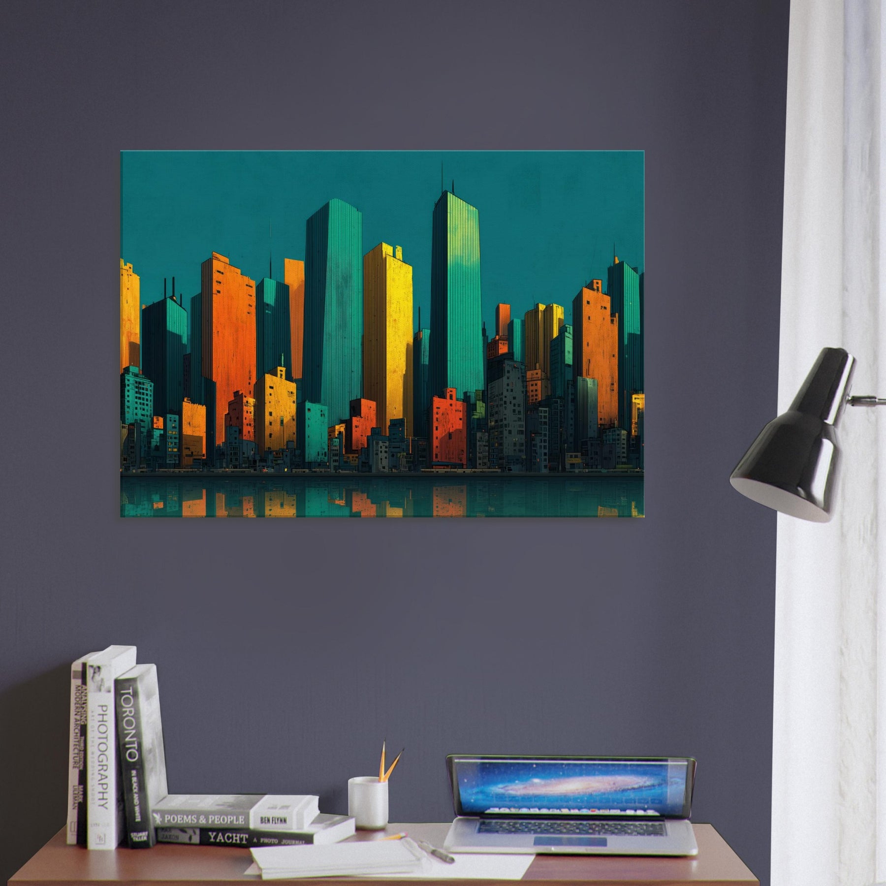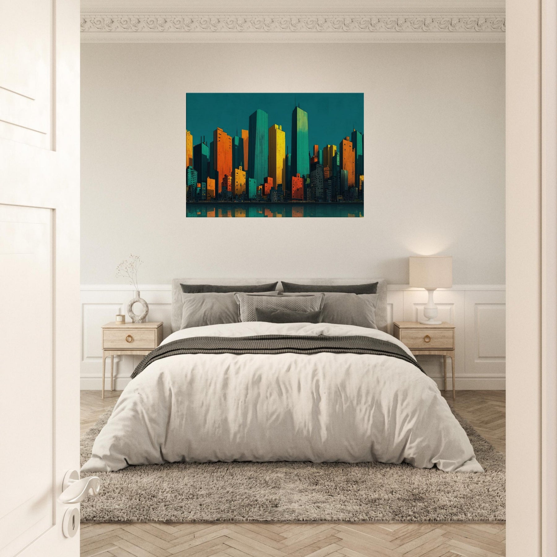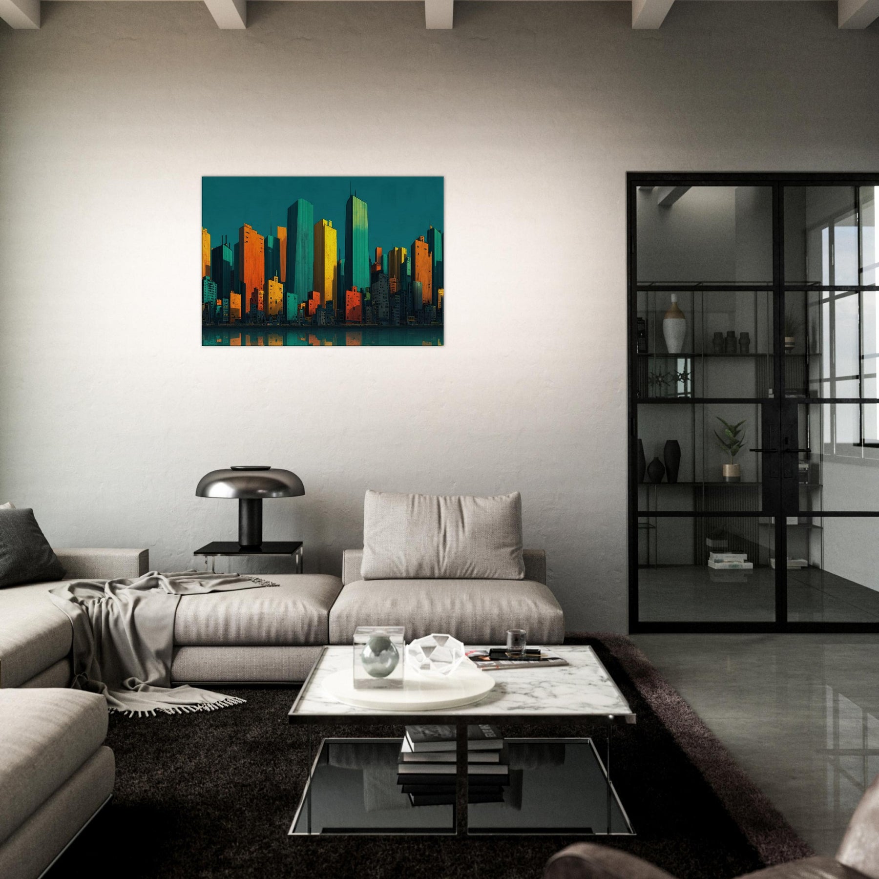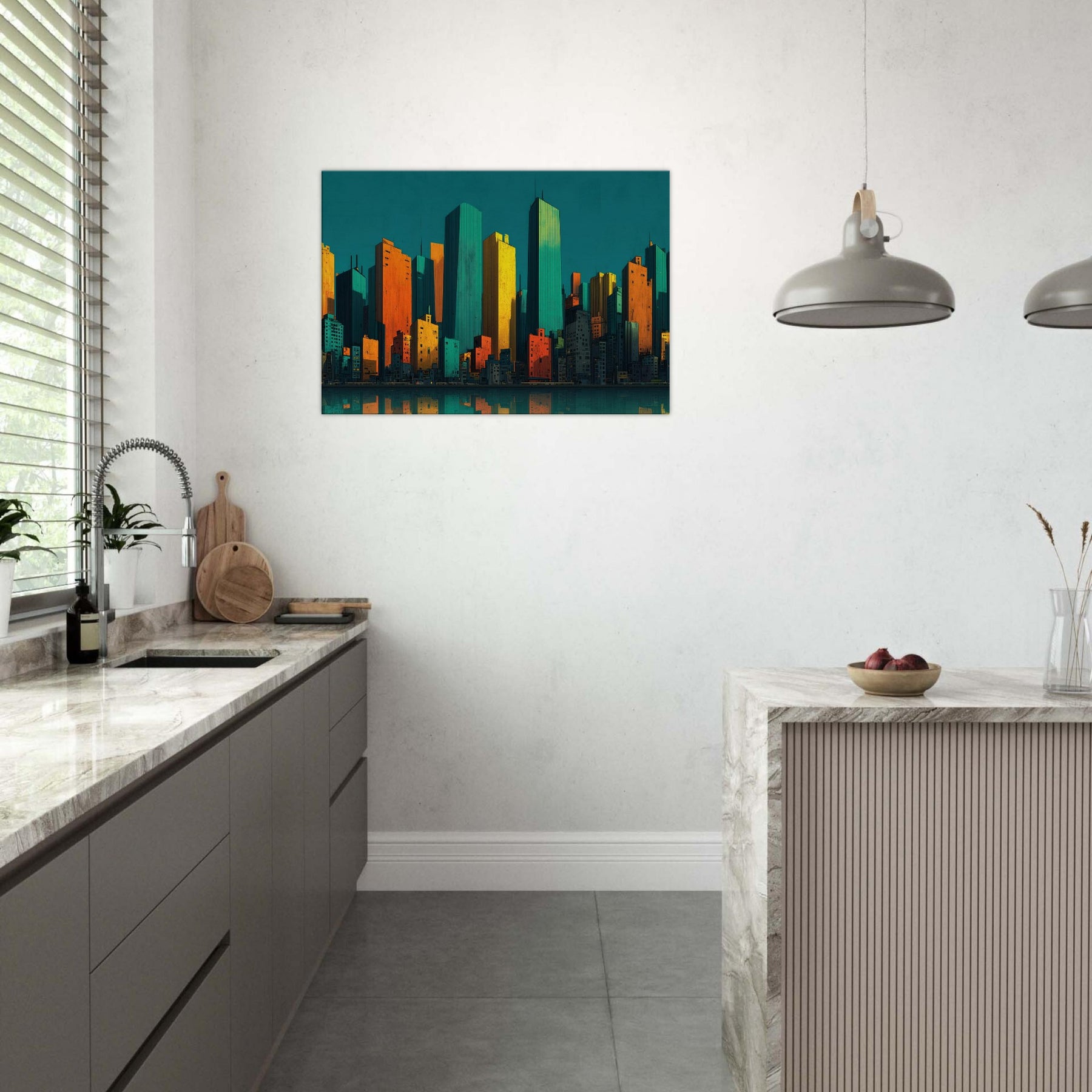 Seoul unfolds in luminous bands of color, where towers rise like prisms and the night breathes with an electric hum. This abstract cityscape captures the pulse of a metropolis at dusk: teal rivers of sky, molten orange sunlit glass, and shadows that whisper of hidden courtyards. The piece invites contemplation, turning a wall into a vista that swells with energy yet remains soothing. Hang it in a living room or hallway to spark conversation and illuminate everyday moments with urban poetry.