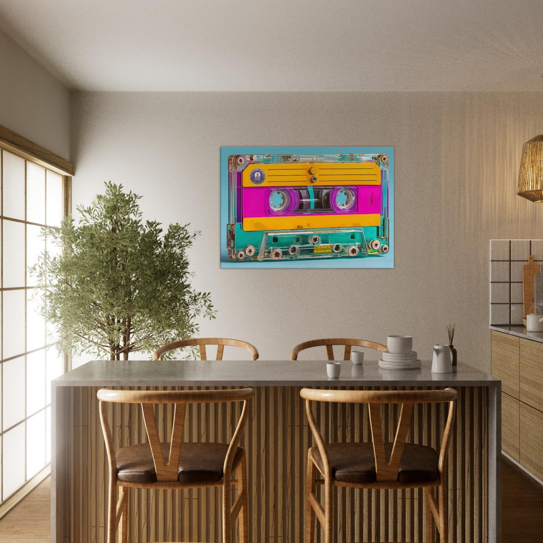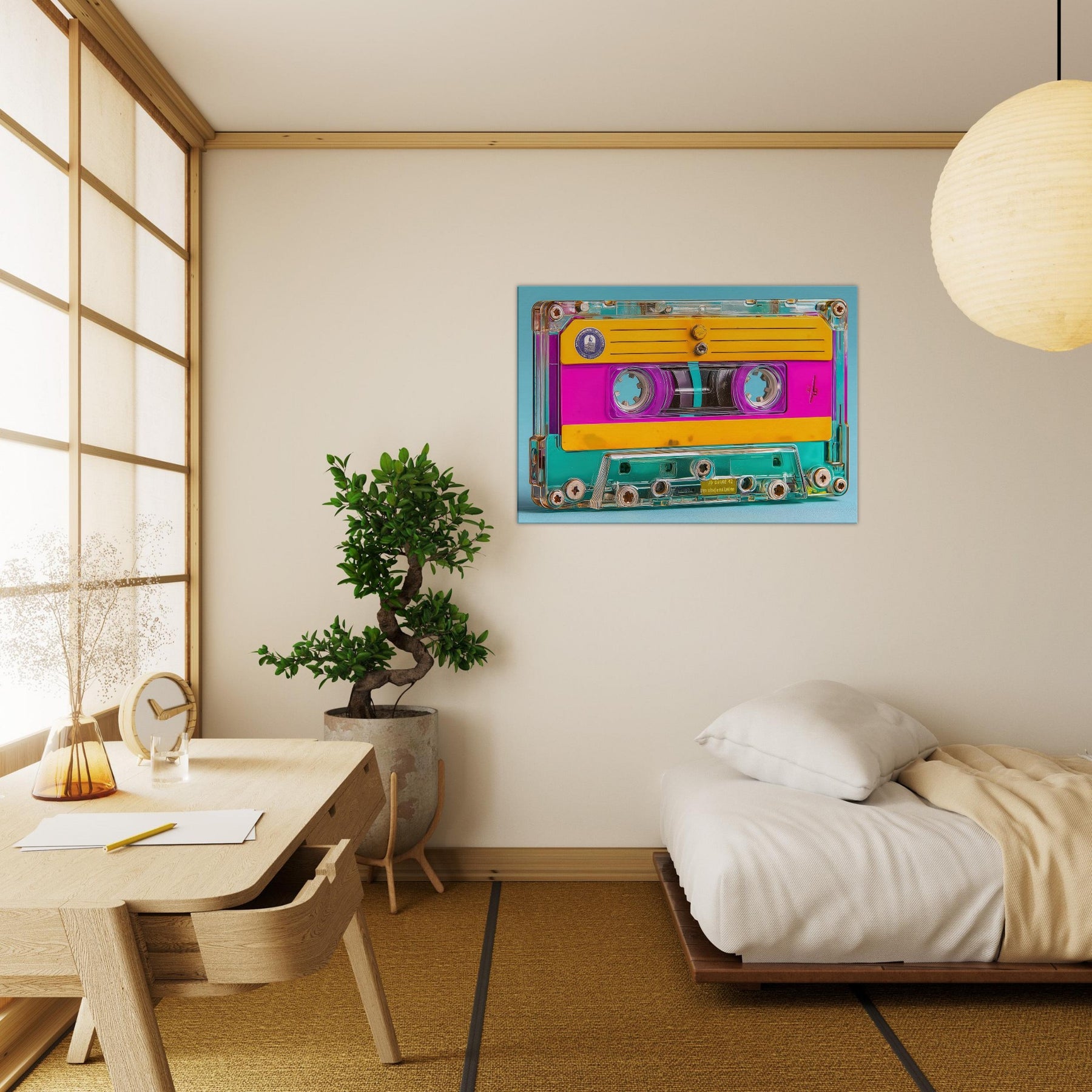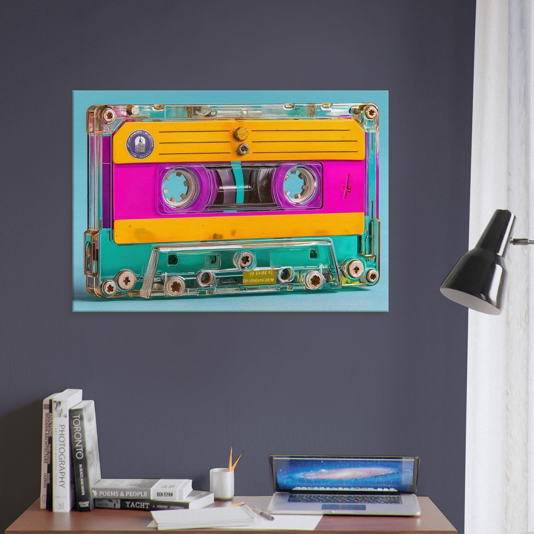 A luminous celebration of memory and sound, this Cassette Tape emerges as a dream of color bright pinks, sunny yellows, and turquoise glow weaving through a transparent shell. In this abstract study, everyday icons become mood makers, inviting a playful, cinematic atmosphere into your living space. Hang it over a sofa or a desk to spark nostalgia without nostalgia’s weight, letting the tactile warmth and glow of the piece turn rooms into intimate moments of color and clarity.