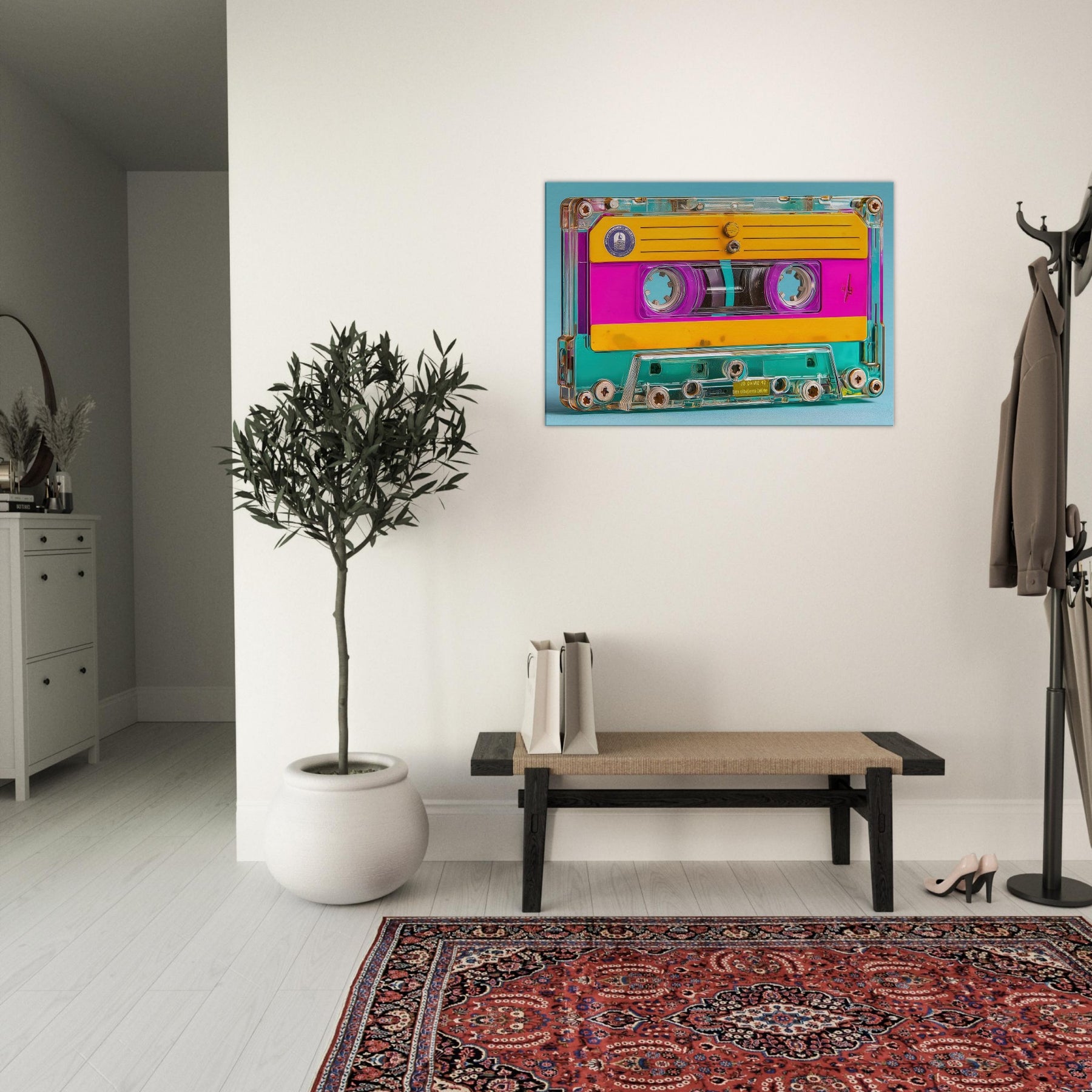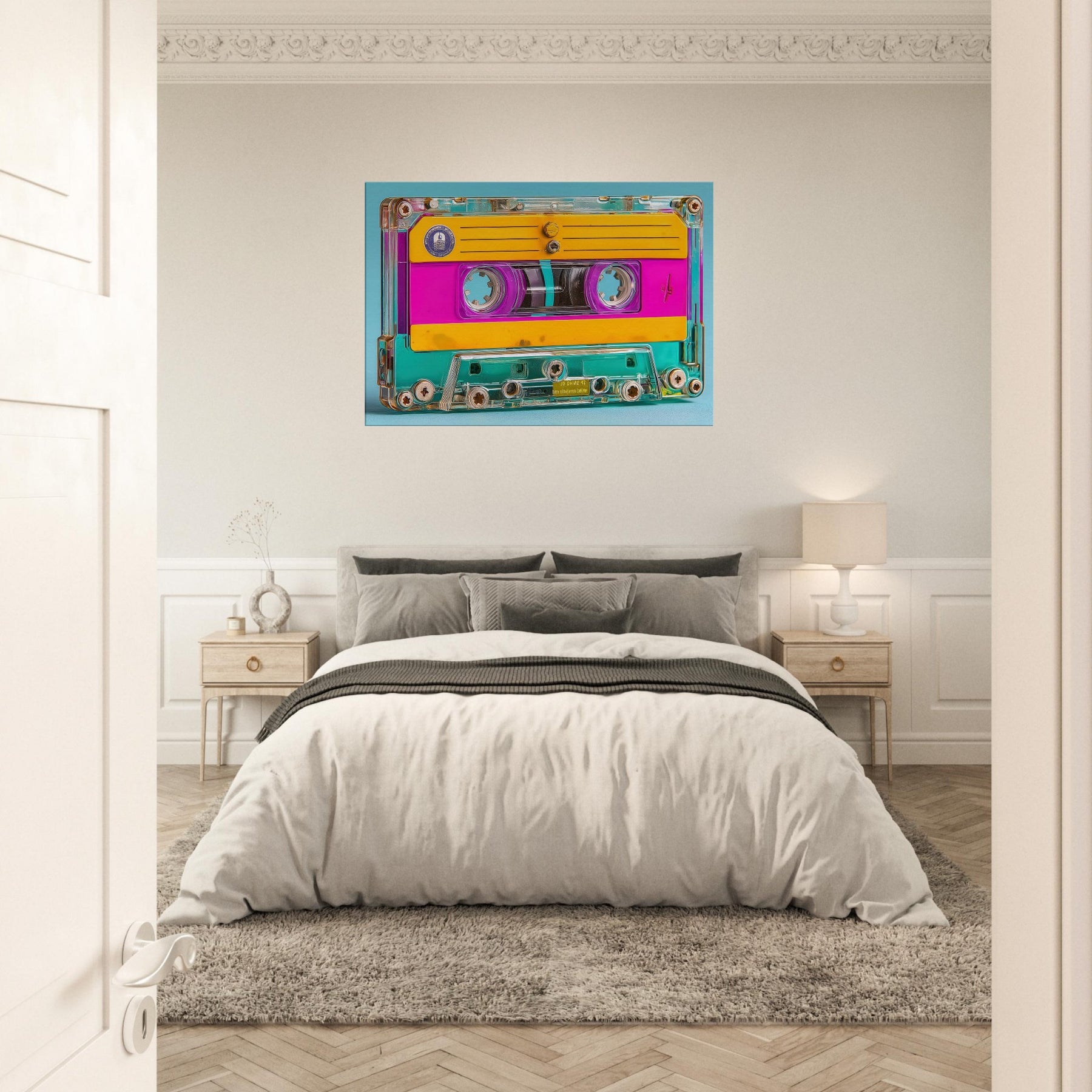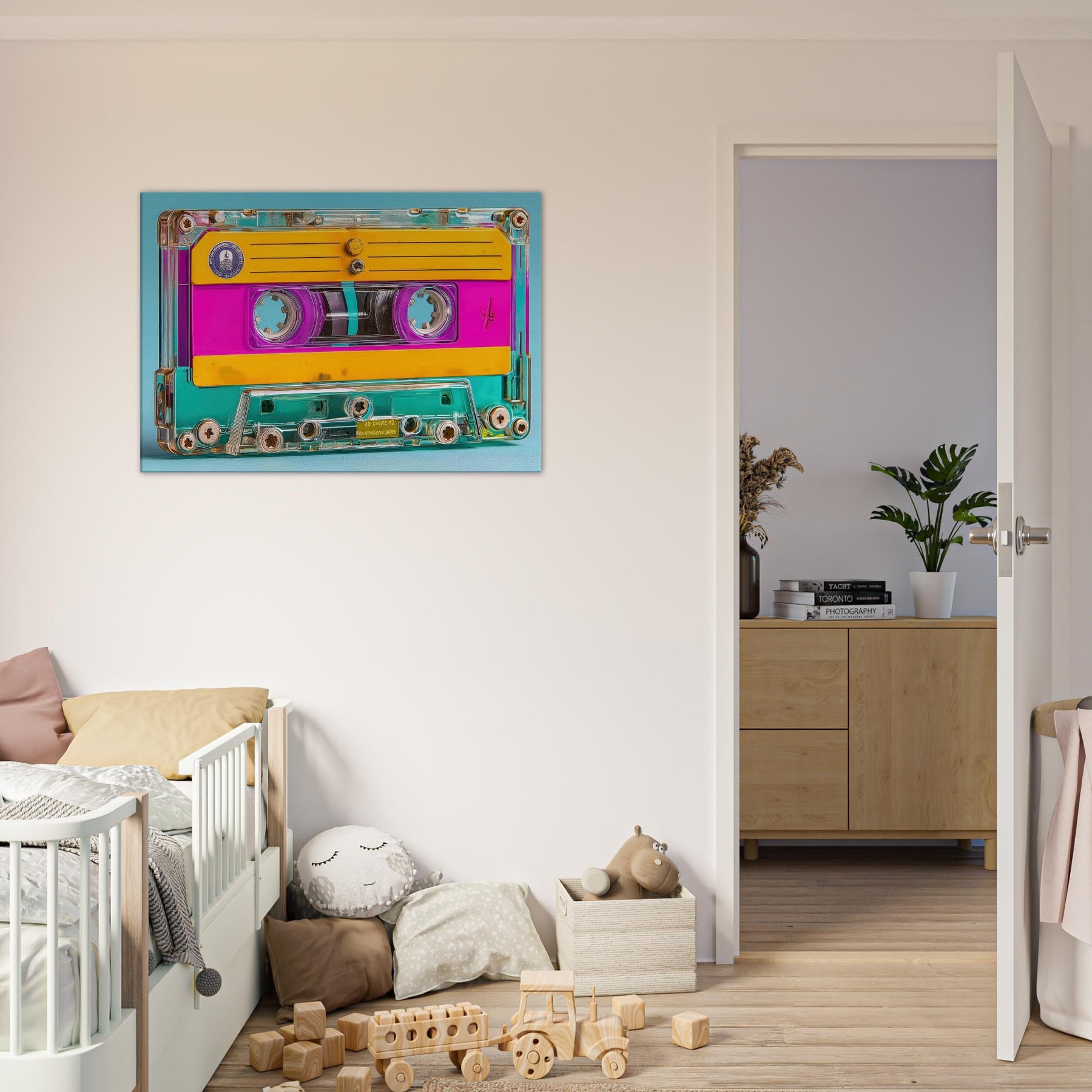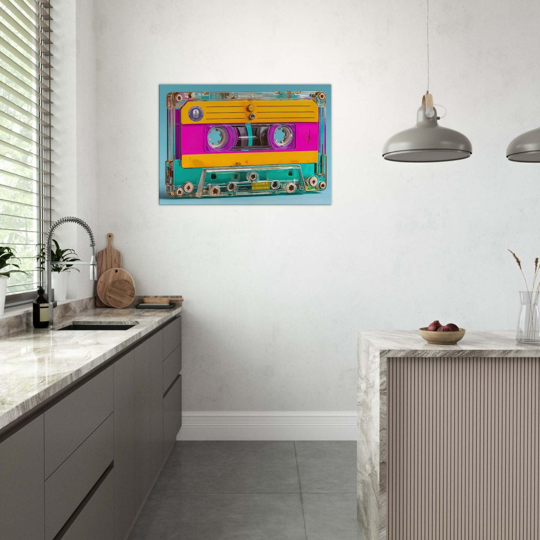 A luminous celebration of memory and sound, this Cassette Tape emerges as a dream of color bright pinks, sunny yellows, and turquoise glow weaving through a transparent shell. In this abstract study, everyday icons become mood makers, inviting a playful, cinematic atmosphere into your living space. Hang it over a sofa or a desk to spark nostalgia without nostalgia’s weight, letting the tactile warmth and glow of the piece turn rooms into intimate moments of color and clarity.
