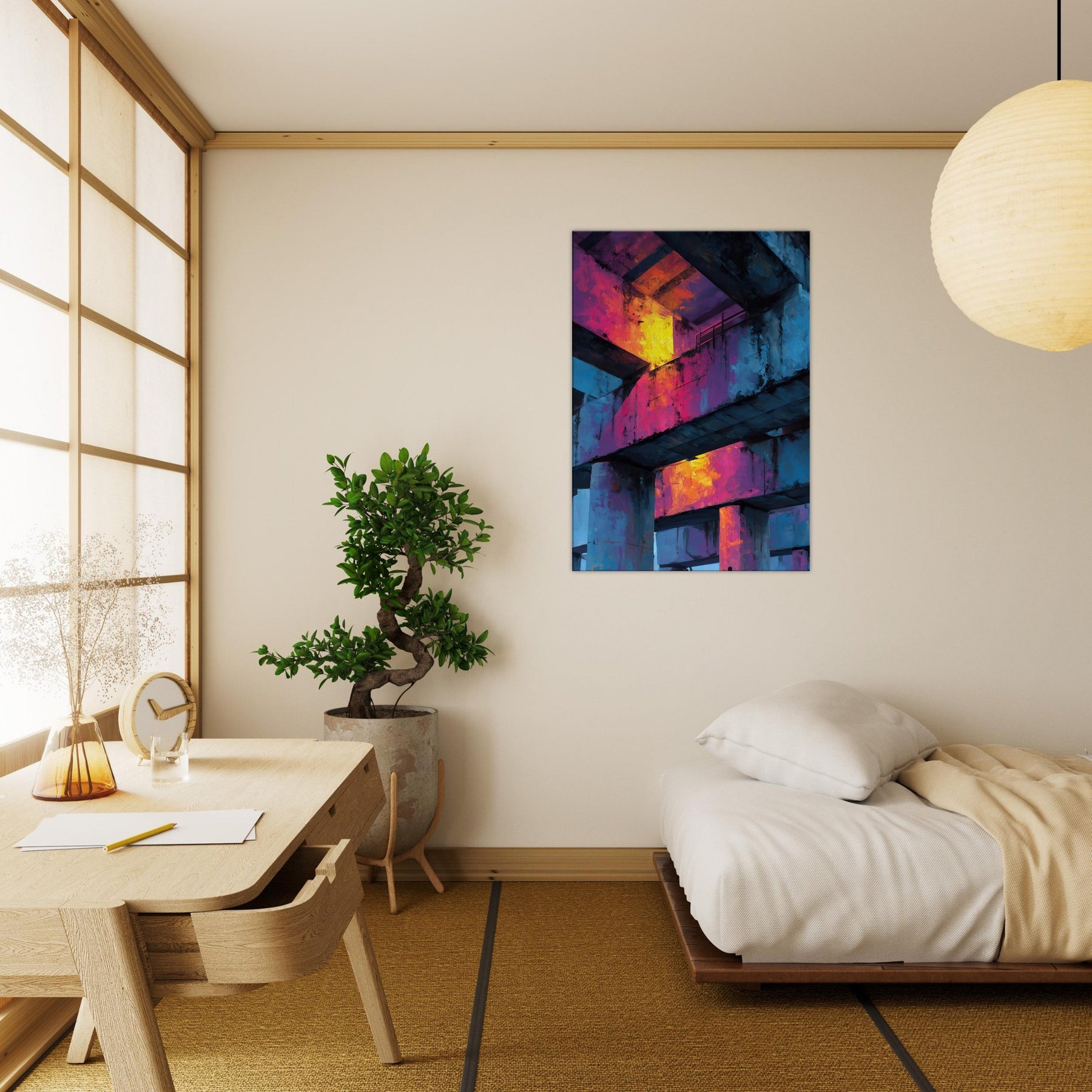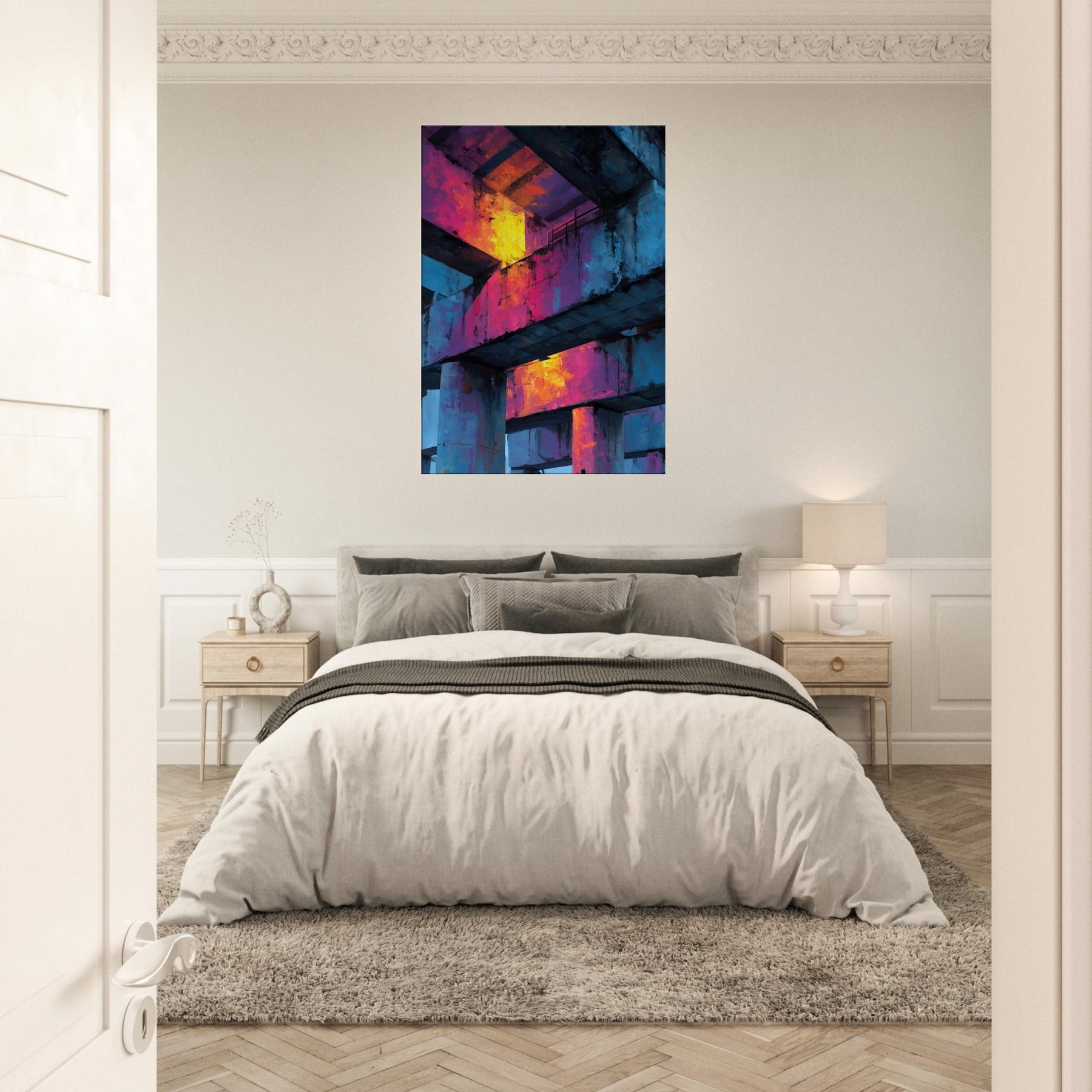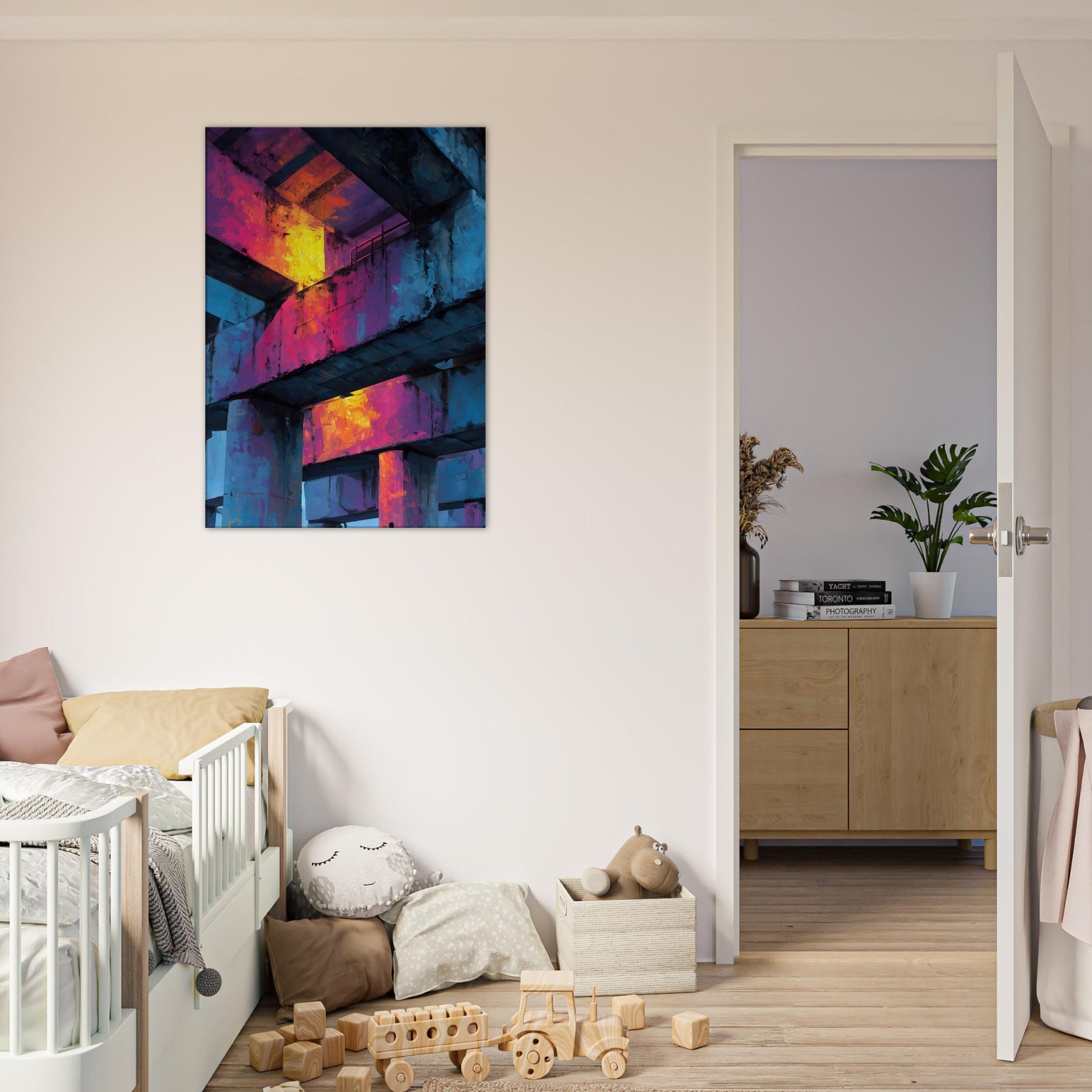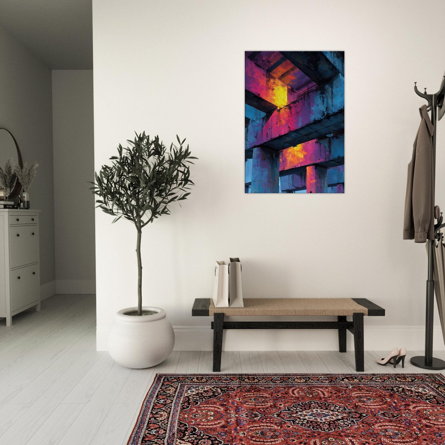 Let Rome rise from the wall in a chorus of color and light. This abstract study of urban architecture unfurls across your space like a sunset over ancient stones crimson and violet shadows chasing a molten gold glow. Layer upon layer invites the eye to wander, creating depth, movement, and a sense of spacious calm. Hang it in a living room or study to spark conversation, elevate mood, and lend your space a refined, modern urban pulse.
