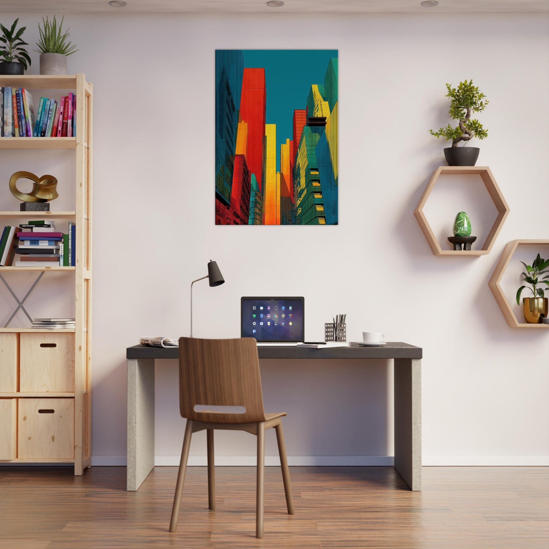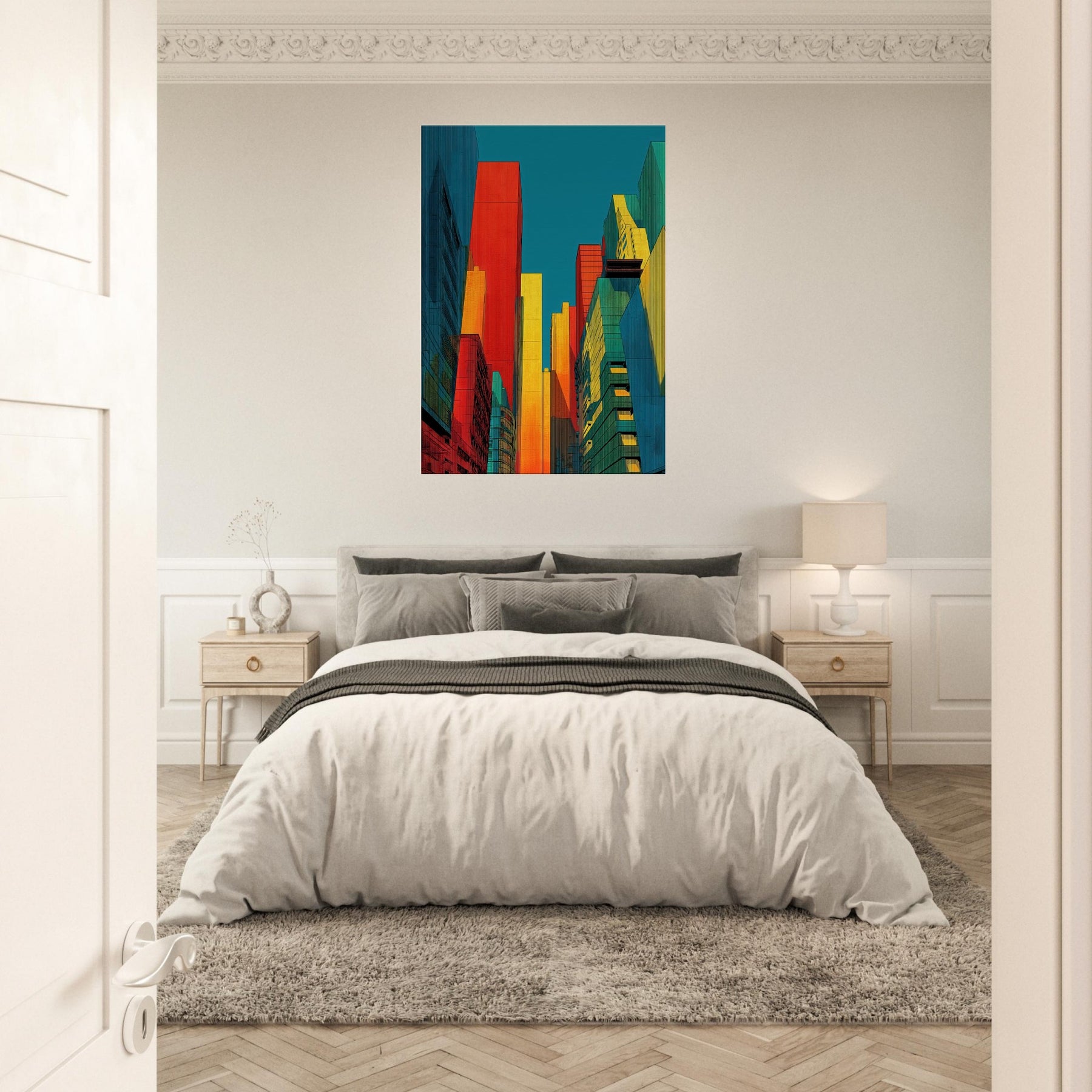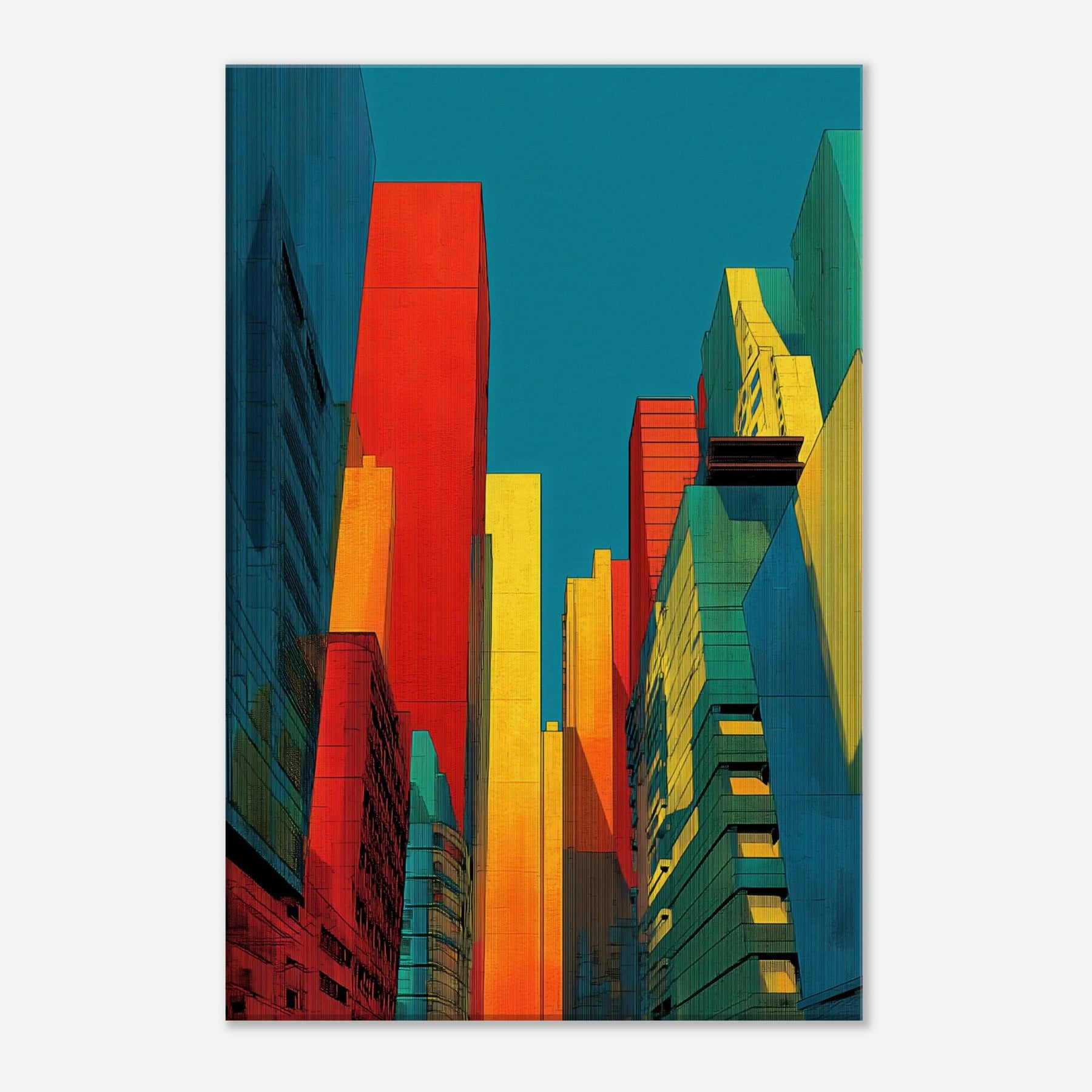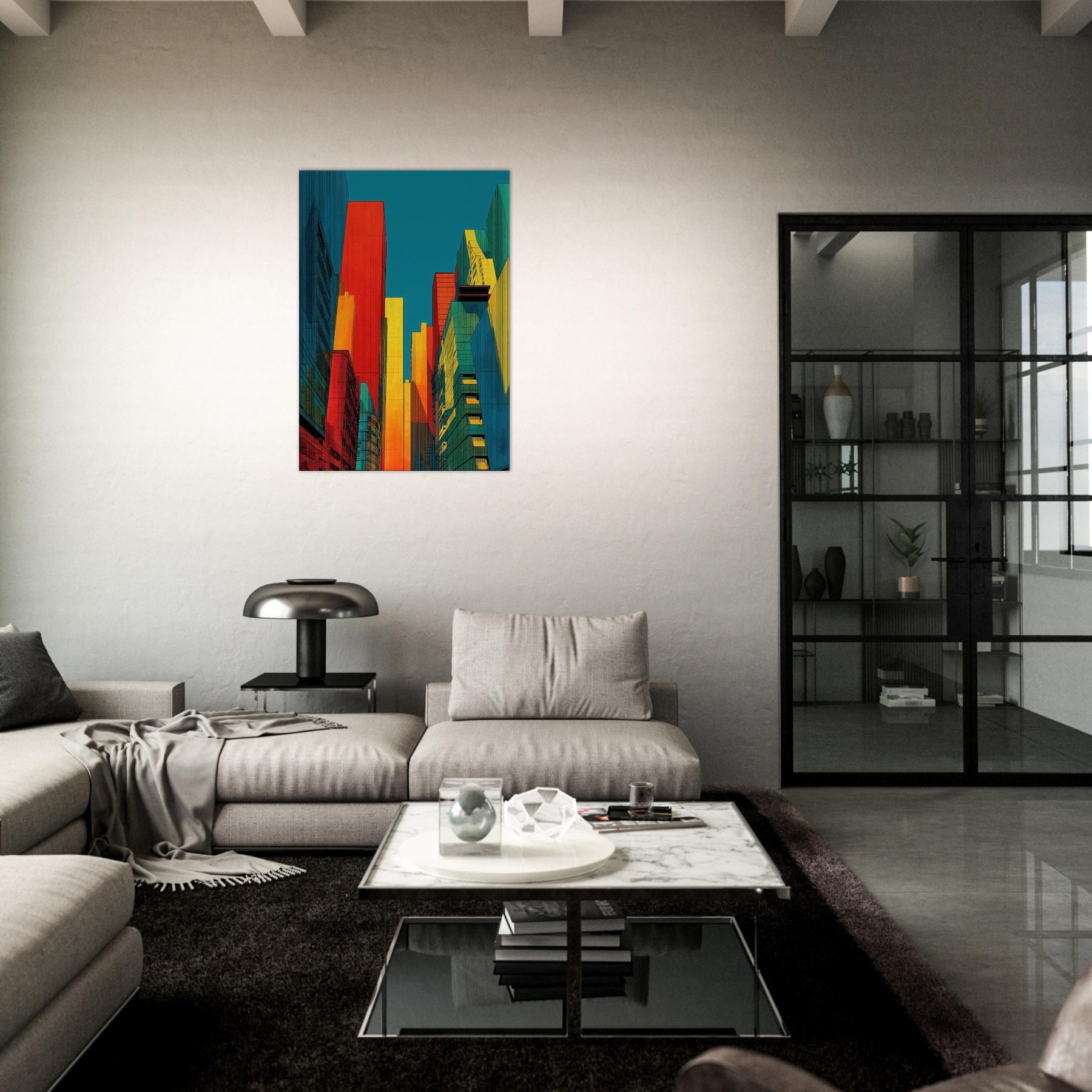 Tokyo unfurls in luminous blocks of color, an abstract city made of light and rhythm. This composition climbs with towering reds, yellows, teals, and greens that pulse like neon streets at night. The texture feels almost tactile sunlit glass, shadowed alleys, distant trains creating a sense of motion within stillness. Hung in a living space, it invites quiet awe and conversation, turning a wall into a window onto urban energy and serene, modern sophistication.