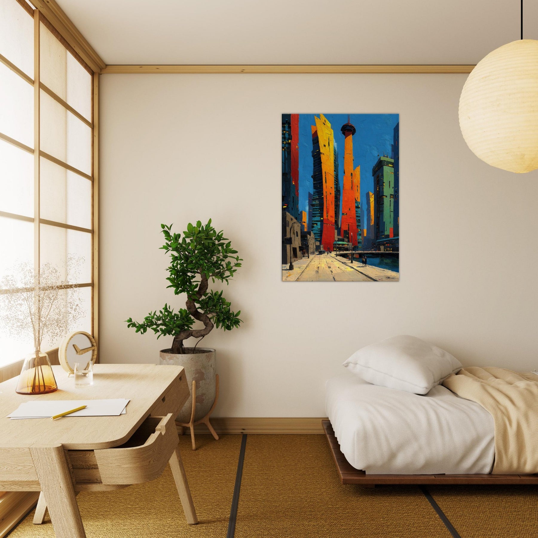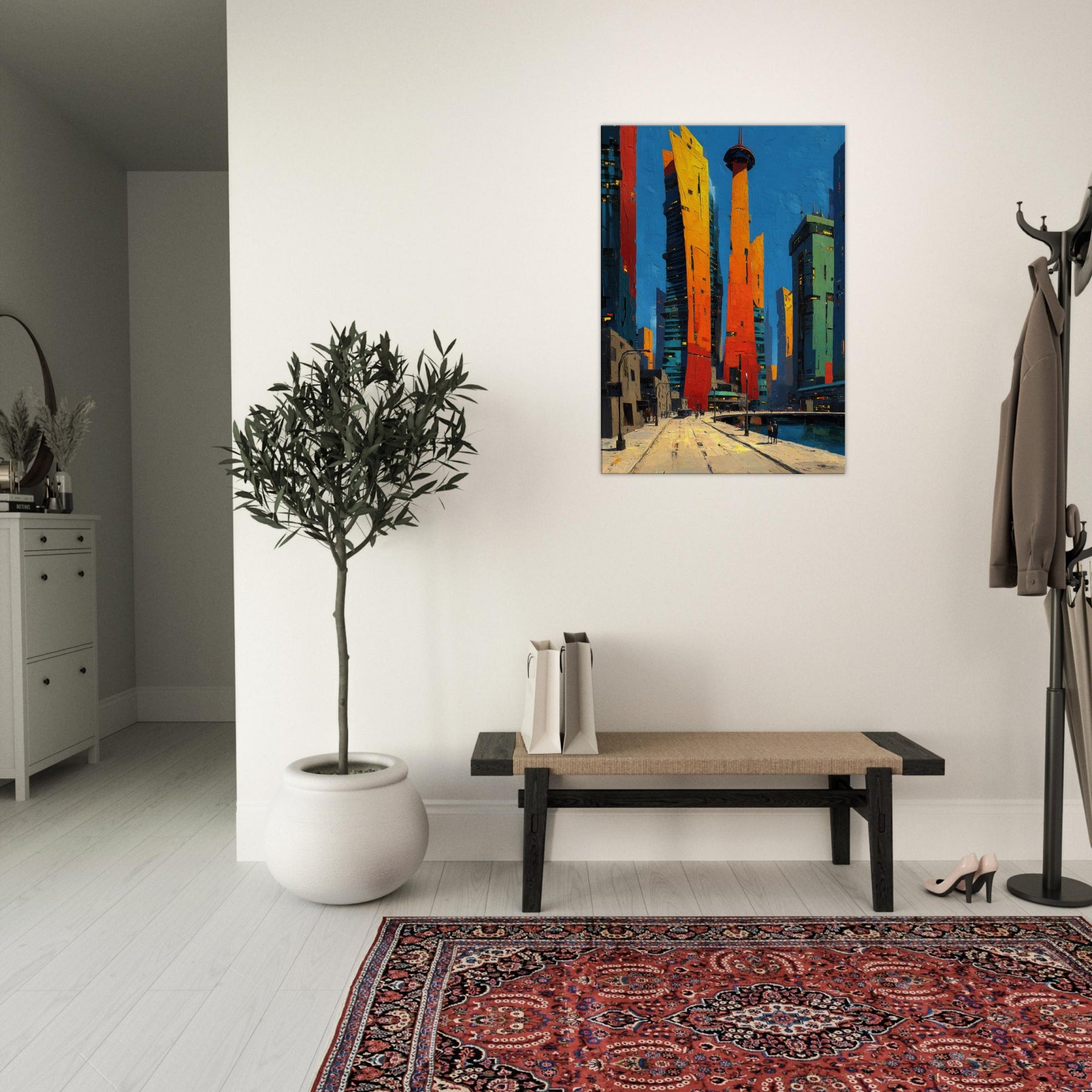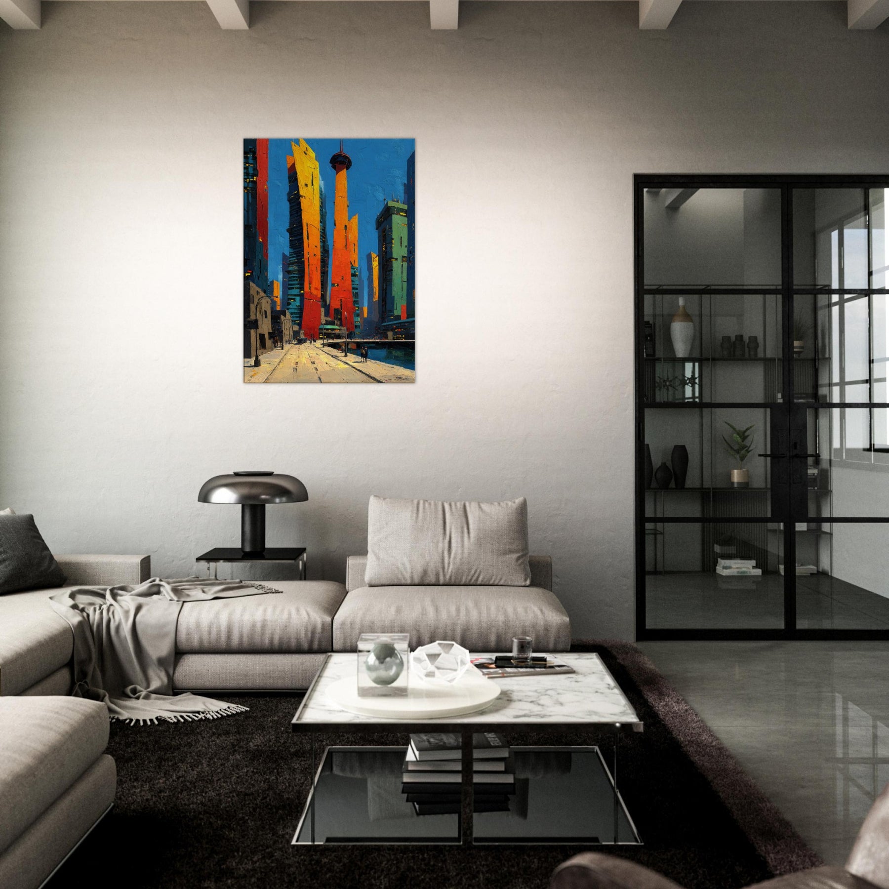 This Cyberpunk City piece unfolds as an electric dream, where towering fins of color rise like neon beacons against a cobalt dusk. The abstract forms hum with motion, casting a magnetic glow that warms wood and fabric alike. Walk a roomful of light and you’ll feel the pulse of distant streets, the hum of rain on glass, and the whisper of city secrets. A perfect centerpiece for living spaces seeking bold, cinematic atmosphere and modern urban poetry.