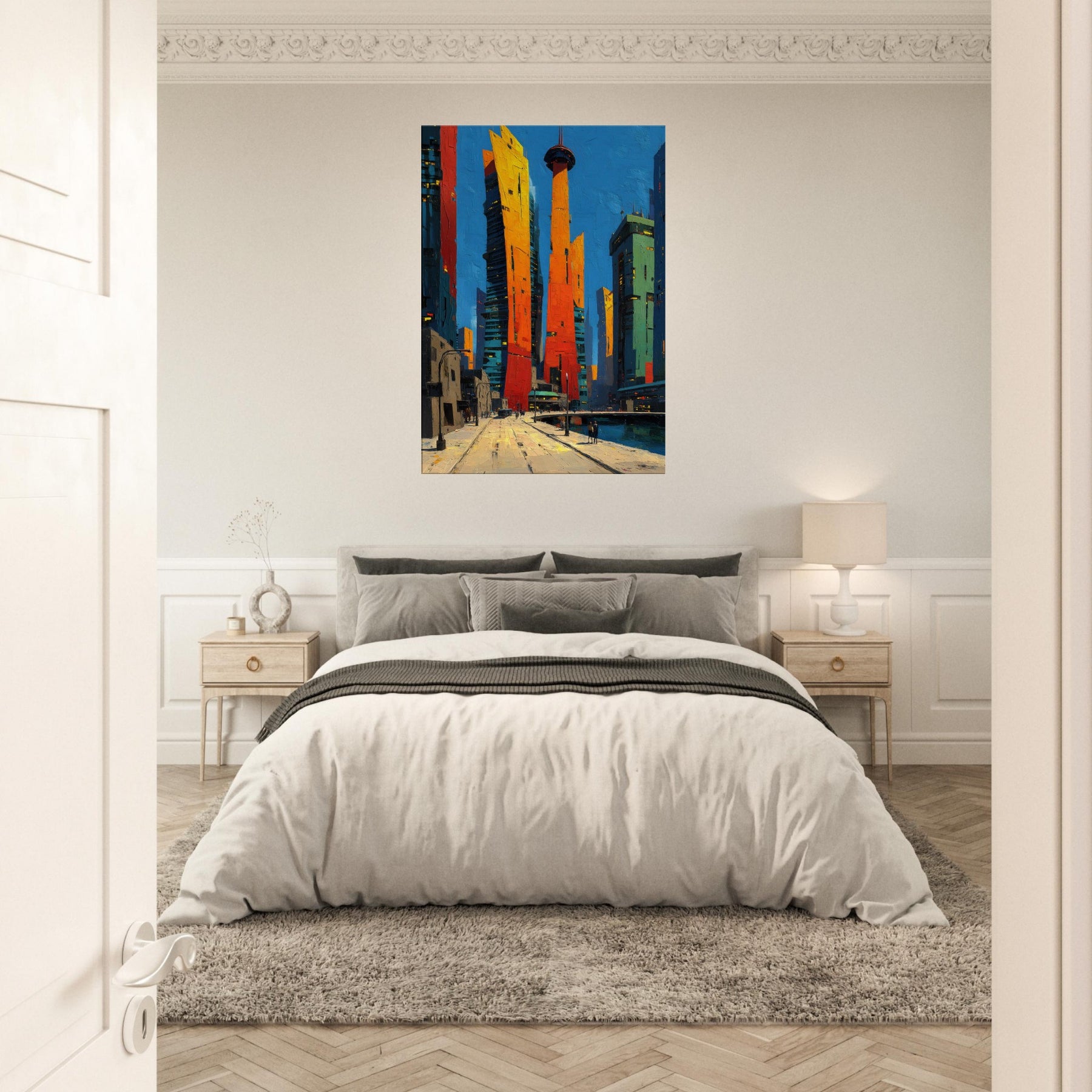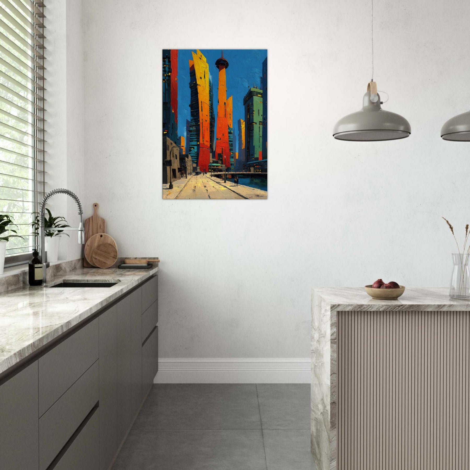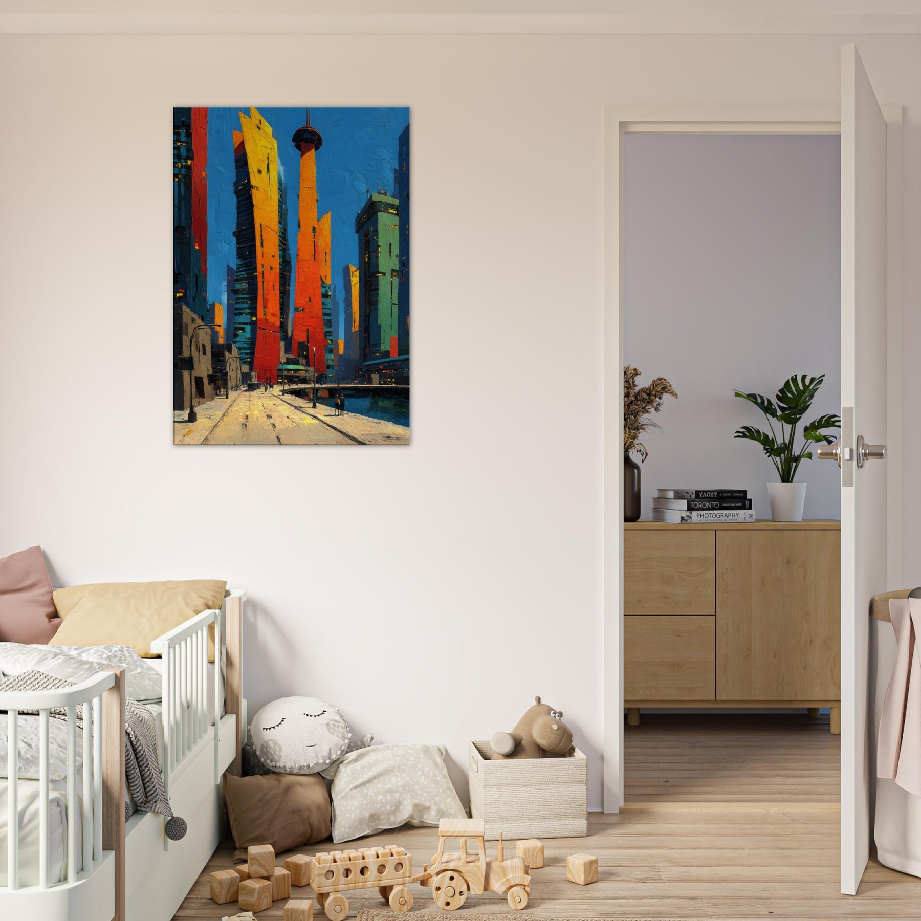 This Cyberpunk City piece unfolds as an electric dream, where towering fins of color rise like neon beacons against a cobalt dusk. The abstract forms hum with motion, casting a magnetic glow that warms wood and fabric alike. Walk a roomful of light and you’ll feel the pulse of distant streets, the hum of rain on glass, and the whisper of city secrets. A perfect centerpiece for living spaces seeking bold, cinematic atmosphere and modern urban poetry.