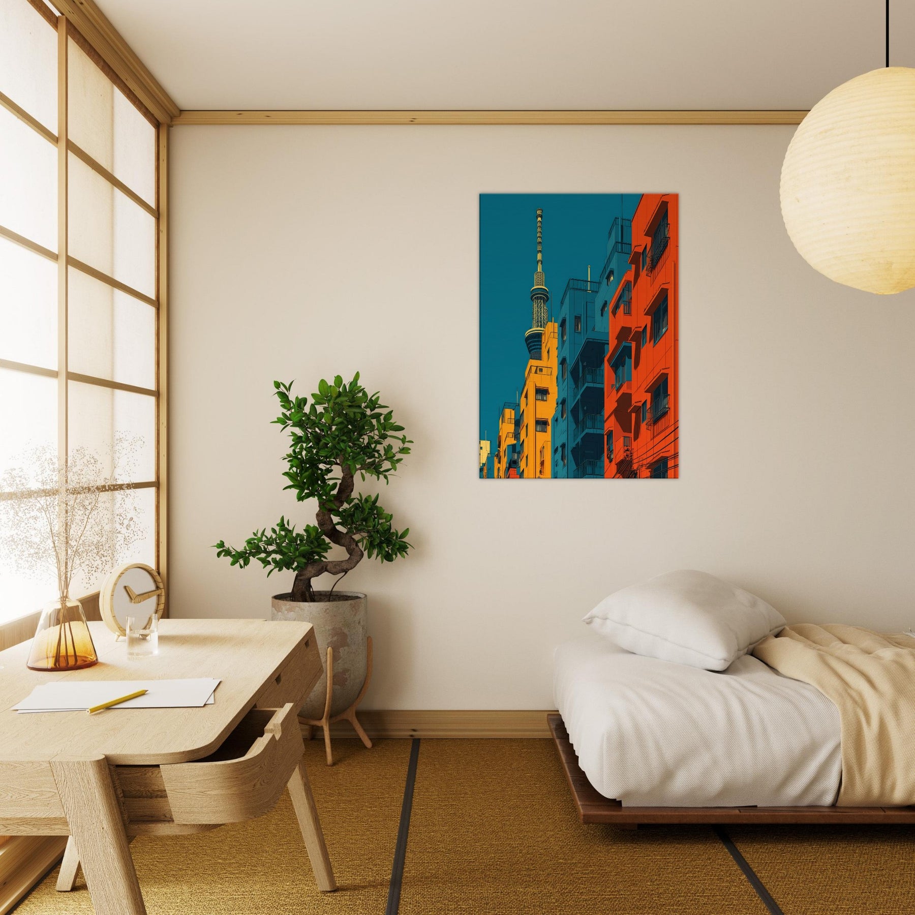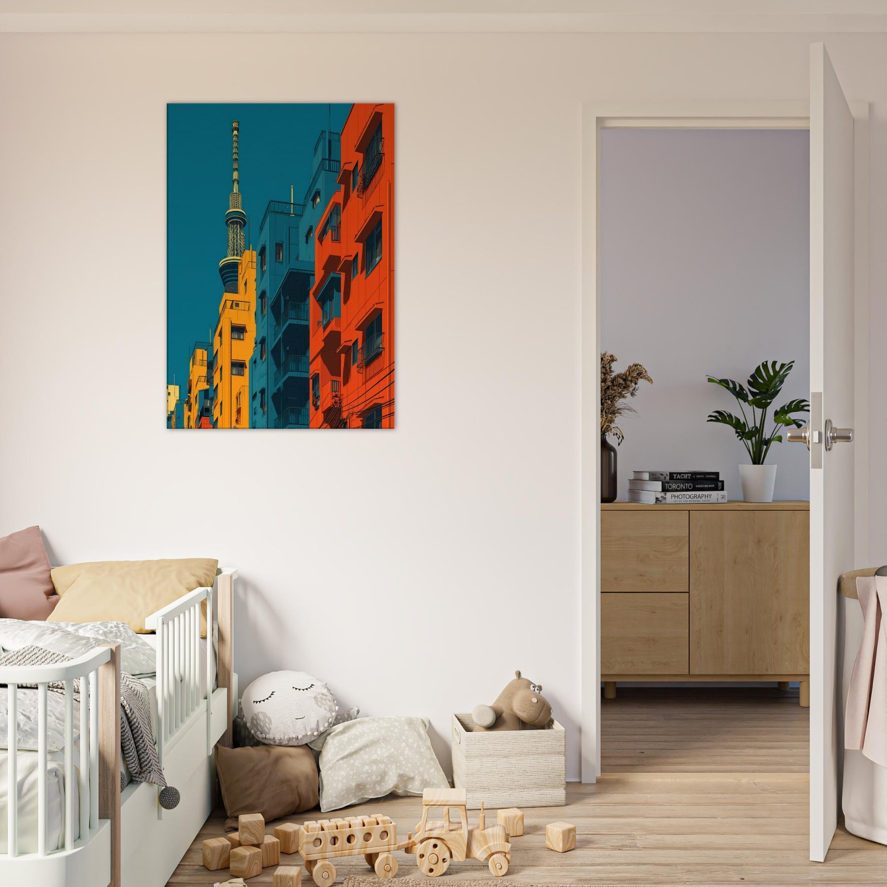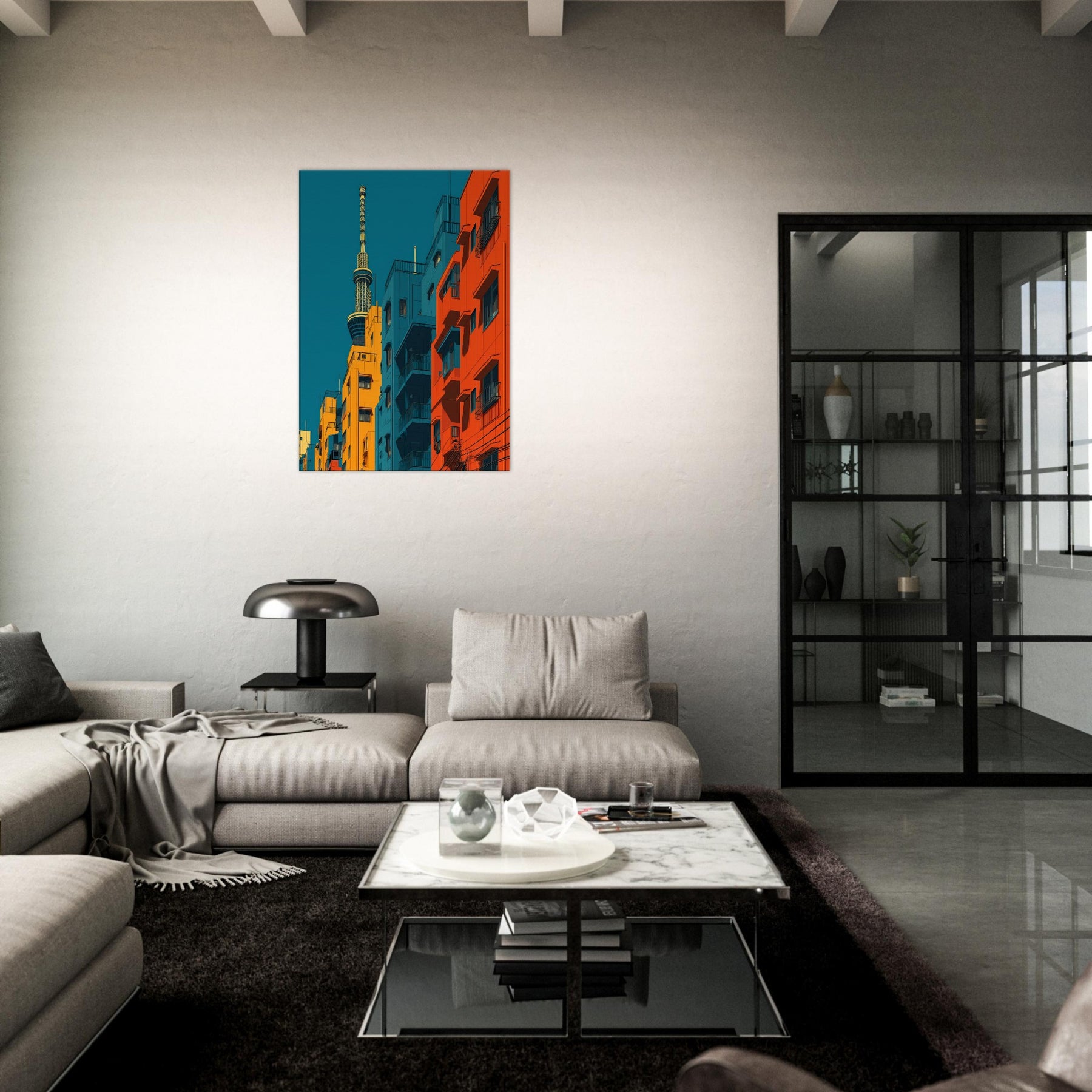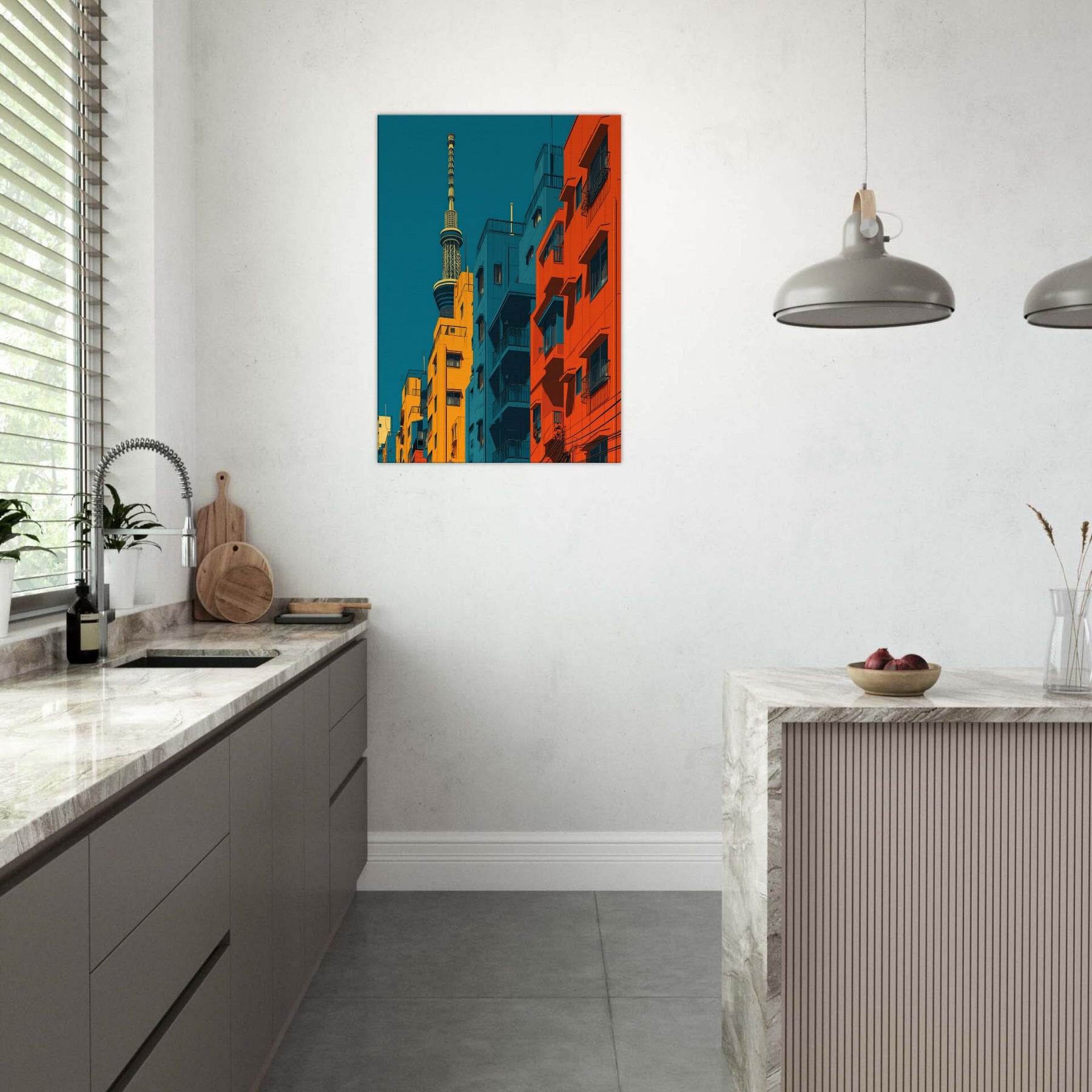 Tokyo rises in a chorus of lines and light, captured as an abstract cityscape that breathes with color. This piece invites the viewer into a living room as if stepping onto a sunlit street at twilight, where turquoise shadows meet bold orange façades. The rhythm of balconies and towers creates a tactile pulse that warms neutral walls and sparks conversation. A statement of urban poetry, it enhances space with mood bright, urban, and endlessly cinematic.