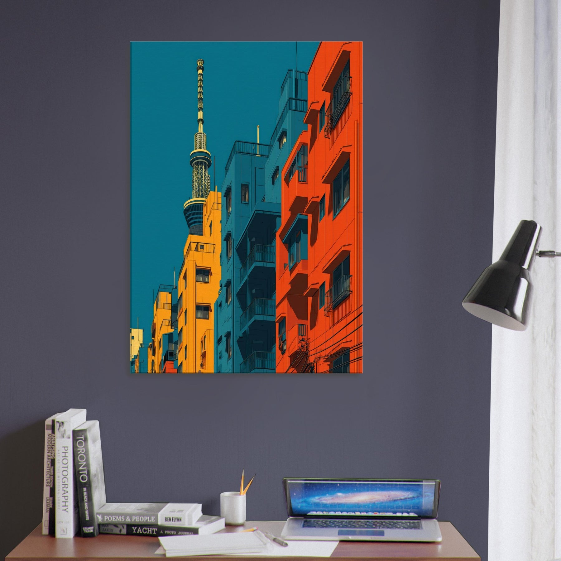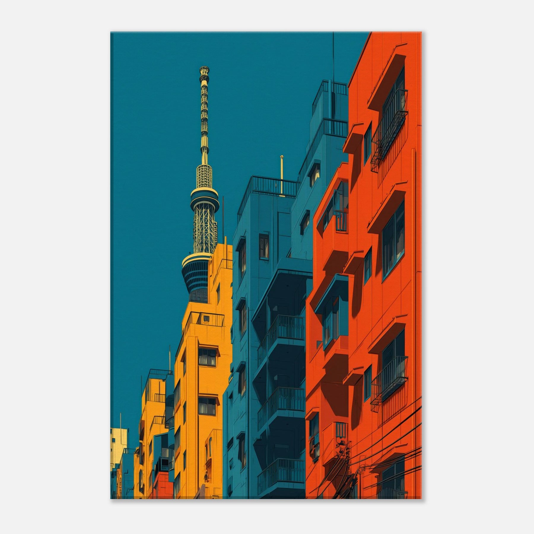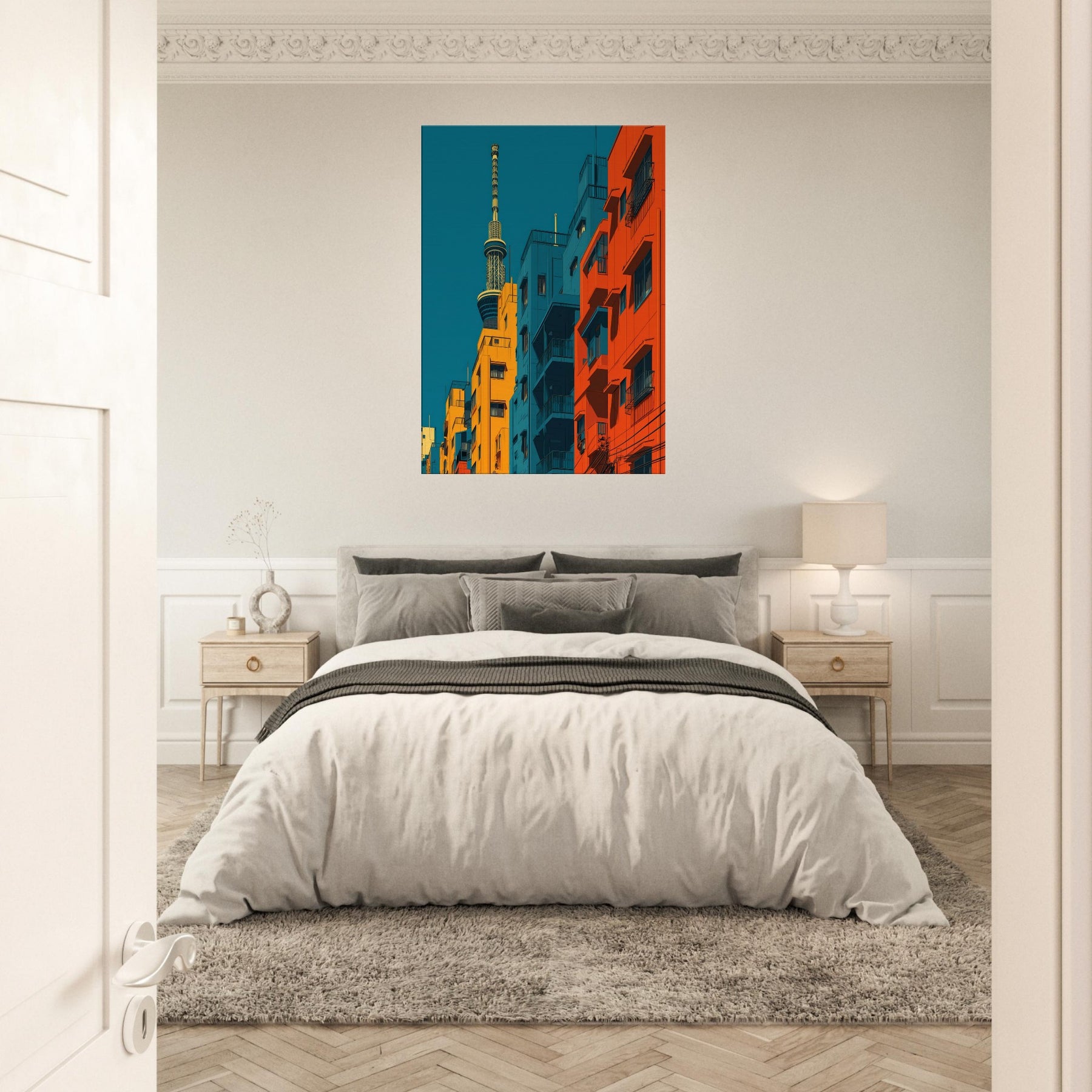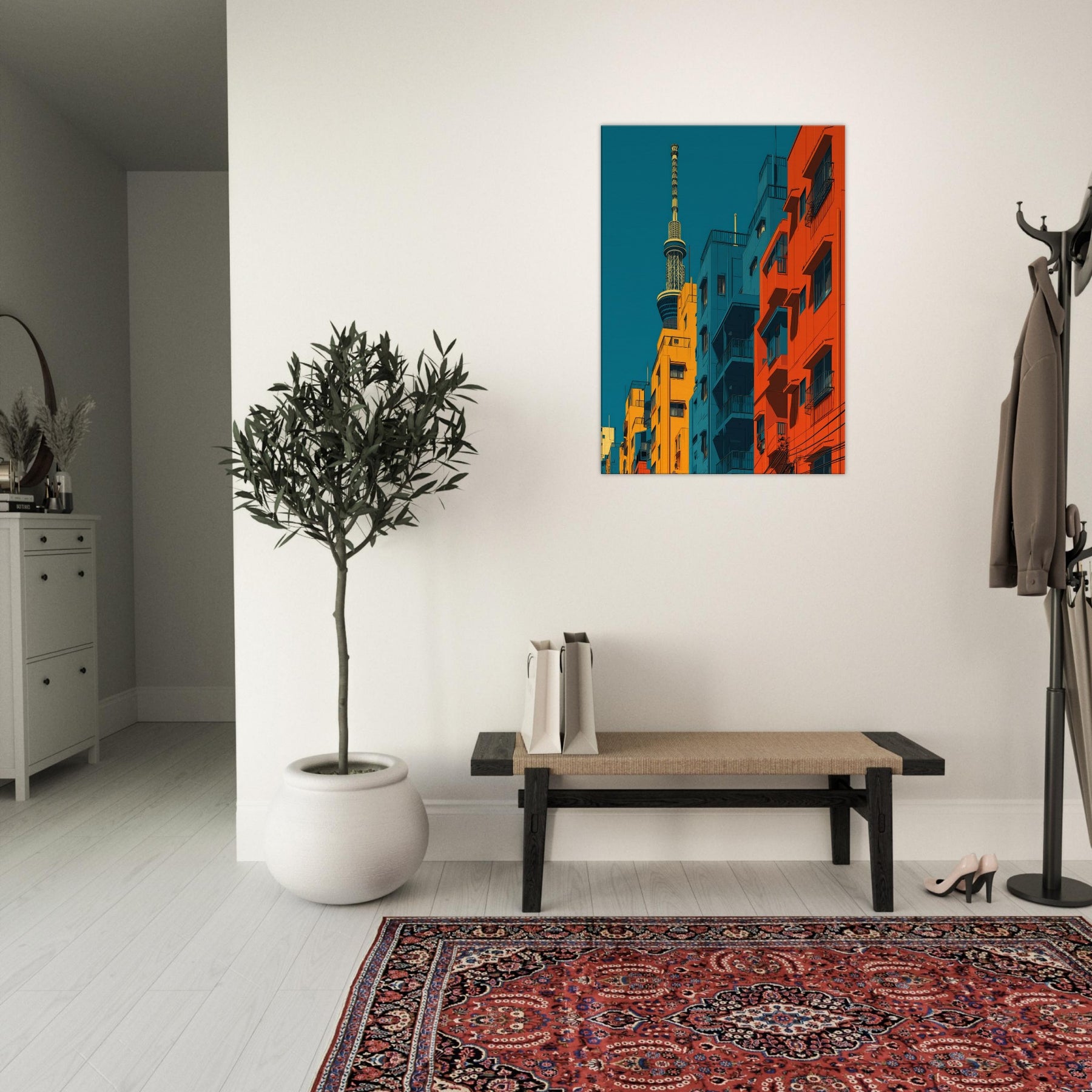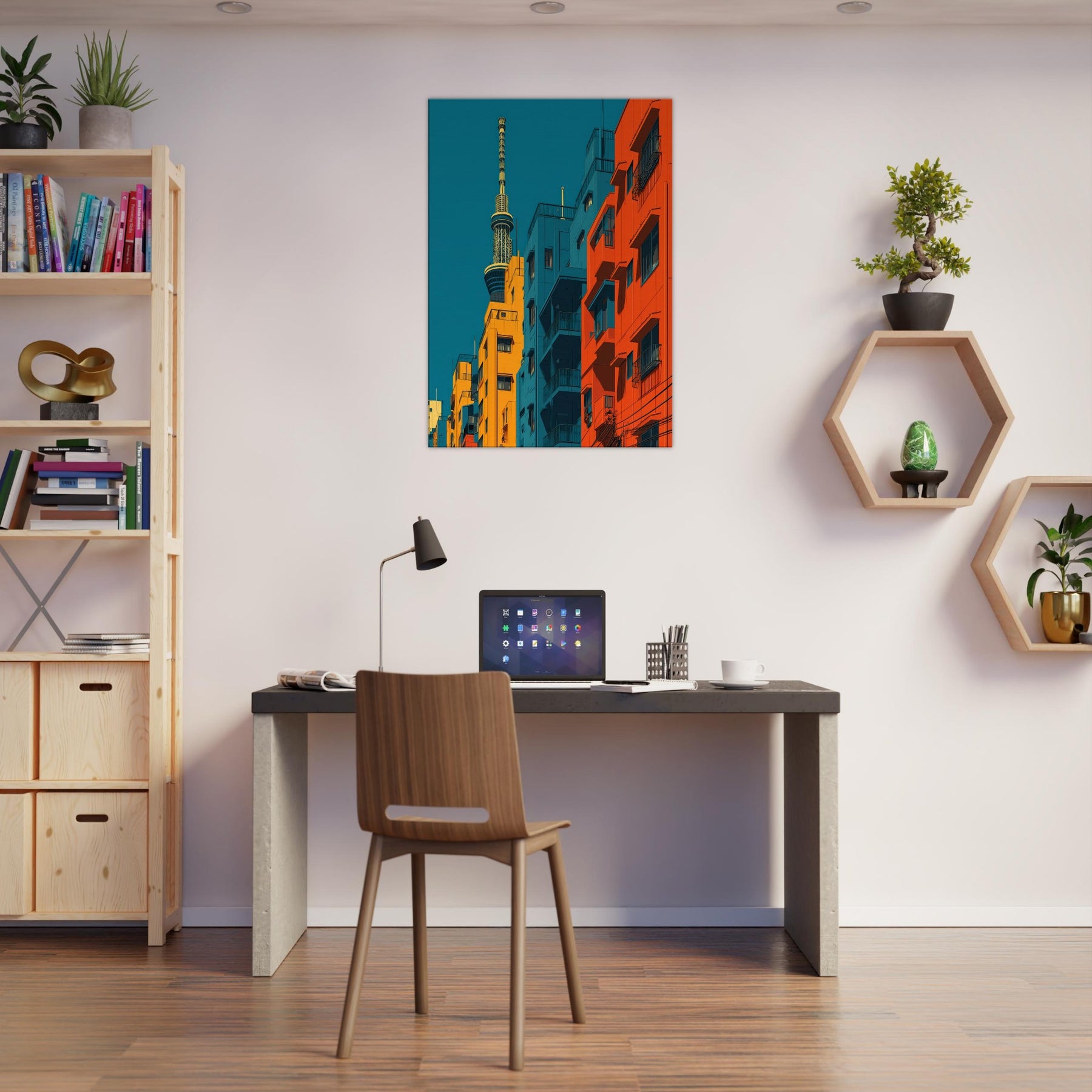 Tokyo rises in a chorus of lines and light, captured as an abstract cityscape that breathes with color. This piece invites the viewer into a living room as if stepping onto a sunlit street at twilight, where turquoise shadows meet bold orange façades. The rhythm of balconies and towers creates a tactile pulse that warms neutral walls and sparks conversation. A statement of urban poetry, it enhances space with mood bright, urban, and endlessly cinematic.