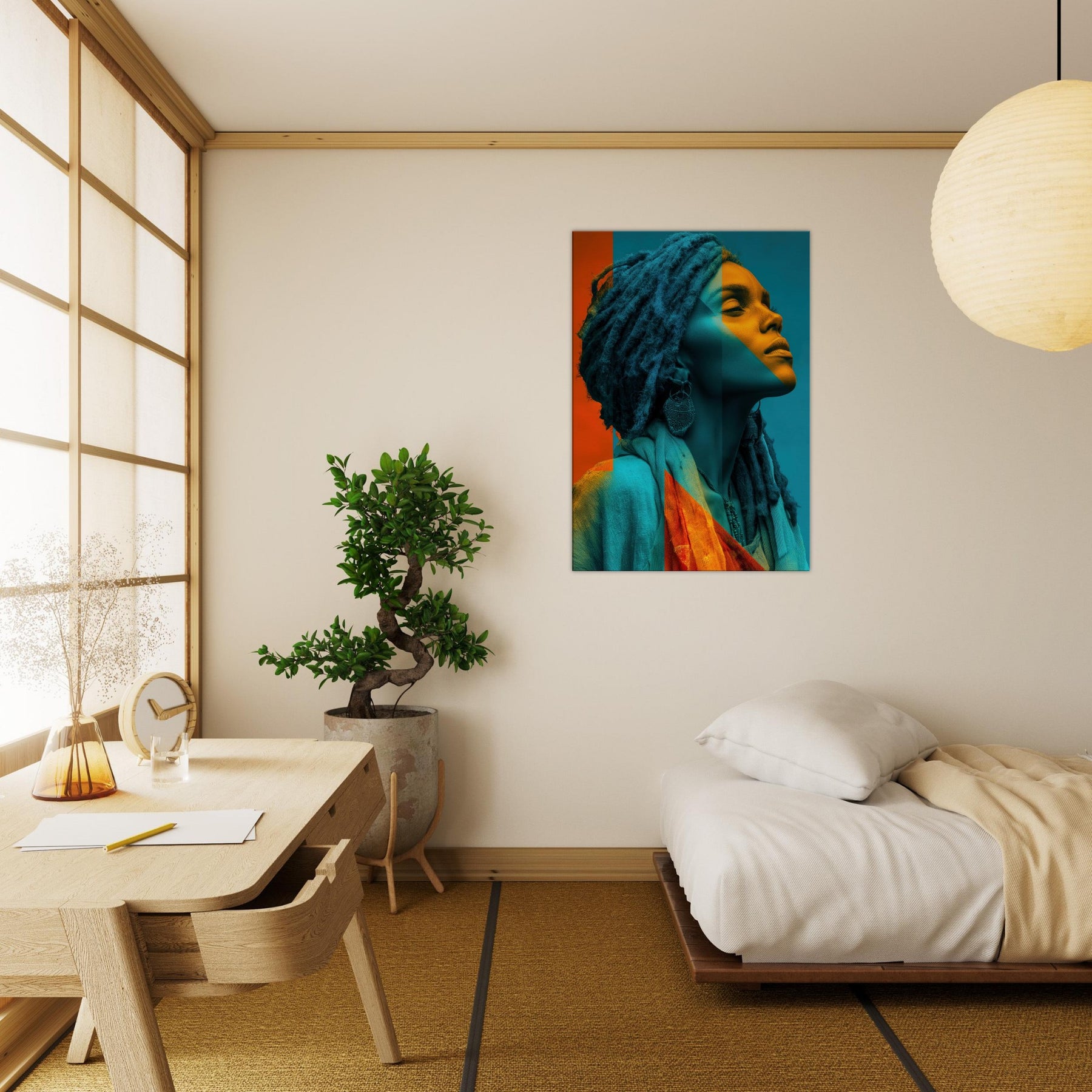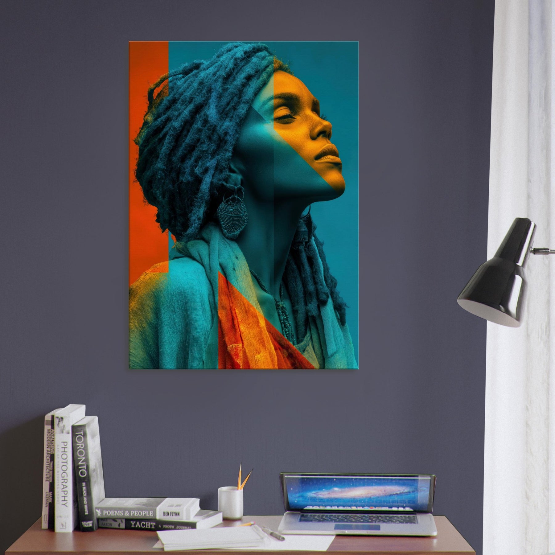 The African Woman unfolds in luminous layers, where color blocks skim the face and braid, giving an intimate, lyrical presence to your space. The abstract panels skim across her profile like whispered breaths, catching warmth and shade in a single, living frame. This piece invites contemplation, a calm pulse that deepens a lounge, study, or bedroom. Let the sensuous textures and magnetic gaze fuse with textiles, metals, and wood, transforming walls into a sanctuary of memory, courage, and grace.