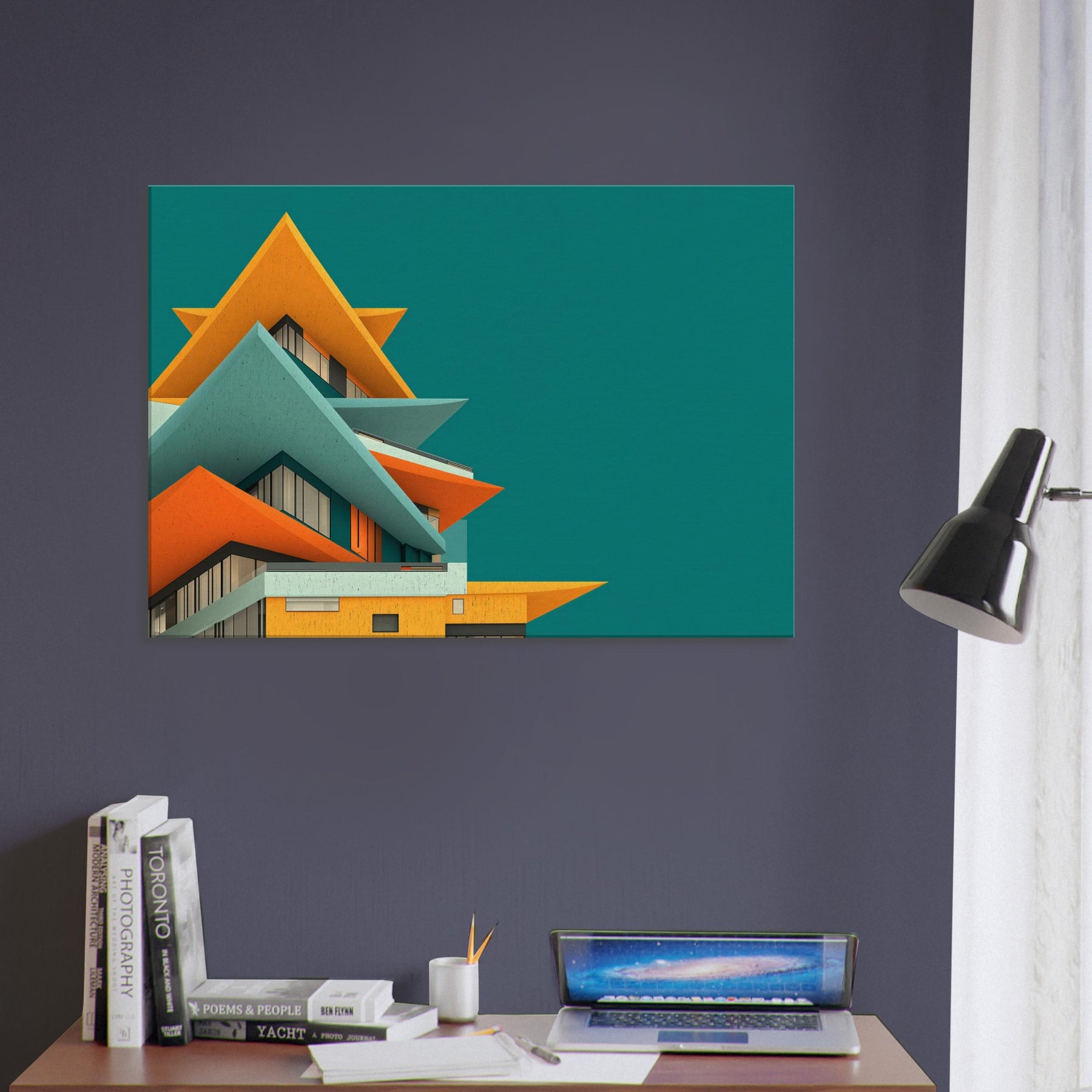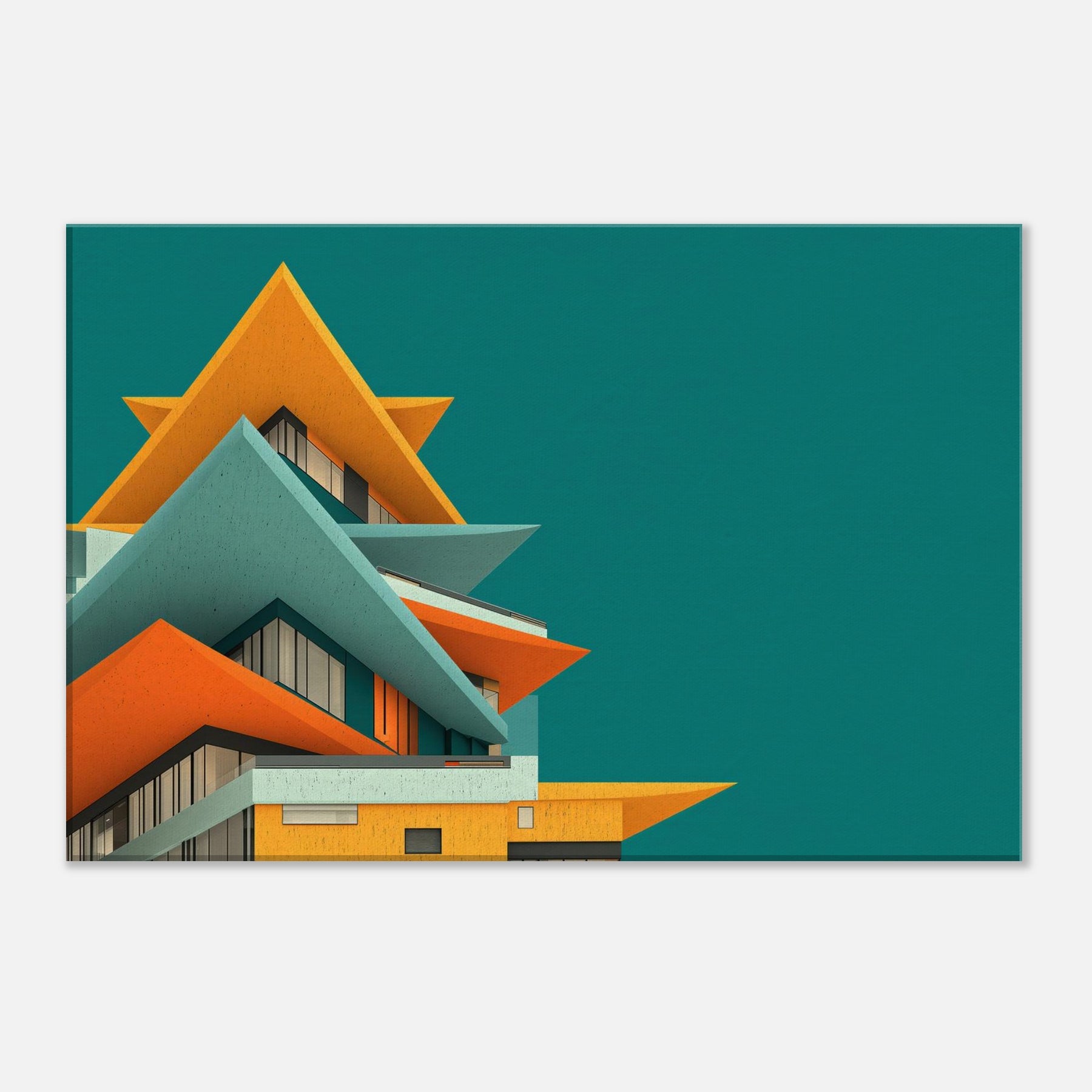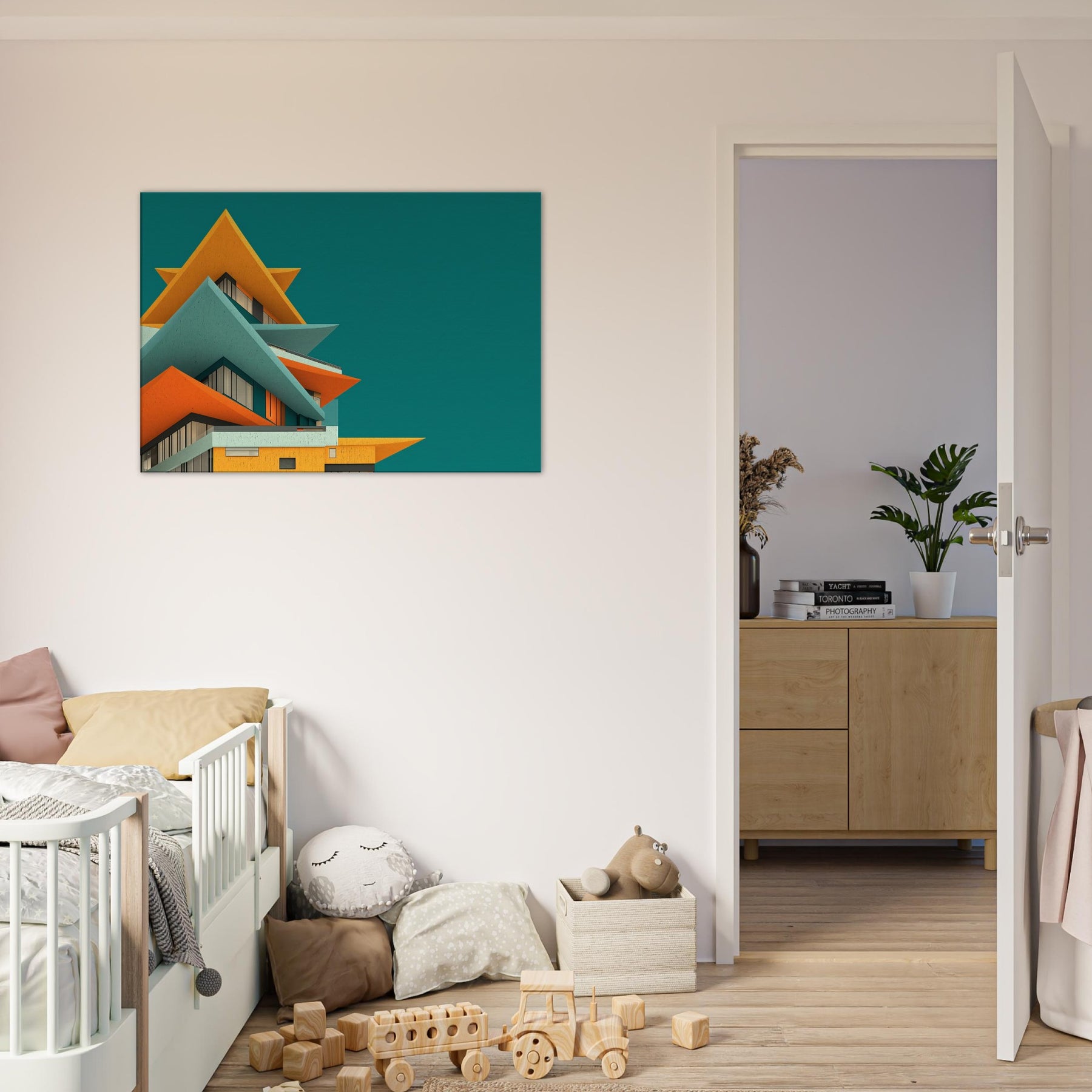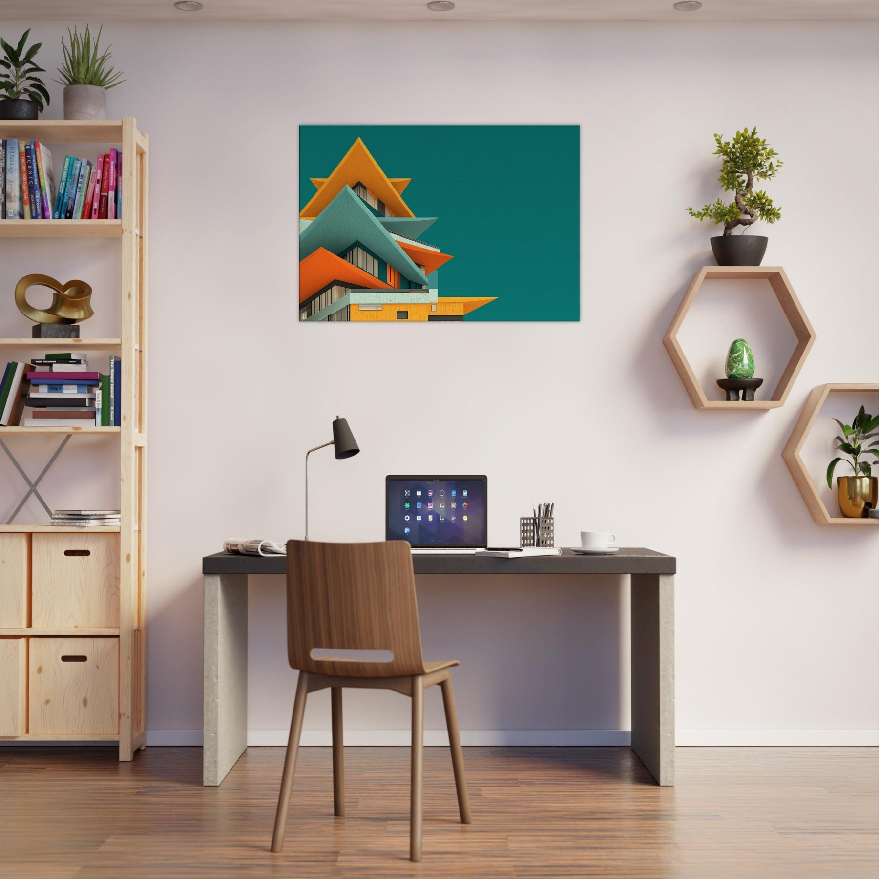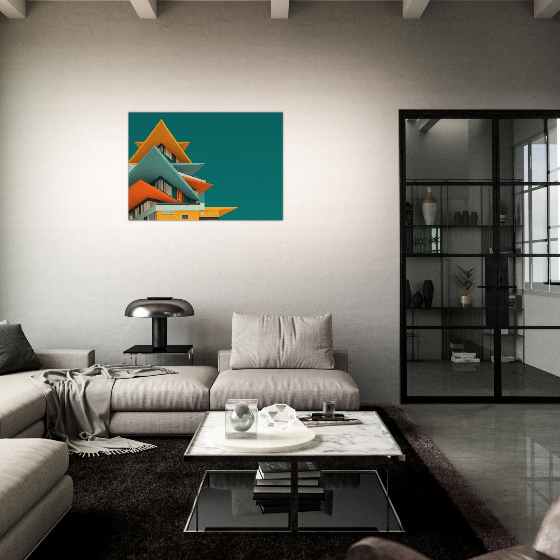 Step into a cityscape reimagined as a luminous dance of geometry. The Pagoda Roofline unfolds in bold teal and sunlit orange, its stacked planes catching light and casting kinetic shadows across your wall. This abstract composition blends architecture with emotion, a calm, outdoor spaces in a room mood that invites lingering gaze and quiet inspiration. Perfect above a sofa or desk, it adds a sculptural focal point, elevating both color and mood, while harmonizing with modern textures and daily rituals.