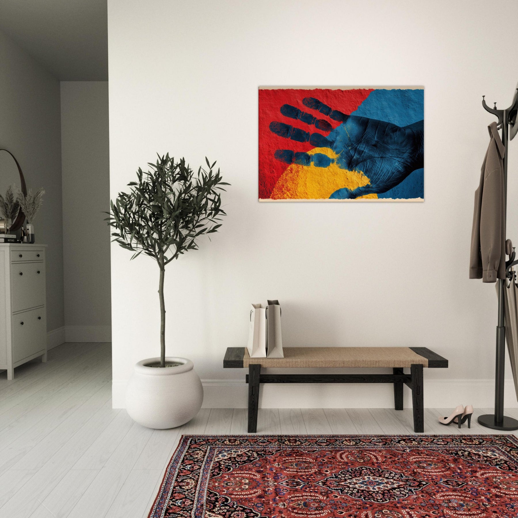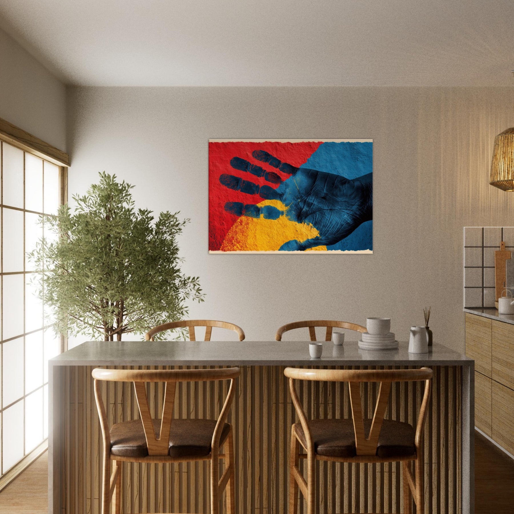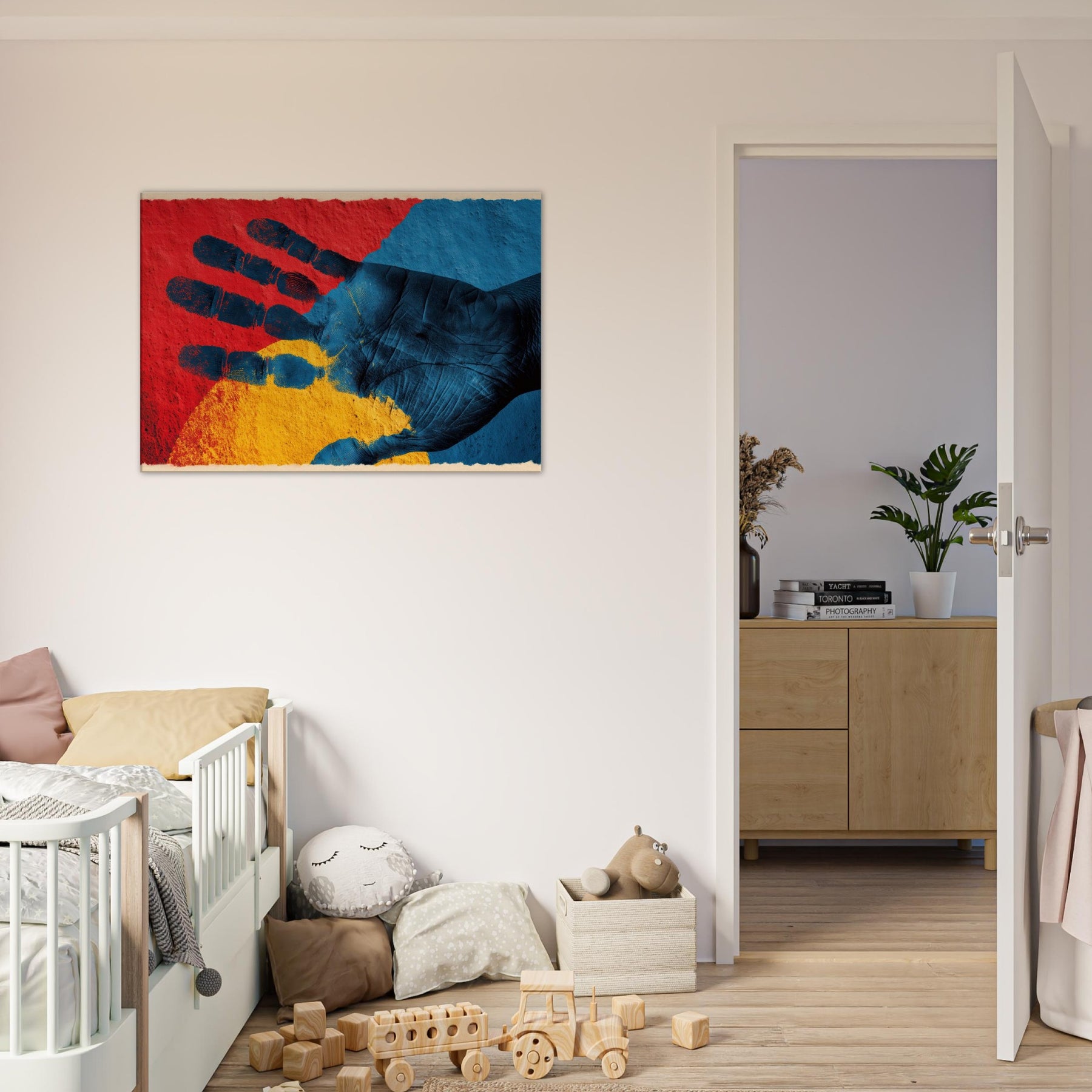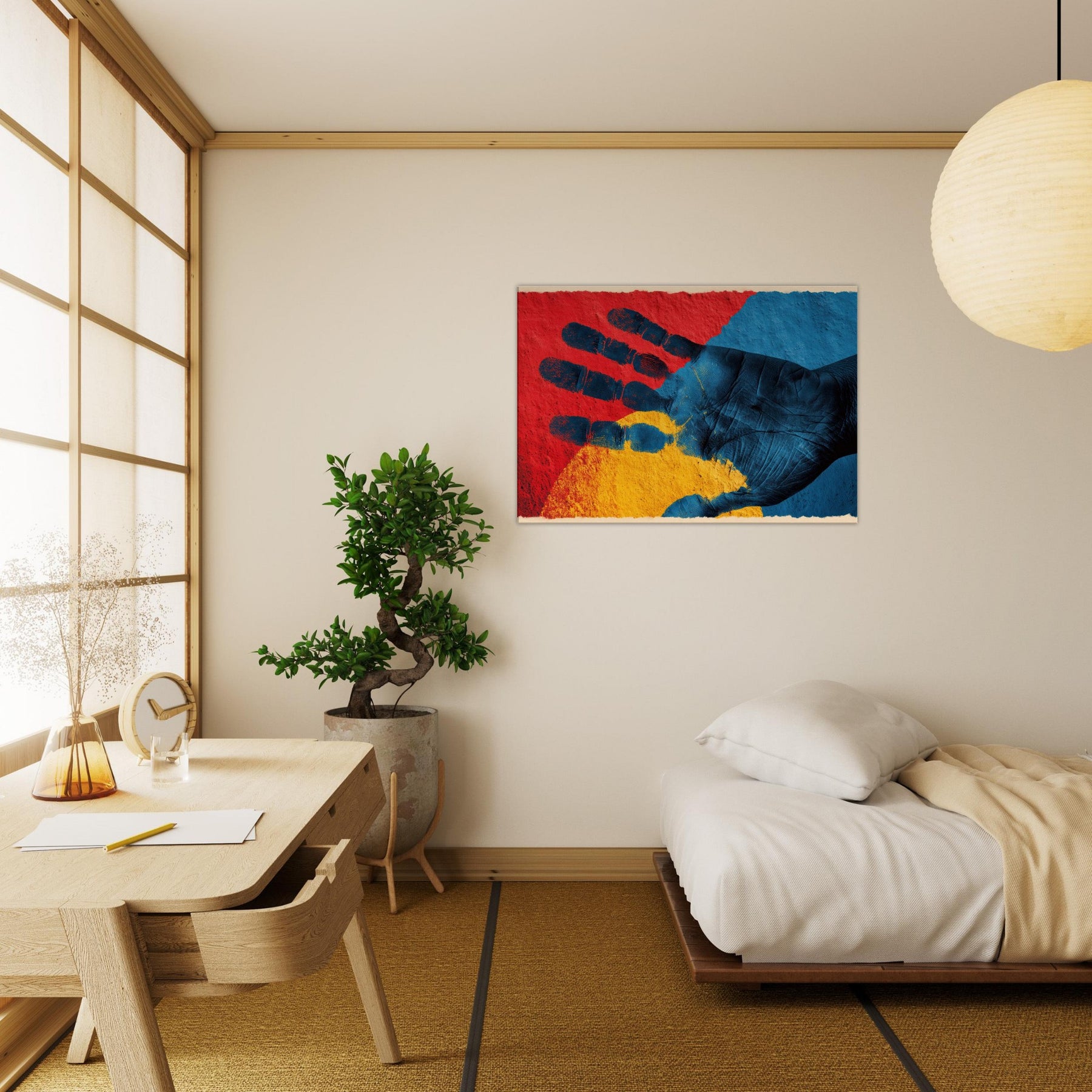 Let your space inhale with the quiet power of a Palmistry Hand rendered in abstract dreamlight. This piece threads crimson, cobalt, and sun kissed gold into a tactile palm, where texture and shadow invite touch and imagination. It radiates a mystical mood that warms a living room or study, turning walls into a portal for intuition and calm. With its poetic rhythm and sensorial depth, the artwork breathes personality into any corner, making everyday moments feel generously dramatic.