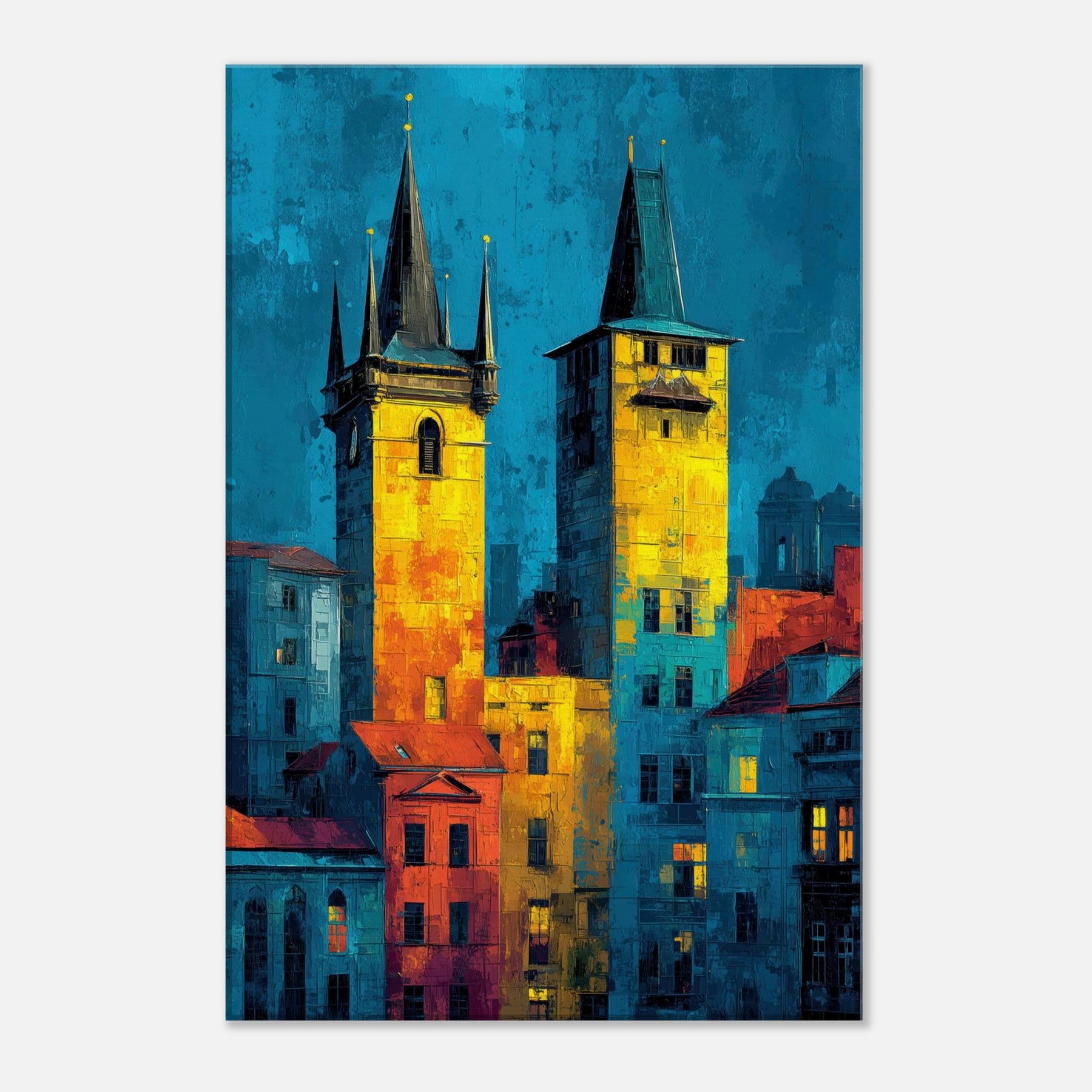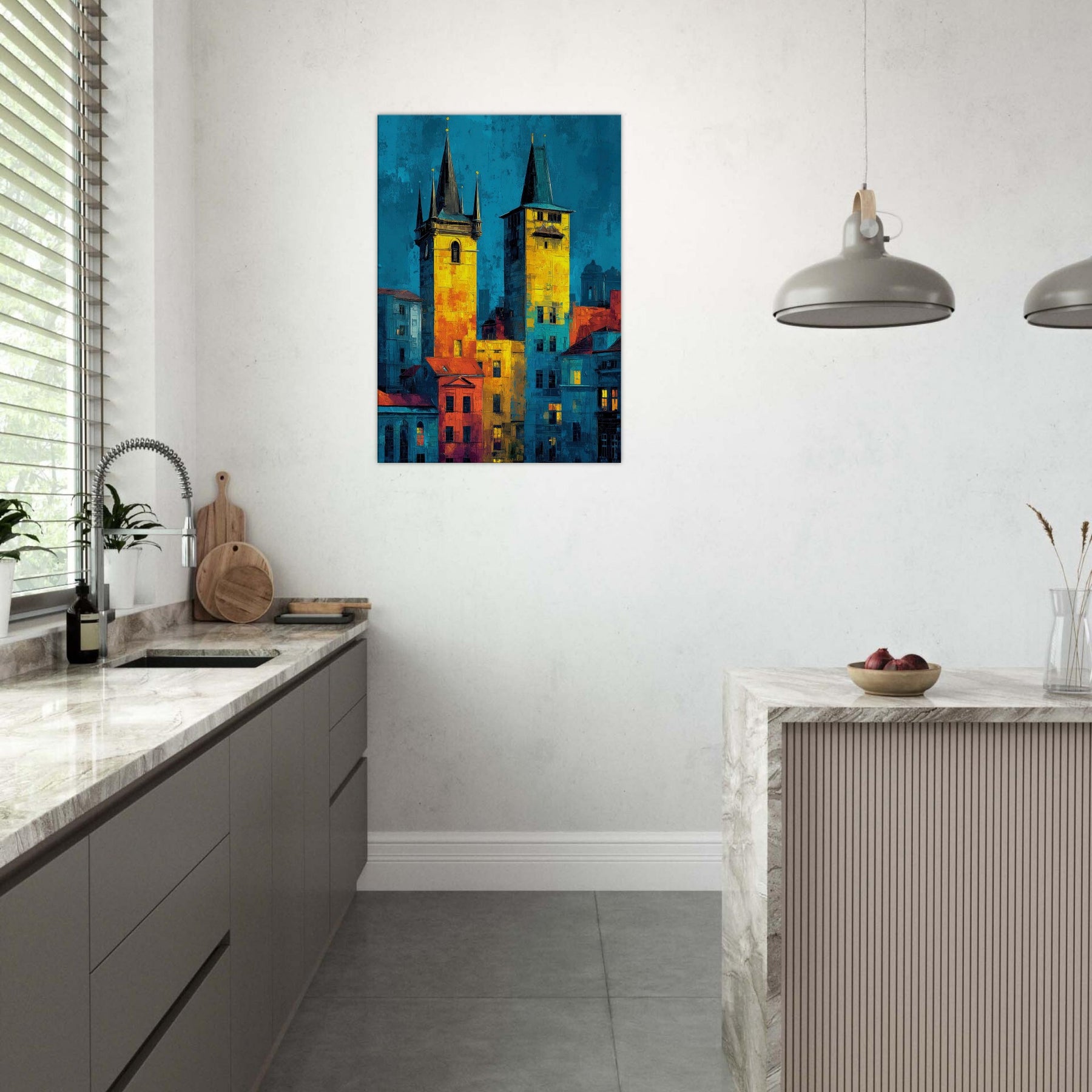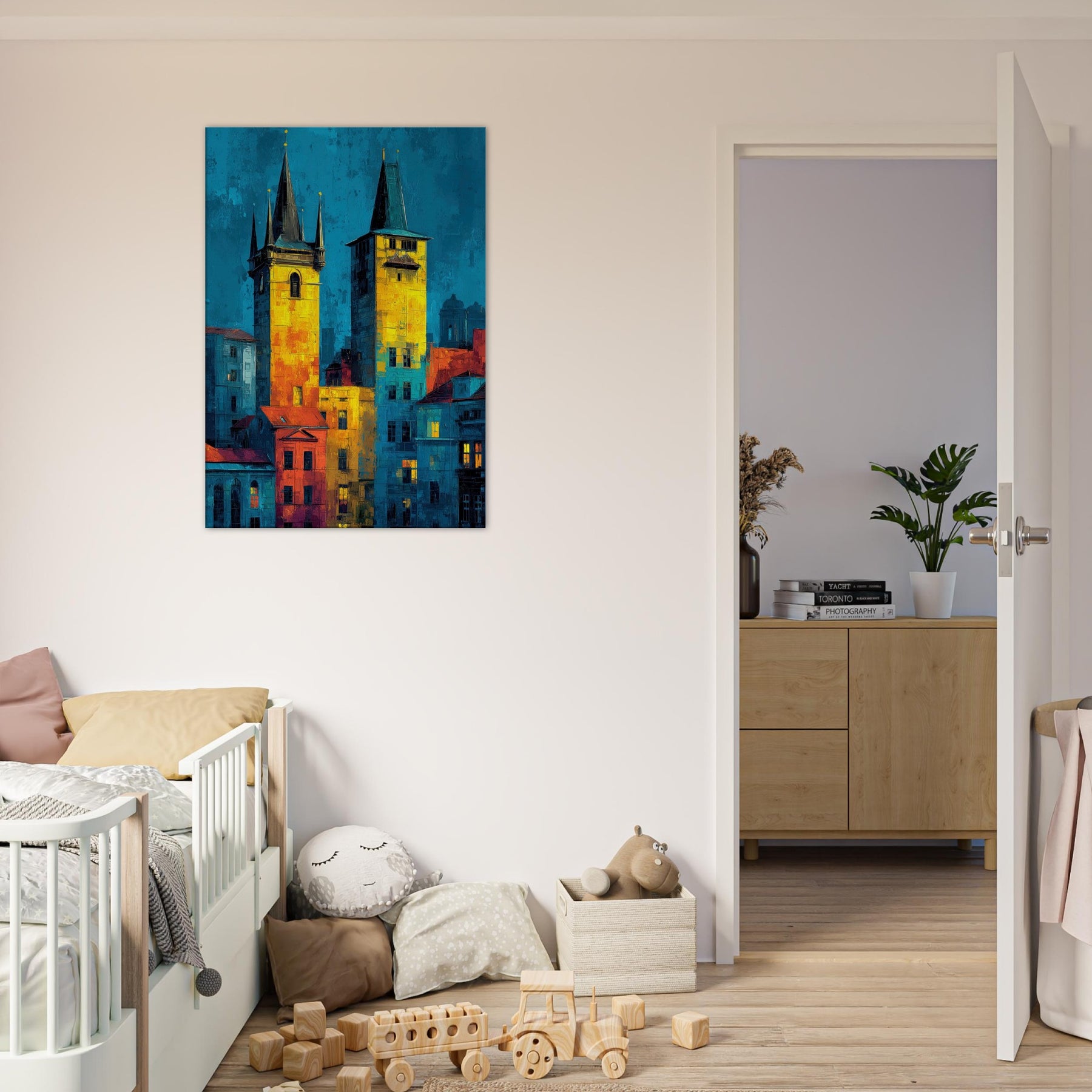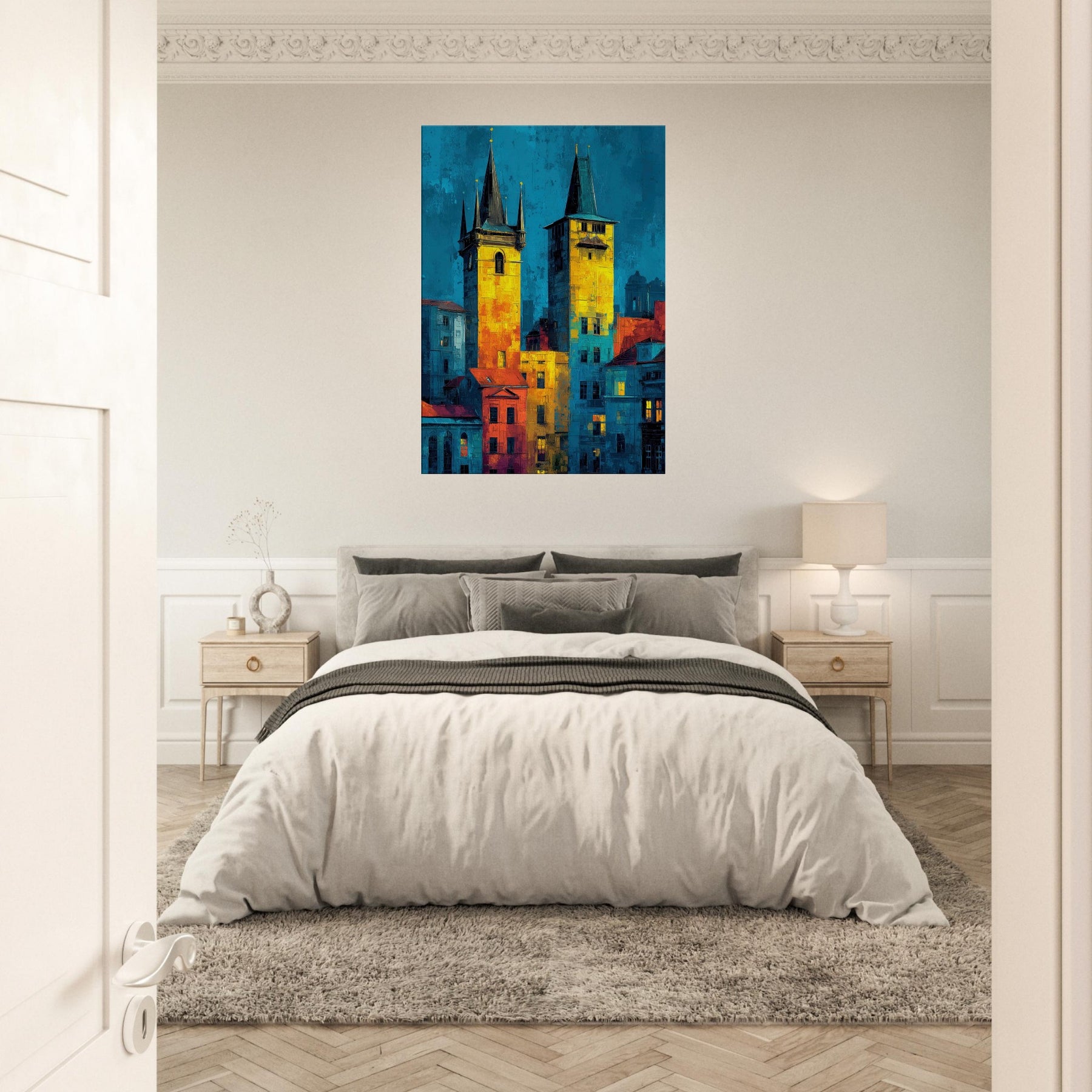 Immerse your space in a horizon of color where Prague rises in bold, sunlit towers. This artwork stitches the city's charm into a radiant tapestry of warm yellows, coral rooftops, and cobalt skies, inviting soft reflections in the living room or study. Each layered hue hums with memory, the morning bells, lantern glow, and street conversations, so your walls carry the quiet drama of a river side evening and the pulse of a timeless city.