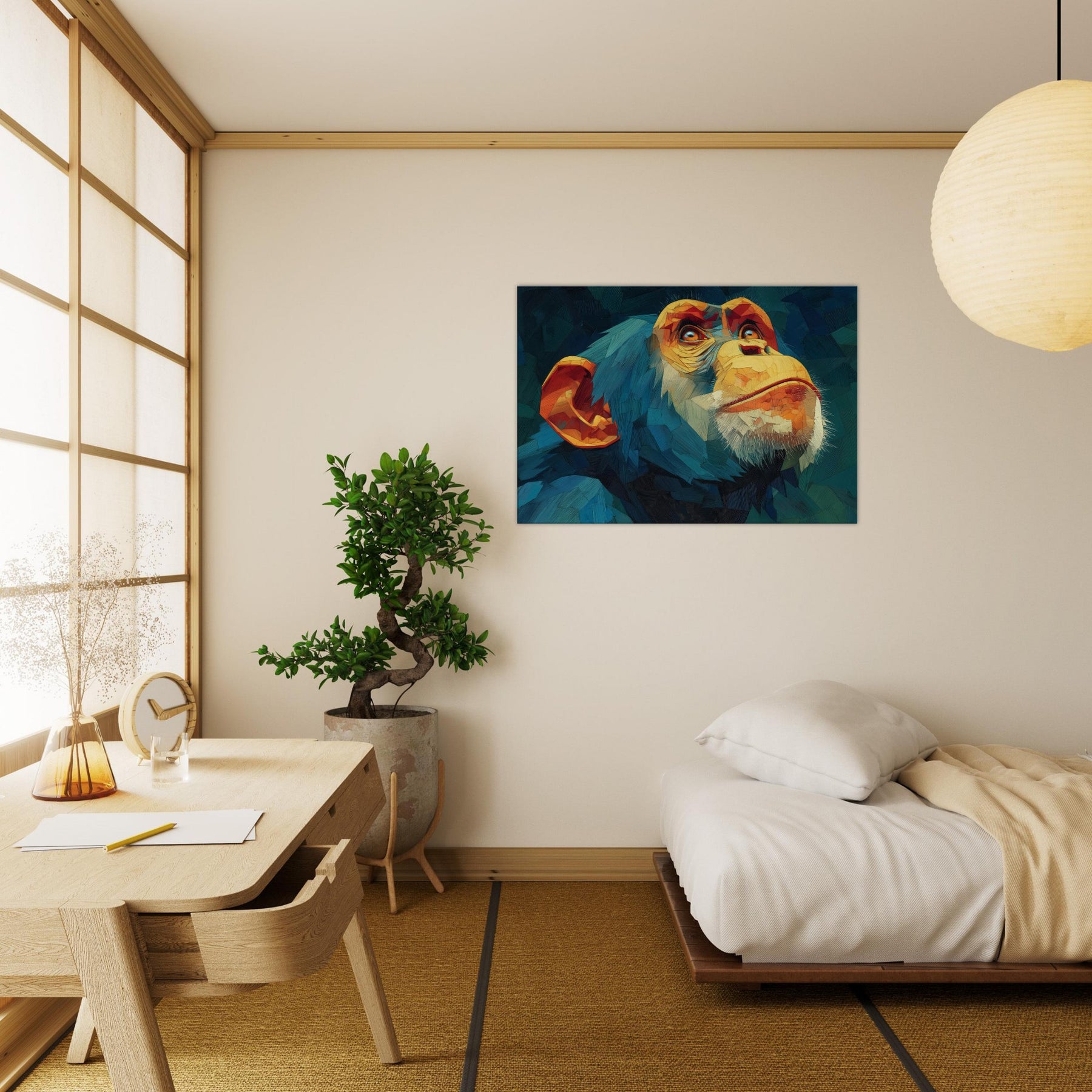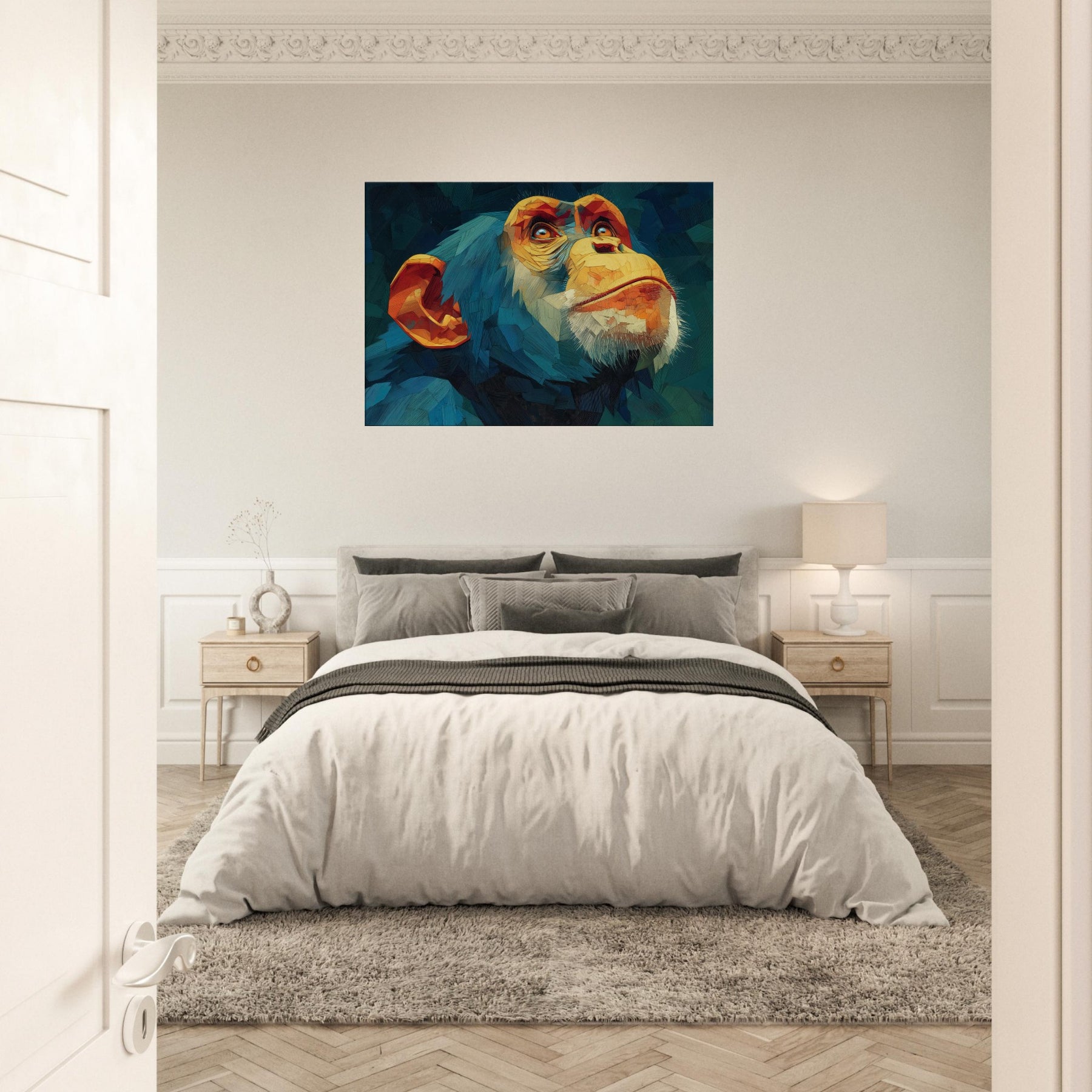 Emerging from a mosaic of saturated blocks, the Monkey seems to lean toward the room with a wise, insistent gaze. This abstract study fuses warmth and momentum amber, coral and cobalt collide in a kinetic stillness that softens corners and nourishes light. It invites quiet reflection during dawn coffee or evening conversations, turning a plain wall into a living moment. The piece feels both playful and profound, a bold focal point that amplifies texture, mood, and studio style calm.