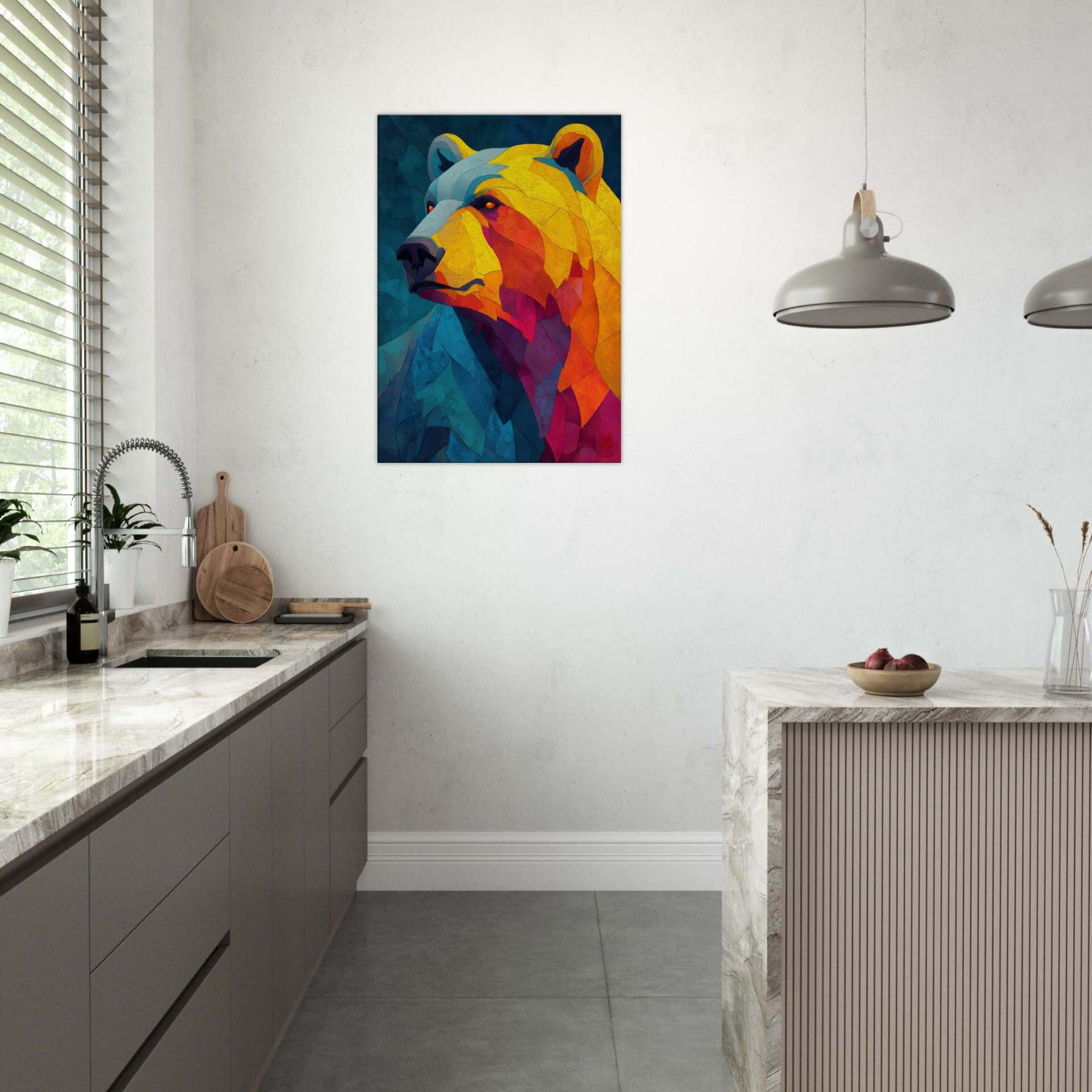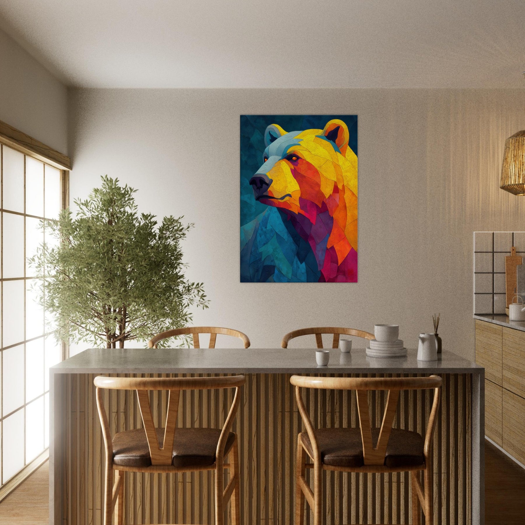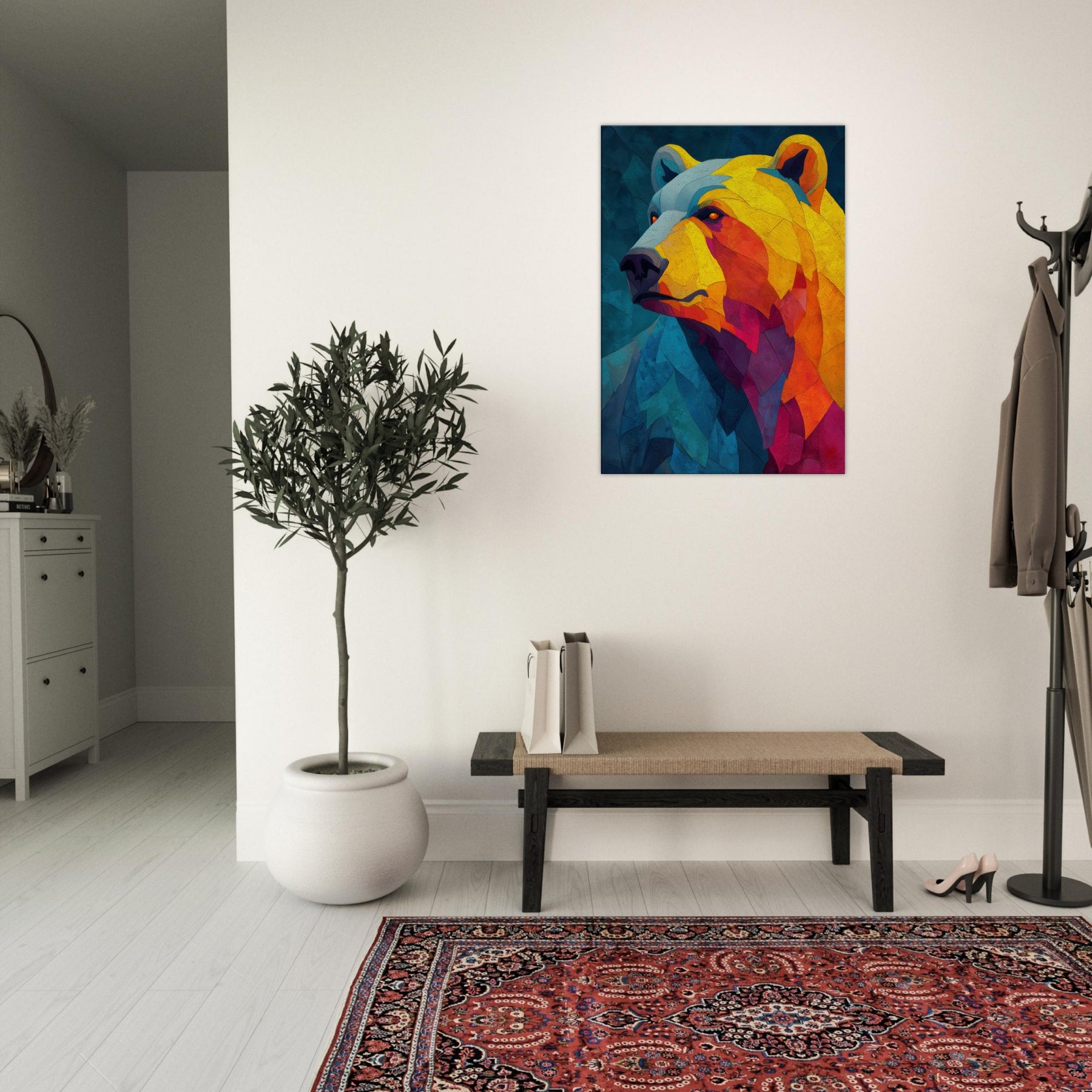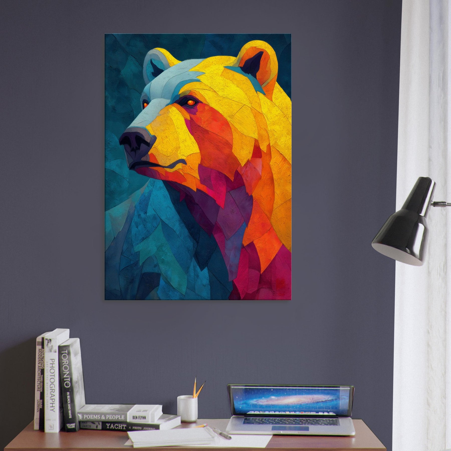 An electric of the Bear emerges from a mosaic of color and light, inviting the eye to wander. This dynamic composition fuses warm yellows, fiery oranges, and cool blues into a single, living surface that breathes with movement. The abstract interpretation suggests strength and gentleness in equal measure, echoing a serene mood while sparking conversation. Hung in a living room or study, it transforms walls into a warm horizon an inviting focal point that elevates atmosphere, texture, and daily ritual.
