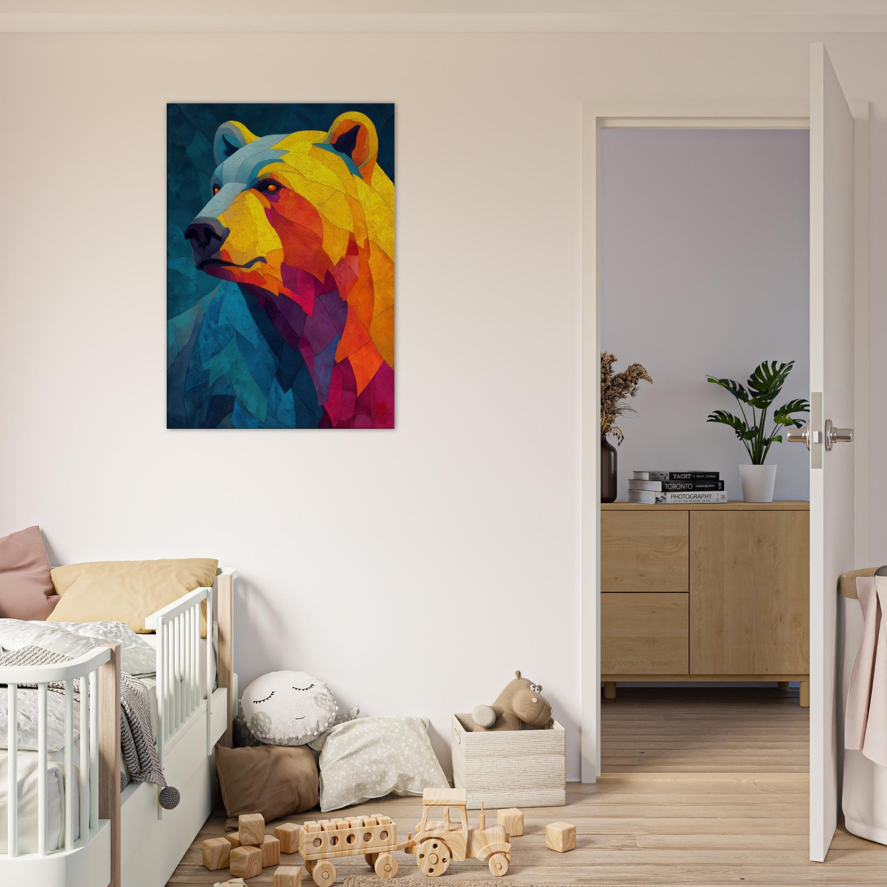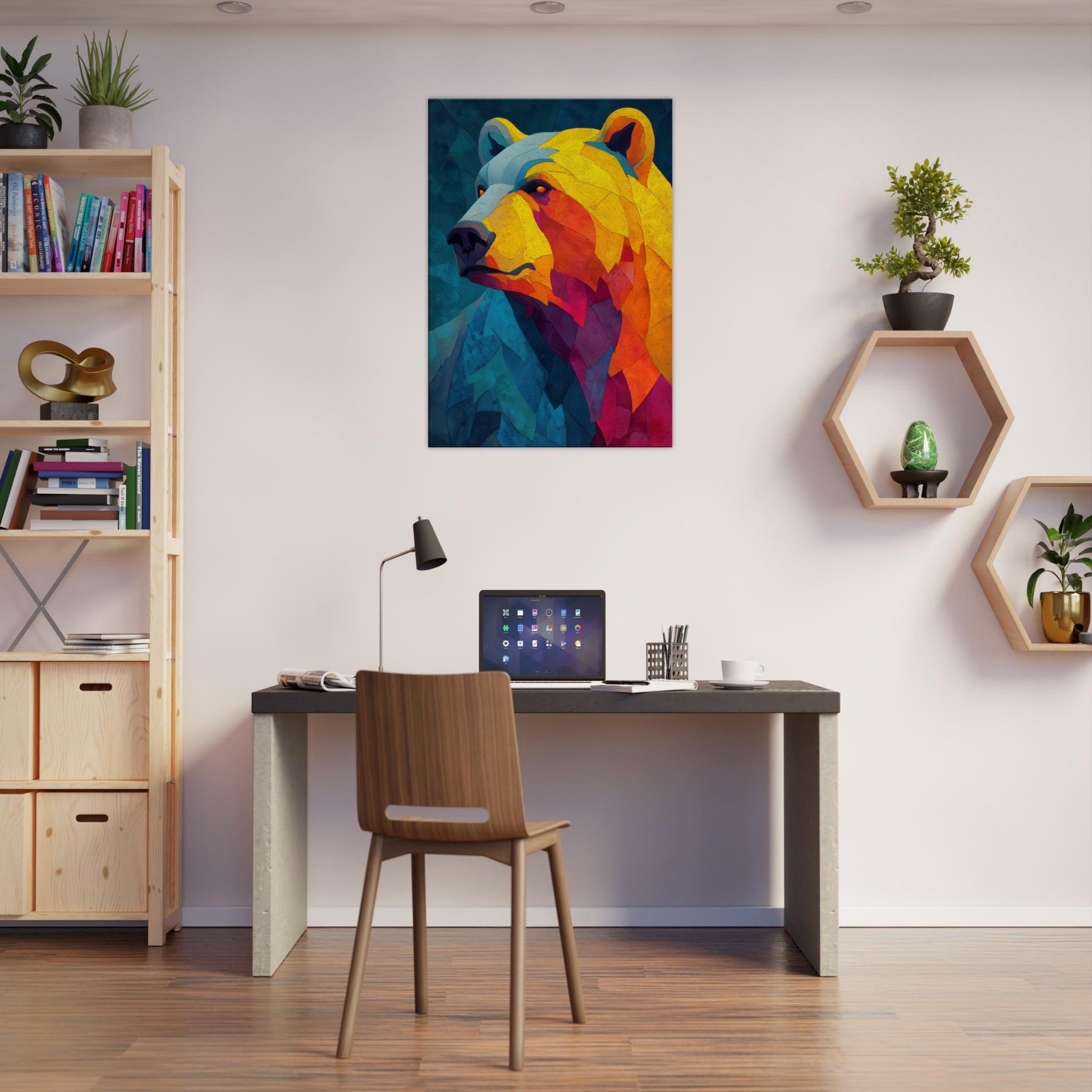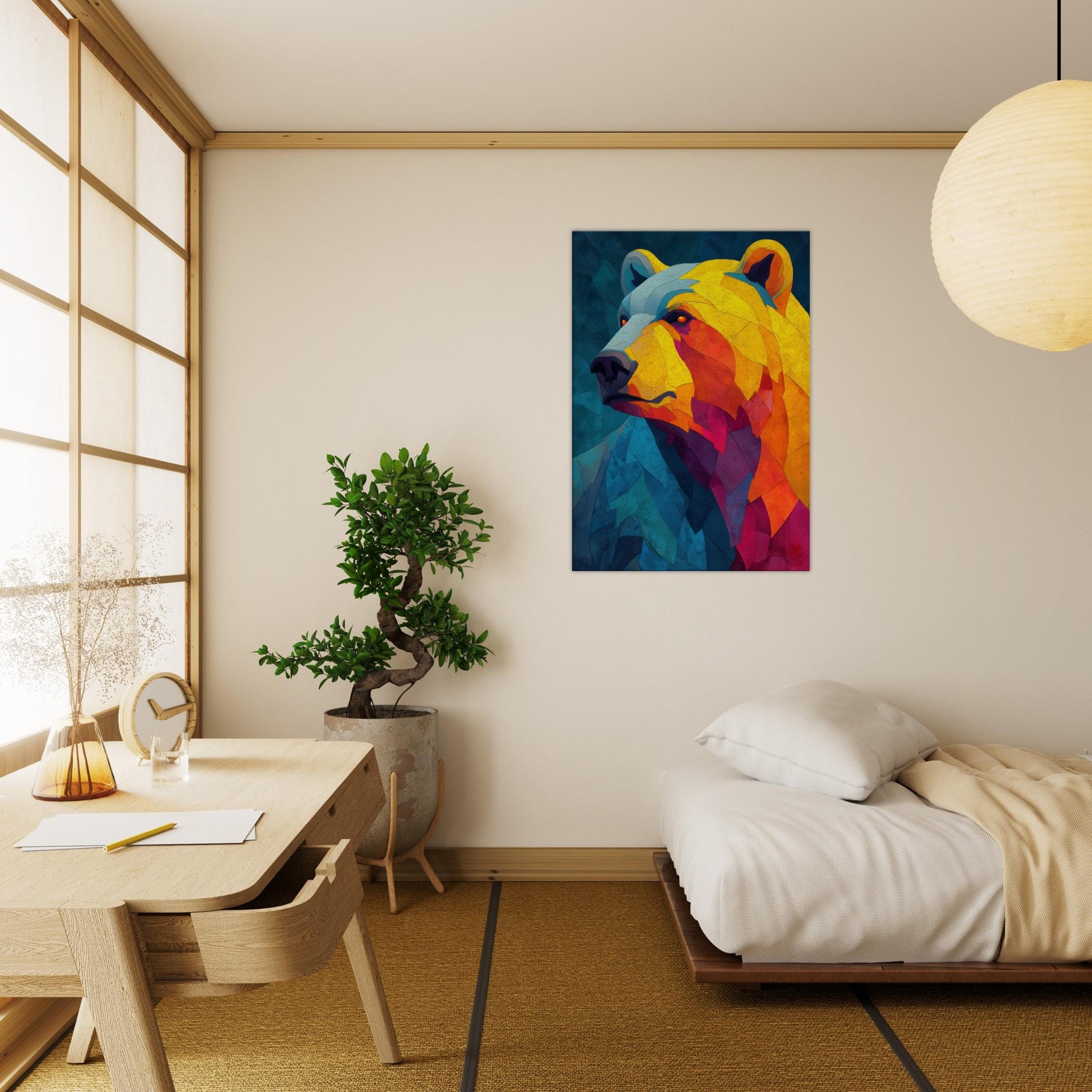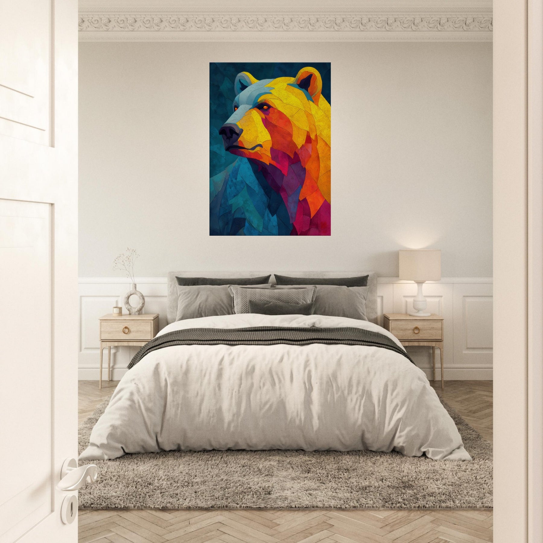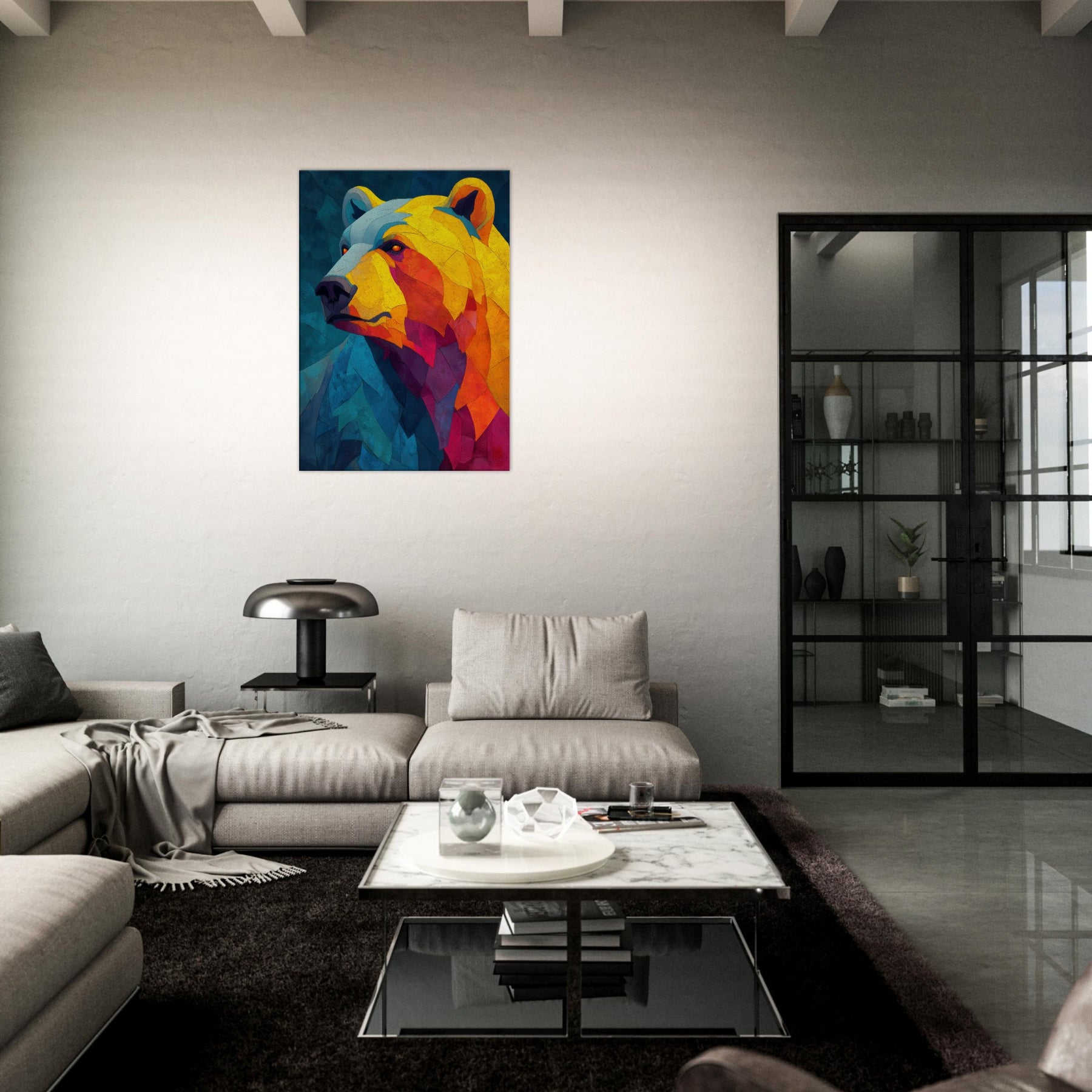 An electric of the Bear emerges from a mosaic of color and light, inviting the eye to wander. This dynamic composition fuses warm yellows, fiery oranges, and cool blues into a single, living surface that breathes with movement. The abstract interpretation suggests strength and gentleness in equal measure, echoing a serene mood while sparking conversation. Hung in a living room or study, it transforms walls into a warm horizon an inviting focal point that elevates atmosphere, texture, and daily ritual.