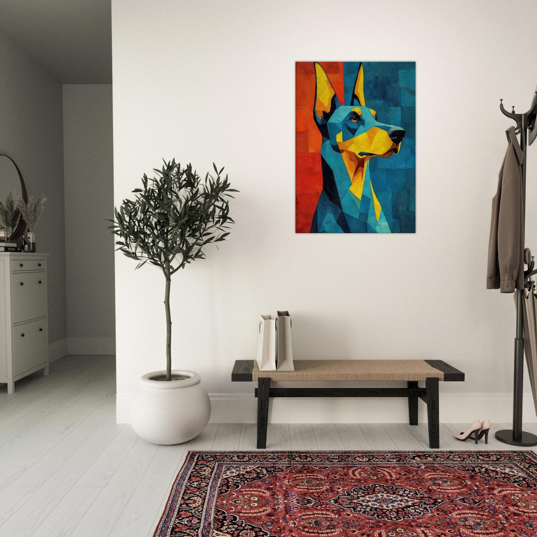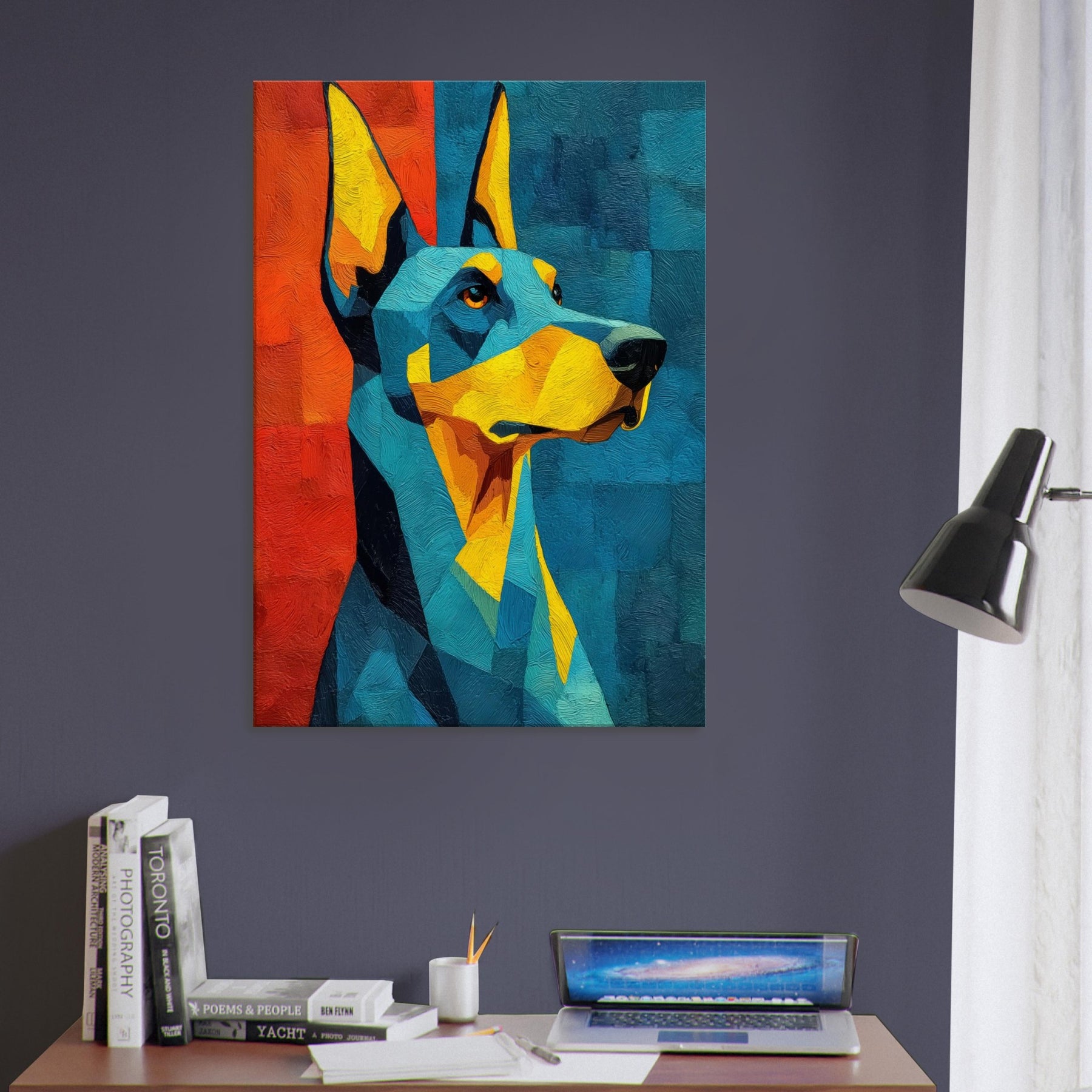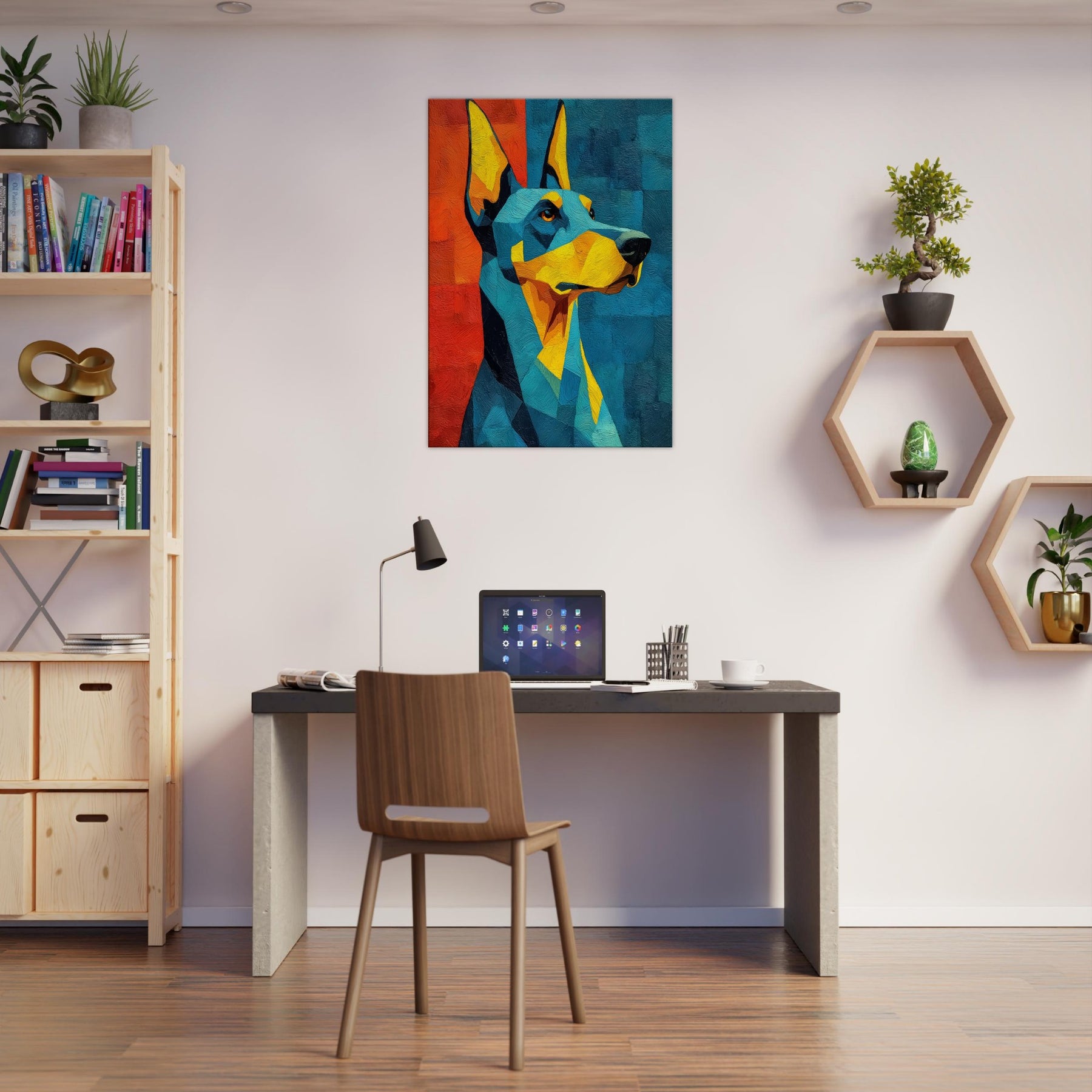 An exuberant Dog emerges in a mosaic of color, its form fractured into glowing facets of blue, amber, red, and teal. This abstract pulses with life, inviting the room to breathe with every shift of light. The artwork harmonizes with modern furnishings, adding warmth, movement, and a sense of watchful, friendly presence. Hang it in a living room or study, and watch the space awaken with color, texture, and a quiet, confident energy.