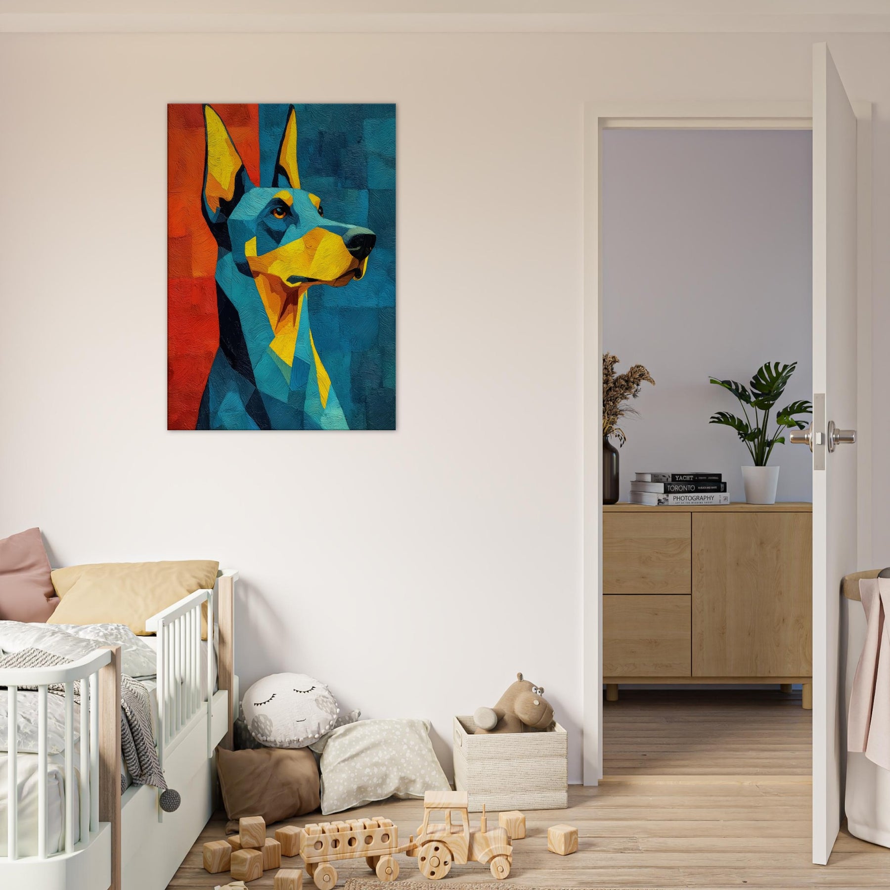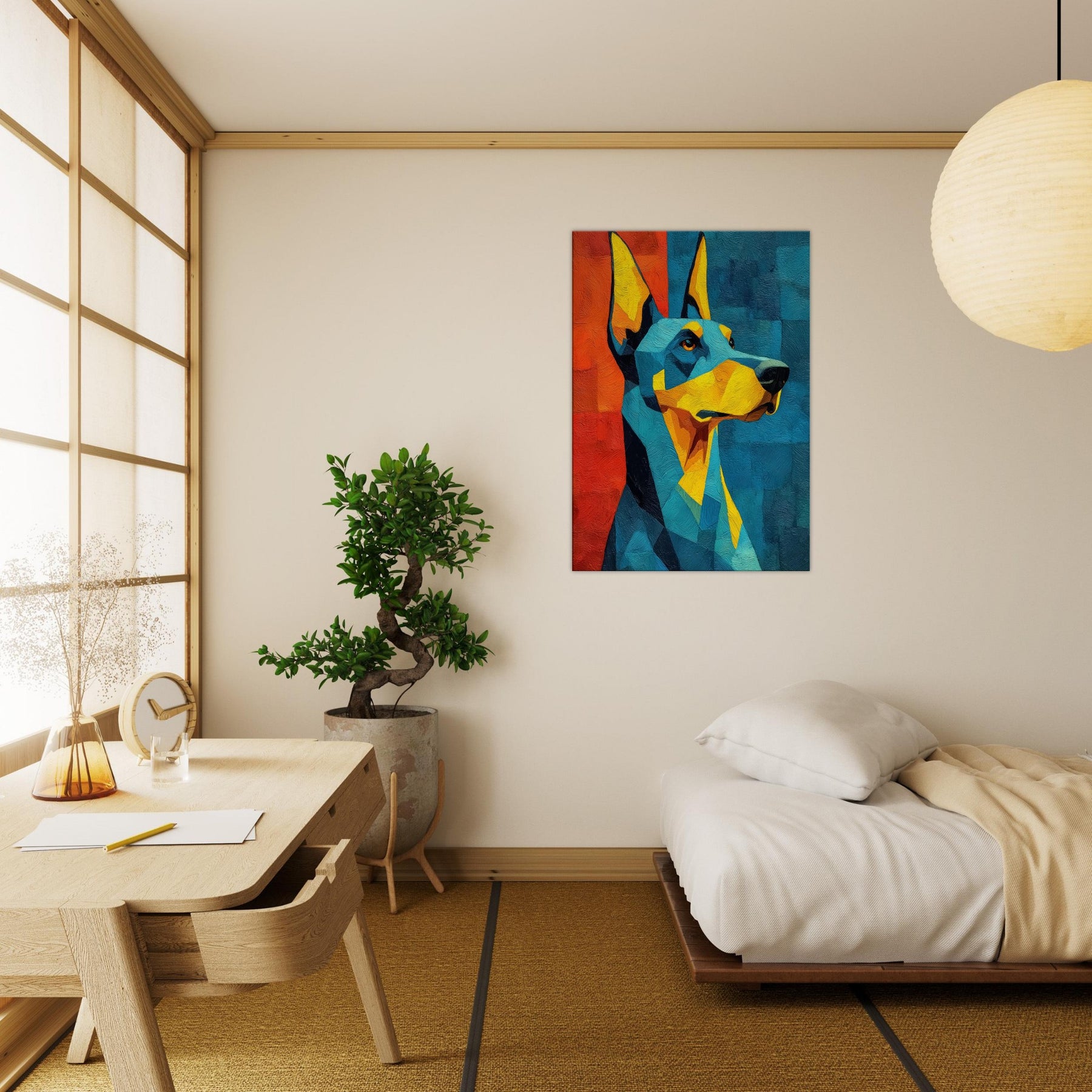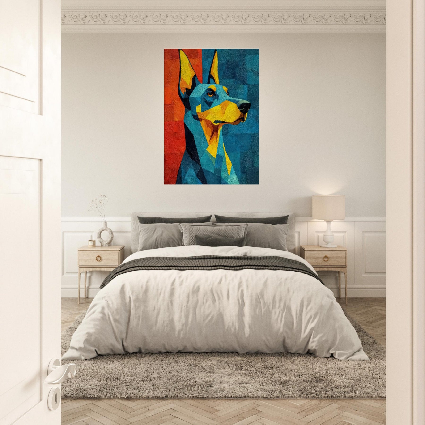 An exuberant Dog emerges in a mosaic of color, its form fractured into glowing facets of blue, amber, red, and teal. This abstract pulses with life, inviting the room to breathe with every shift of light. The artwork harmonizes with modern furnishings, adding warmth, movement, and a sense of watchful, friendly presence. Hang it in a living room or study, and watch the space awaken with color, texture, and a quiet, confident energy.