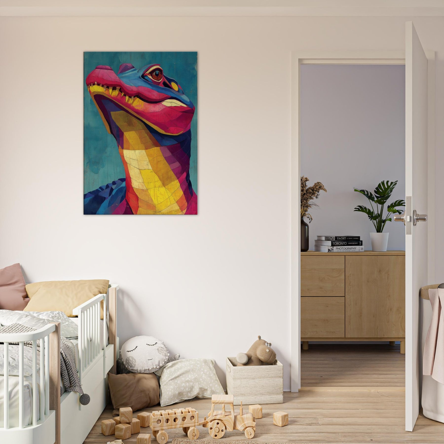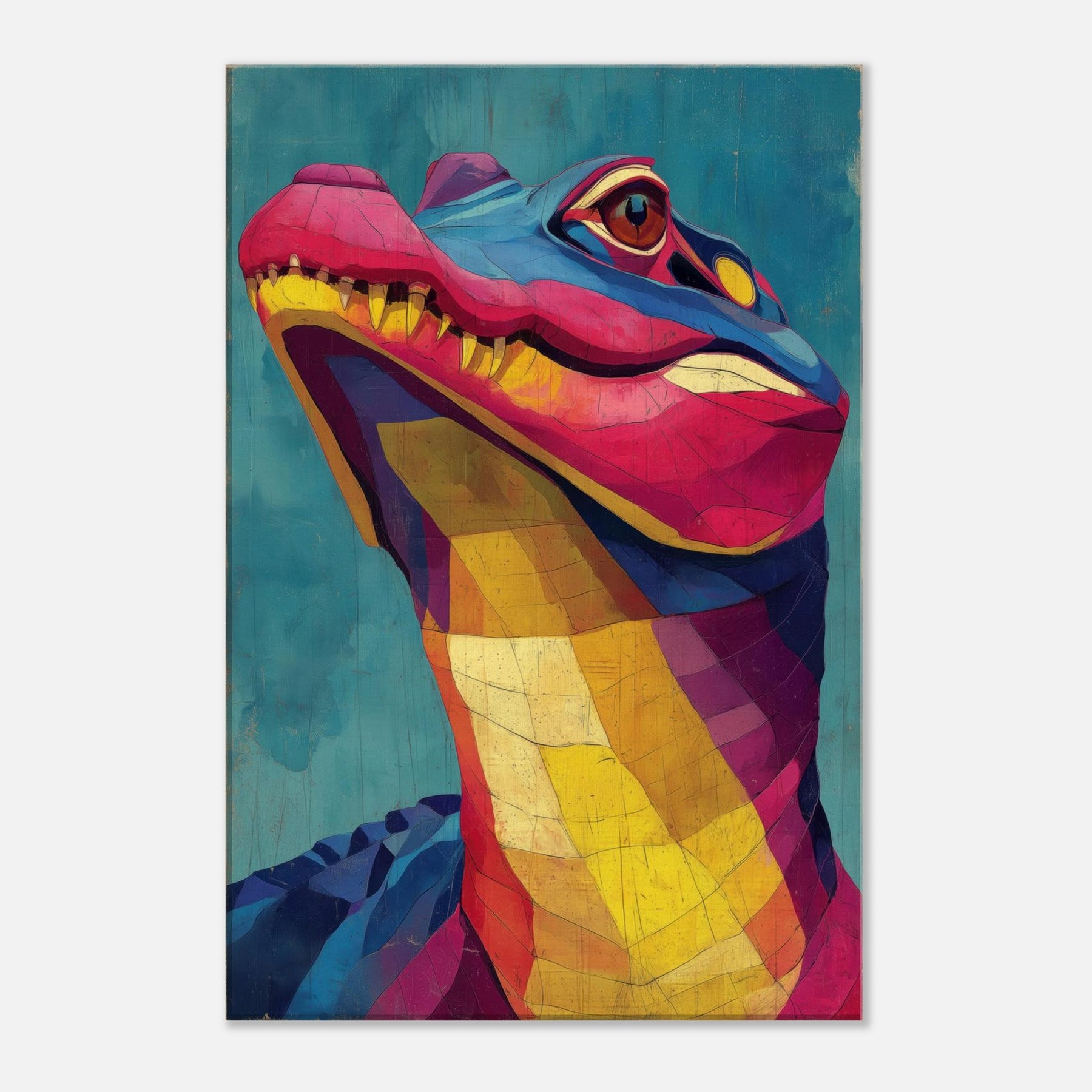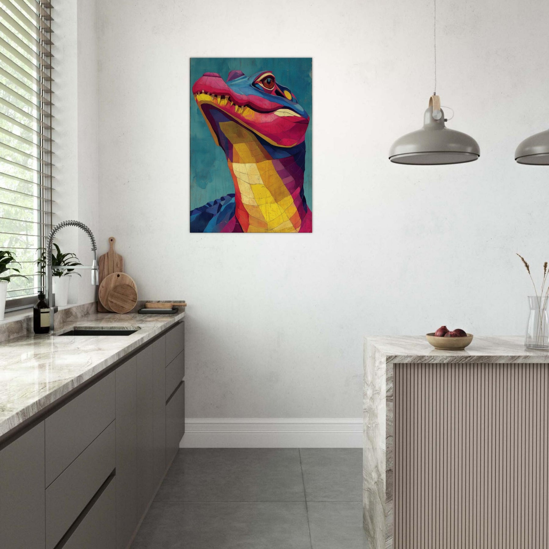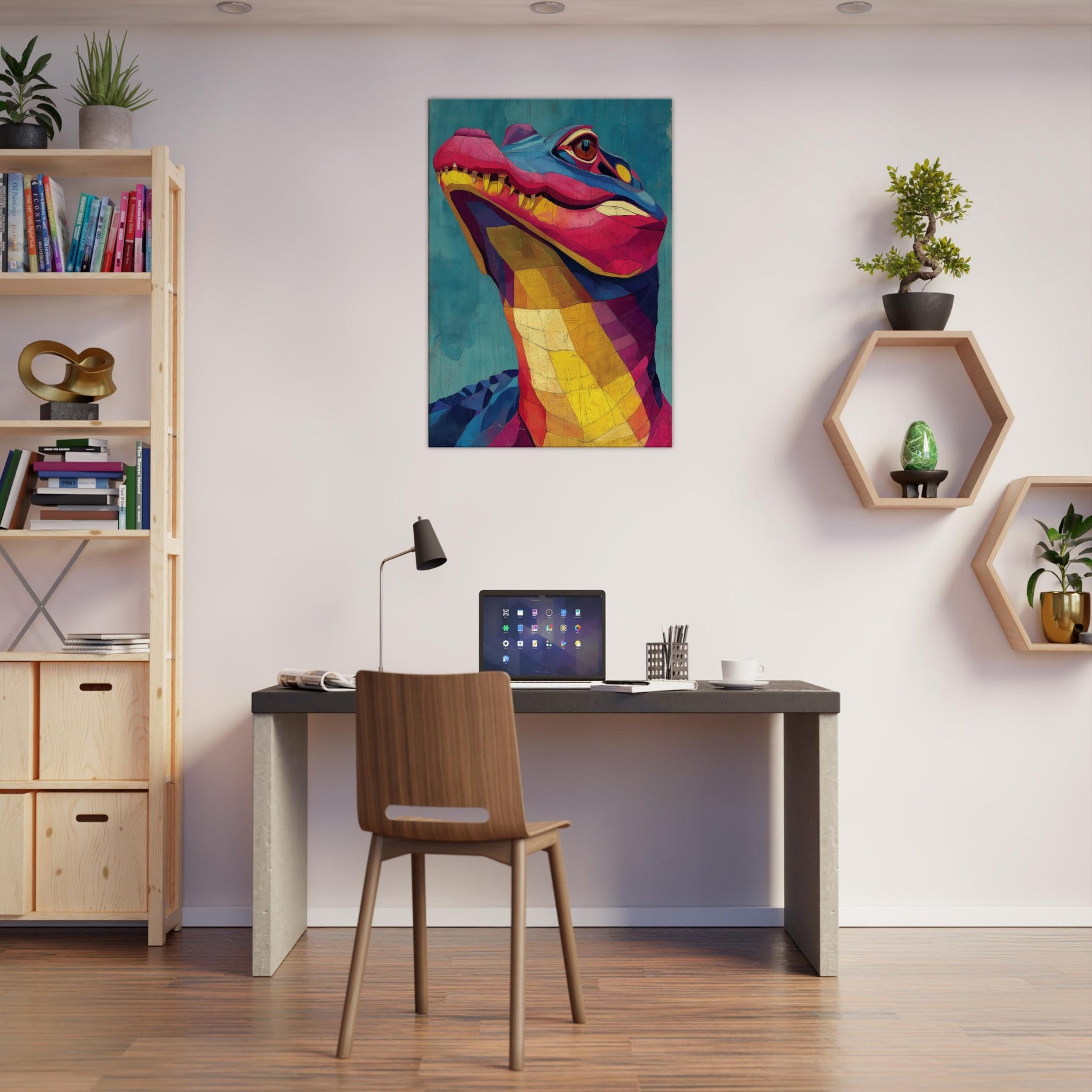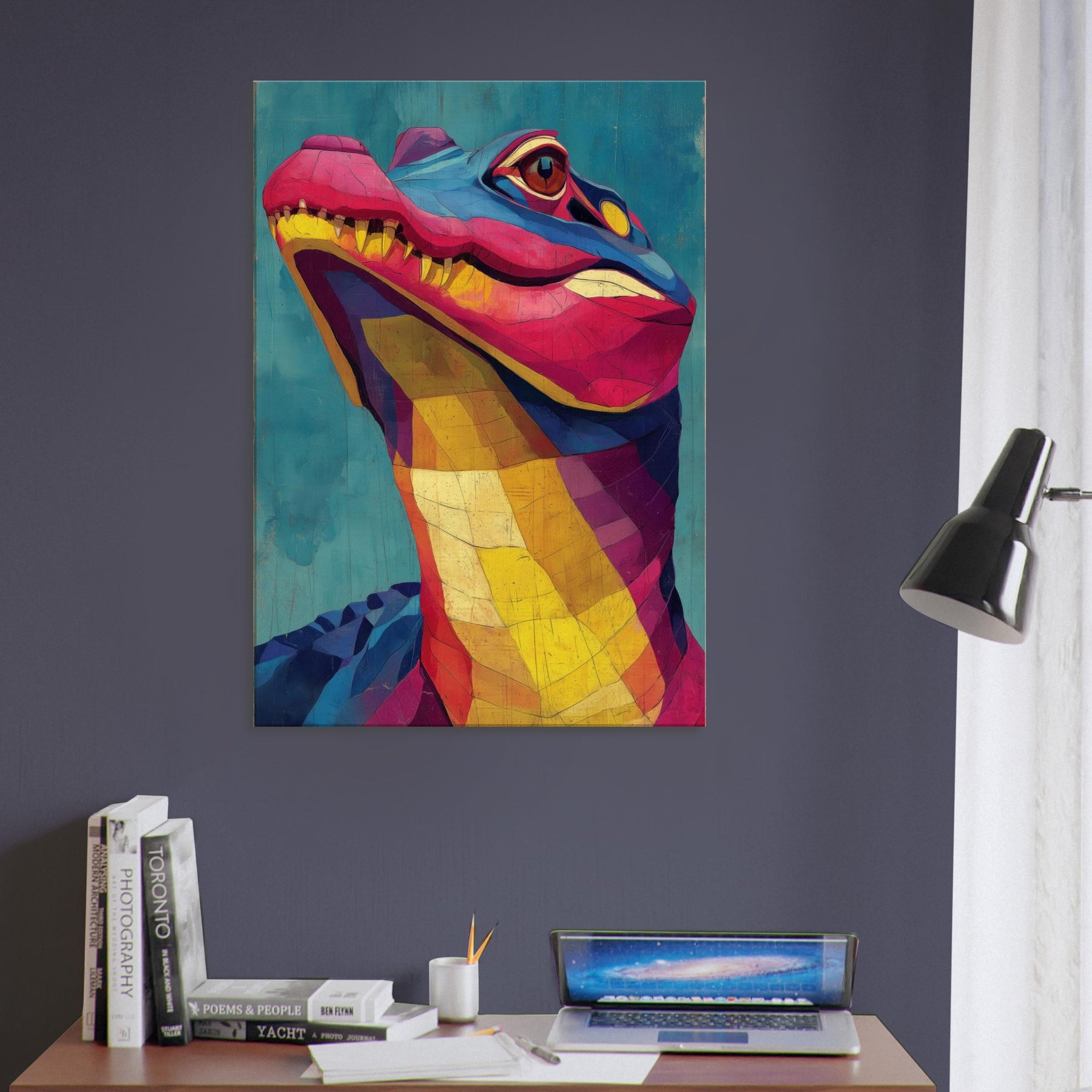 Step close and feel the heat of a wild color storm. This abstract crocodile image unfurls with luminous scales and liquid shapes, turning a primal moment into a modern celebration of light. Its electric pinks, blues, and yellows glow against a deep teal field, inviting reflection and wonder. Placed in a living room or hallway, the piece acts as a conversation spark and a serene focal point, elevating mood, texture, and space with daring elegance.