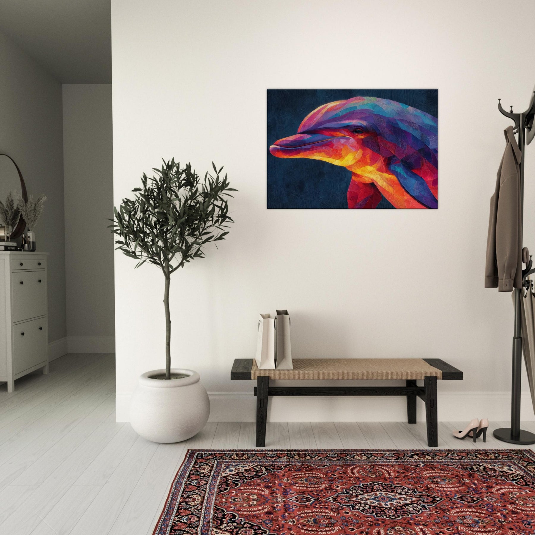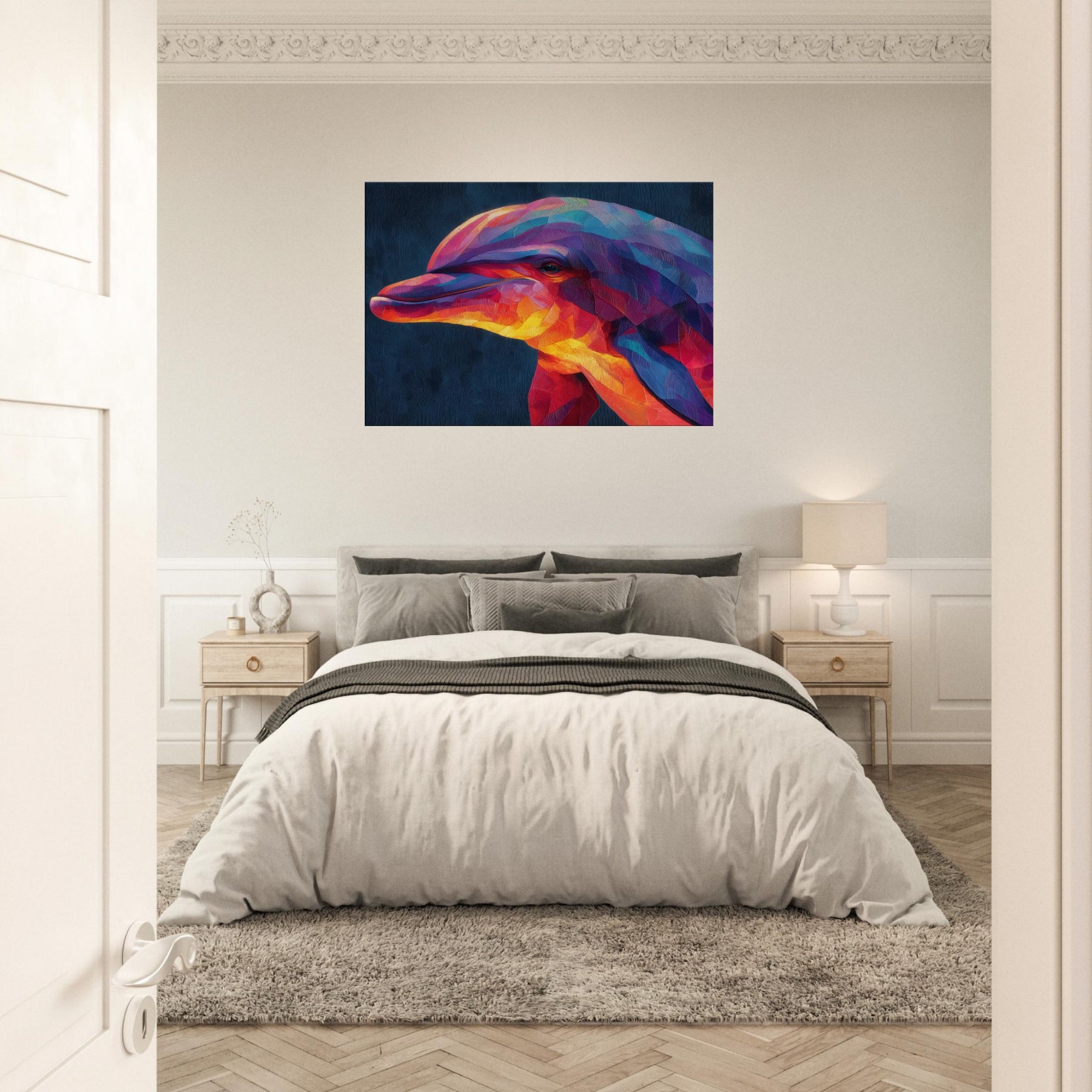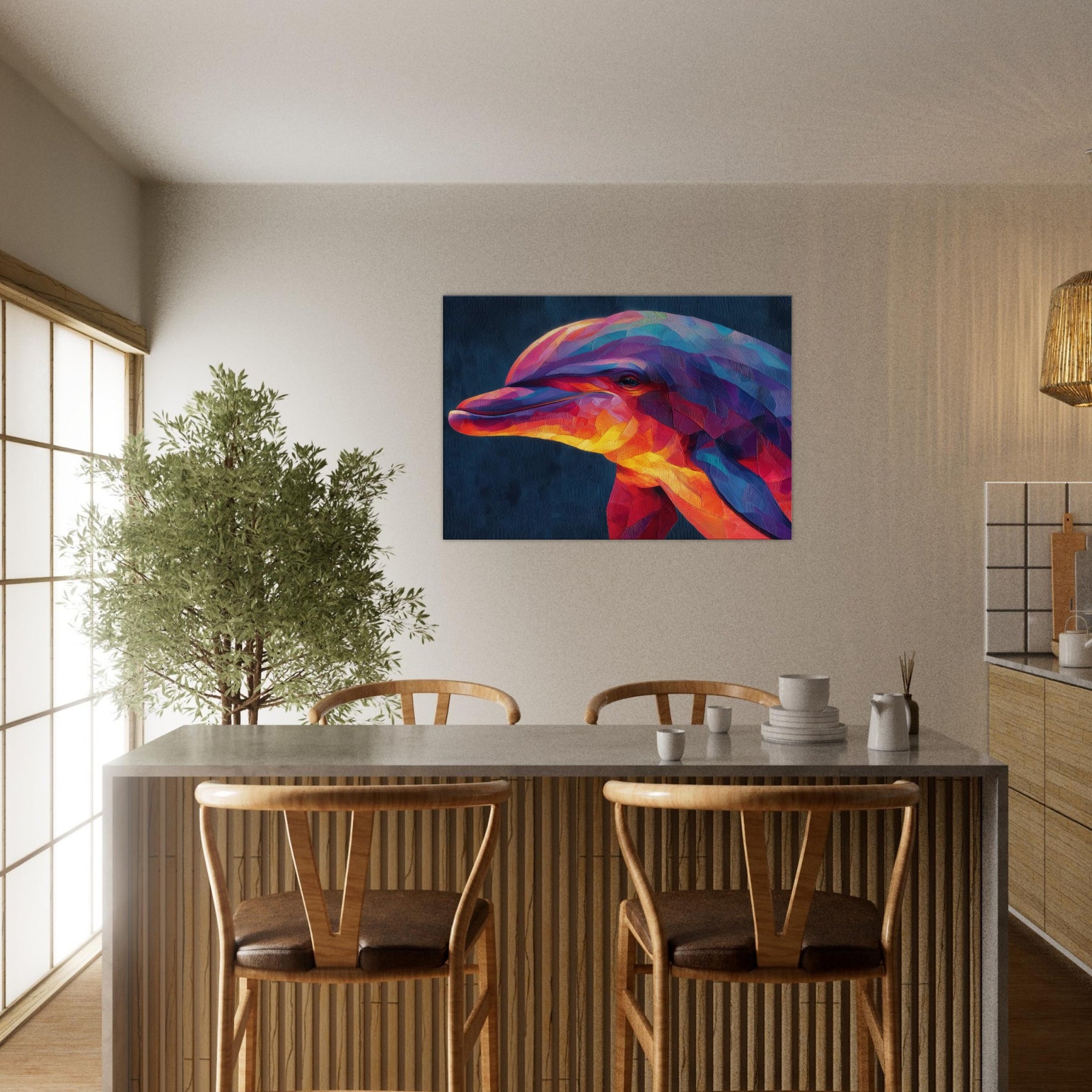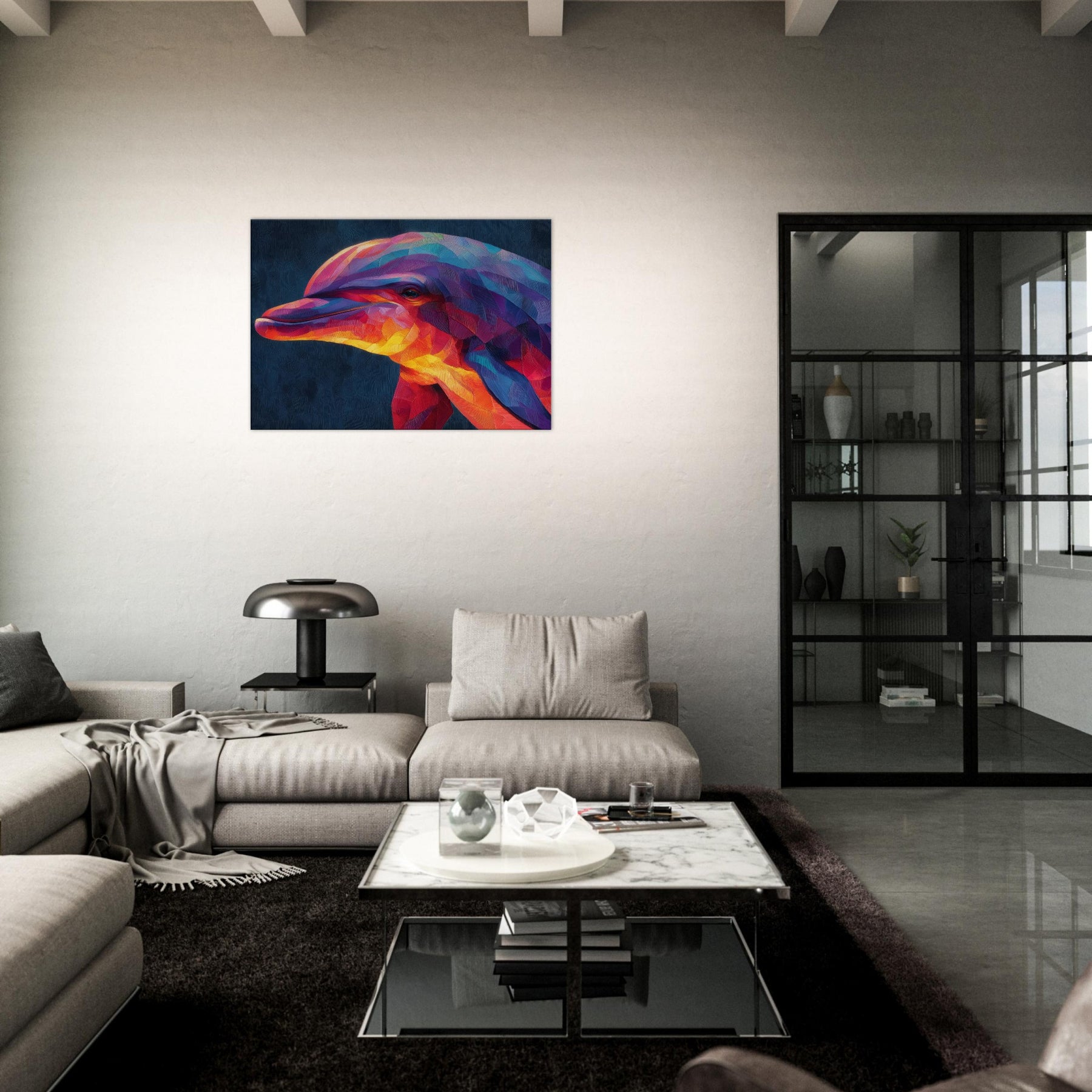 Immerse your space in a pool of color where the Dolphin becomes a pulse of light. This abstract study dissolves form into shimmering facets, each stroke catching the room's glow and casting a tranquil, cinematic mood. The piece breathes with oceanic energy, suggesting movement even at rest, making a living room feel expansive and serene. Printed on high quality canvas, it invites quiet reflection while adding drama, a focal point that pairs modern furniture with warm neutrals for a refined, contemporary sanctuary.
