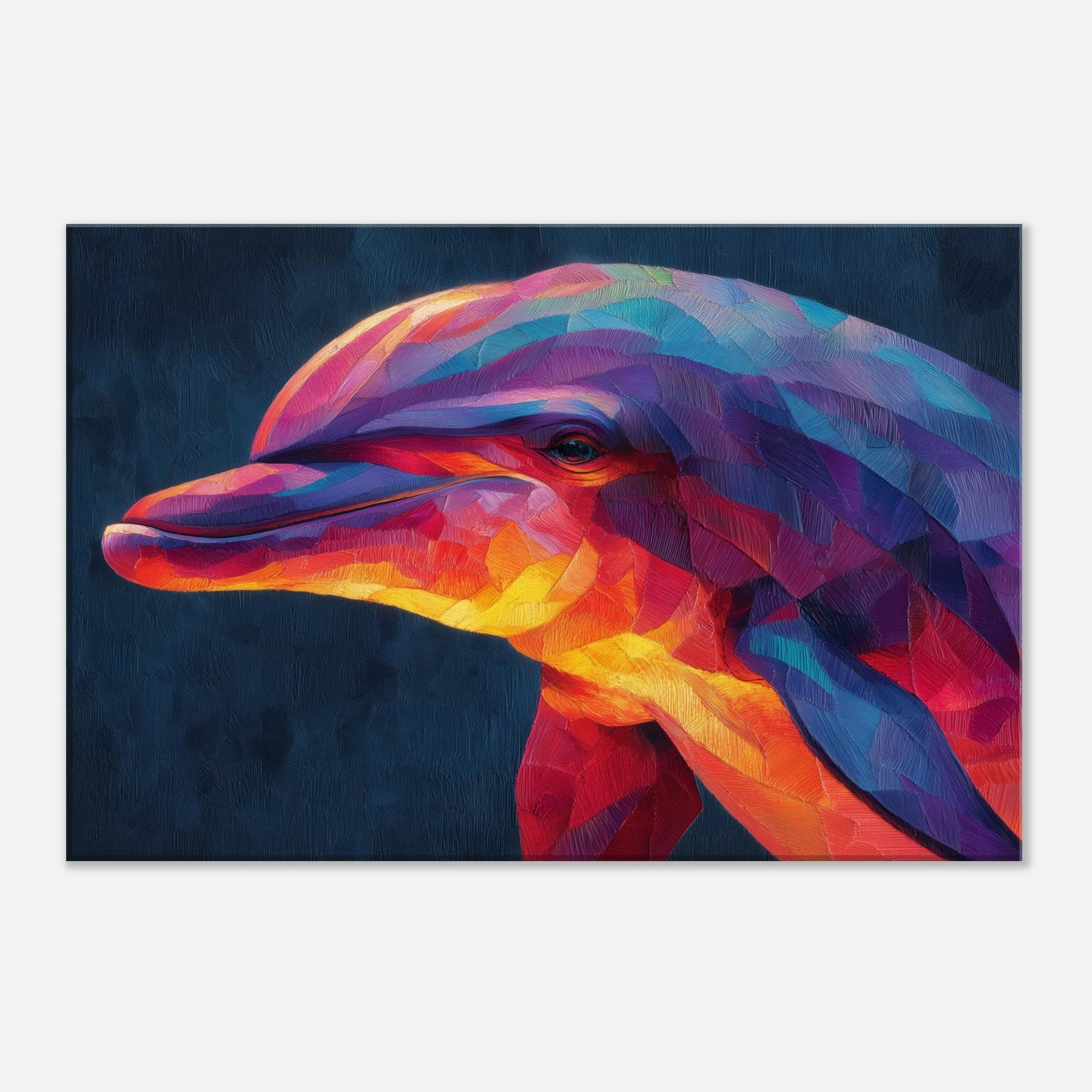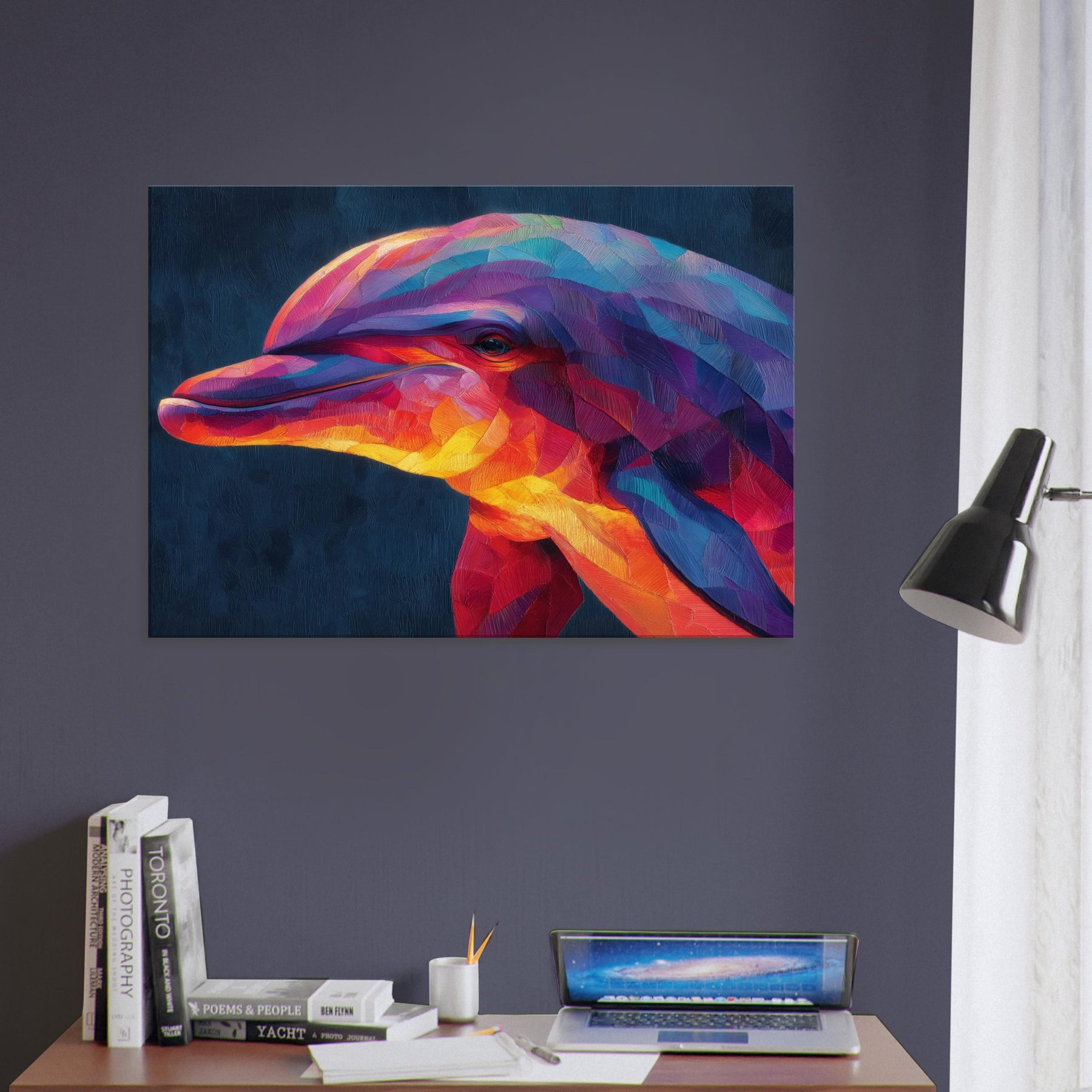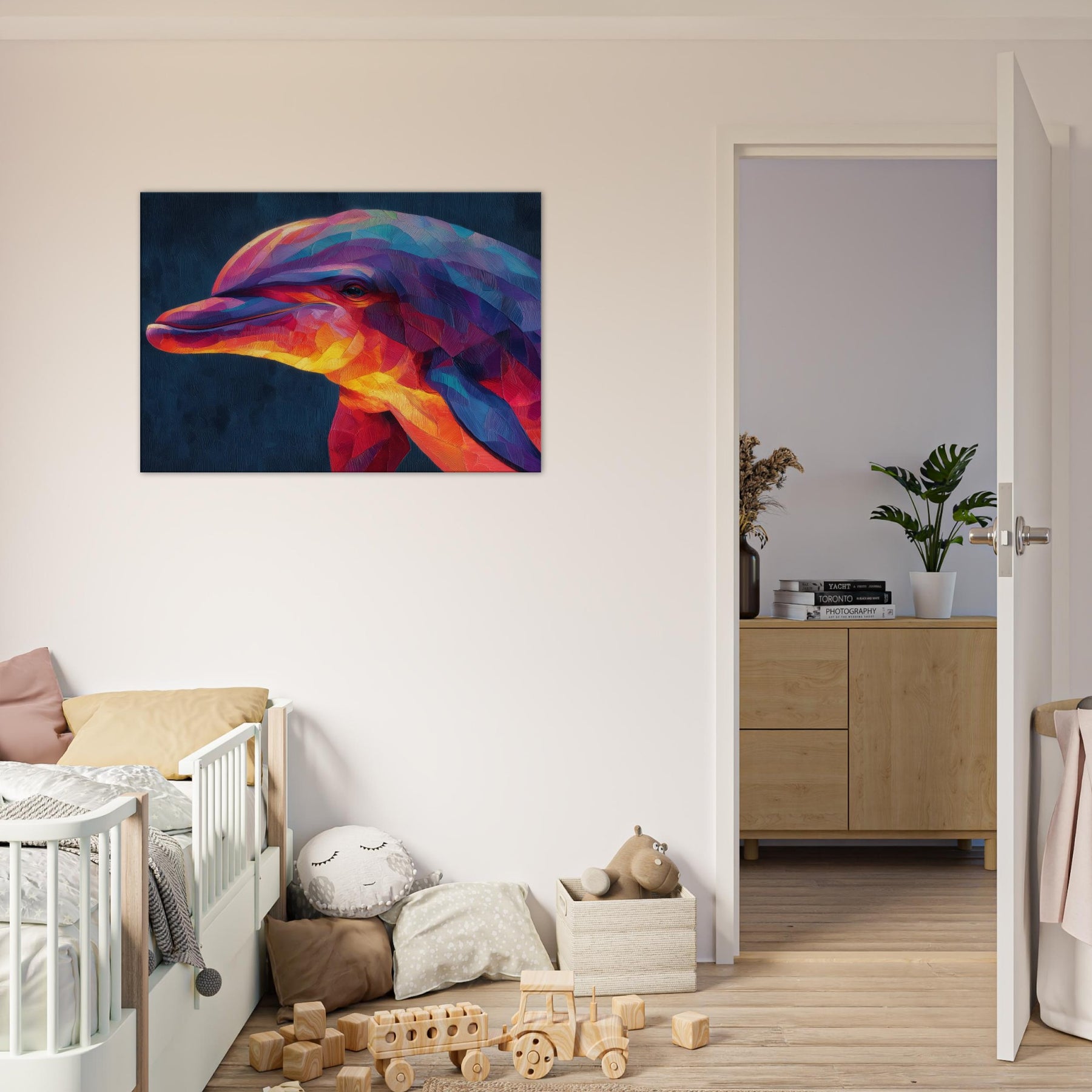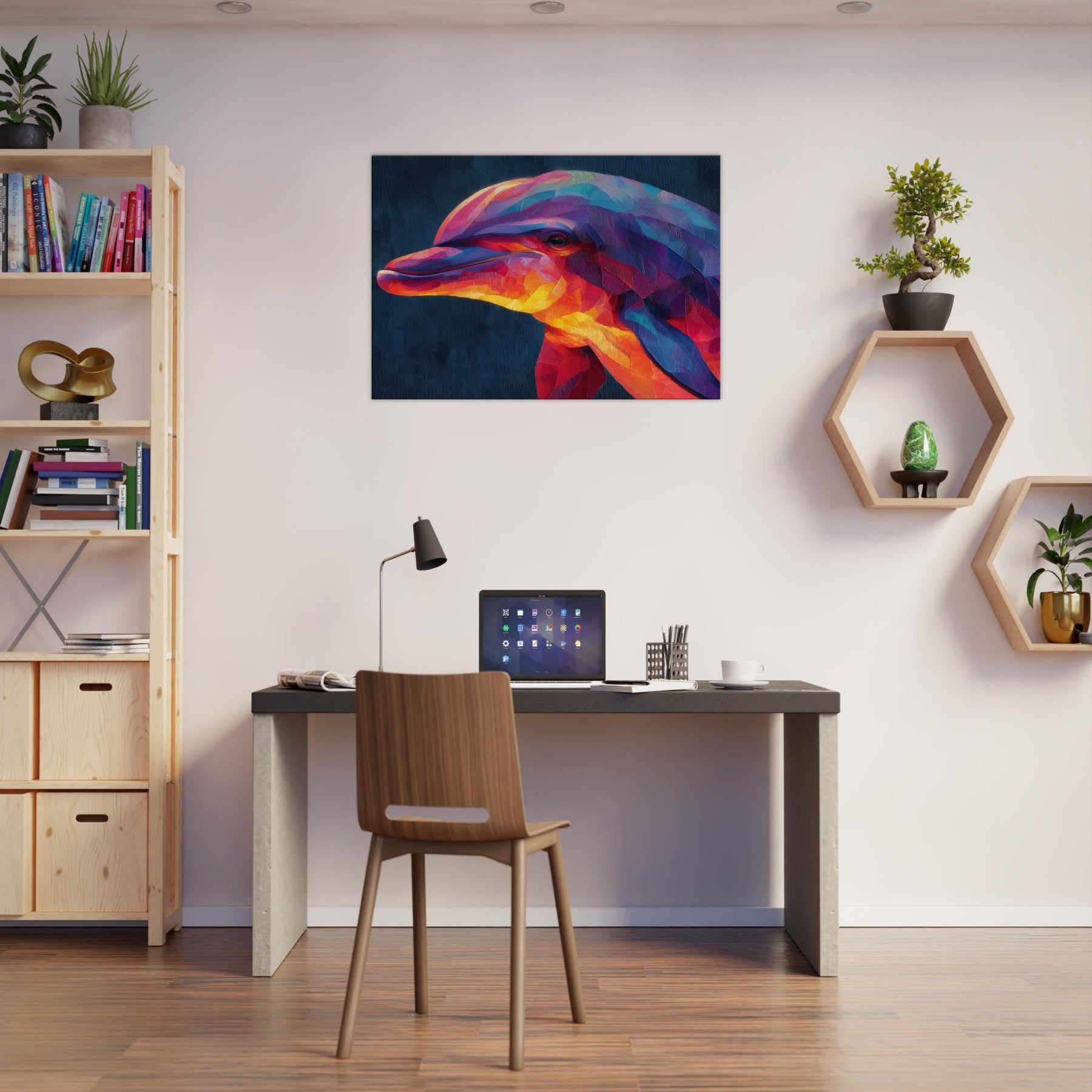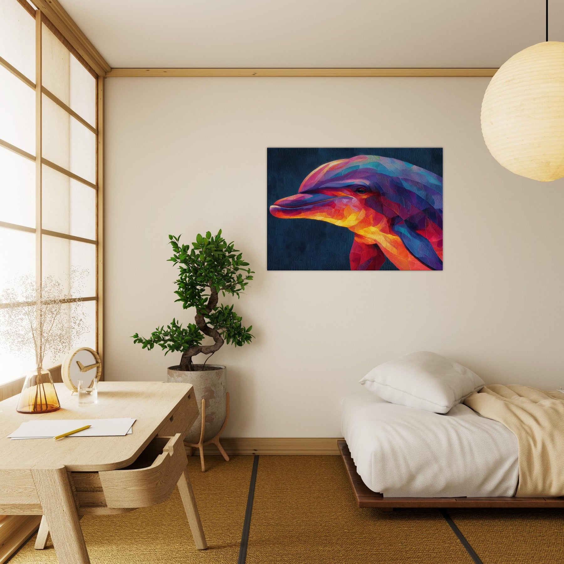 Immerse your space in a pool of color where the Dolphin becomes a pulse of light. This abstract study dissolves form into shimmering facets, each stroke catching the room's glow and casting a tranquil, cinematic mood. The piece breathes with oceanic energy, suggesting movement even at rest, making a living room feel expansive and serene. Printed on high quality canvas, it invites quiet reflection while adding drama, a focal point that pairs modern furniture with warm neutrals for a refined, contemporary sanctuary.