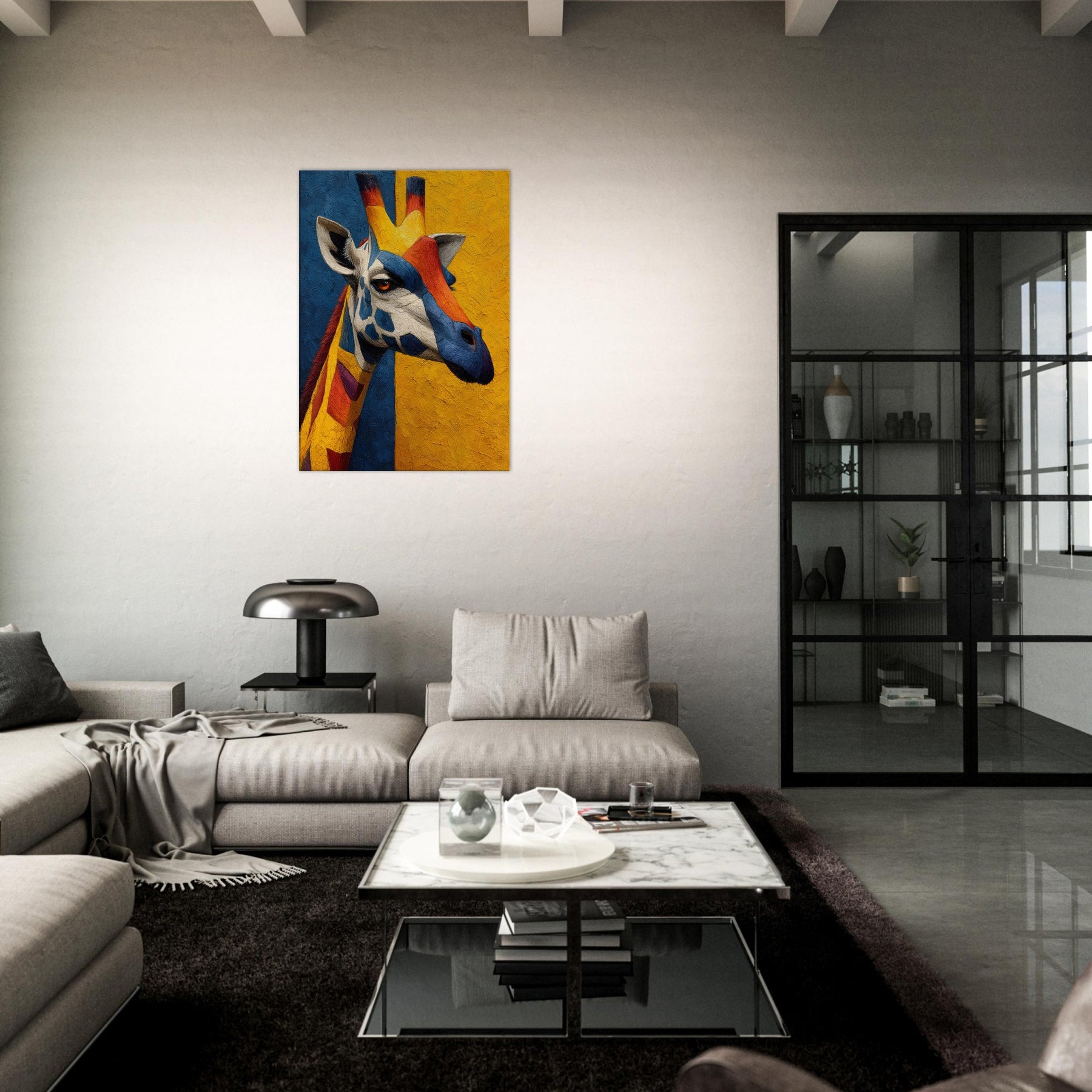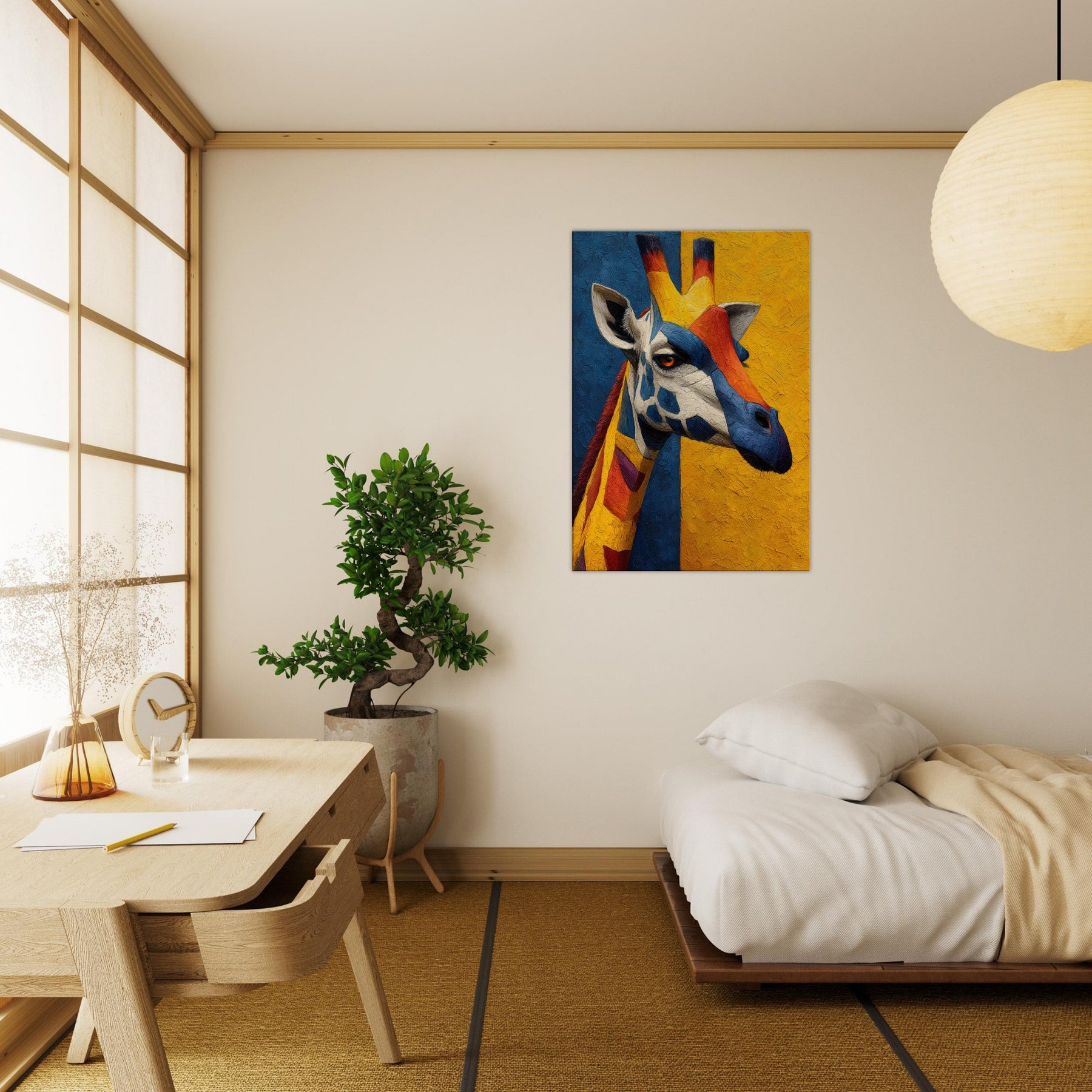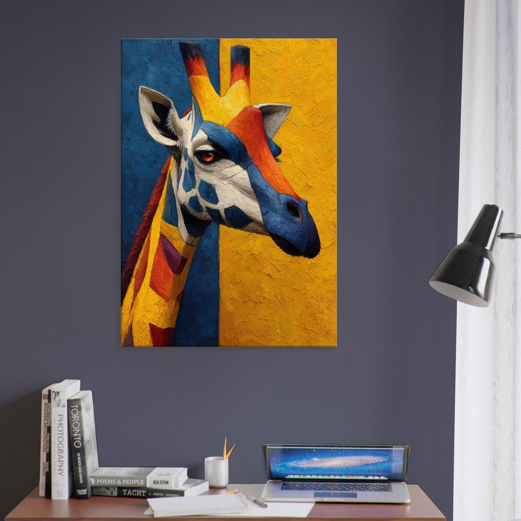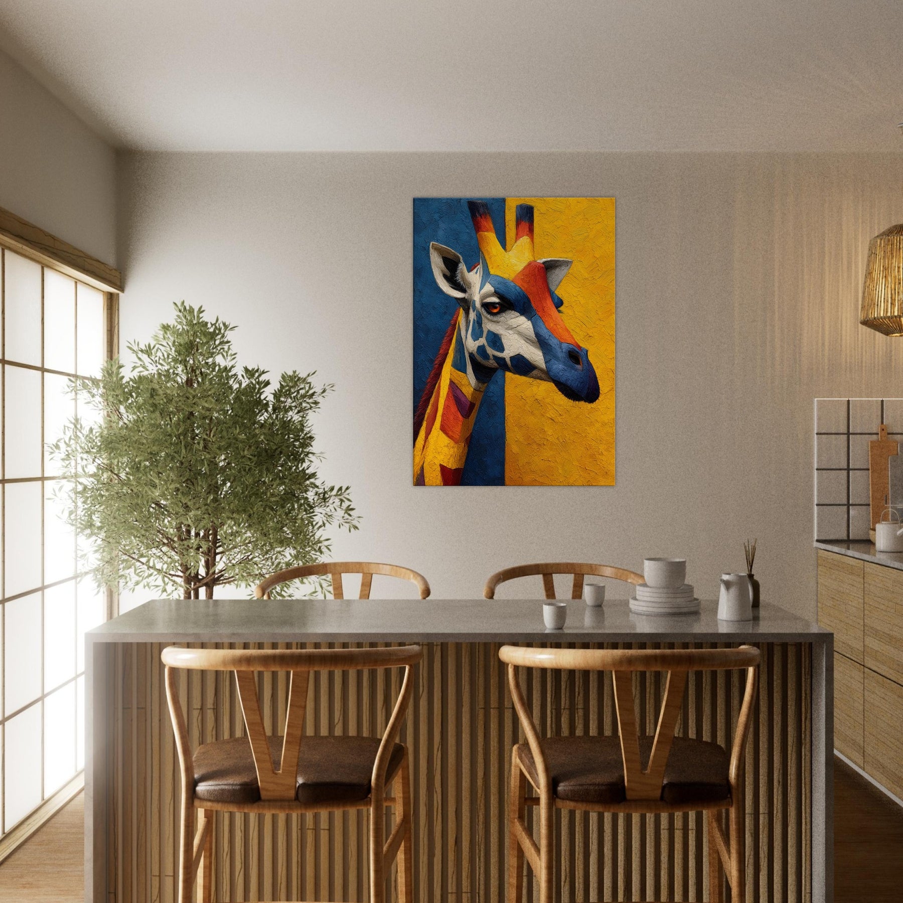 Centered on a Giraffe, this abstract composition glows with a mosaic of electric blues, sunlit yellows, and coral reds. The thick, painterly texture invites touch and time, while the bold color blocks ripple like savanna light at dusk. The piece exudes a confident, serene energy that calms a space yet sparks curiosity, making it a magnetic focal point in a living room or alcove. Let the Giraffe become a graceful conversation starter and a luminous anchor for contemporary interiors.