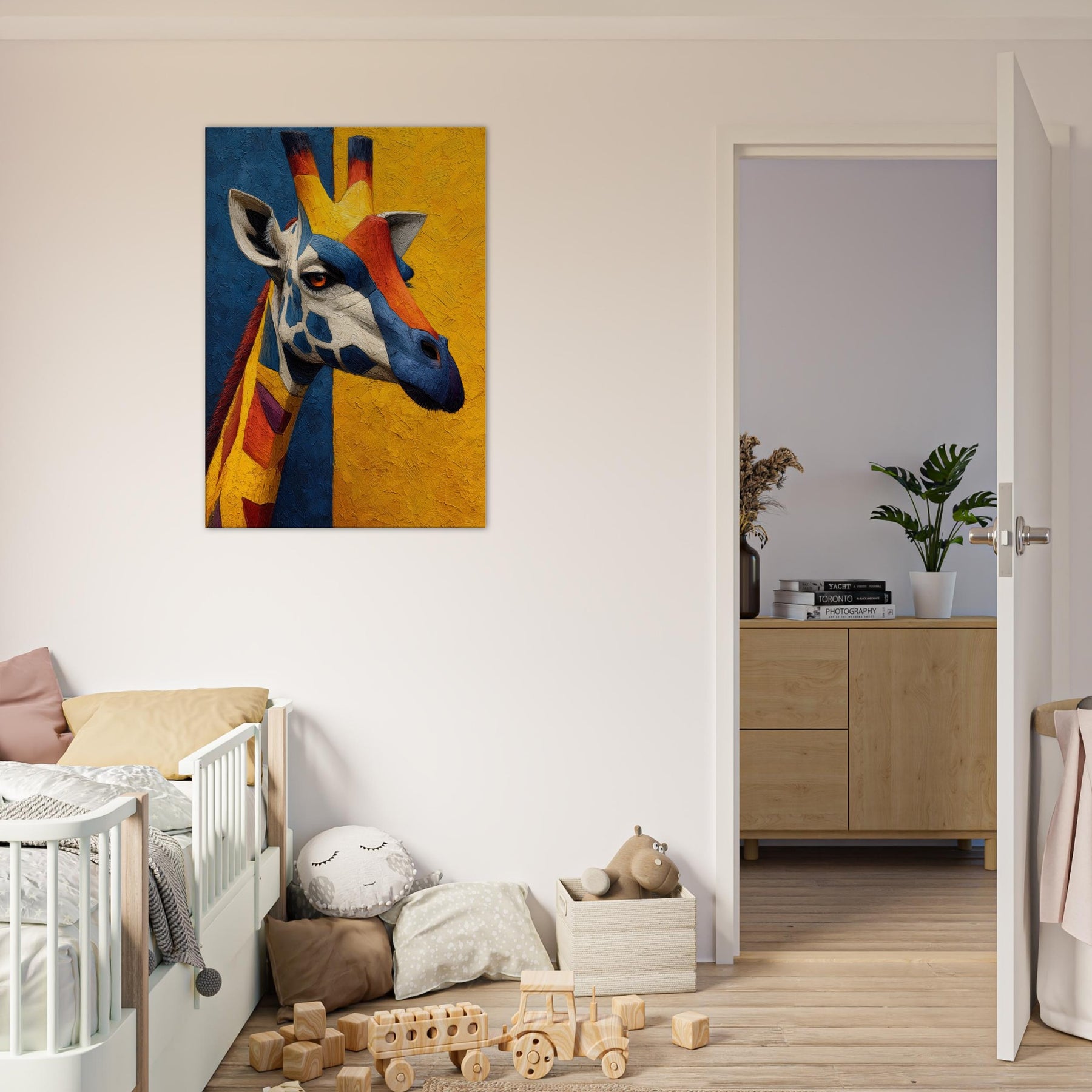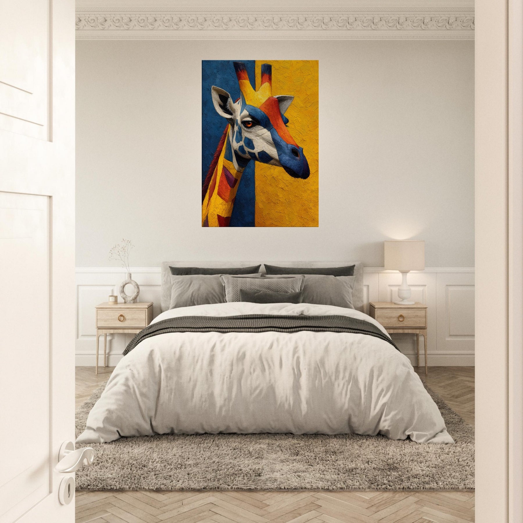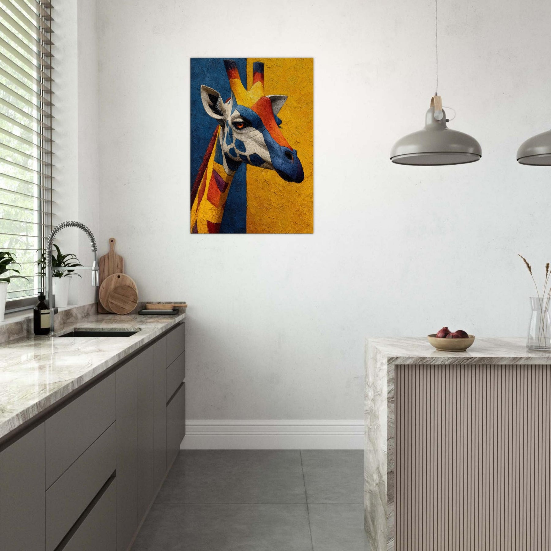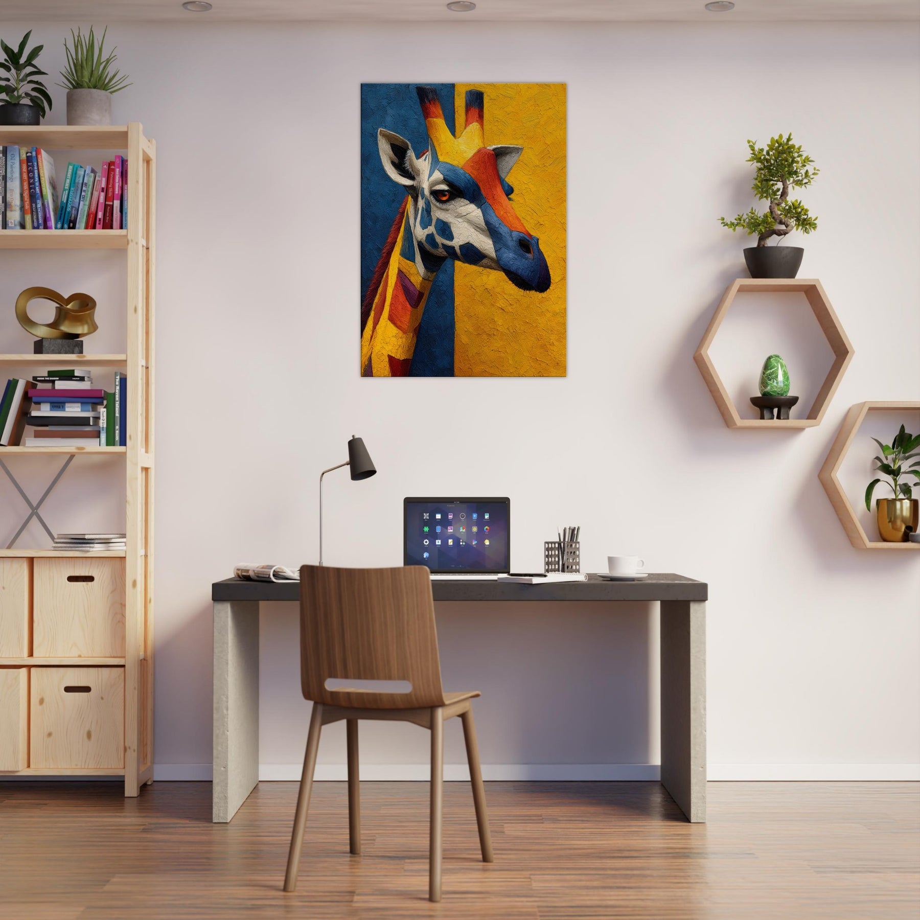 Centered on a Giraffe, this abstract composition glows with a mosaic of electric blues, sunlit yellows, and coral reds. The thick, painterly texture invites touch and time, while the bold color blocks ripple like savanna light at dusk. The piece exudes a confident, serene energy that calms a space yet sparks curiosity, making it a magnetic focal point in a living room or alcove. Let the Giraffe become a graceful conversation starter and a luminous anchor for contemporary interiors.