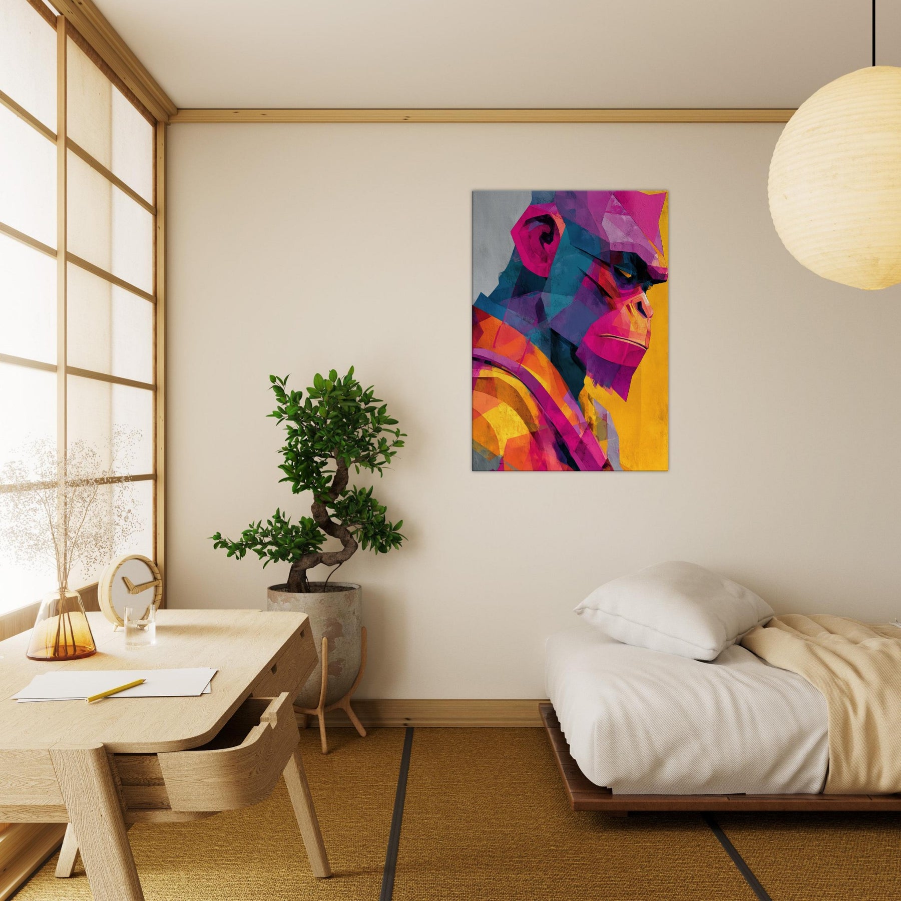 Hanuman stands as a luminous, geometric muse in this abstract inspired composition. Swirls of magenta, cobalt, and gold pulse across the canvas, inviting the eye to wander and settle in a moment of reverent stillness. The mystical figure exudes warmth and power, a quiet guardian that anchors a room with a dreamlike energy. Hang it where you want introspection and conversation, letting the colors breathe life into everyday living spaces.