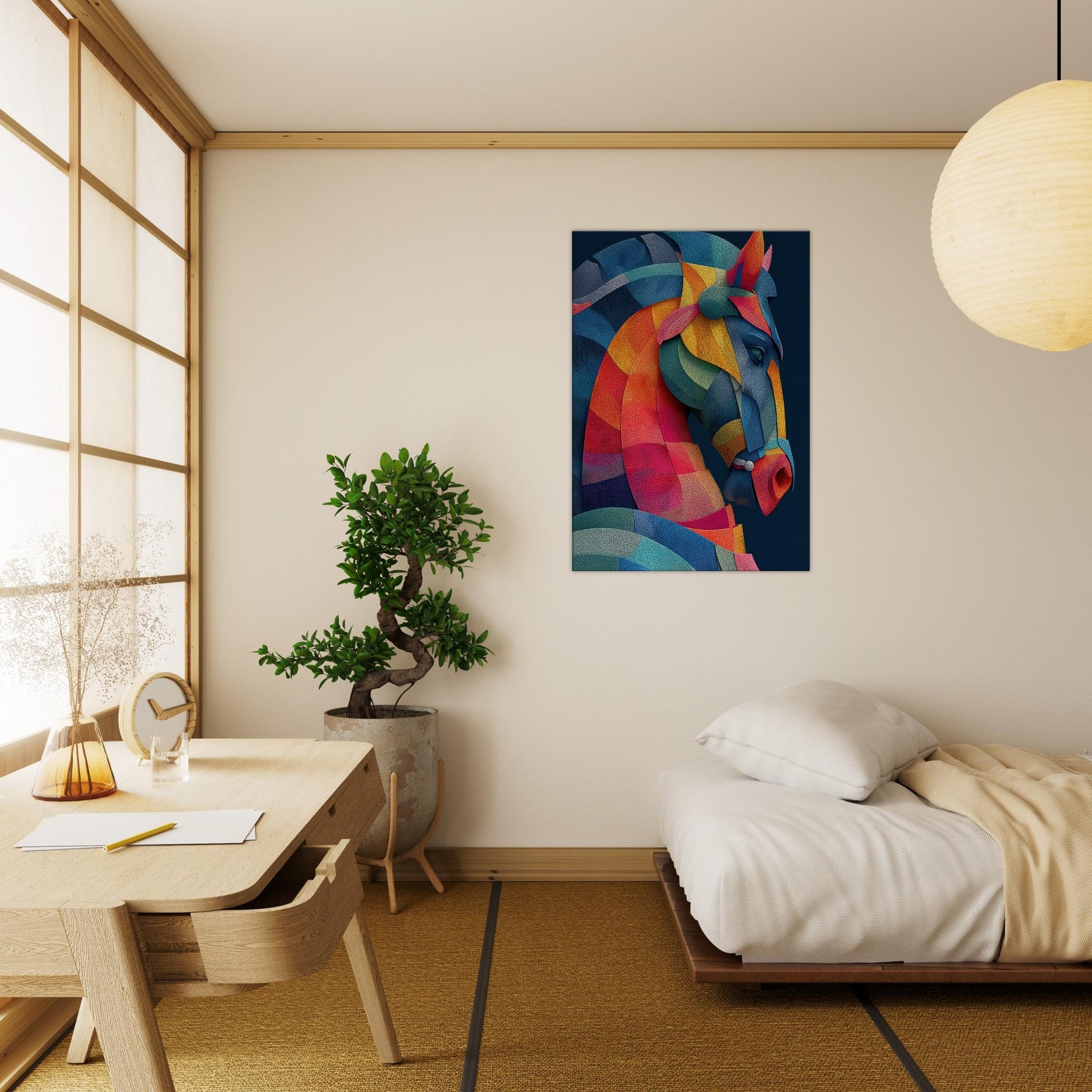Like a quiet ode to motion, the Chess Knight is reimagined as a mosaic of color and texture. Its facets catch light and shift with mood, turning a static silhouette into a livinganthem. The palette flickers from cobalt to ember, set against a deep midnight backdrop that feels both calm and electric. In a living room or study, this piece invites lingering gaze, a tactile memory visible on the wall, elevating space with warmth, rhythm, and a sense of cinematic mystery.