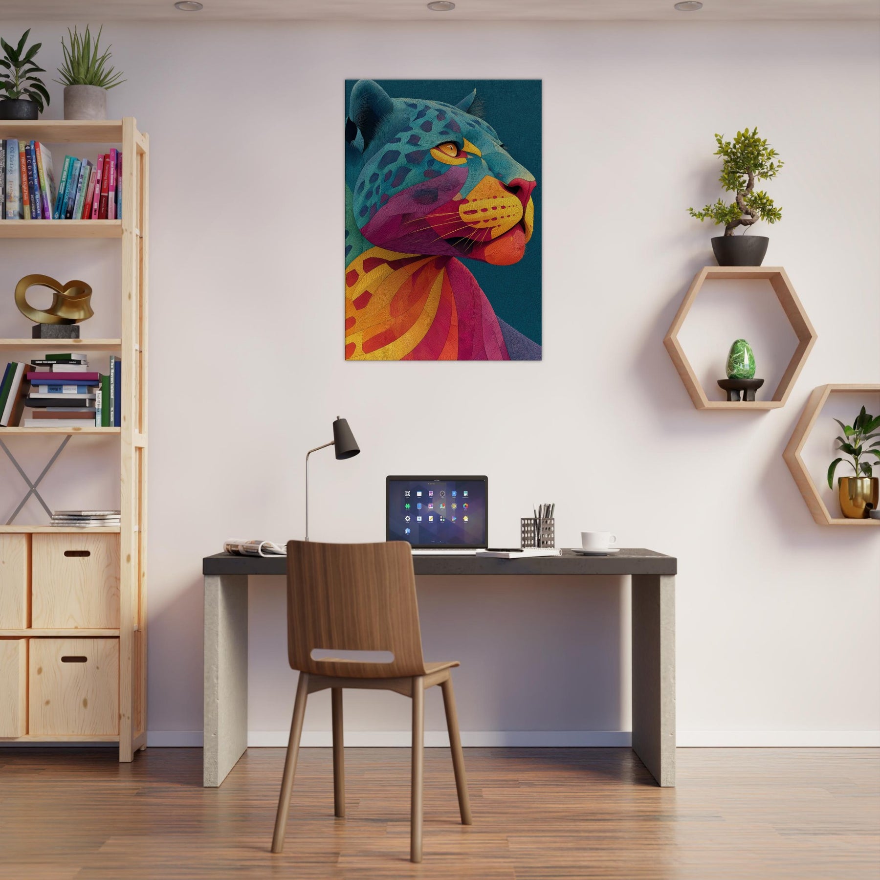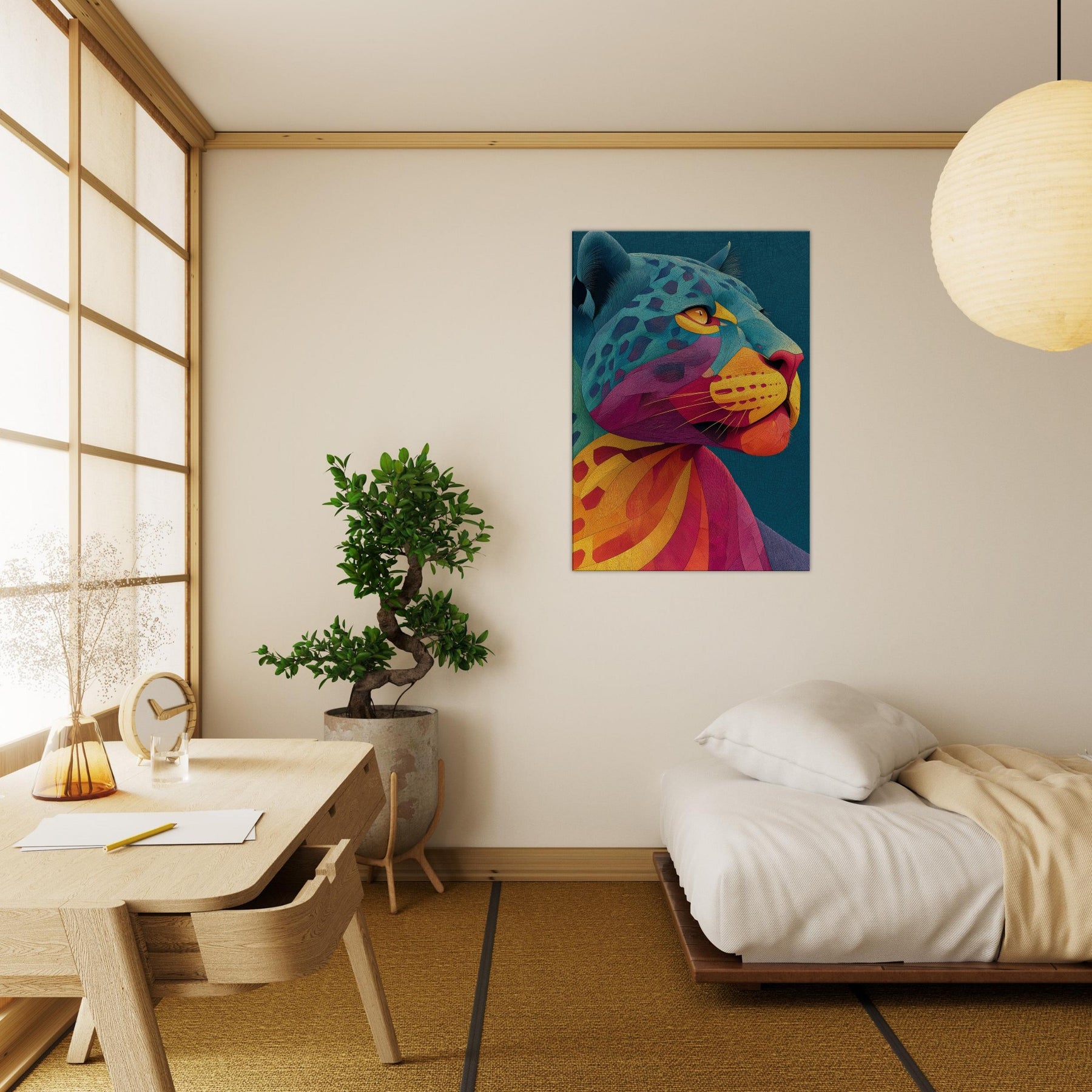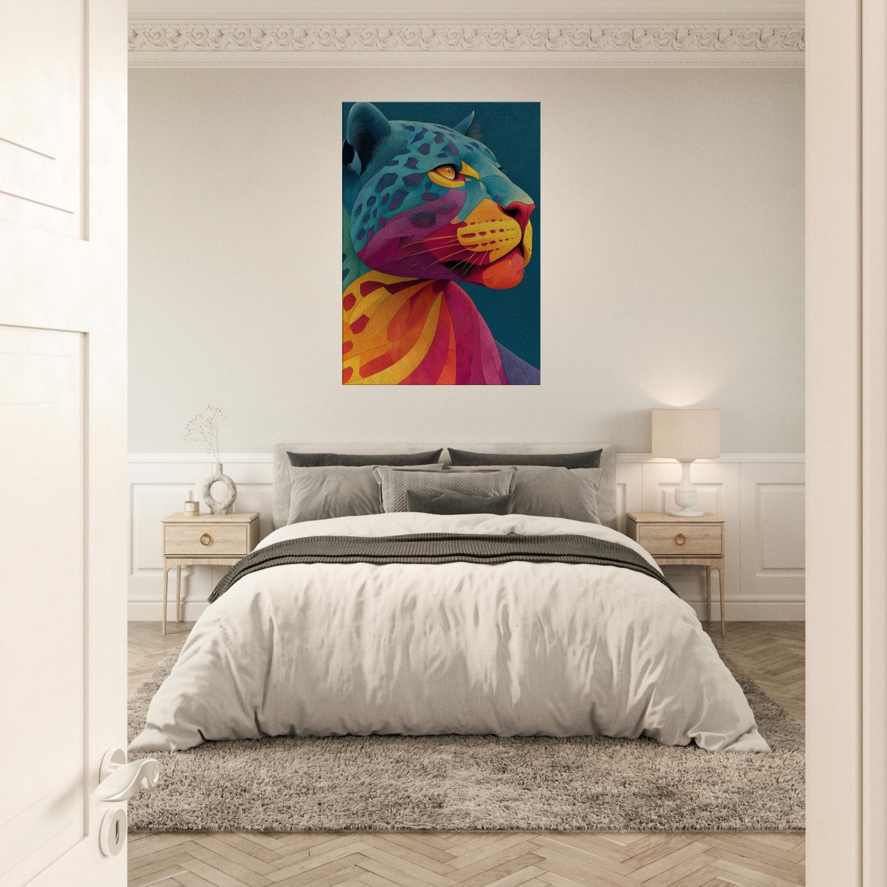 Step into a room where color takes the lead and the gaze lingers. This piece centers a Leopard in a riot of turquoise, pink, gold, and violet, its contours carved into luminous bands that pulse with life. The mood is bold yet intimate, inviting a moment of quiet wonder amid everyday rhythm. Hung in a sunlit living room or a moody study, it refracts light and memory, turning walls into a stage for movement and emotion. A sculptural, tactile energy lives in every line, every shade.