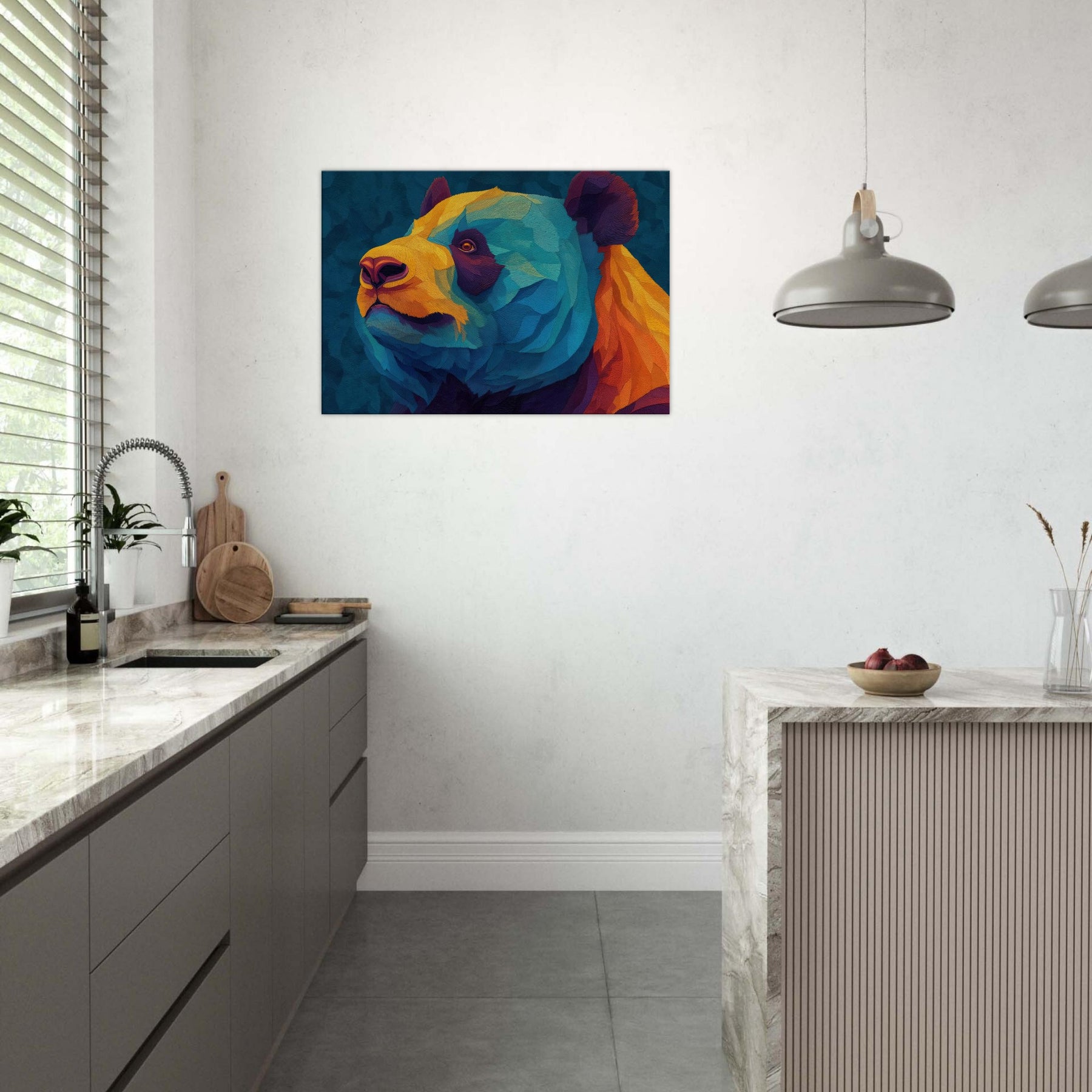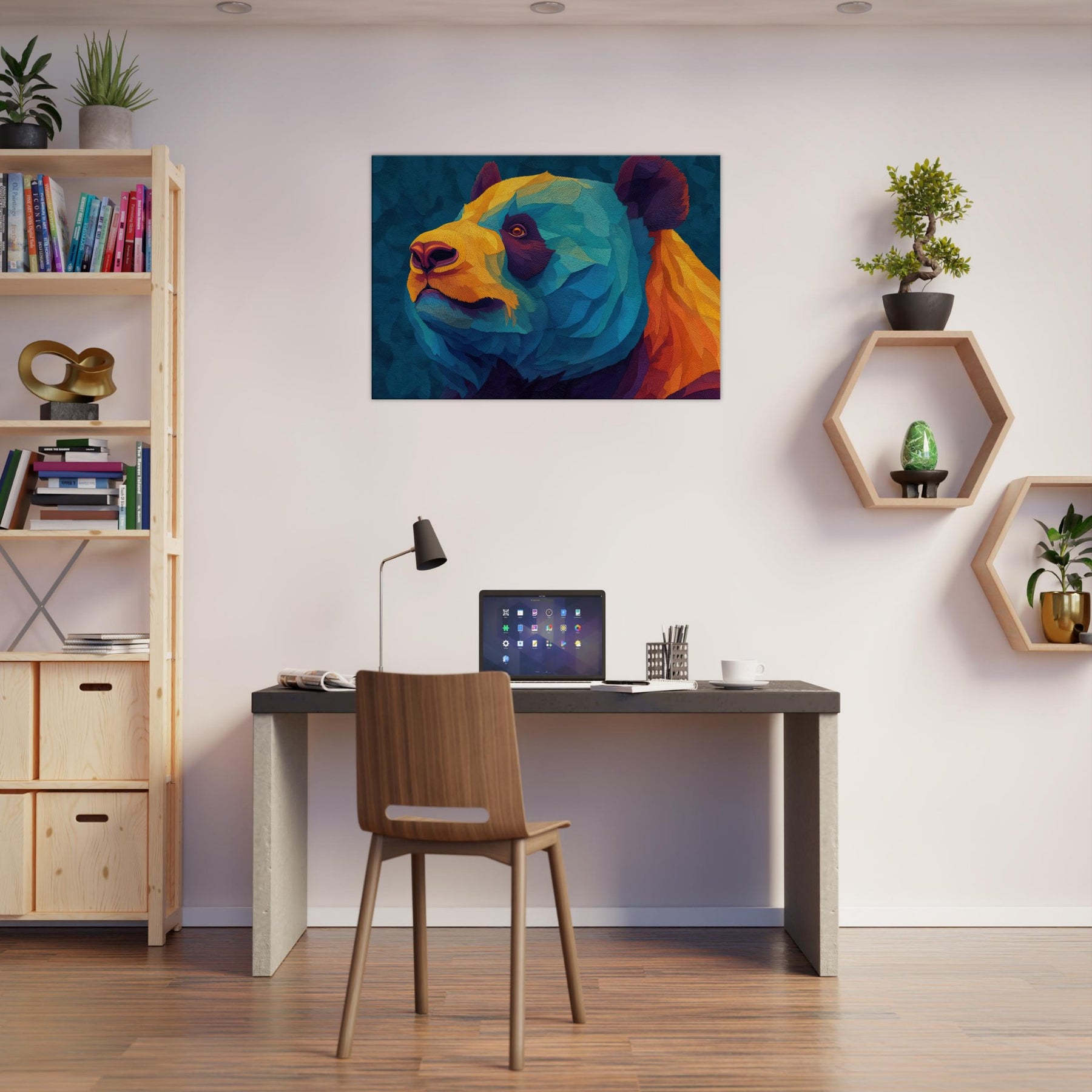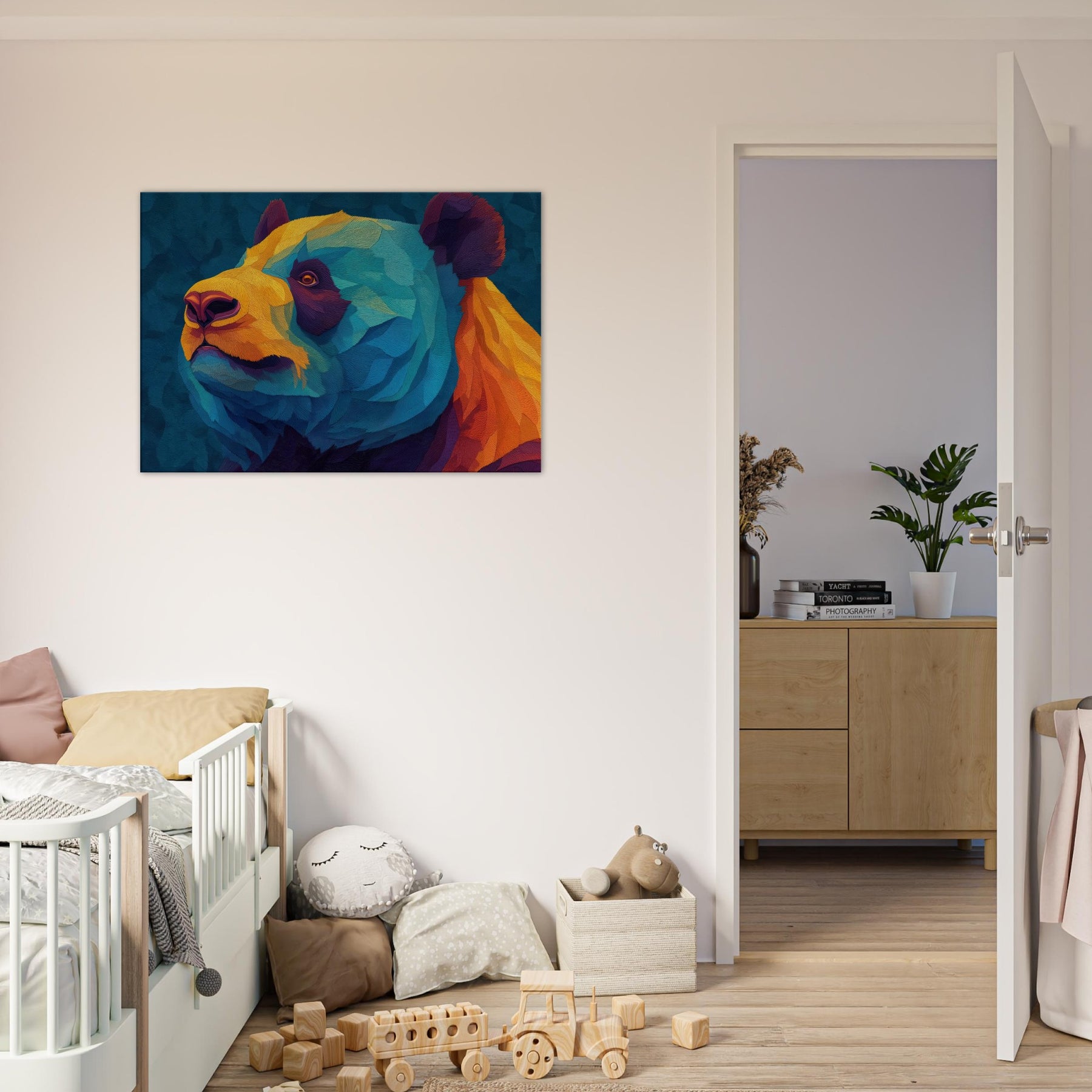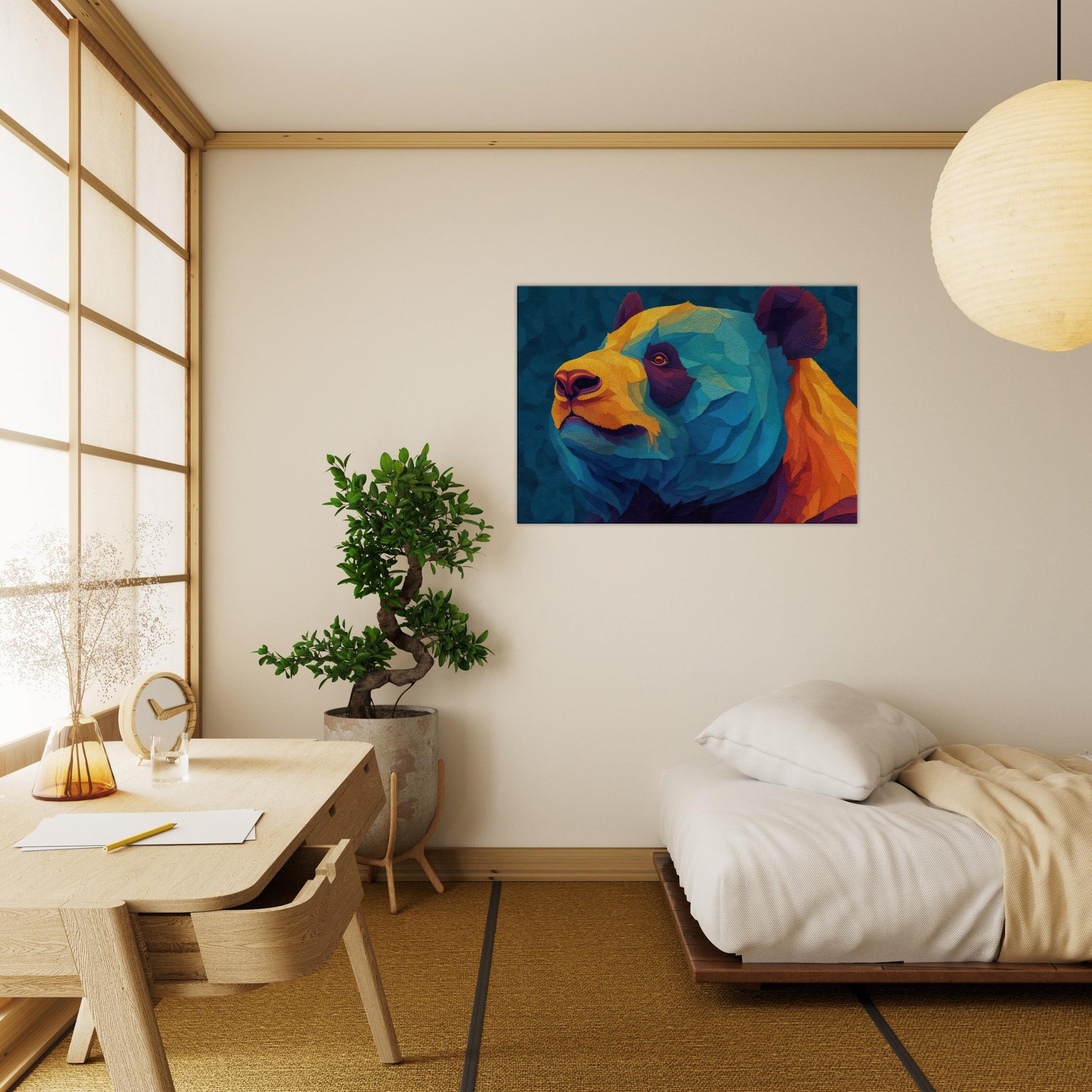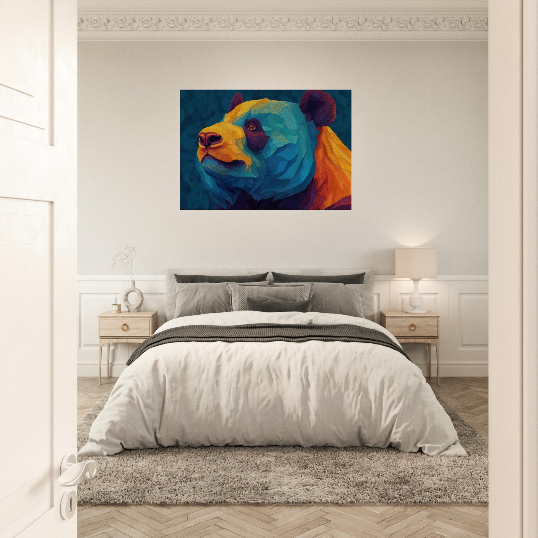 Delicately layered in luminous shards, this abstract Panda dissolves form into radiant motion, inviting calm curiosity into any room. The primary subject, Panda, emerges from a mosaic of electric blues, sunlit yellows, and coral oranges, capturing a tranquil presence with a touch of whimsy. Hang it above a sofa or in an entryway to spark conversation and soften walls with a cool, dreamlike glow. The artwork's tactile texture suggests whispered fabric and brush, turning everyday spaces into a gallery of quiet wonder.