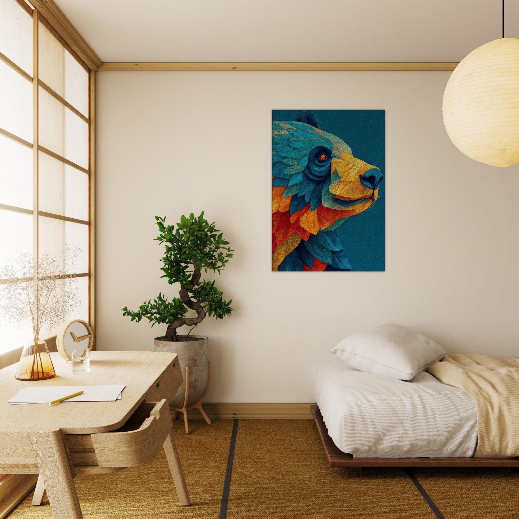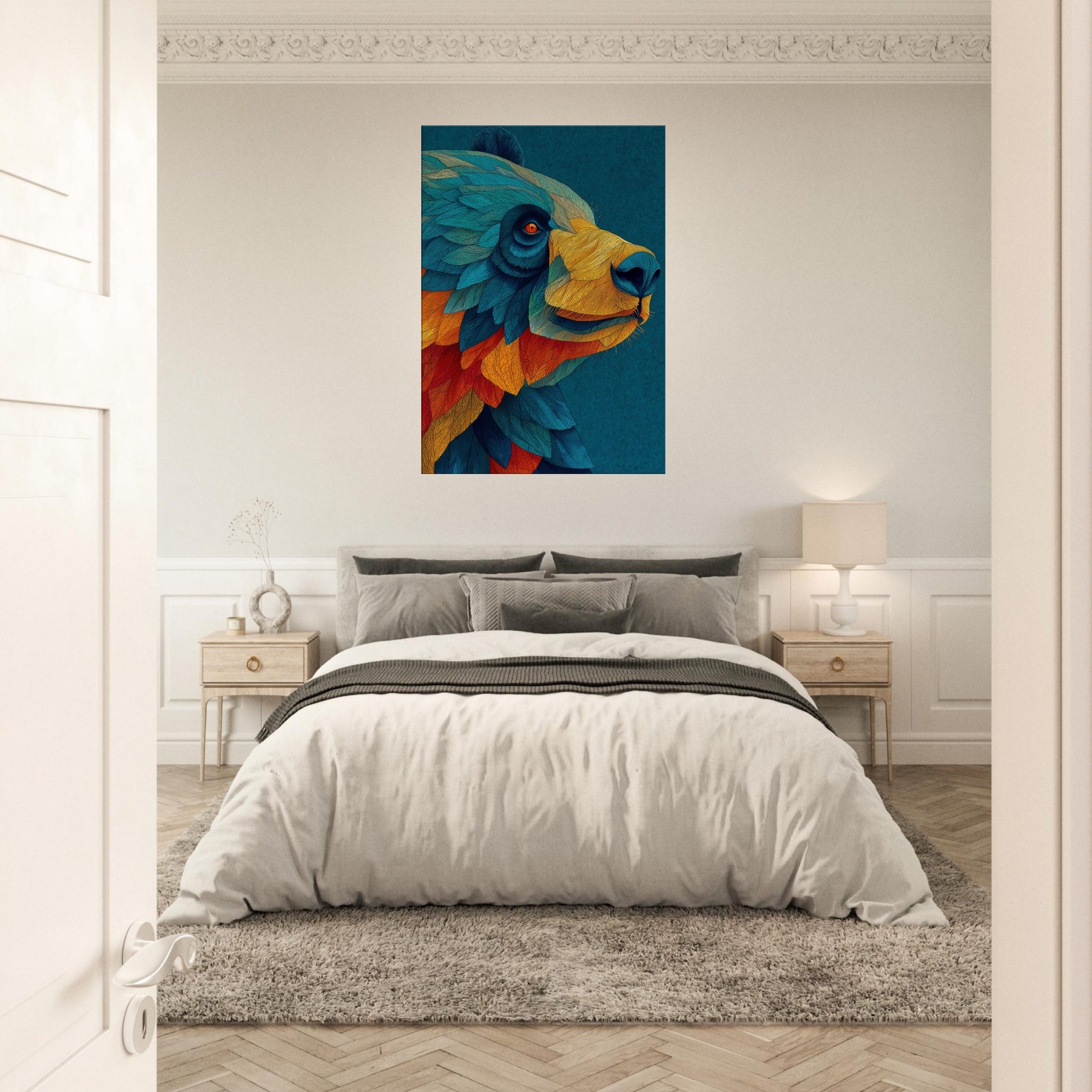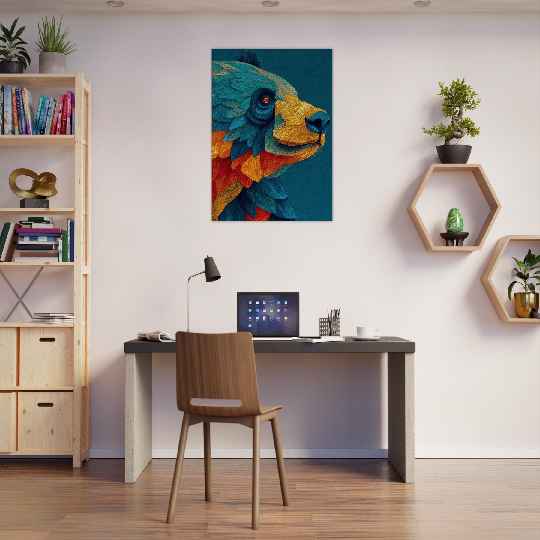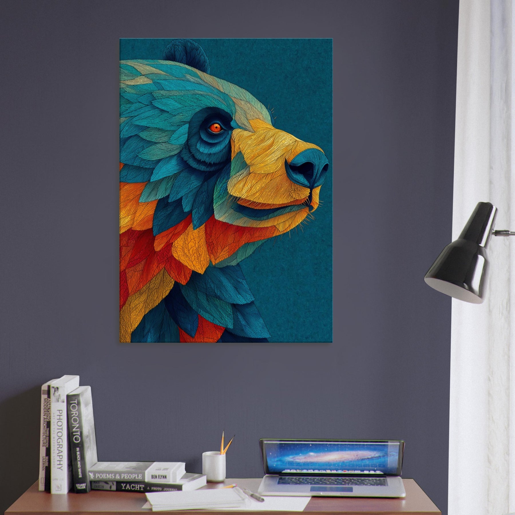 Let this abstract Panda wash over your space like a painterly dream. The Panda's form dissolves into a cascade of turquoise, cobalt, and ember, inviting calm focus and playful wonder. Its layered textures echo sunlight on water, casting a warm, kinetic atmosphere that softens cool walls and anchors a modern living area. Hang it above a sofa or at an entry, and invite conversation as a quiet forest companion brings color, movement, and subtle joy into your home.