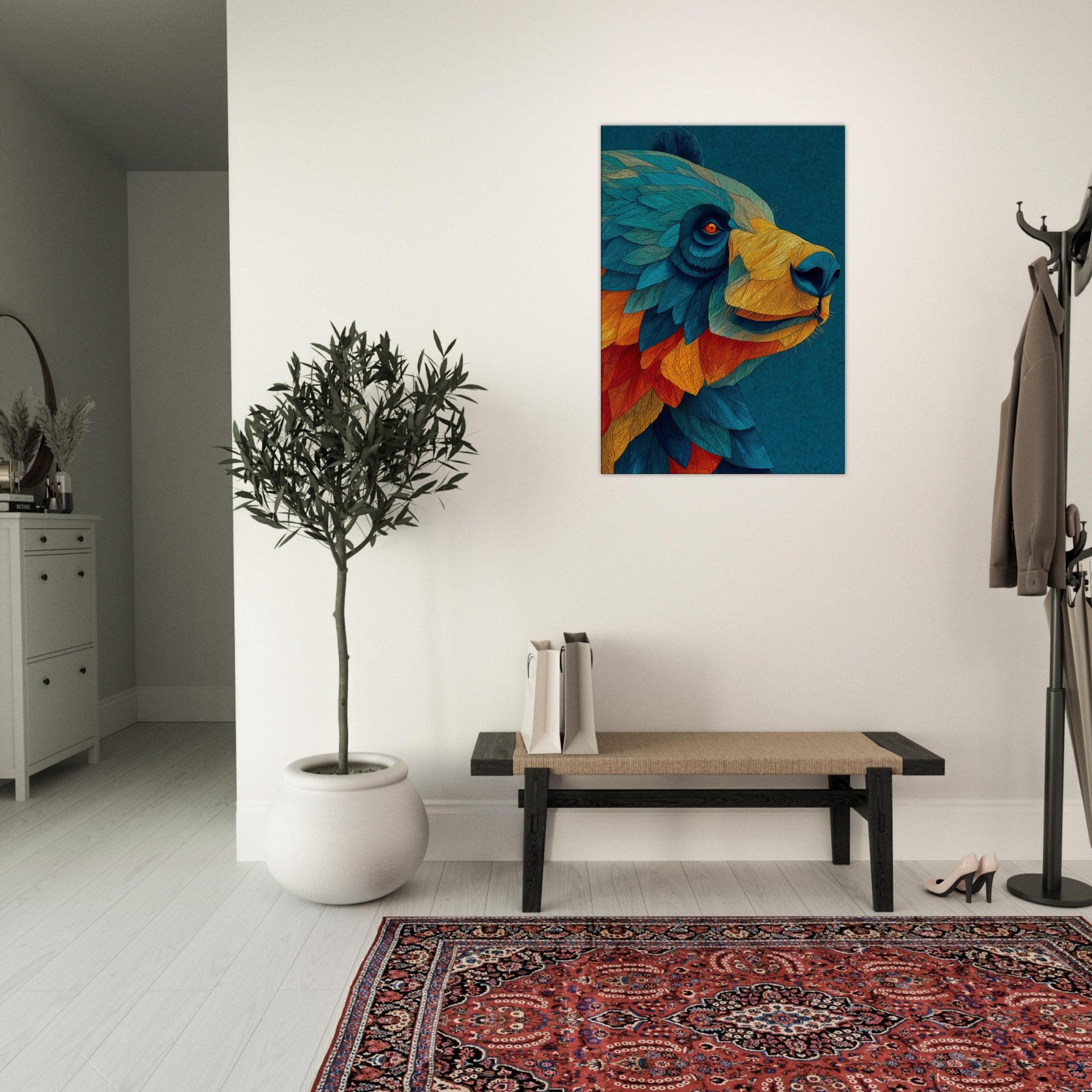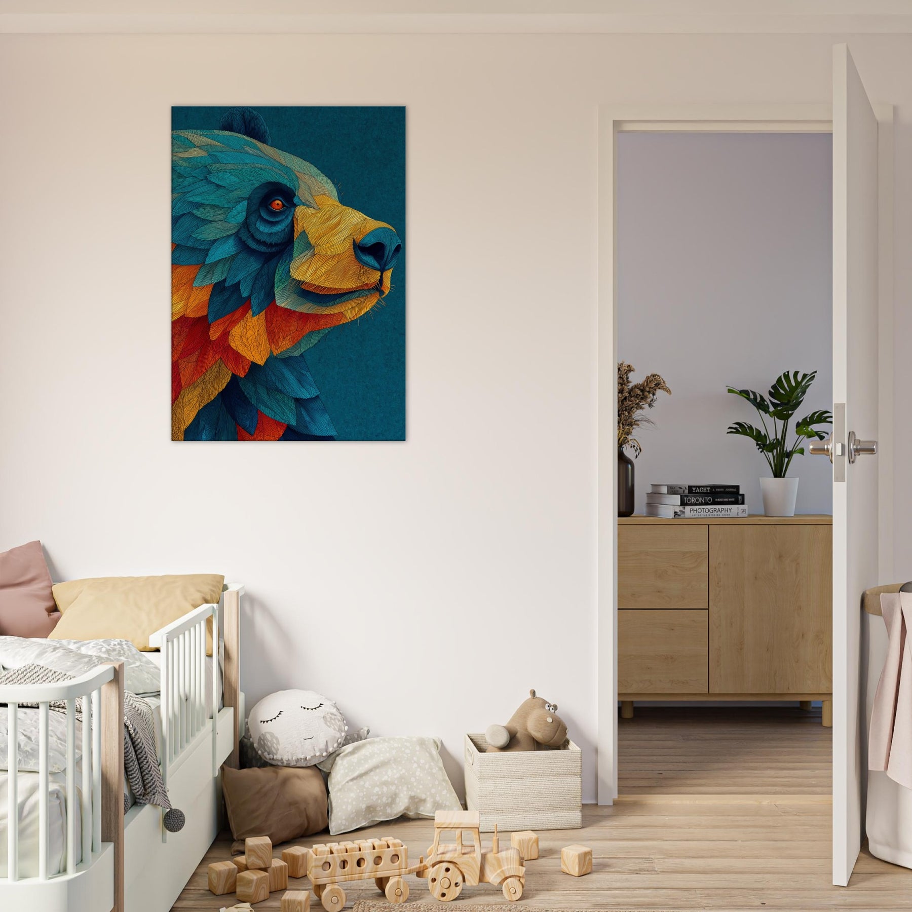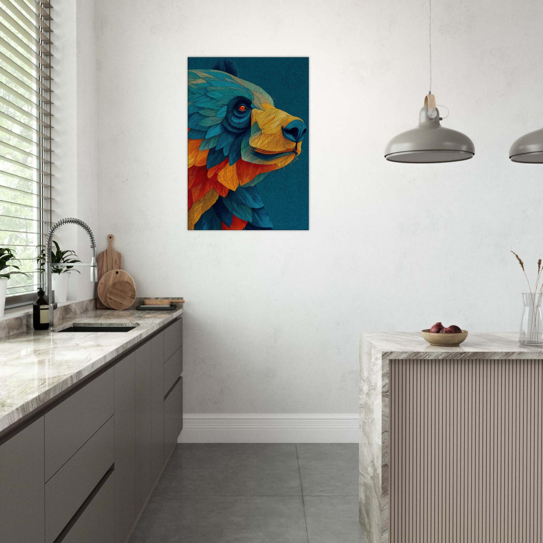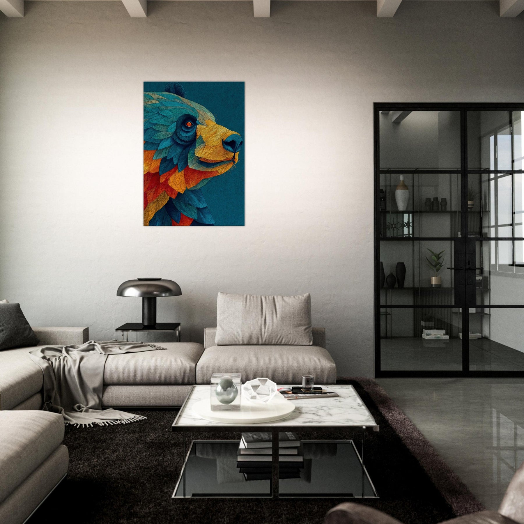 Let this abstract Panda wash over your space like a painterly dream. The Panda's form dissolves into a cascade of turquoise, cobalt, and ember, inviting calm focus and playful wonder. Its layered textures echo sunlight on water, casting a warm, kinetic atmosphere that softens cool walls and anchors a modern living area. Hang it above a sofa or at an entry, and invite conversation as a quiet forest companion brings color, movement, and subtle joy into your home.